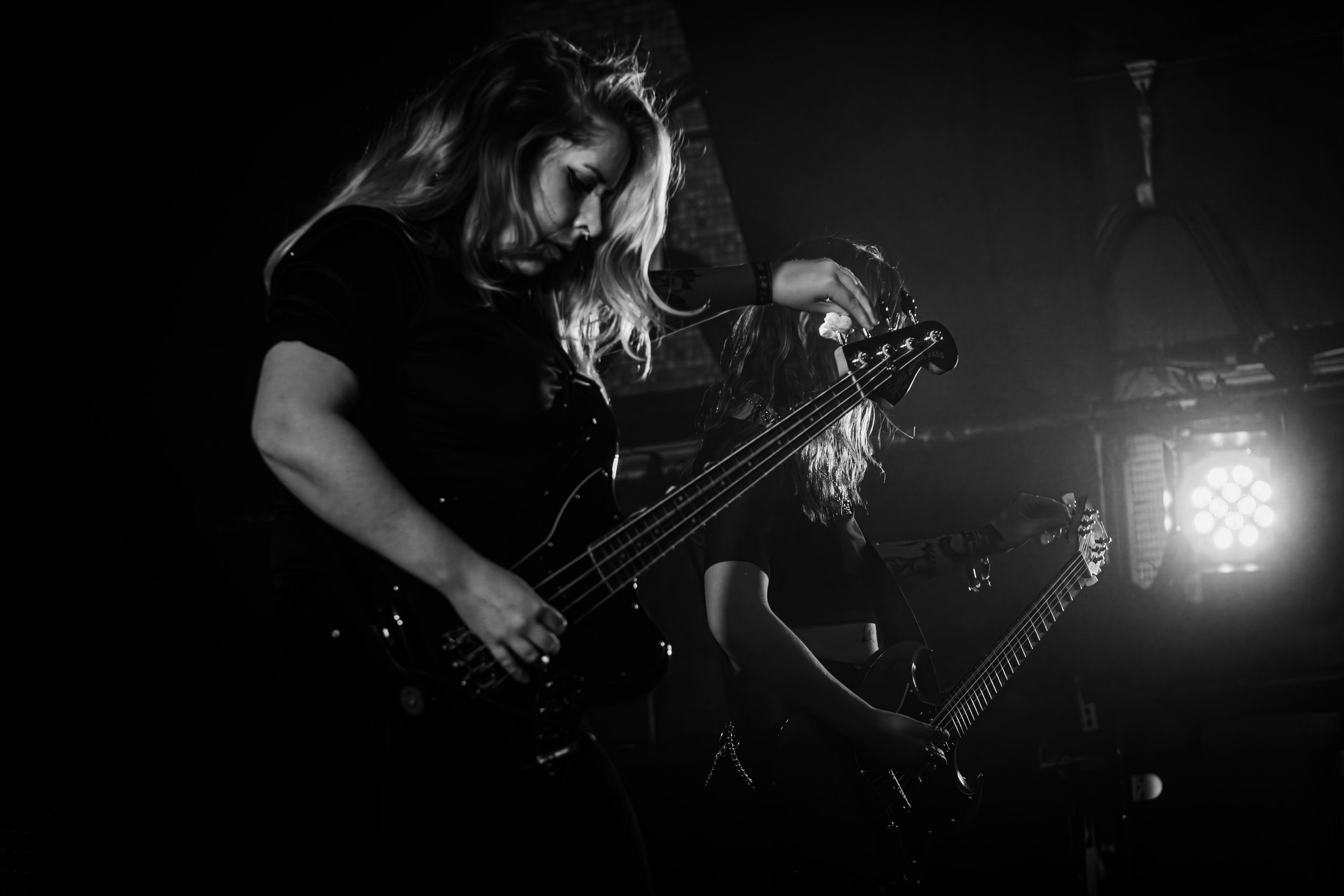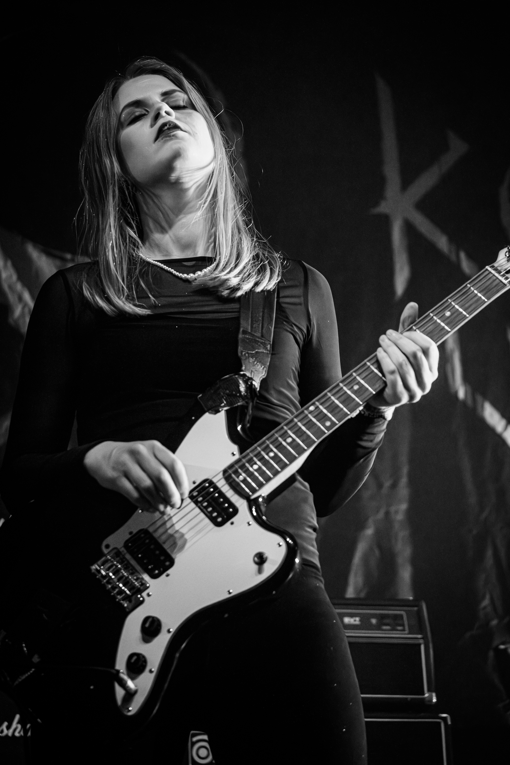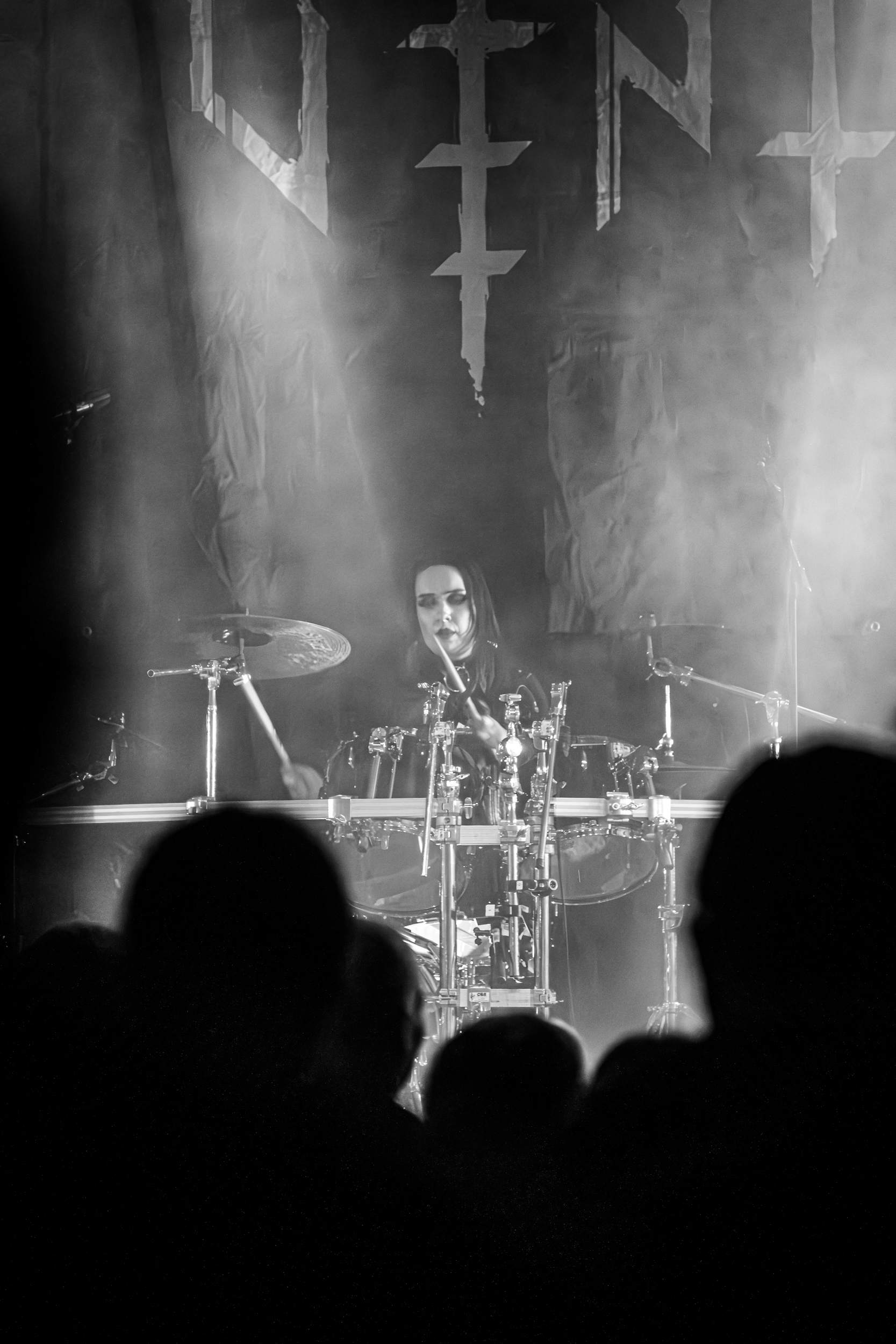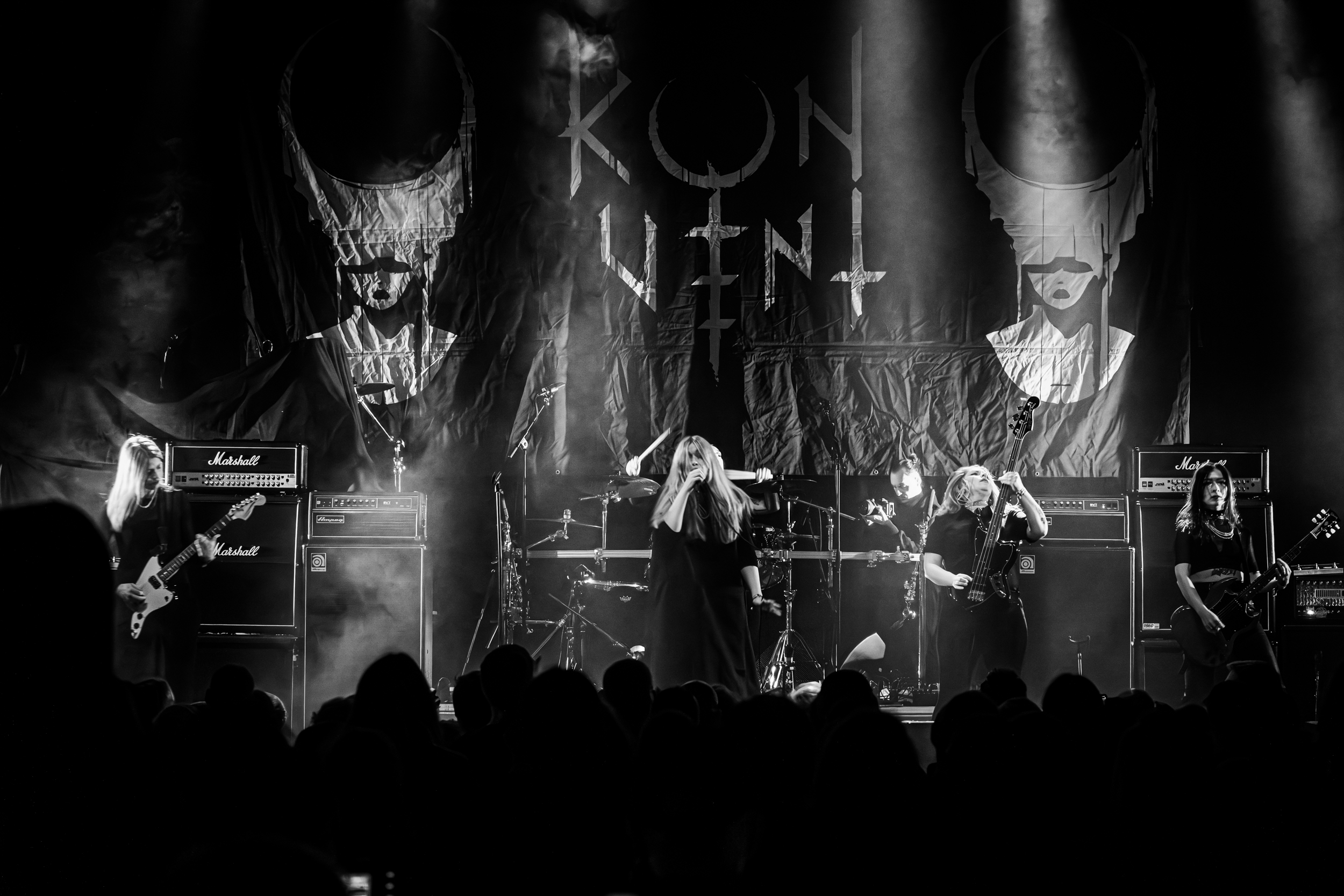 Konvent a l’honneur d’ouvrir l’Inferno 2024 sur la scène du Rockefeller Music Hall. Le groupe officie en tant que quintet depuis 2022 ; la présence d’une deuxième guitariste, Sophie Lake, étoffant encore un son qui n’en avait pourtant pas besoin. Cette position à l’affiche n’est pas toujours enviable, pourtant, les spectateurs sont déjà bien présents pour apprécier un death/doom d’excellente facture dans lequel s’insinue puis s’incruste une atmosphère sombre et étrange, à laquelle la chanteuse Rikke Emilie List amène encore un plus : vêtue d’une longue robe noire ressemblant à une tunique de nonne que l’on devine maléfique, ses postures et sa position de poignet, comme cassé ou mi-recroquevillé, lui donnent l’air d’une morte-vivante ou d’une sorcière. Les amateurs de films d’horreur asiatiques comprendront ce que cela signifie en termes d’apparence, et conviendront que cet aspect visuel est parfaitement raccord avec la musique et en renforce l’impact. Un très bon début de festival. [Oli]