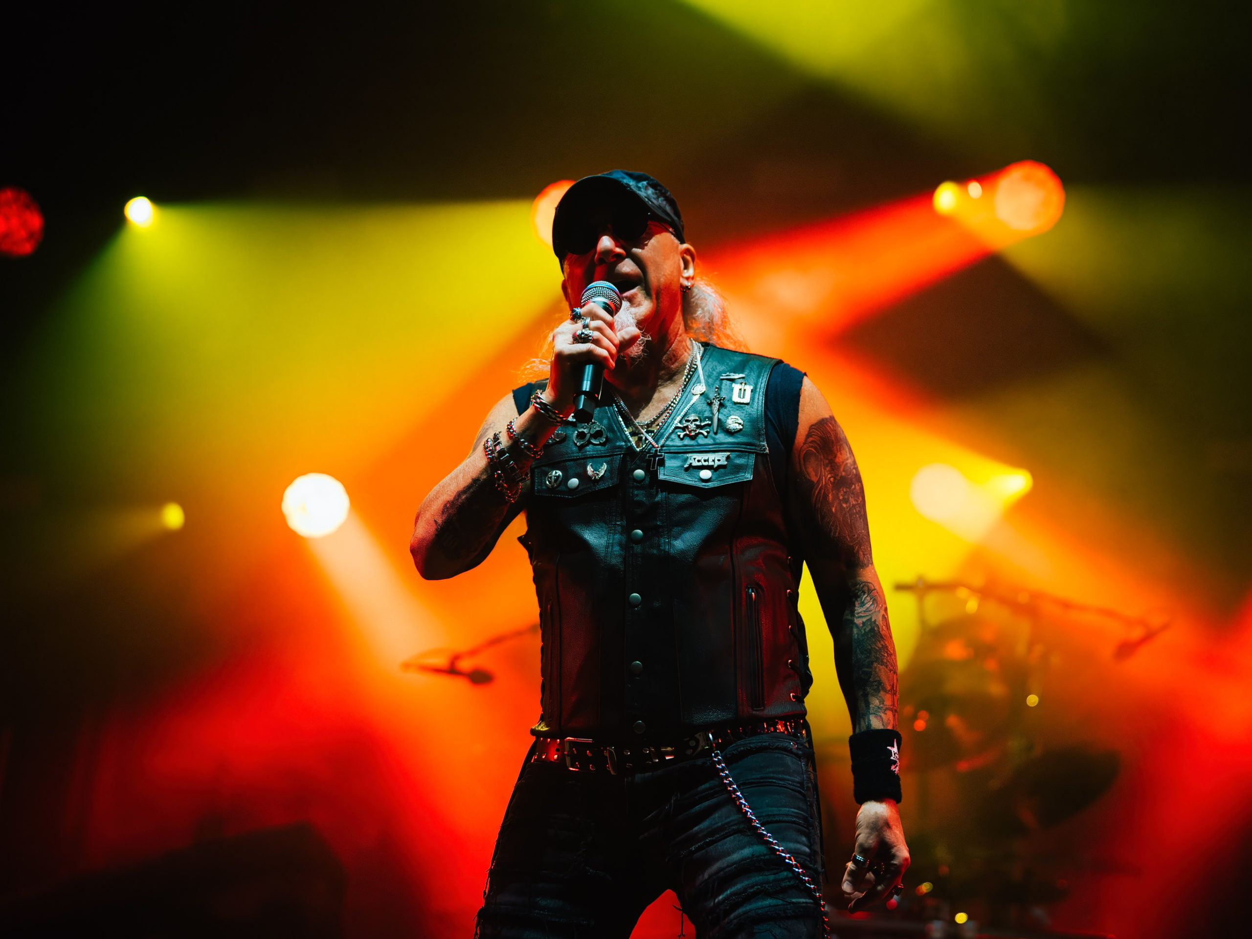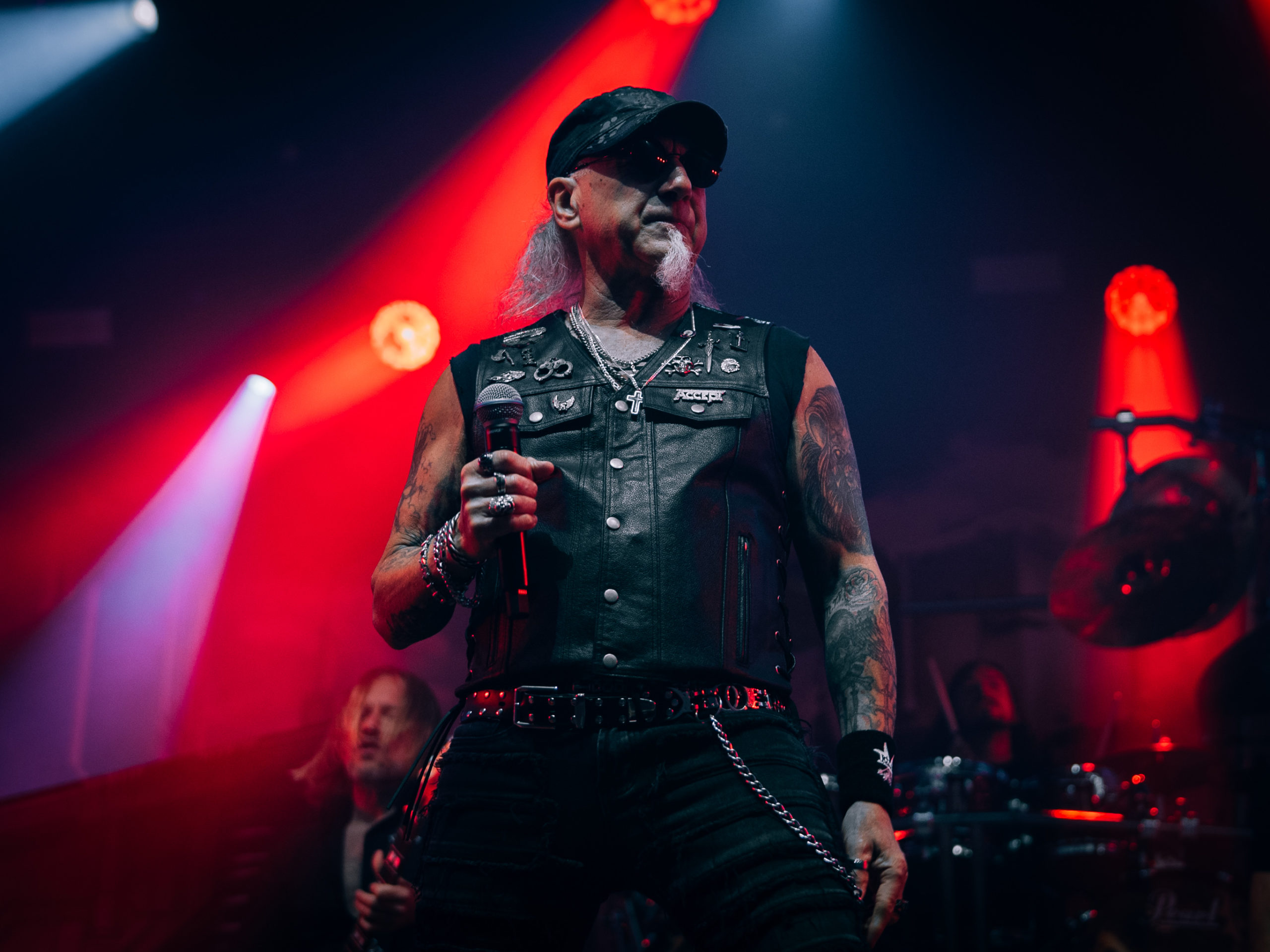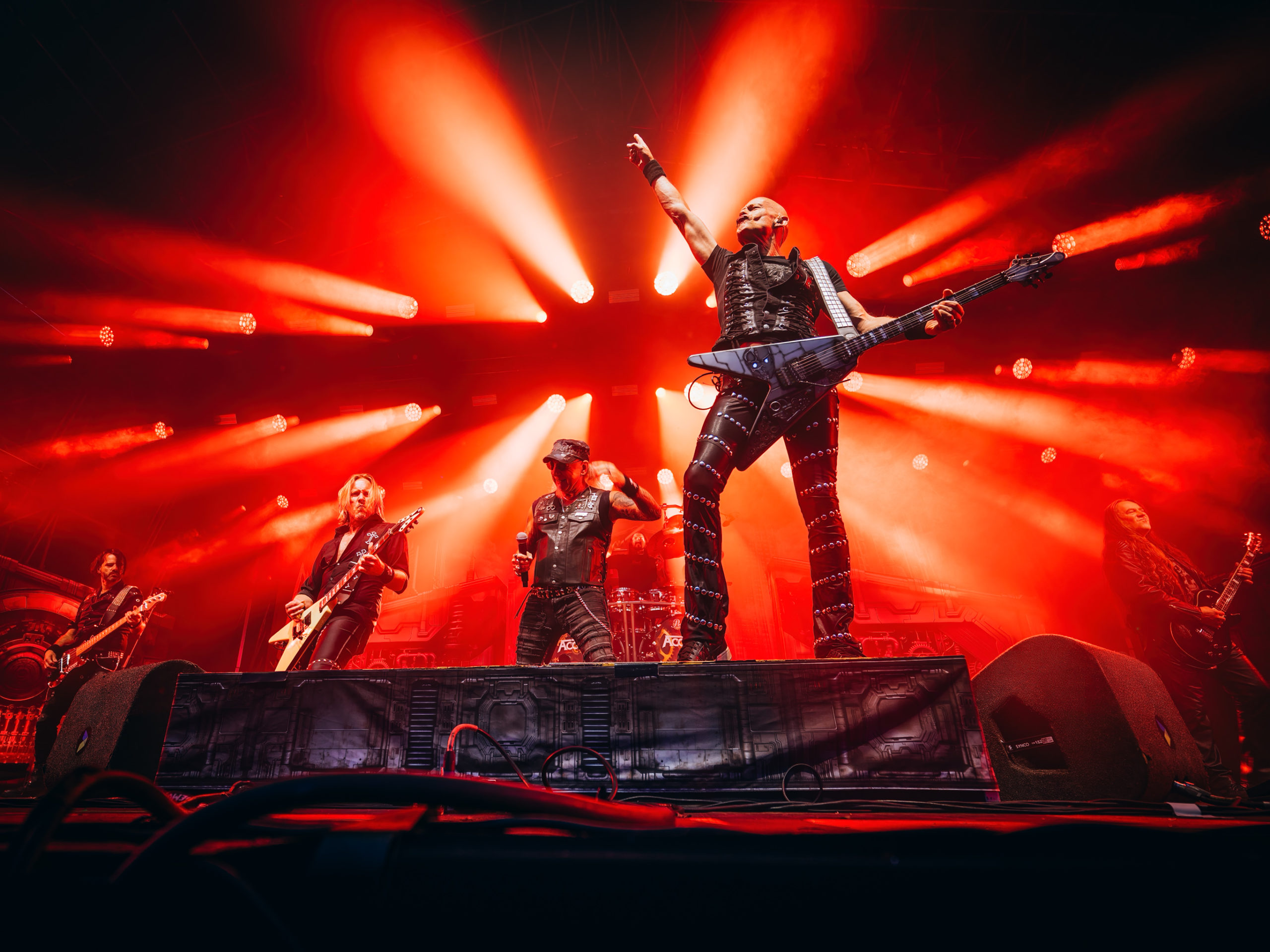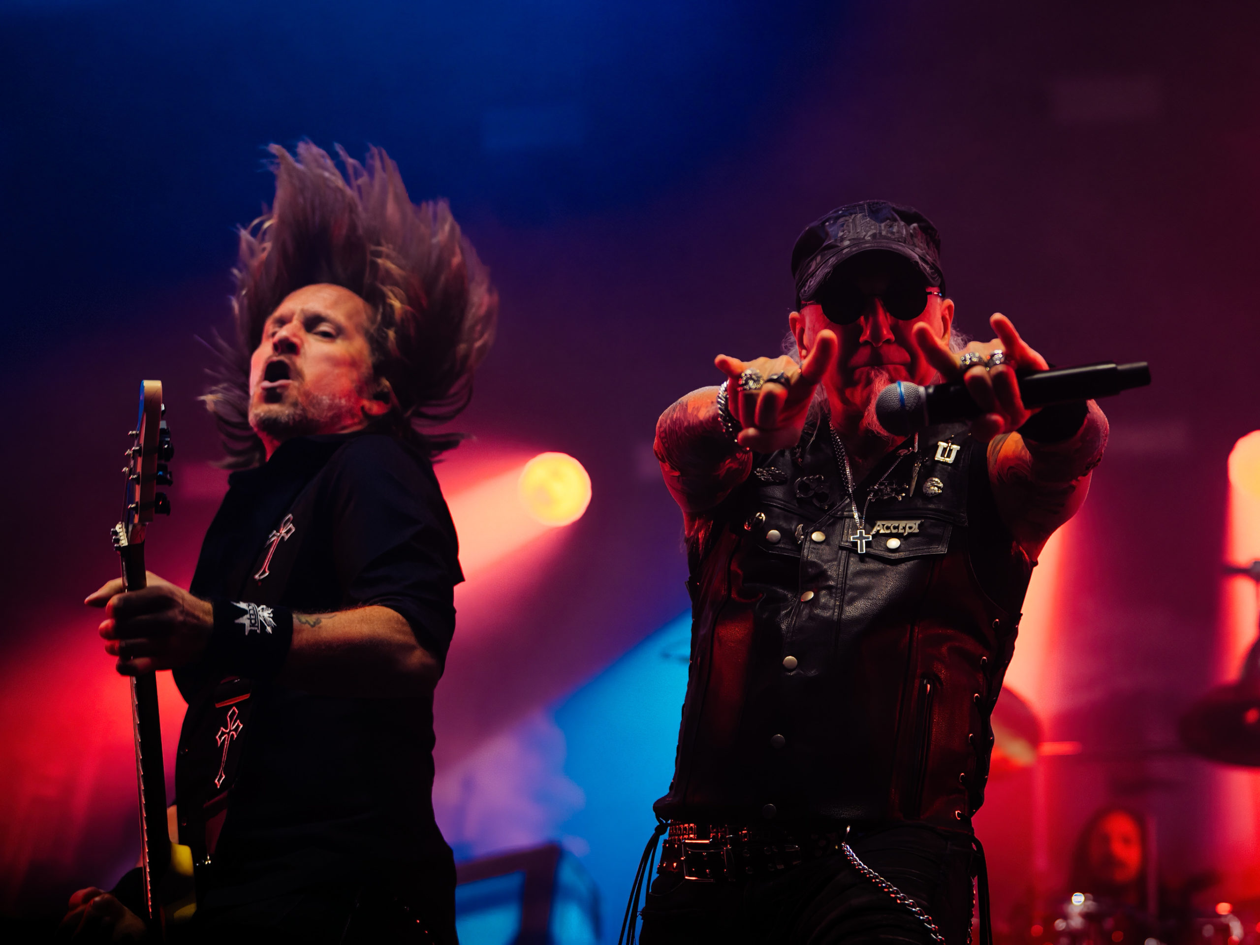 Par chance, la pluie cesse de tomber pour Accept, qui officie ce soir en tant que tête d’affiche, mais ne dispose pas de plus de temps que Hatebreed. Une heure, c’est peu pour parcourir une discographie aussi riche que celle des vaillants Teutons. Aussi aurons-nous droit à un best of bien ramassé, mais à un best of quand même, auquel s’ajouteront deux titres issus du dernier album Humanoid (2024) : The Reckoning en ouverture et Straight Up Jack. Pour le reste, des classiques, je vous dis, parmi lesquels Metal Heart, Fast as a Shark et, comment pourrait-il en être autrement, Balls to the Wall pour terminer. Pour terminer, mais pas en rappel, car de rappel, il n’y aura point. Pour gagner un peu de temps, sans doute. Quoi qu’il en soit, un Mark Tornillo plaisantin (« Vous avez survécu à la pluie ?« ) et en bonne forme vocale, entouré d’un groupe, comme toujours, carré, ont plus que satisfait les fans, dont les plus motivés assisteront encore aux concerts en after, qui se donnent au Muziekgieterij, salle bien connue qui se trouve à cinq minutes de marche du site du Gashouder. Pour notre part, nous ferons l’impasse sur Wolfbrigade, Mass Deception, Ripsaw et Inherited.