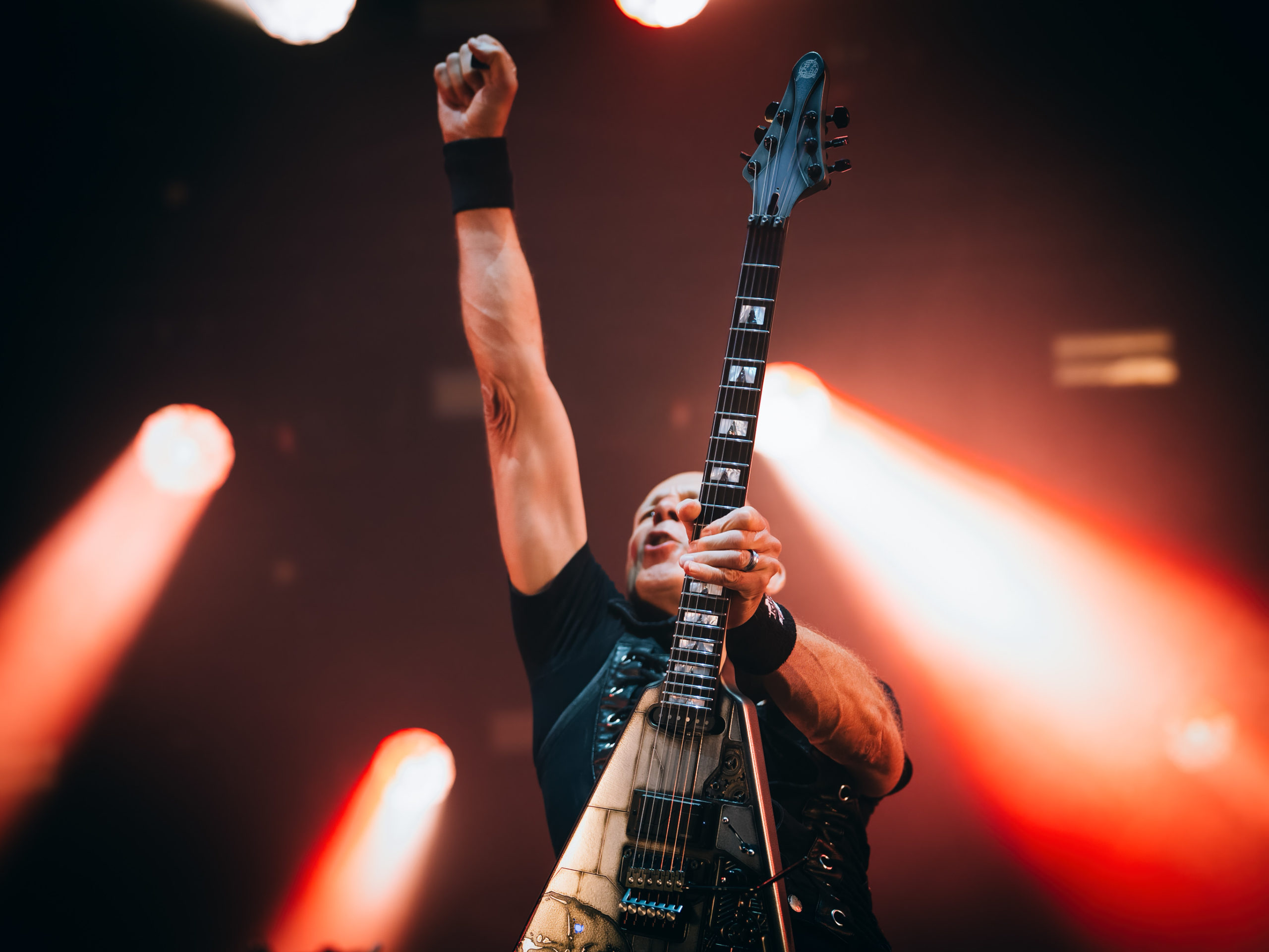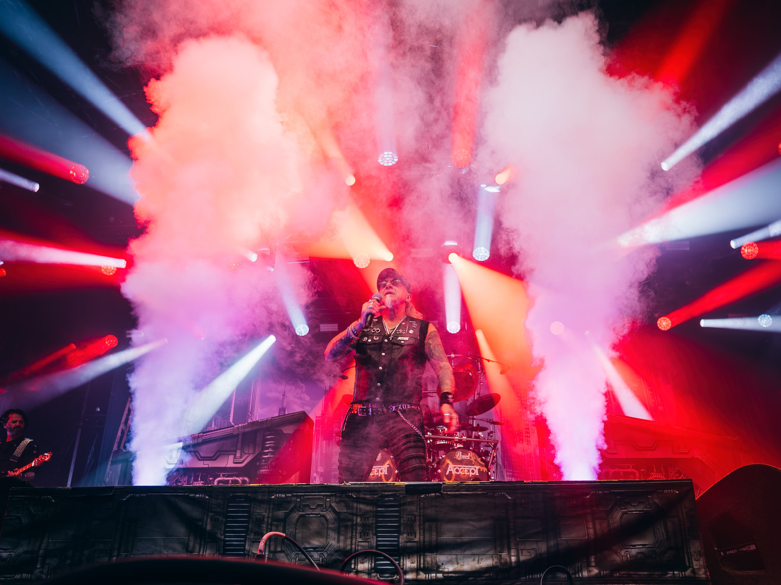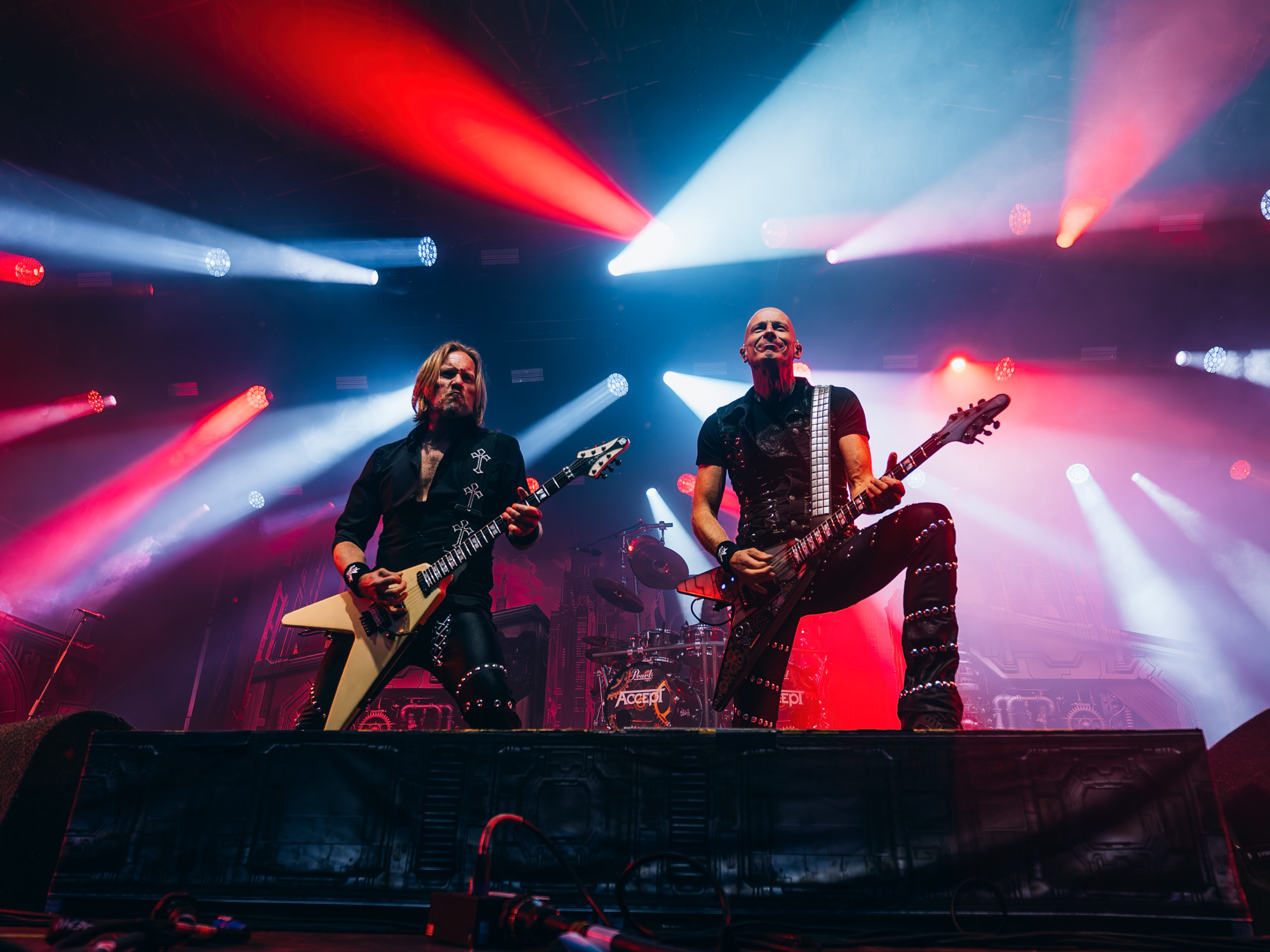 Par chance, la pluie cesse de tomber pour Accept, qui officie ce soir en tant que tête d’affiche, mais ne dispose pas de plus de temps que Hatebreed. Une heure, c’est peu pour parcourir une discographie aussi riche que celle des vaillants Teutons. Aussi aurons-nous droit à un best of bien ramassé, mais à un best of quand même, auquel s’ajouteront deux titres issus du dernier album Humanoid (2024) : The Reckoning en ouverture et Straight Up Jack. Pour le reste, des classiques, je vous dis, parmi lesquels Metal Heart, Fast as a Shark et, comment pourrait-il en être autrement, Balls to the Wall pour terminer. Pour terminer, mais pas en rappel, car de rappel, il n’y aura point. Pour gagner un peu de temps, sans doute. Quoi qu’il en soit, un Mark Tornillo plaisantin (« Vous avez survécu à la pluie ?« ) et en bonne forme vocale, entouré d’un groupe, comme toujours, carré, ont plus que satisfait les fans, dont les plus motivés assisteront encore aux concerts en after, qui se donnent au Muziekgieterij, salle bien connue qui se trouve à cinq minutes de marche du site du Gashouder. Pour notre part, nous ferons l’impasse sur Wolfbrigade, Mass Deception, Ripsaw et Inherited.