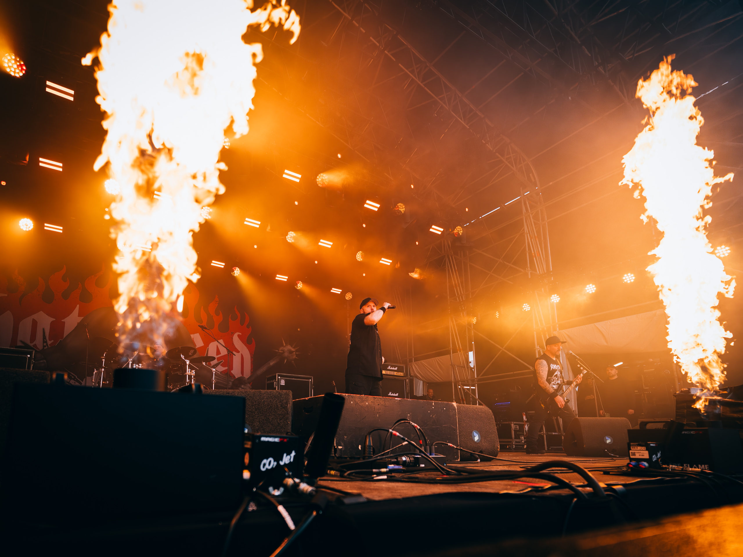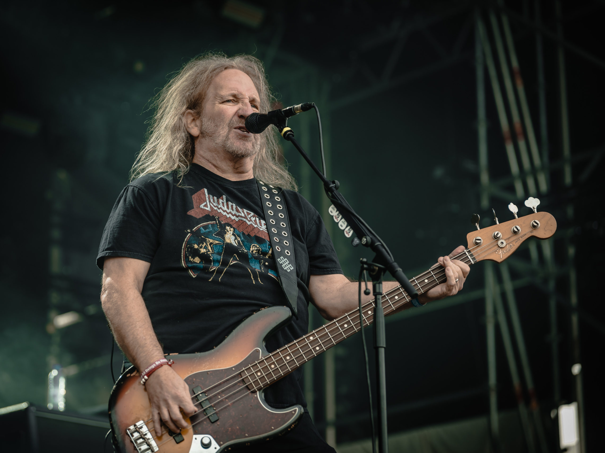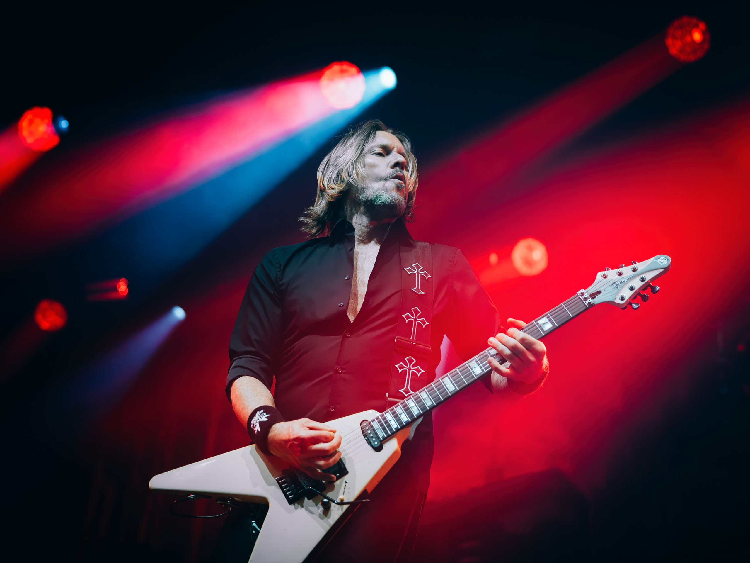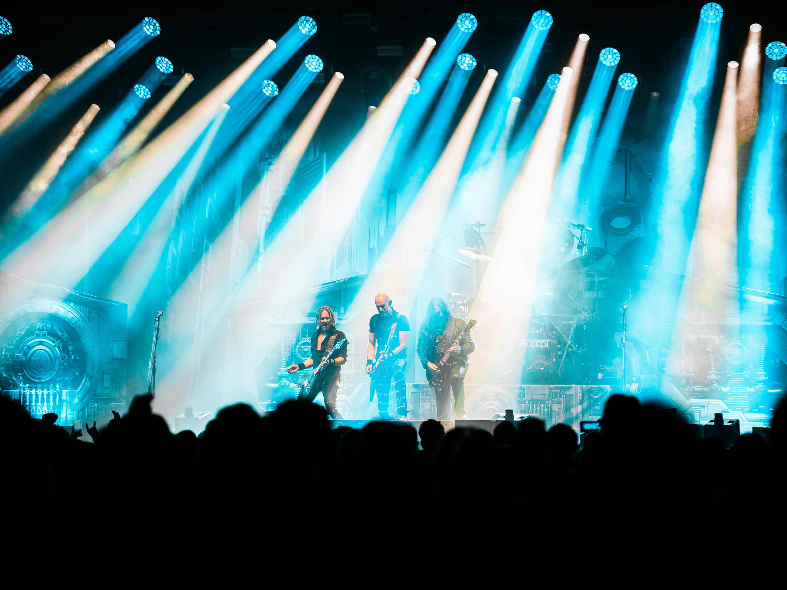 Par chance, la pluie cesse de tomber pour Accept, qui officie ce soir en tant que tête d’affiche, mais ne dispose pas de plus de temps que Hatebreed. Une heure, c’est peu pour parcourir une discographie aussi riche que celle des vaillants Teutons. Aussi aurons-nous droit à un best of bien ramassé, mais à un best of quand même, auquel s’ajouteront deux titres issus du dernier album Humanoid (2024) : The Reckoning en ouverture et Straight Up Jack. Pour le reste, des classiques, je vous dis, parmi lesquels Metal Heart, Fast as a Shark et, comment pourrait-il en être autrement, Balls to the Wall pour terminer. Pour terminer, mais pas en rappel, car de rappel, il n’y aura point. Pour gagner un peu de temps, sans doute. Quoi qu’il en soit, un Mark Tornillo plaisantin (« Vous avez survécu à la pluie ?« ) et en bonne forme vocale, entouré d’un groupe, comme toujours, carré, ont plus que satisfait les fans, dont les plus motivés assisteront encore aux concerts en after, qui se donnent au Muziekgieterij, salle bien connue qui se trouve à cinq minutes de marche du site du Gashouder. Pour notre part, nous ferons l’impasse sur Wolfbrigade, Mass Deception, Ripsaw et Inherited.