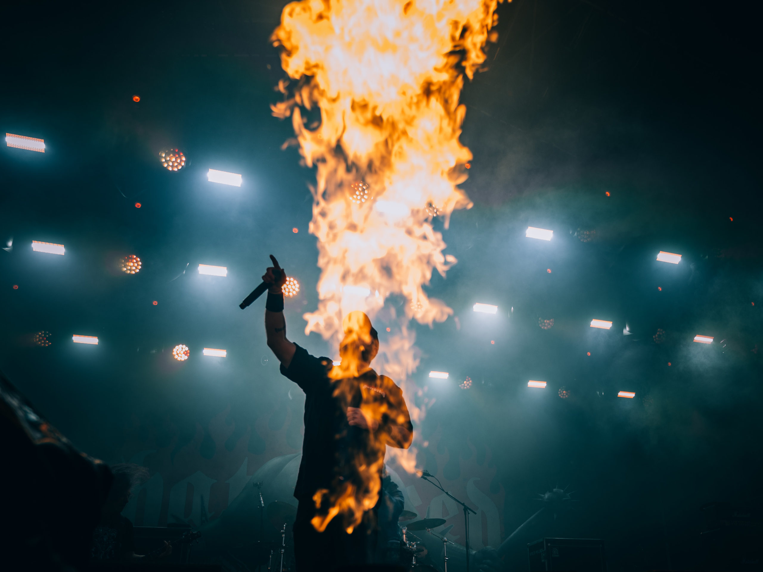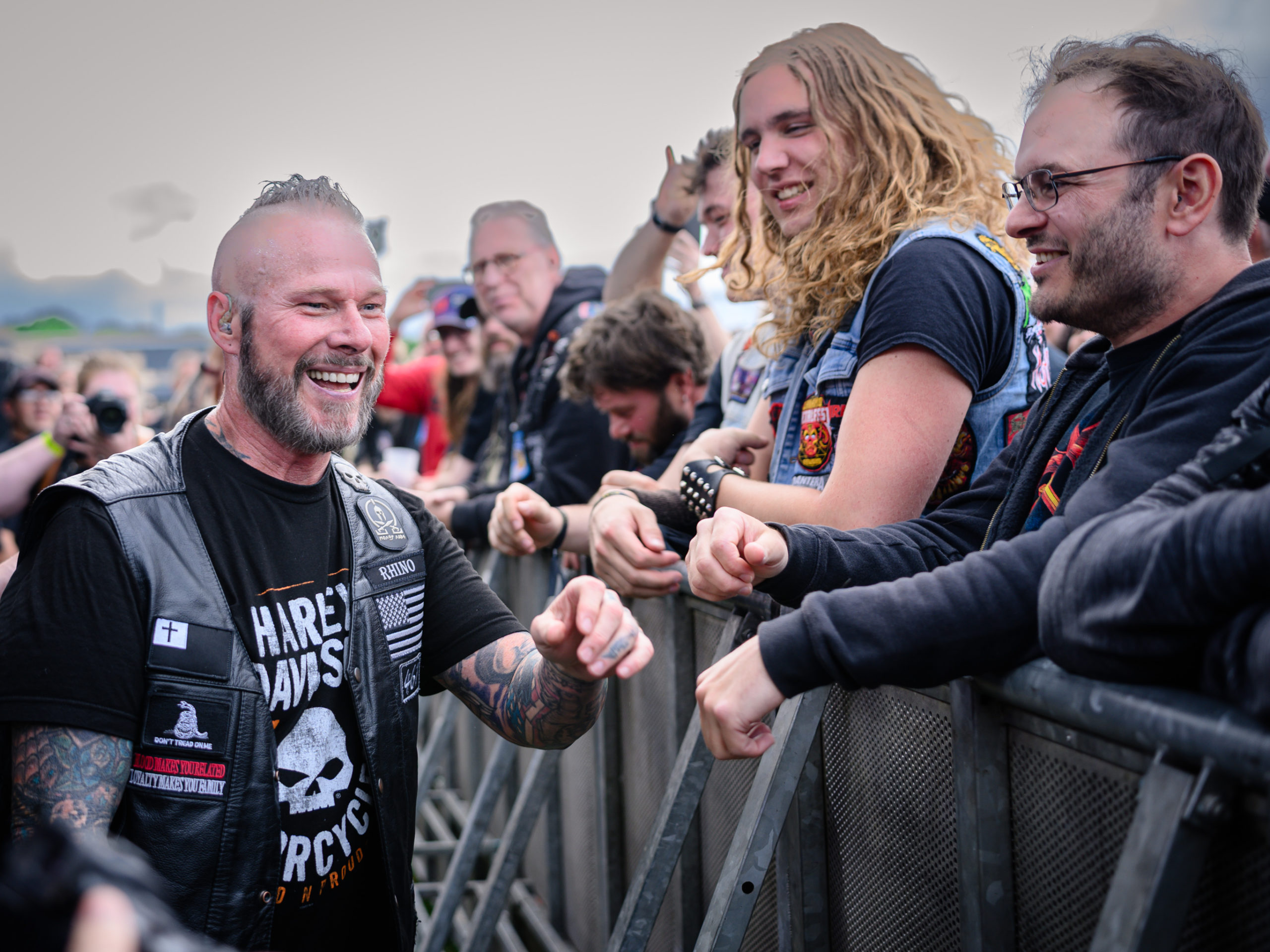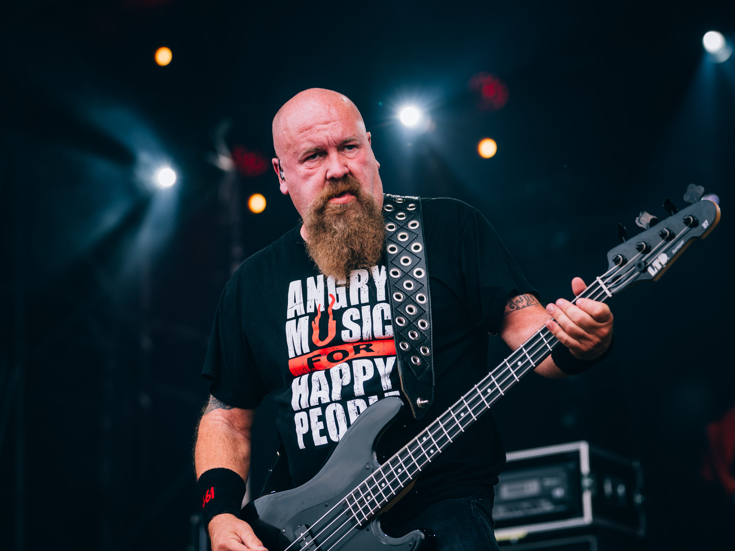 Avec Sacred Reich, changement d’ambiance. Le thrash des Ricains n’est pas moins mordant que le speed de Midnight. Toutefois, aussi sérieux et politiques que soient les thèmes véhiculés par les textes de la bande à Phil Rind (basse/chant), un concert de Sacred Reich constitue toujours un moment feel good, l’attitude joviale de Phil, souriant comme toujours, y étant pour beaucoup. Pour ce premier gig de l’actuelle tournée, ça commence fort avec le classique The American Way, son riff répétitif et son tempo modéré. S’ensuit Divide & Conquer, plus speed et extrait du dernier album en date, The Awakening (2019), qui sera représenté une seconde fois par Salvation, à l’occasion duquel Phil s’en ira d’un petit speech sur la communauté metal et le salut (« salvation« ) par la musique. Cliché, idéaliste et un rien exagéré, ce discours (« nous formons une communauté« , « nous nous soutenons les uns les autres« , « le salut par la musique« , …), prononcé par un mec aussi sympa que Phil Rind, fait de Sacred Reich le groupe thrash le plus peace and love de la planète. Ceci dit, avec un set de quarante minutes, ce sont évidemment les classiques qui auront la part belle : Death Squad et son riff d’intro mythique, Independent, l’indéboulonnable reprise de War Pigs de Black Sabbath, et Surf Nicaragua pour conclure. Un goût de trop peu évidemment, un excellent moment tout de même.
