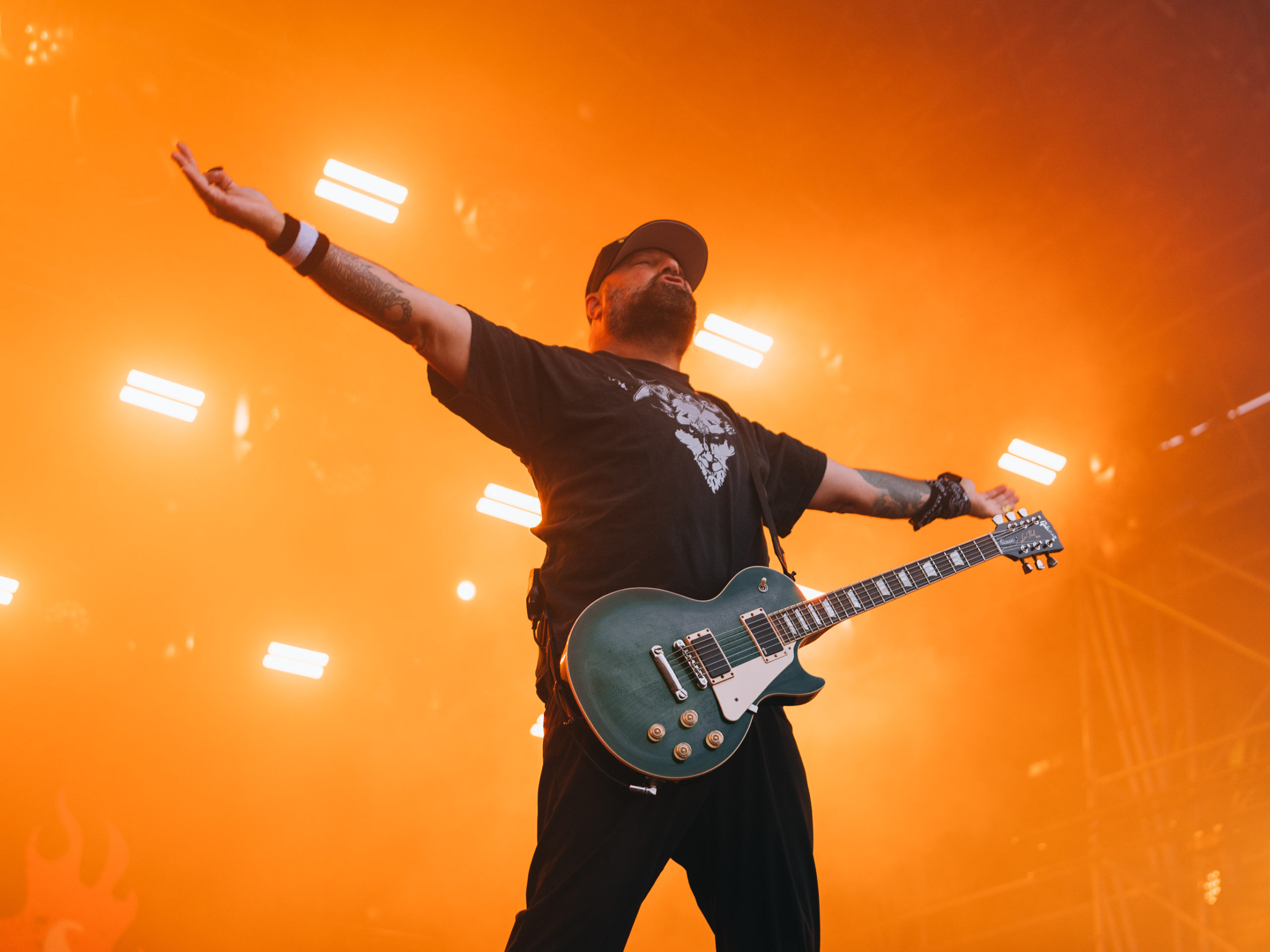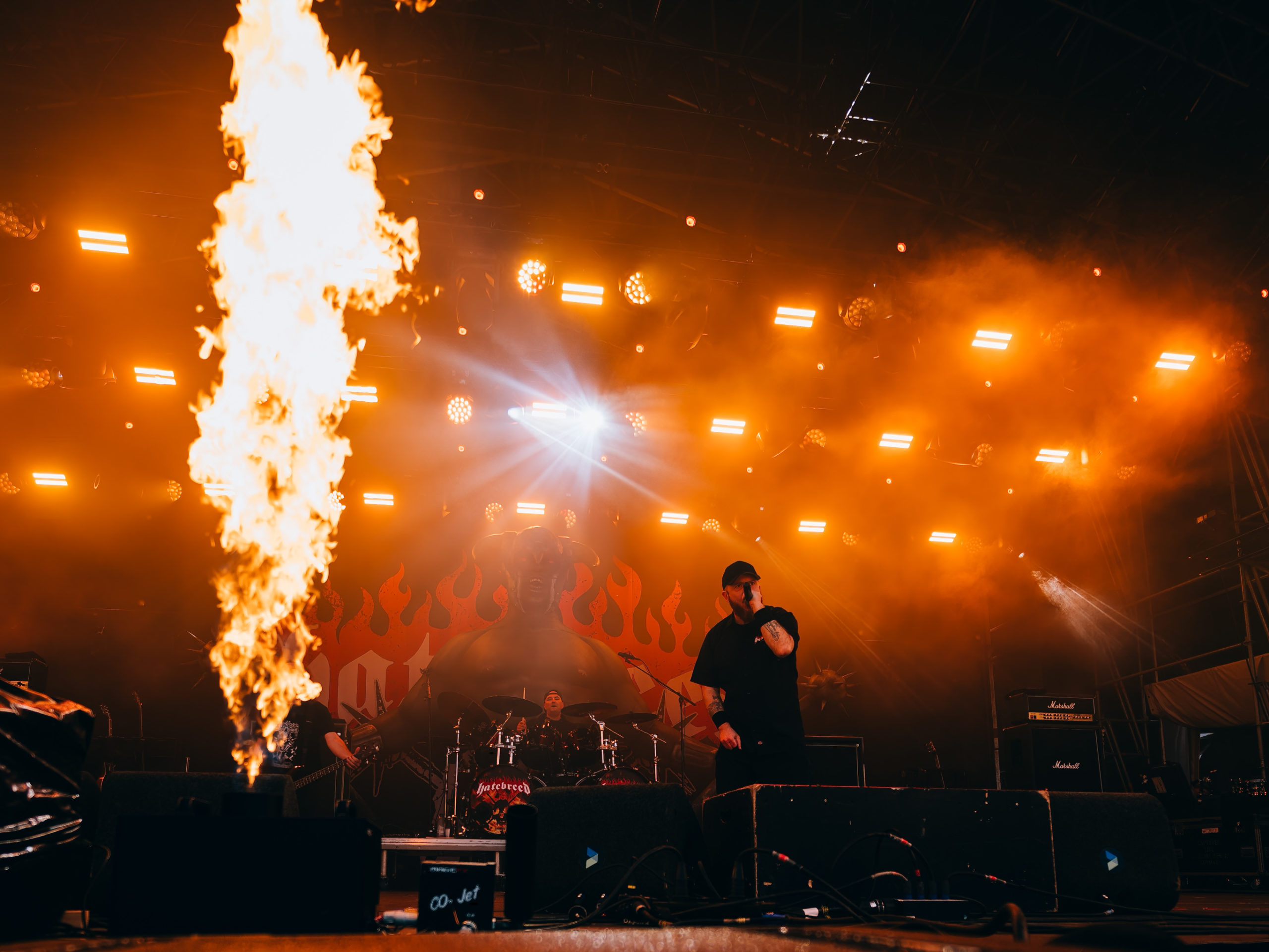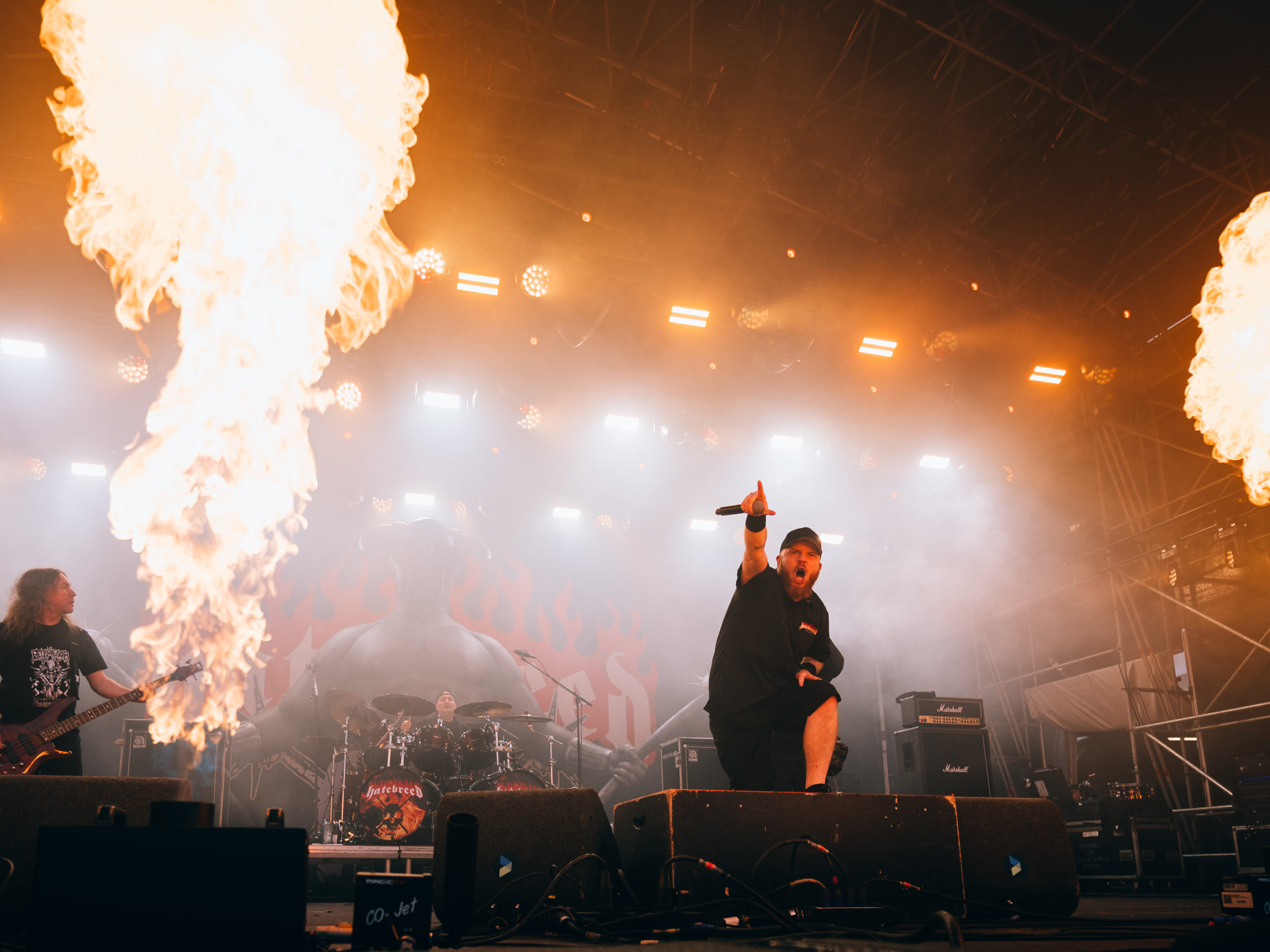 Le hardcore métallisé de Hatebreed remplit son office. Premier groupe disposant d’une heure pour s’exprimer, il jouera de malchance puisque la pluie décidera de faire son apparition à ce moment-là. Heureusement, les fans n’en ont cure et ne permettront pas à l’ambiance de retomber. Le show de Hatebreed, qui aurait pu se transformer en pétard… mouillé, a pourtant bien provoqué la déflagration attendue. Bravo au groupe autant qu’aux spectateurs !