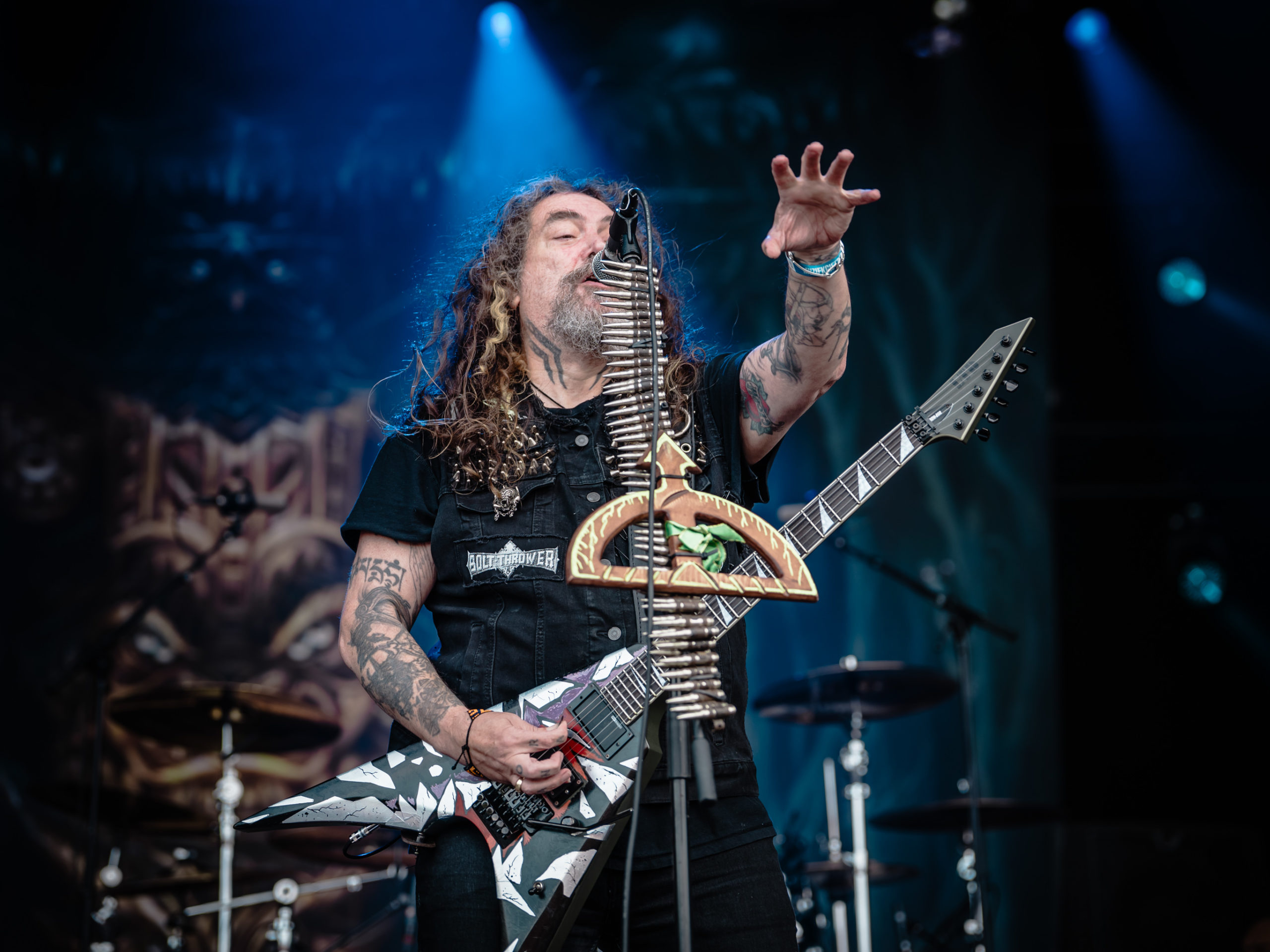 Ce samedi 7 juin, nous arrivons au South of Heaven Festival en début d’après-midi pour ne pas rater Legion of the Damned, valeur sûre du thrash européen, qui rencontrera quelques problèmes de soundcheck et montera sur les planches avec un peu moins de trente minutes de retard. Malgré le temps passé dessus, les problèmes techniques ne sont apparemment pas totalement résolus et le son se montrera capricieux pendant une bonne partie du concert. Ceci dit, cela n’empêche pas le public d’apprécier ce thrash blackisant aux riffs incisifs et rehaussé par le savoir-faire des Bataves, à la tête desquels l’imposant frontman Maurice Swinkels impressionne toujours.