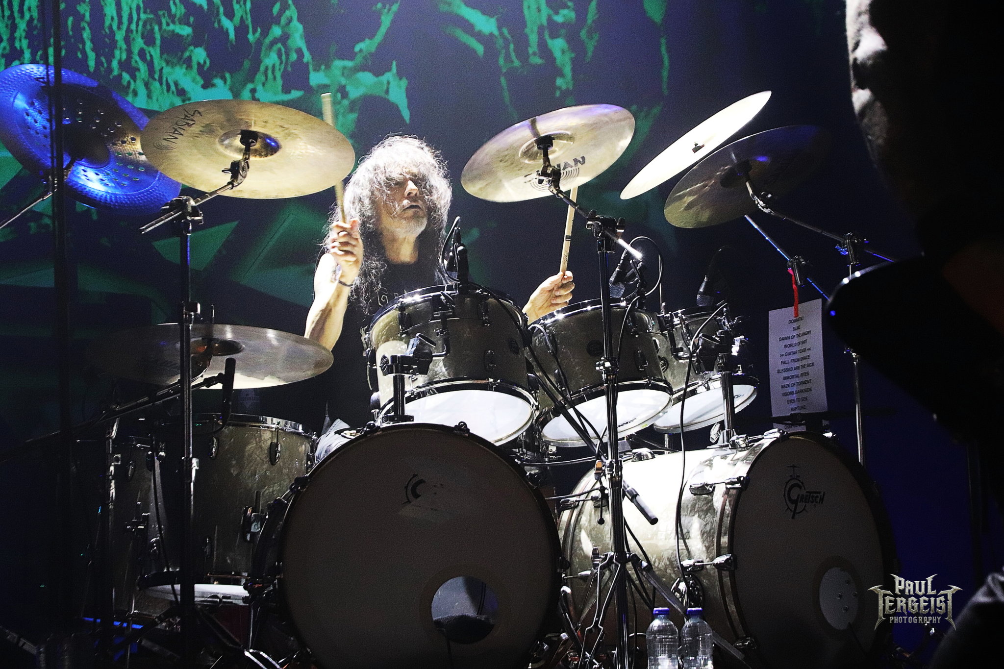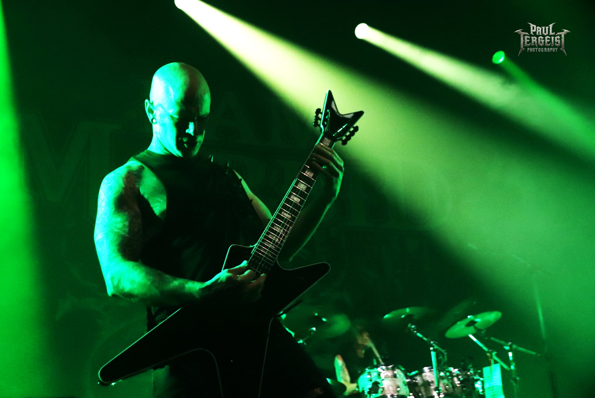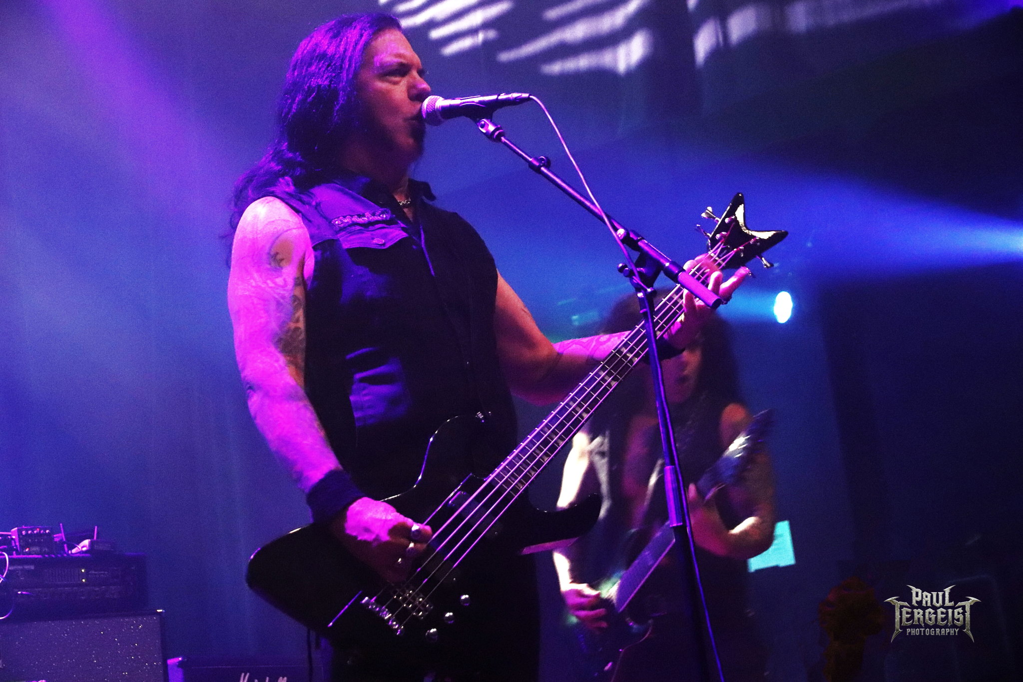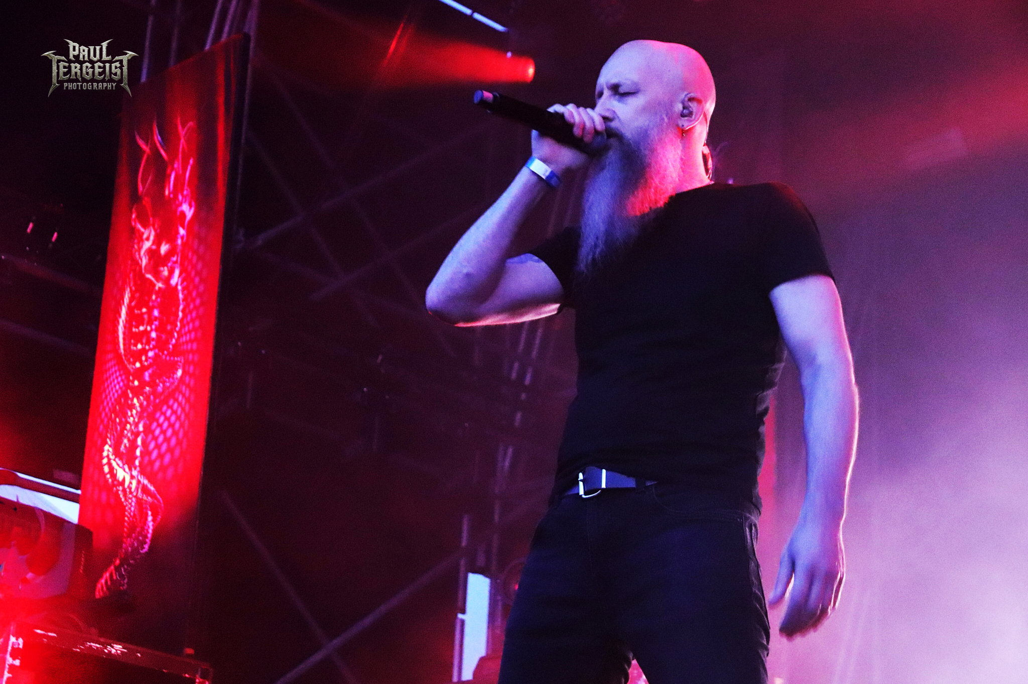 Cela étant, nous sommes surtout là pour I Am Morbid, drivé par David Vincent (ex-Morbid Angel), qui déclare donc, par le biais du patronyme donné à son groupe, qu’il est Morbid Angel. Dans les faits et au jour d’aujourd’hui, il n’a pas entièrement tort. La tournée actuelle d’I Am Morbid vise à célébrer les trente ans de l’album Domination de Morbid Angel. David avait la possibilité d’interpréter l’album dans son intégralité et d’offrir un petit best of de Morbid Angel en prime, ou de l’interpréter en bonne partie et de servir un gros best of par-dessus. C’est cette seconde option qui a été retenue, ce qui, finalement, n’est pas plus mal. Les extraits de Domination s’enchaînent d’abord sans temps morts : Dominate, Where the Slime Lives, Eyes to See, Ears to Hear, avant lequel David nous fait un petit speech en rapport avec la thématique abordée par ce titre, à savoir l’importance de penser par soi-même en fonction de ce que nous observons grâce à nos sens, puis digresse vers les dangers de l’IA et les diktats de l’industrie musicale et de la société visant à nous imposer nos goûts musicaux, pour conclure en déclarant que nous, les metalleux, sommes des « vrais » qui n’écoutons que nos préférences profondes et faisons vivre les œuvres des musiciens à travers le temps, les rendant éternelles. En résumé, un discours classique, à la fois juste et très cliché. Côté best of, citons, dans le désordre et de façon non exhaustive, Immortal Rites, Chapel of Ghouls, Blessed Are the Sick ou encore Rapture. Ainsi, vous l’aurez compris, hormis un léger accent mis sur Domination, nous avons eu droit à un bon concert de Morbid Angel, alors que les détenteurs légaux du patronyme errent quelque part dans les limbes depuis un bon bout de temps.