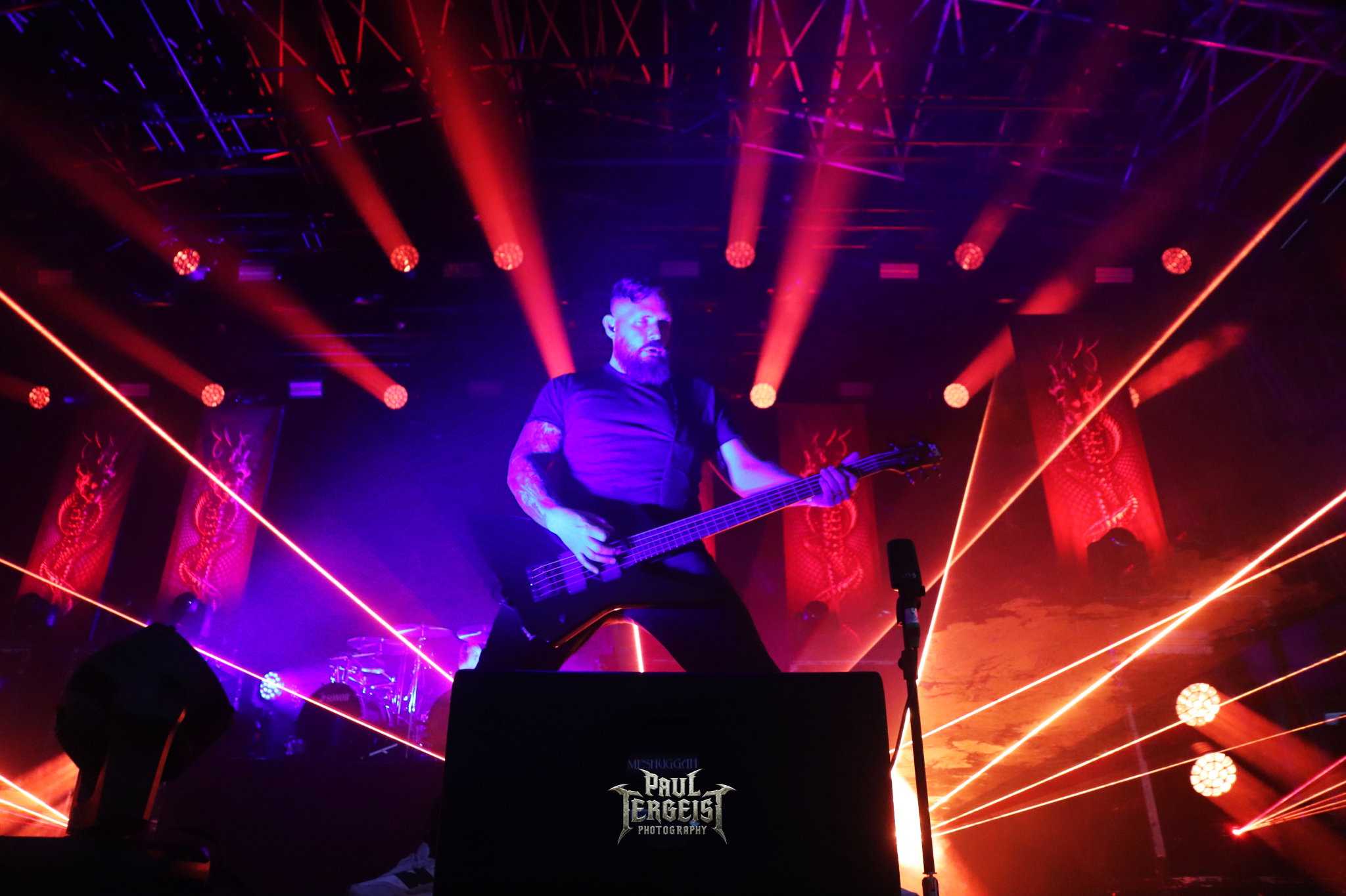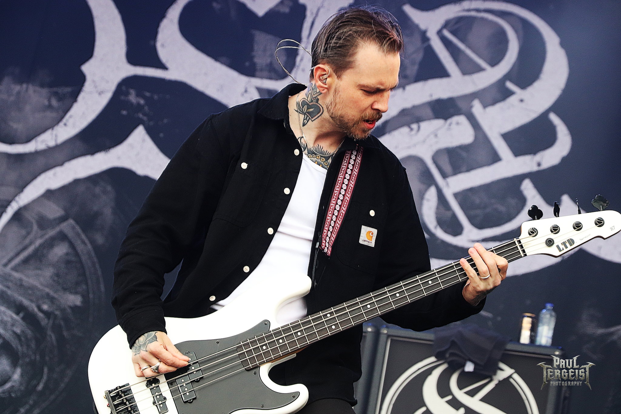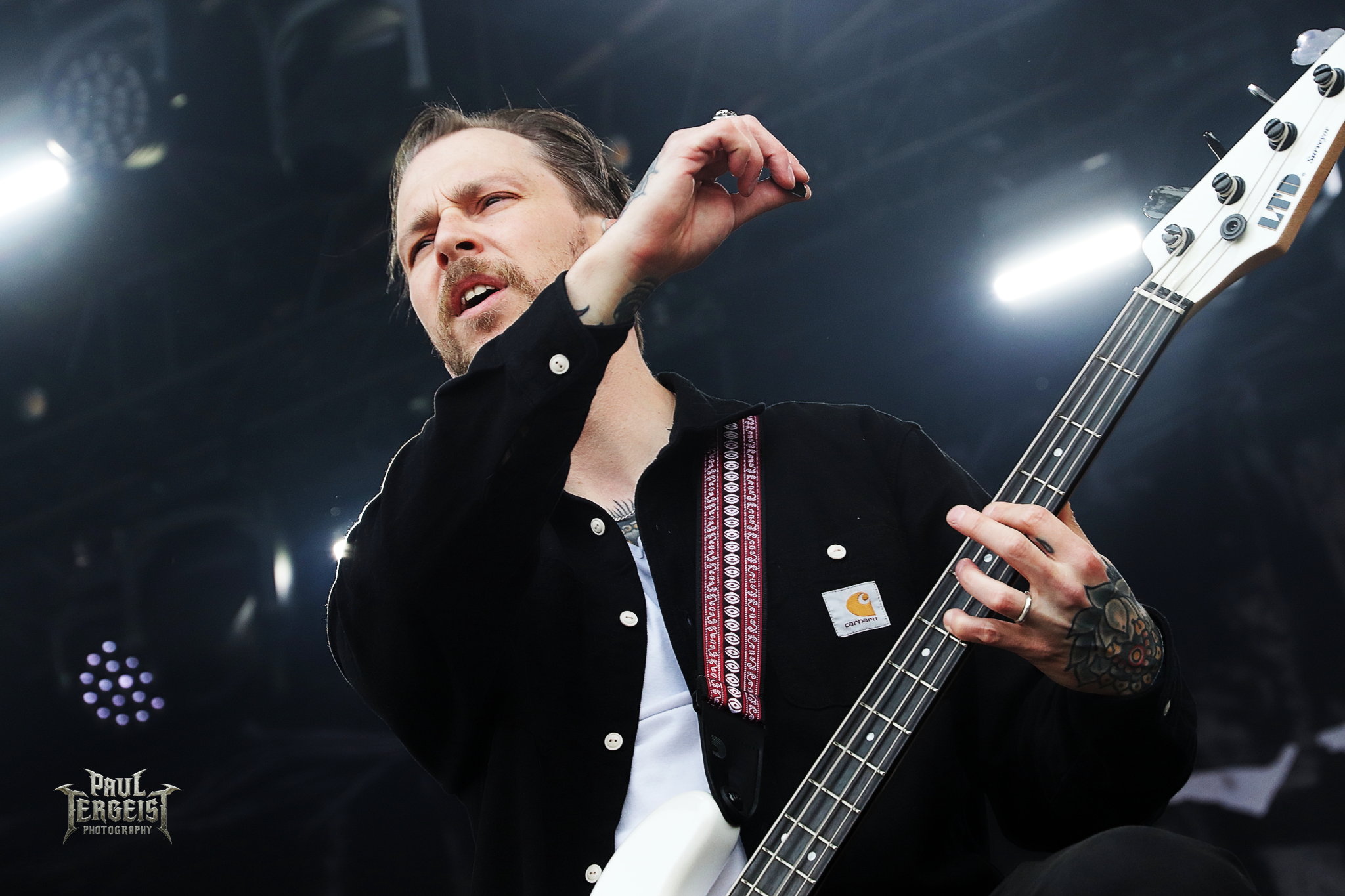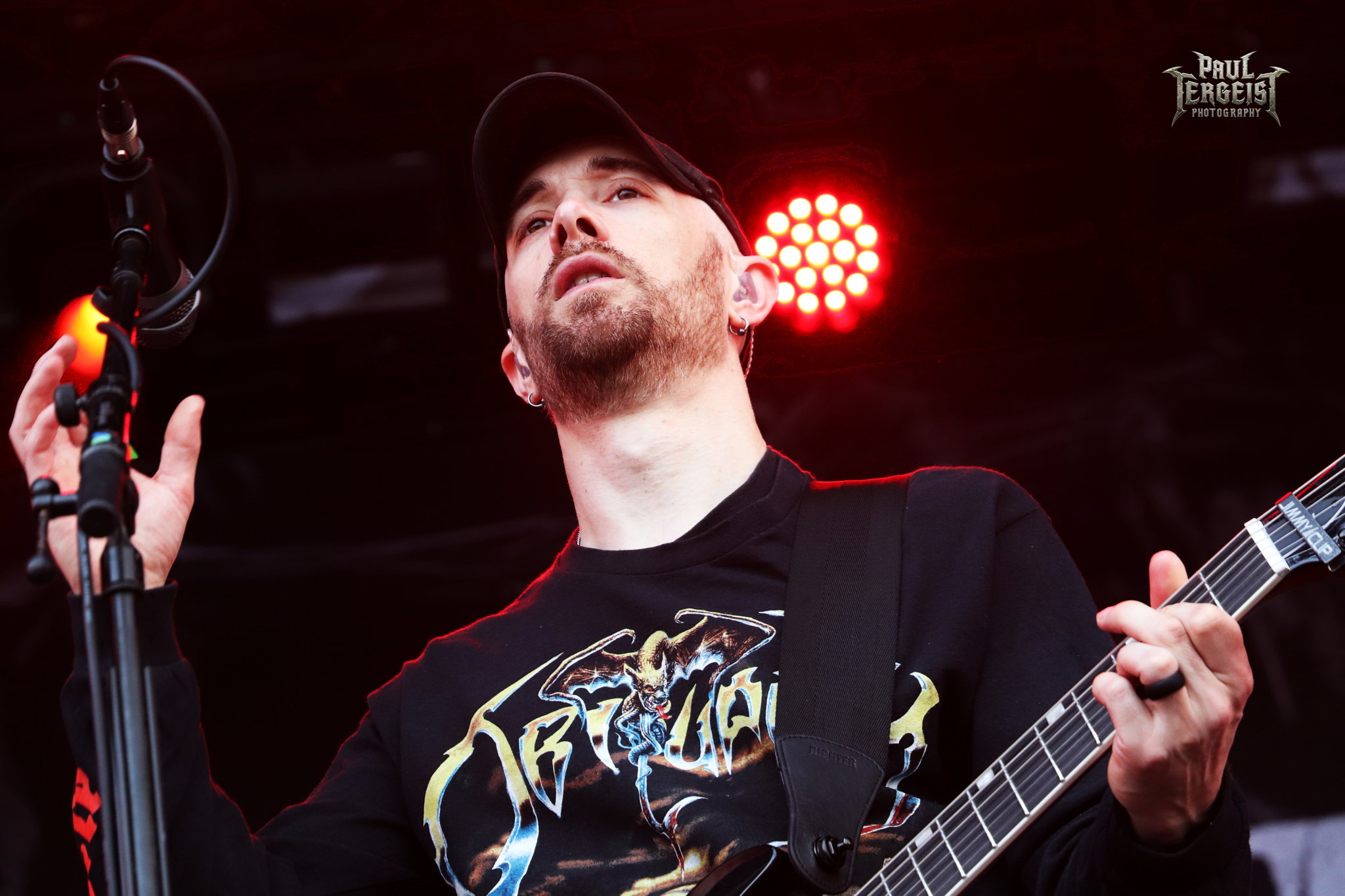 Pour Sylosis, le constat est à peu près identique : c’est solide, efficace, mais le style est différent et navigue entre death mélodique et metalcore. Josh Middleton (chant/guitare) nous sert de très bons solos et la mécanique de l’ensemble est bien huilée. Poison for the Lost est assez jumpy et propose encore un bon solo. Worship Decay se veut décalé, avec un riff plombé puis une brève accélération, un retour à la lourdeur puis une réaccélération. Un bel exemple de ce que propose le groupe en termes de construction de morceaux. Même si la recette est connue, tout réside dans le savoir-faire, et Sylosis n’en manque pas. Josh annonce un nouvel album pour 2026, avant de lancer le dernier titre. C’est parti sur un début en double lead, puis Josh balance un « one, two, three » ce sur quoi ça bastonne sur un phrasé hardcore, ça repart en lead avant le deuxième couplet à nouveau hardcore, puis vient une grosse accélération. Sylosis montre des talents de composition certains et déploie de belles aptitudes scéniques, acquises au fil des années.