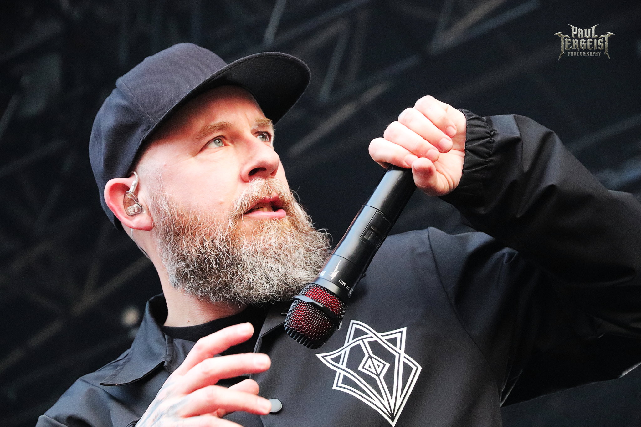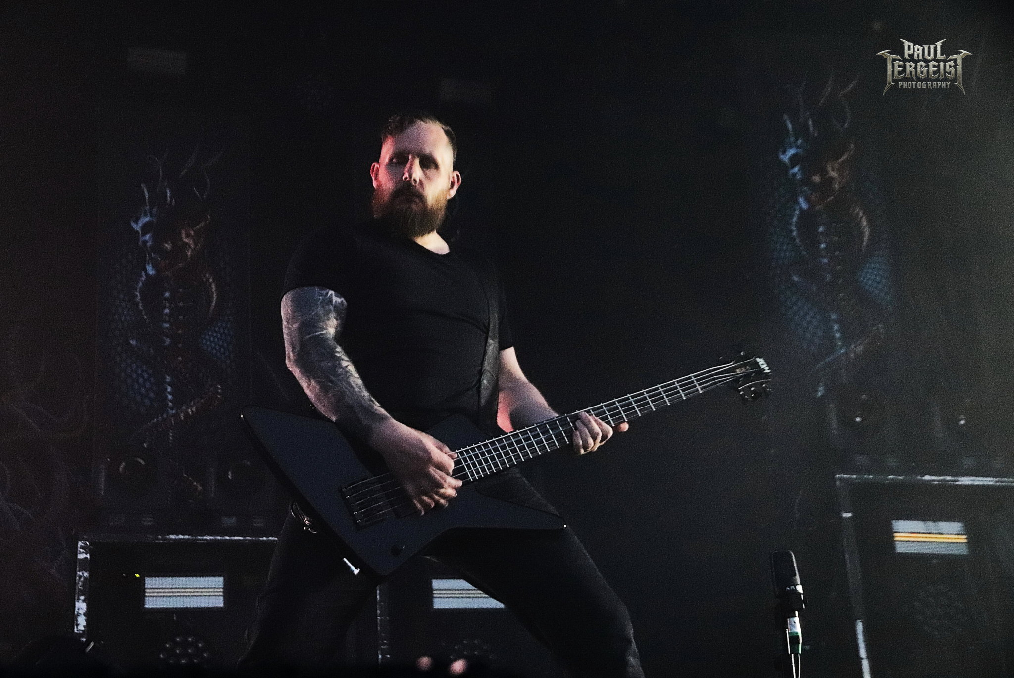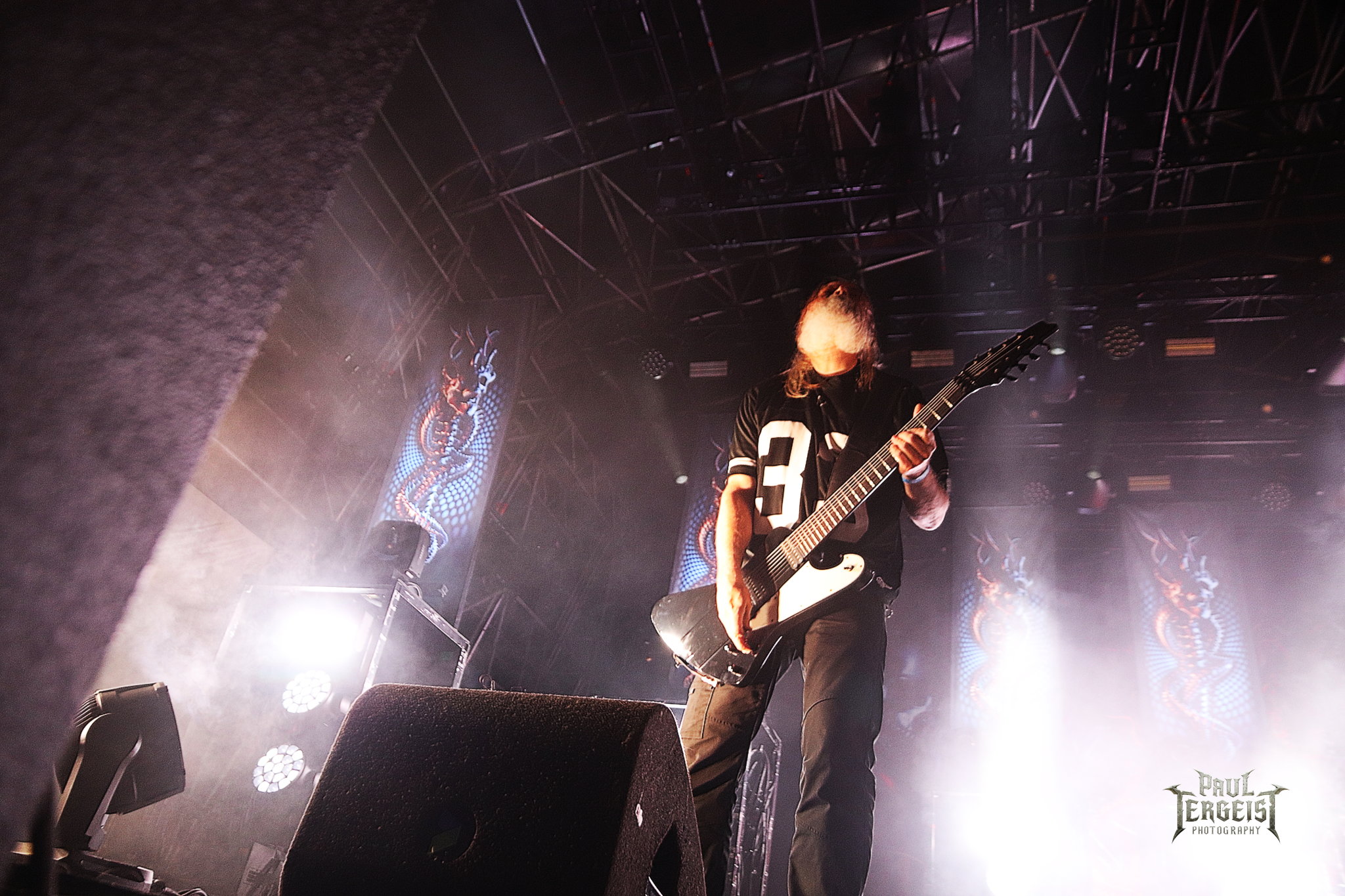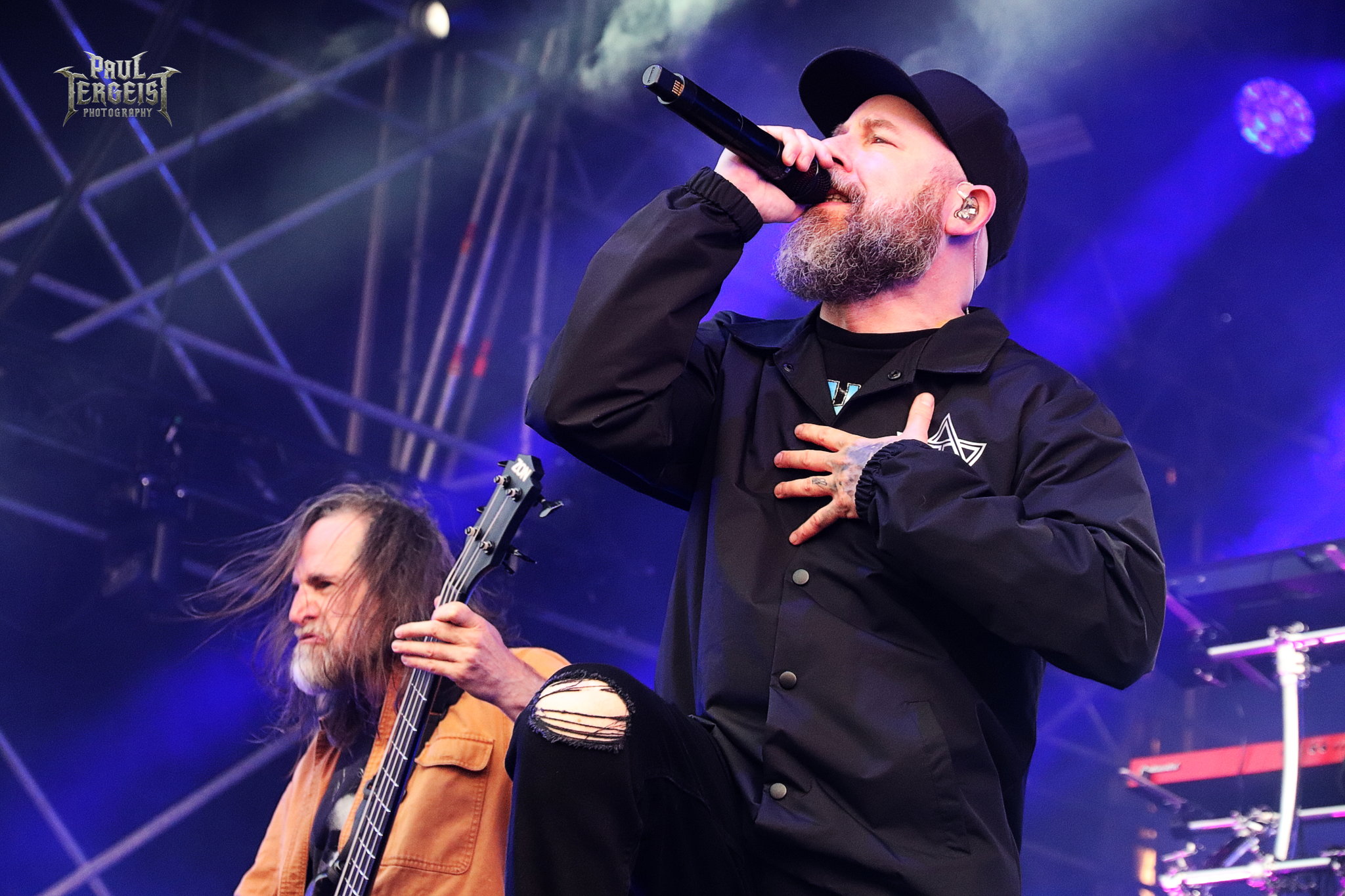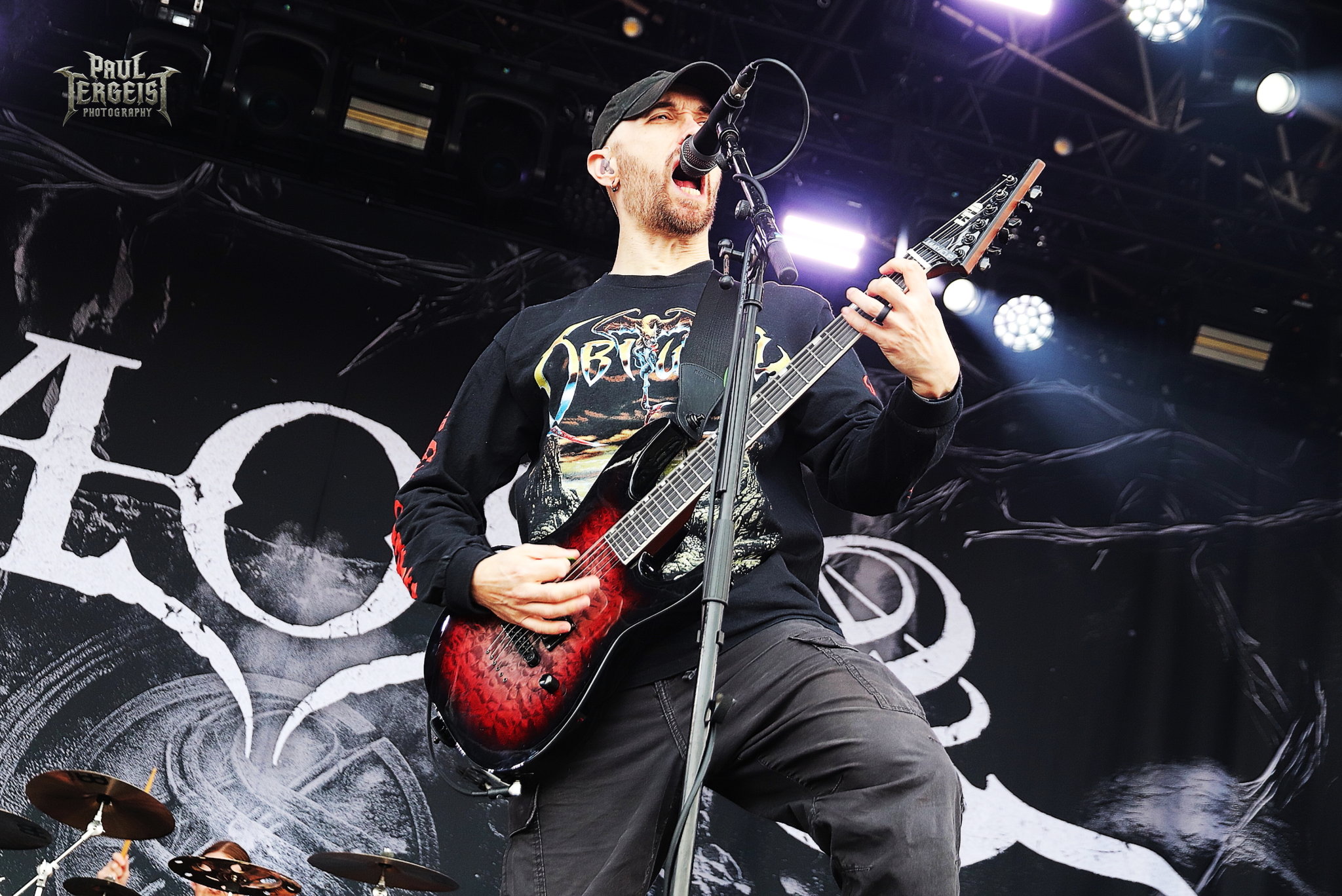 Pour Sylosis, le constat est à peu près identique : c’est solide, efficace, mais le style est différent et navigue entre death mélodique et metalcore. Josh Middleton (chant/guitare) nous sert de très bons solos et la mécanique de l’ensemble est bien huilée. Poison for the Lost est assez jumpy et propose encore un bon solo. Worship Decay se veut décalé, avec un riff plombé puis une brève accélération, un retour à la lourdeur puis une réaccélération. Un bel exemple de ce que propose le groupe en termes de construction de morceaux. Même si la recette est connue, tout réside dans le savoir-faire, et Sylosis n’en manque pas. Josh annonce un nouvel album pour 2026, avant de lancer le dernier titre. C’est parti sur un début en double lead, puis Josh balance un « one, two, three » ce sur quoi ça bastonne sur un phrasé hardcore, ça repart en lead avant le deuxième couplet à nouveau hardcore, puis vient une grosse accélération. Sylosis montre des talents de composition certains et déploie de belles aptitudes scéniques, acquises au fil des années.