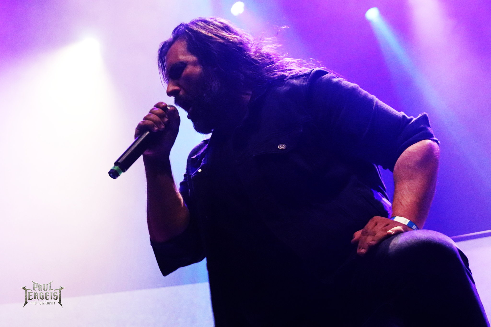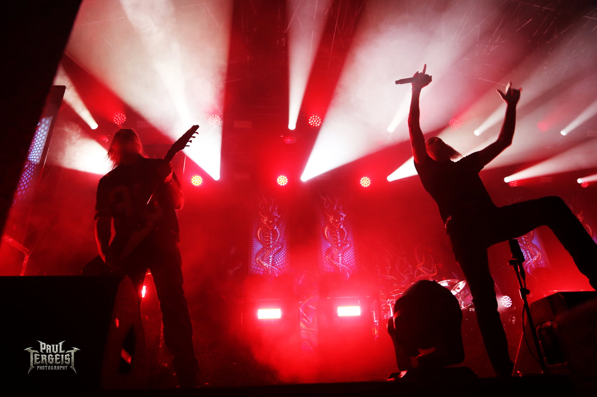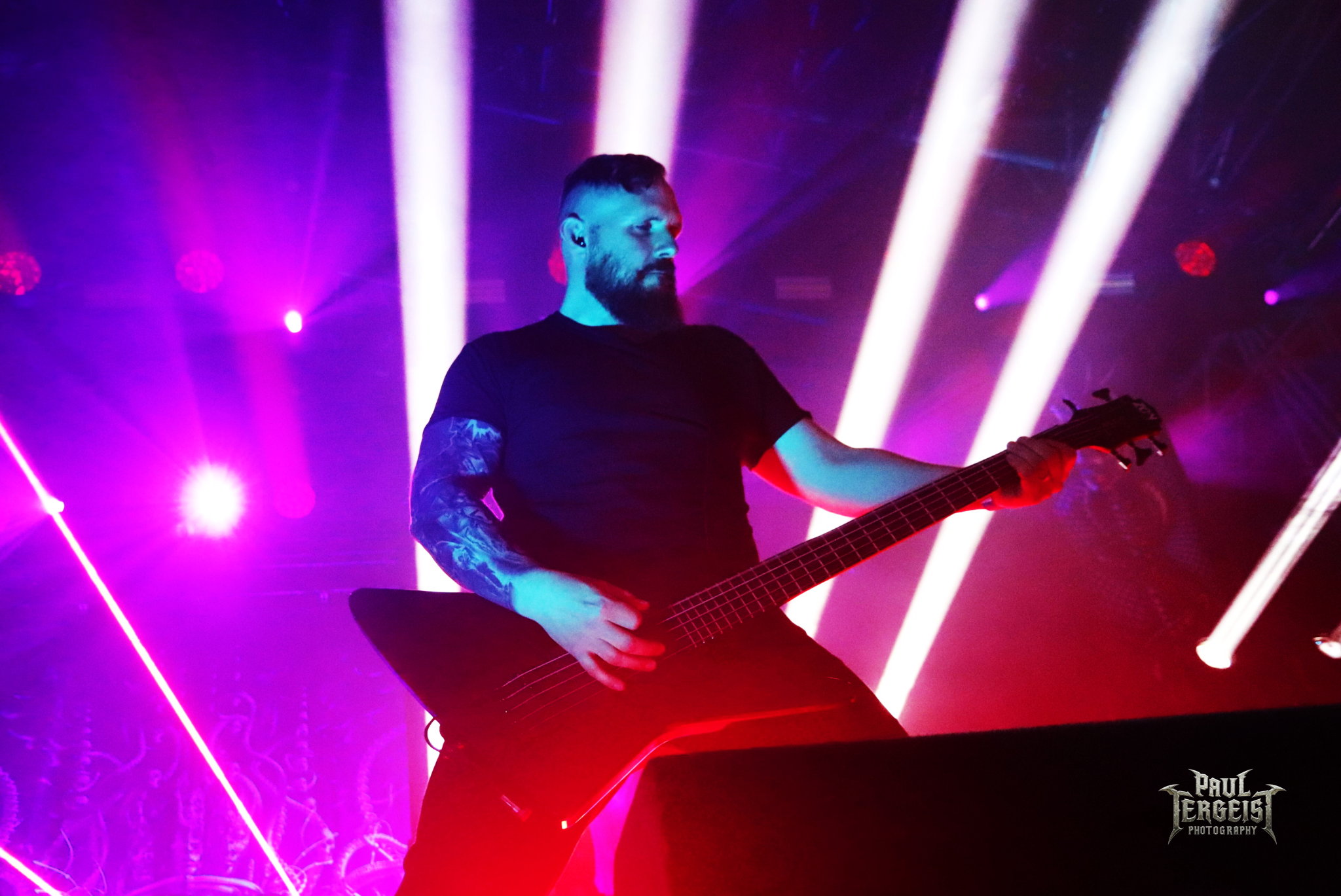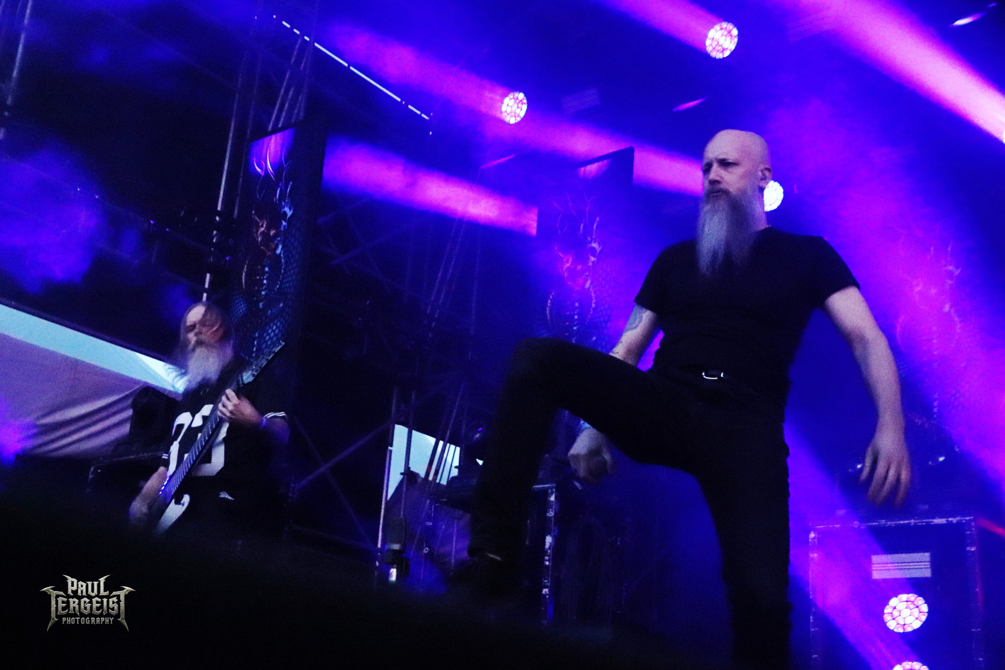 Pour Sylosis, le constat est à peu près identique : c’est solide, efficace, mais le style est différent et navigue entre death mélodique et metalcore. Josh Middleton (chant/guitare) nous sert de très bons solos et la mécanique de l’ensemble est bien huilée. Poison for the Lost est assez jumpy et propose encore un bon solo. Worship Decay se veut décalé, avec un riff plombé puis une brève accélération, un retour à la lourdeur puis une réaccélération. Un bel exemple de ce que propose le groupe en termes de construction de morceaux. Même si la recette est connue, tout réside dans le savoir-faire, et Sylosis n’en manque pas. Josh annonce un nouvel album pour 2026, avant de lancer le dernier titre. C’est parti sur un début en double lead, puis Josh balance un « one, two, three » ce sur quoi ça bastonne sur un phrasé hardcore, ça repart en lead avant le deuxième couplet à nouveau hardcore, puis vient une grosse accélération. Sylosis montre des talents de composition certains et déploie de belles aptitudes scéniques, acquises au fil des années.