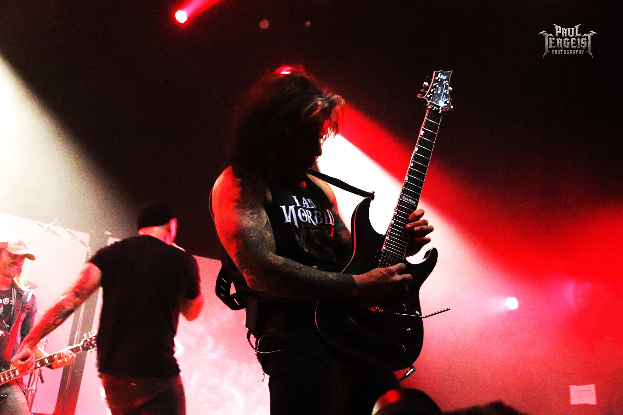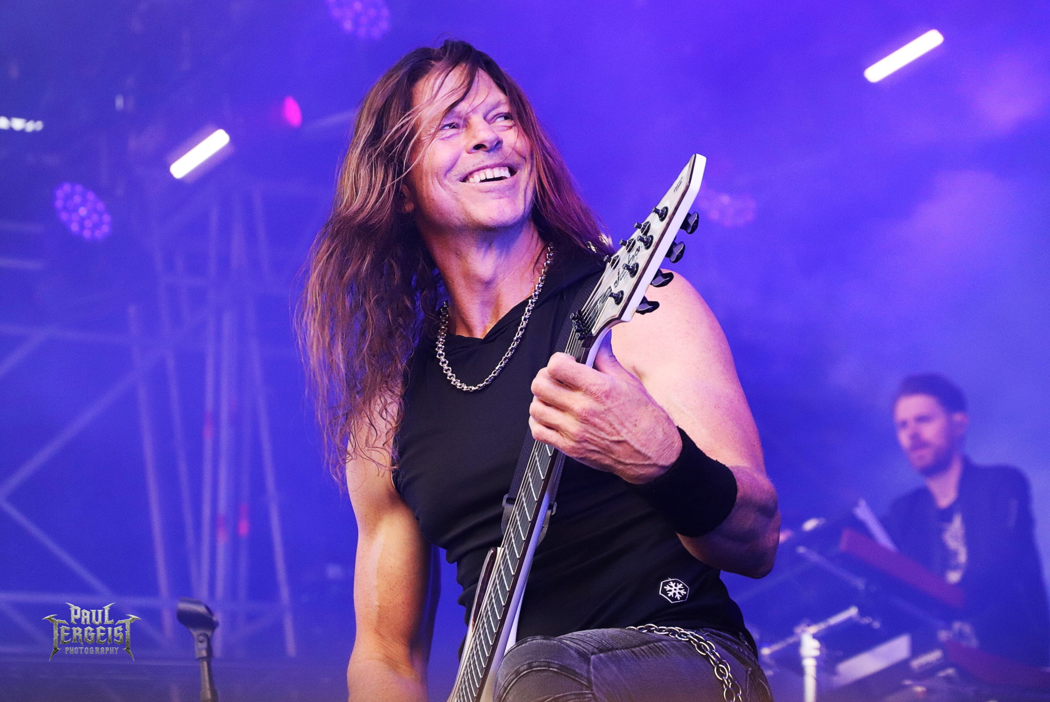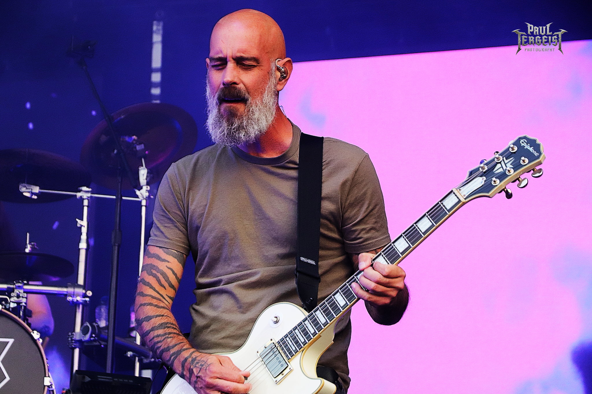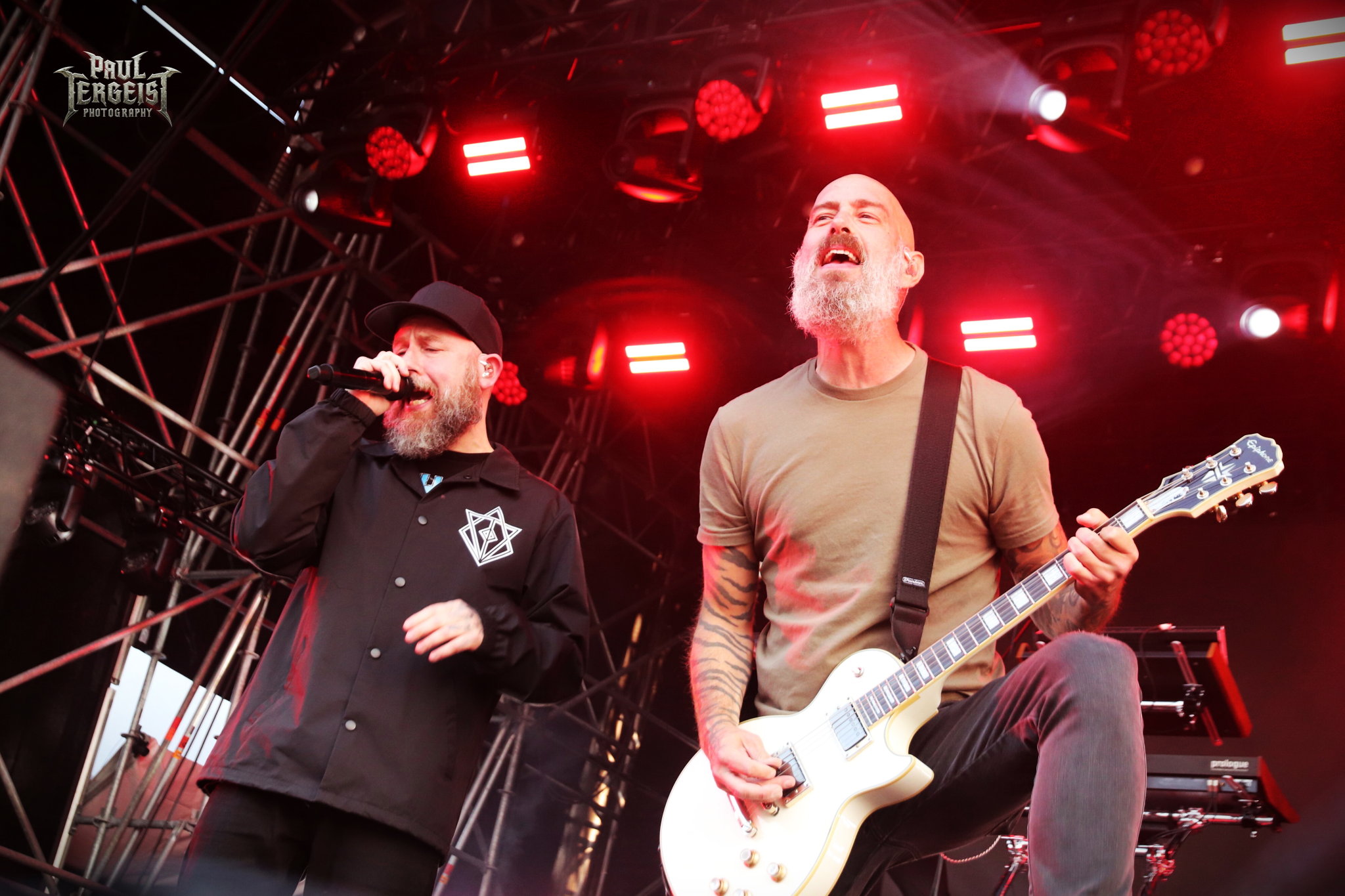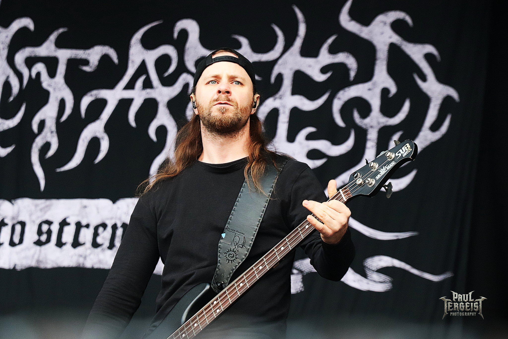 Pour Sylosis, le constat est à peu près identique : c’est solide, efficace, mais le style est différent et navigue entre death mélodique et metalcore. Josh Middleton (chant/guitare) nous sert de très bons solos et la mécanique de l’ensemble est bien huilée. Poison for the Lost est assez jumpy et propose encore un bon solo. Worship Decay se veut décalé, avec un riff plombé puis une brève accélération, un retour à la lourdeur puis une réaccélération. Un bel exemple de ce que propose le groupe en termes de construction de morceaux. Même si la recette est connue, tout réside dans le savoir-faire, et Sylosis n’en manque pas. Josh annonce un nouvel album pour 2026, avant de lancer le dernier titre. C’est parti sur un début en double lead, puis Josh balance un « one, two, three » ce sur quoi ça bastonne sur un phrasé hardcore, ça repart en lead avant le deuxième couplet à nouveau hardcore, puis vient une grosse accélération. Sylosis montre des talents de composition certains et déploie de belles aptitudes scéniques, acquises au fil des années.