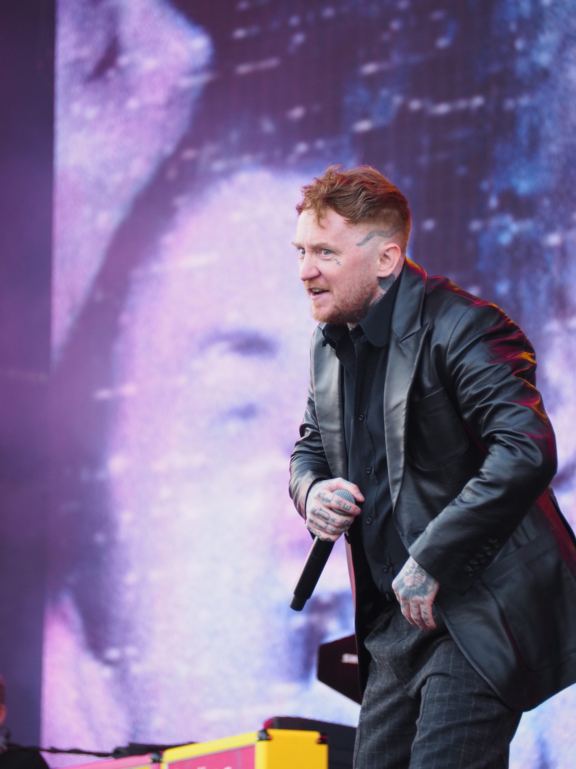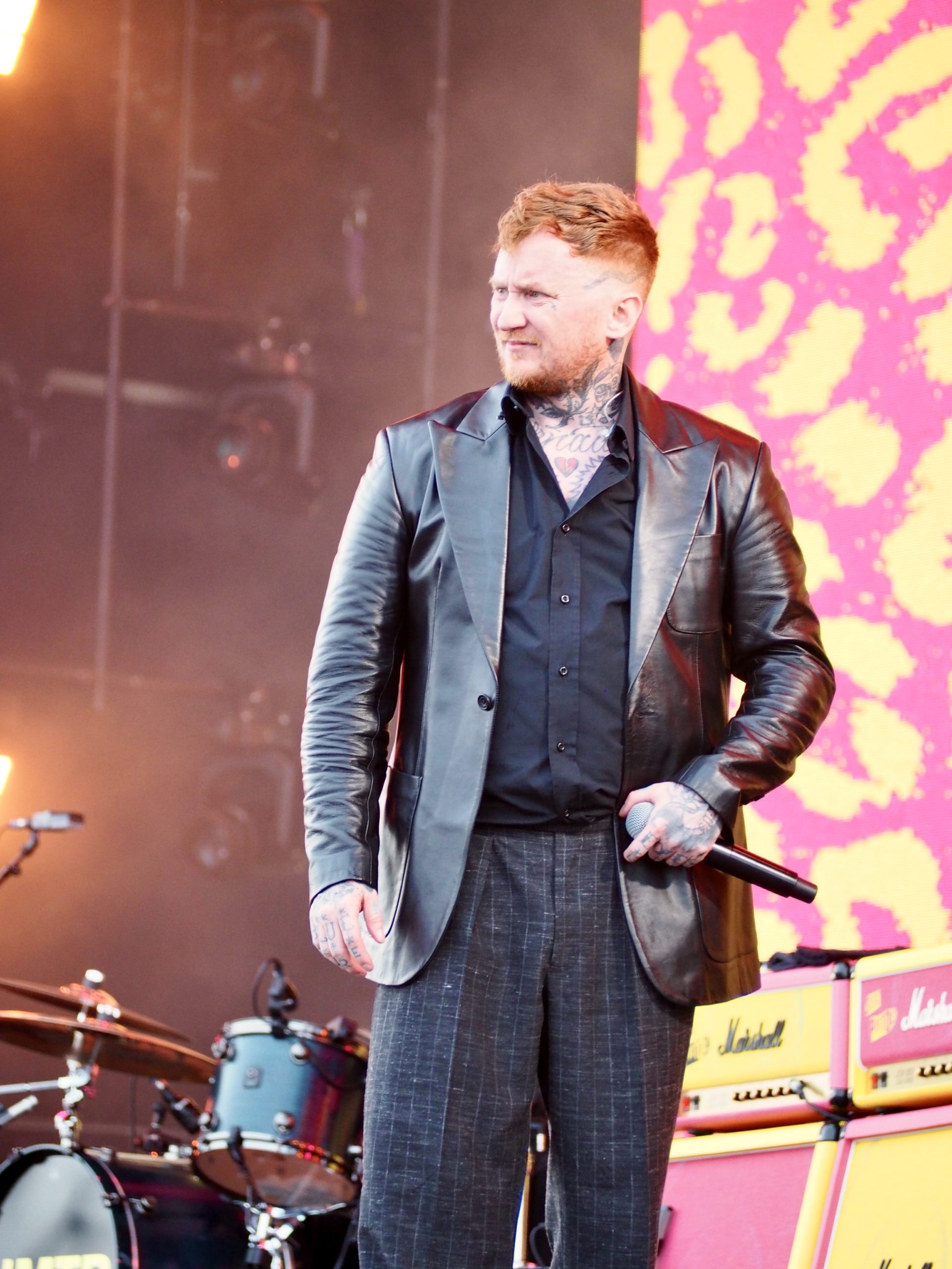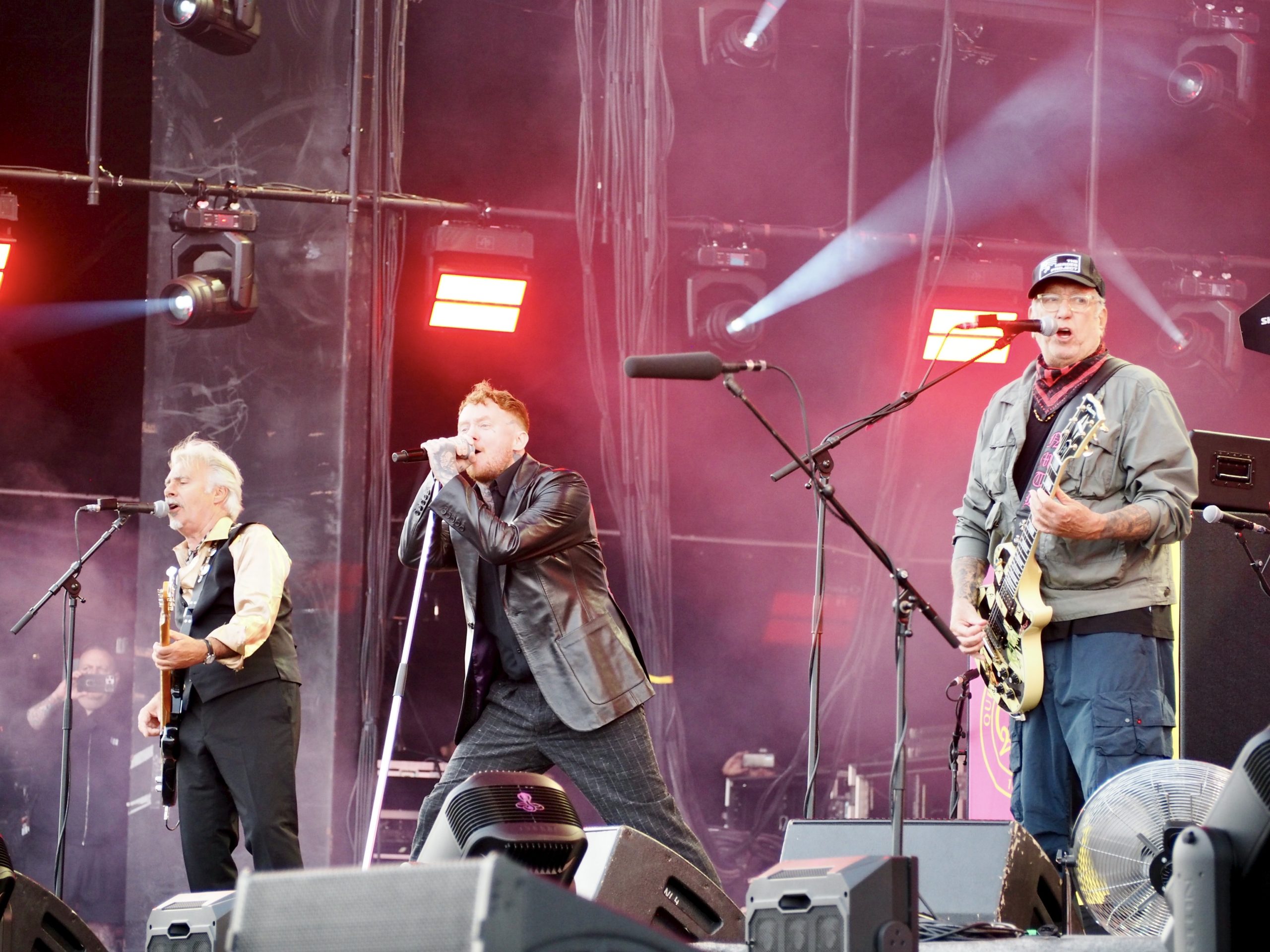 Prochaine destination : la Festival Stage, pour un concert aussi improbable qu’attendu : celui des Sex Pistols (UK), version 2025, avec Frank Carter au micro. Honnêtement, j’y vais par curiosité, sans grande conviction ni attendre grand-chose de la prestation des punks anglais, persuadé que deux morceaux me suffiront. Je ne suis visiblement pas le seul dans ce cas, une foule compacte se pressant devant la scène. L’ambiance est électrique ! On sent une forme d’excitation collective. Une marée humaine acclame l’arrivée du groupe avec une ferveur inattendue, à mi-chemin entre nostalgie sincère et curiosité. Dès la première minute, Frank Carter balaie tous les doutes. Il déboule sur scène avec une énergie démente, harangue la foule, bondit partout, et attaque Holidays in the Sun comme s’il jouait sa vie. Le public ne se fait pas prier : ça saute, ça hurle, ça danse… L’écran géant en fond de scène diffuse des images d’archives, souvenirs de la grande époque des Pistols. Les trois membres originaux sont là, droits dans leurs bottes, et redonnent vie à leurs hymnes sans chercher à moderniser quoi que ce soit — et qui n’en a de toute façon pas besoin. Les morceaux tiennent toujours la route, bruts et provocateurs, comme des pavés lancés dans les vitrines du bon goût. Le punk a encore des choses à dire — ou à crier ! Frank Carter, lui, s’éclate. Il est clairement honoré de tenir ce rôle, et ça se voit. Il joue à fond la carte de l’humour et de la provoc’ avec des phrases balancées au public dans un style mi-arrogant, mi-taquin : « On sait que c’est un festival rock, c’est pour ça que j’ai mis ma veste en cuir ! », ou encore, pince-sans-rire : « La prochaine chanson est une chanson punk ». Il n’imite pas Johnny Rotten, mais en capture l’esprit, l’irrévérence, la rage et la dégaine. Comme pour faire tomber le quatrième mur une bonne fois pour toutes, il ne lui faut que quatre morceaux avant de sauter dans la foule pour chanter Pretty Vacant au milieu du public. Le moment est dingue : c’est sale, c’est joyeux, c’est vivant. De retour sur scène, le groupe enchaîne sans temps mort avec le reste de son unique album, Never Mind the Bollocks, qu’il joue en intégralité (sauf Submission). Le public, chauffé à blanc, connaît chaque parole et chaque riff. Tout au long du set, l’énergie ne faiblit pas, bien au contraire. En bonus, deux reprises viennent ponctuer le set : No Fun des Stooges, hurlée avec une joie destructrice, puis le cultissime My Way, présenté par Frank Carter comme « le slow de la setlist ». Il faut bien avouer que cette version, à mi-chemin entre la provocation et l’hommage déglingué, fonctionne à merveille. Comme vous l’aurez compris, pris dans la folie du moment, je suis resté jusqu’à la fin de ce show terriblement efficace, happé par l’énergie brute et la jubilation collective. Et que dire de la fin ! Une apothéose en bonne et due forme avec un Anarchy in the UK d’anthologie, repris en chœur par une foule en transe, poings levés, dans un chaos parfaitement orchestré. En somme, un final à la hauteur de la légende. Qui aurait cru que, près de cinquante ans après leur explosion initiale, les Sex Pistols — même sans Rotten — réussiraient encore à mettre le feu comme ça ? Contre toute attente, ce concert que je pensais fuir restera comme l’un des plus marquants de la journée.