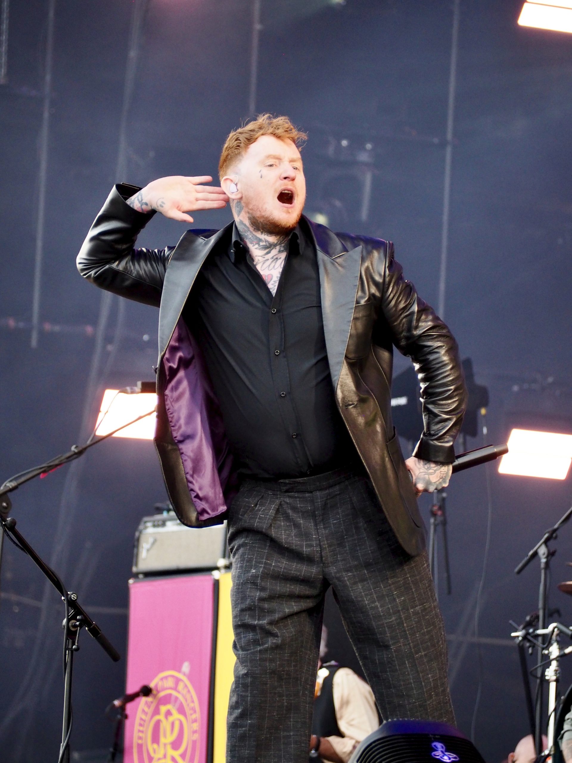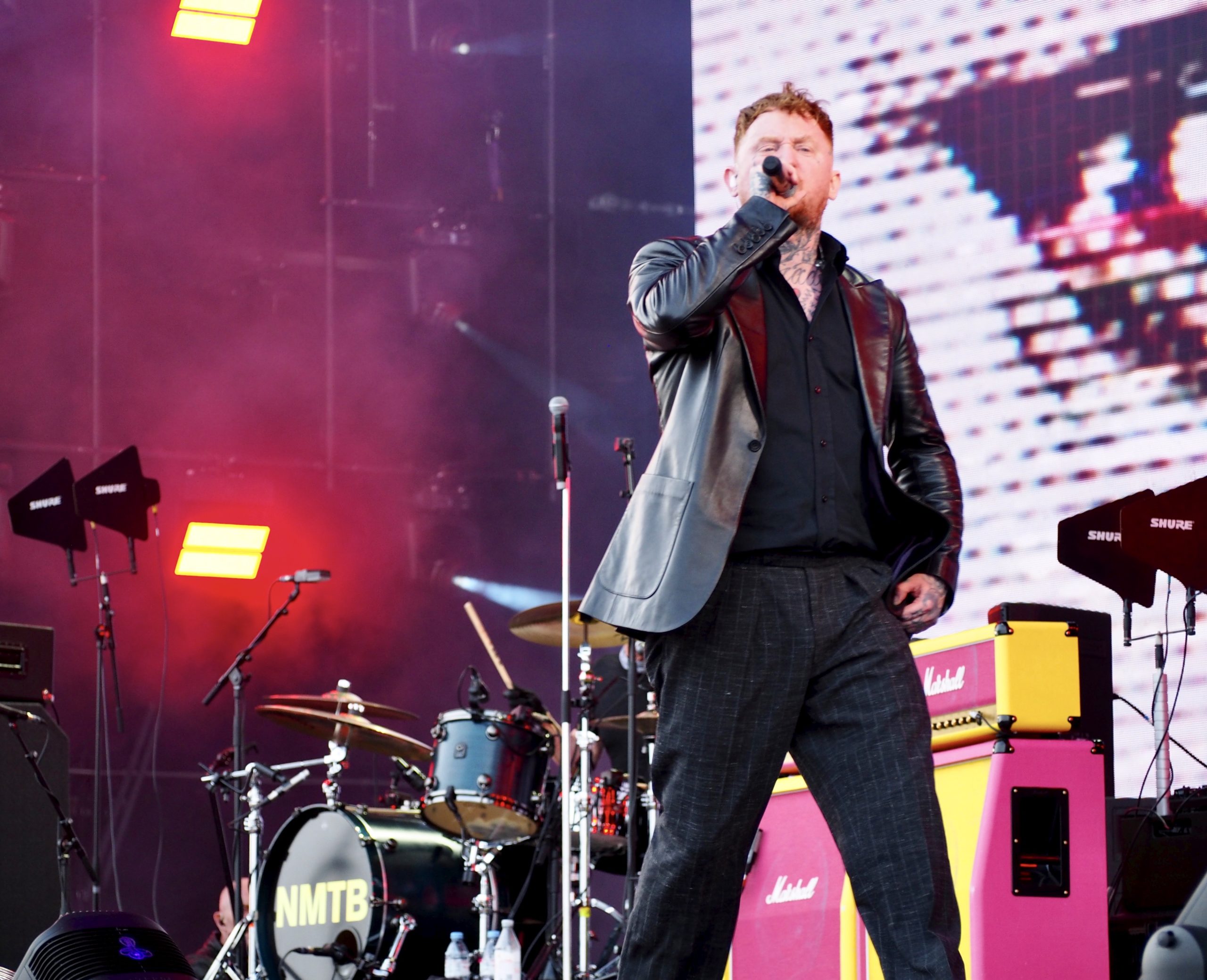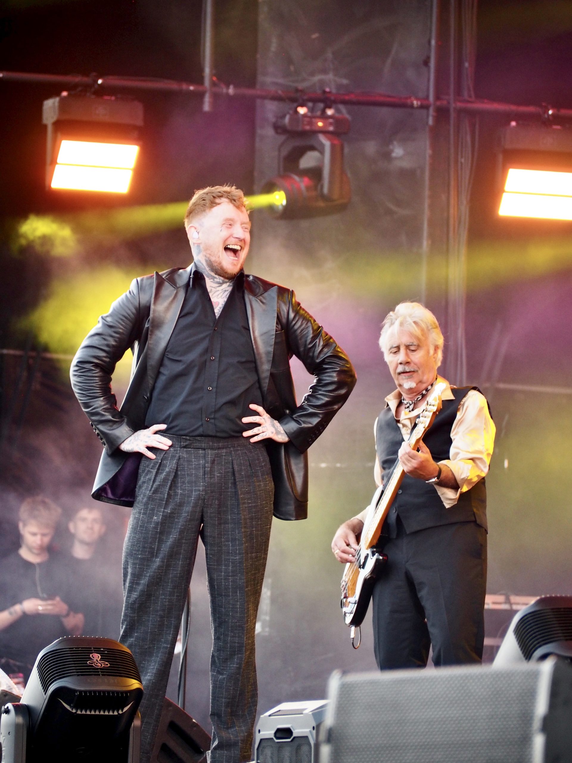 Prochaine destination : la Festival Stage, pour un concert aussi improbable qu’attendu : celui des Sex Pistols (UK), version 2025, avec Frank Carter au micro. Honnêtement, j’y vais par curiosité, sans grande conviction ni attendre grand-chose de la prestation des punks anglais, persuadé que deux morceaux me suffiront. Je ne suis visiblement pas le seul dans ce cas, une foule compacte se pressant devant la scène. L’ambiance est électrique ! On sent une forme d’excitation collective. Une marée humaine acclame l’arrivée du groupe avec une ferveur inattendue, à mi-chemin entre nostalgie sincère et curiosité. Dès la première minute, Frank Carter balaie tous les doutes. Il déboule sur scène avec une énergie démente, harangue la foule, bondit partout, et attaque Holidays in the Sun comme s’il jouait sa vie. Le public ne se fait pas prier : ça saute, ça hurle, ça danse… L’écran géant en fond de scène diffuse des images d’archives, souvenirs de la grande époque des Pistols. Les trois membres originaux sont là, droits dans leurs bottes, et redonnent vie à leurs hymnes sans chercher à moderniser quoi que ce soit — et qui n’en a de toute façon pas besoin. Les morceaux tiennent toujours la route, bruts et provocateurs, comme des pavés lancés dans les vitrines du bon goût. Le punk a encore des choses à dire — ou à crier ! Frank Carter, lui, s’éclate. Il est clairement honoré de tenir ce rôle, et ça se voit. Il joue à fond la carte de l’humour et de la provoc’ avec des phrases balancées au public dans un style mi-arrogant, mi-taquin : « On sait que c’est un festival rock, c’est pour ça que j’ai mis ma veste en cuir ! », ou encore, pince-sans-rire : « La prochaine chanson est une chanson punk ». Il n’imite pas Johnny Rotten, mais en capture l’esprit, l’irrévérence, la rage et la dégaine. Comme pour faire tomber le quatrième mur une bonne fois pour toutes, il ne lui faut que quatre morceaux avant de sauter dans la foule pour chanter Pretty Vacant au milieu du public. Le moment est dingue : c’est sale, c’est joyeux, c’est vivant. De retour sur scène, le groupe enchaîne sans temps mort avec le reste de son unique album, Never Mind the Bollocks, qu’il joue en intégralité (sauf Submission). Le public, chauffé à blanc, connaît chaque parole et chaque riff. Tout au long du set, l’énergie ne faiblit pas, bien au contraire. En bonus, deux reprises viennent ponctuer le set : No Fun des Stooges, hurlée avec une joie destructrice, puis le cultissime My Way, présenté par Frank Carter comme « le slow de la setlist ». Il faut bien avouer que cette version, à mi-chemin entre la provocation et l’hommage déglingué, fonctionne à merveille. Comme vous l’aurez compris, pris dans la folie du moment, je suis resté jusqu’à la fin de ce show terriblement efficace, happé par l’énergie brute et la jubilation collective. Et que dire de la fin ! Une apothéose en bonne et due forme avec un Anarchy in the UK d’anthologie, repris en chœur par une foule en transe, poings levés, dans un chaos parfaitement orchestré. En somme, un final à la hauteur de la légende. Qui aurait cru que, près de cinquante ans après leur explosion initiale, les Sex Pistols — même sans Rotten — réussiraient encore à mettre le feu comme ça ? Contre toute attente, ce concert que je pensais fuir restera comme l’un des plus marquants de la journée.