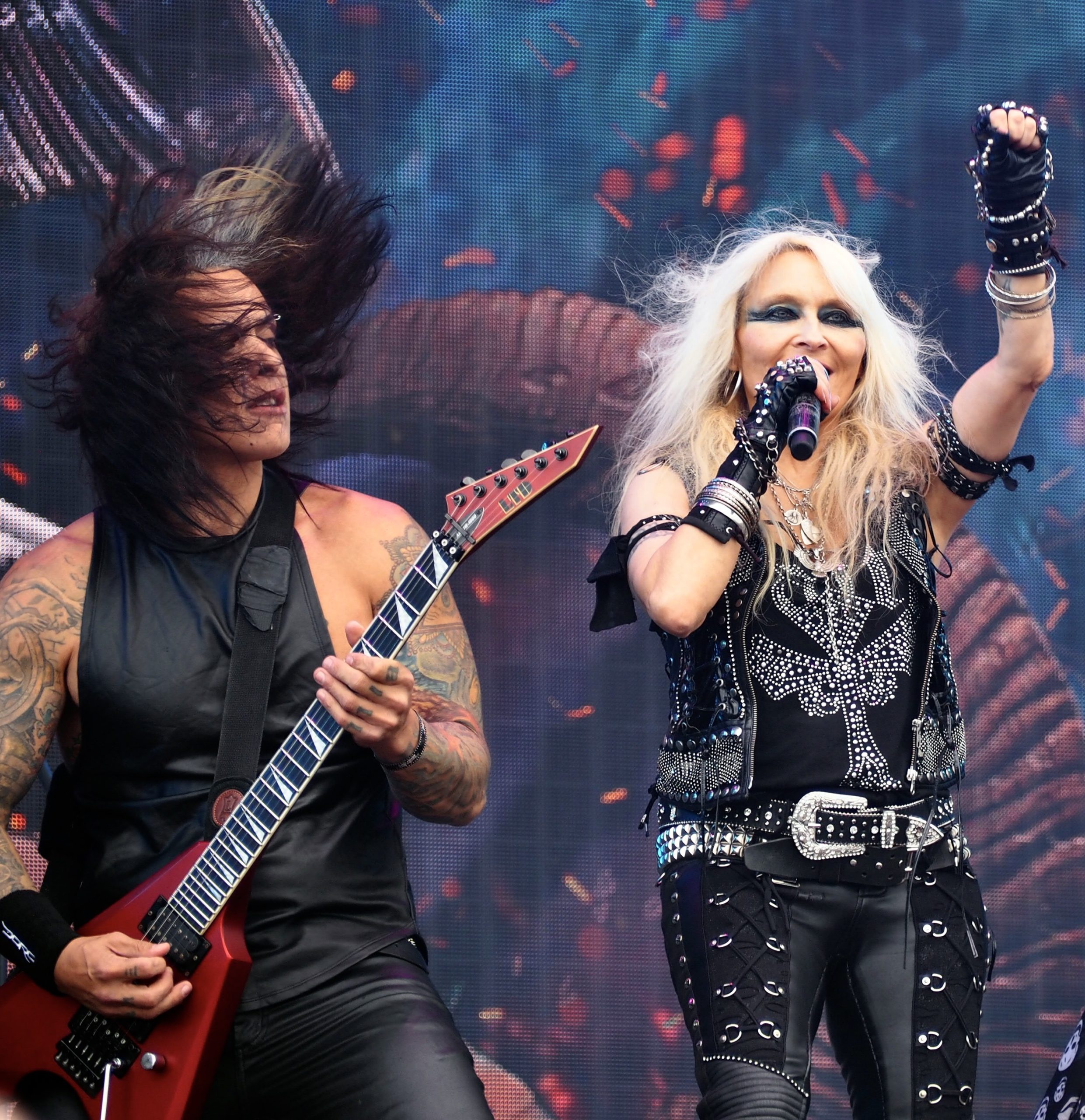 Mesdames et messieurs, la reine du heavy metal, Doro (DE) ! C’est sur cette annonce triomphale que Doro fait son entrée, attaquant bille en tête avec un Time for Justice musclé. D’entrée de jeu, l’Allemande prouve qu’elle est, plus que jamais, la reine incontestée du genre. Forte de plus de quarante ans de carrière, elle livre un show aussi professionnel que passionné, porté par une énergie communicative et une sincérité désarmante. Vêtue de cuir, arborant son éternel sourire, elle arpente la scène avec la même fougue qu’à ses débuts. Sa voix puissante et râpeuse, reconnaissable entre mille, déchire l’air à chaque refrain repris en chœur par un public composé en large majorité de fans de la première heure. Les titres s’enchaînent, mêlant extraits de son dernier album et classiques de Warlock : I Rule the Ruins, Burning the Witches, et bien sûr un All We Are fédérateur, scandé par la foule comme l’hymne qu’il est devenu. Le groupe qui l’accompagne est irréprochable : carré, soudé, parfaitement au service de la frontwoman qu’il soutient sans jamais l’éclipser — même si l’on ne peut s’empêcher de remarquer le musculeux Bill Hudson, posté à gauche de la scène, qui malmène sa guitare avec une intensité contagieuse. Entre les morceaux, Doro prend le temps de remercier le public, visiblement satisfaite et touchée par l’accueil chaleureux que lui réserve le Sweden Rock. Elle offre ensuite à la foule sa propre revisite de Breaking the Law de Judas Priest ; un moment fédérateur que l’audience reprend à tue-tête. Un concert à l’image de Doro elle-même : indomptable, authentique, et toujours profondément metal, malgré les années qui passent mais semblent décidément glisser sur elle sans laisser de trace.