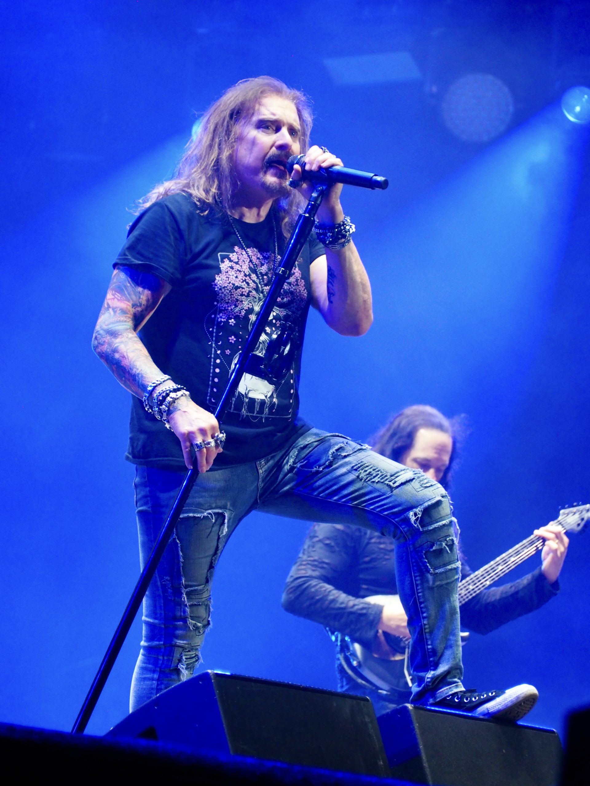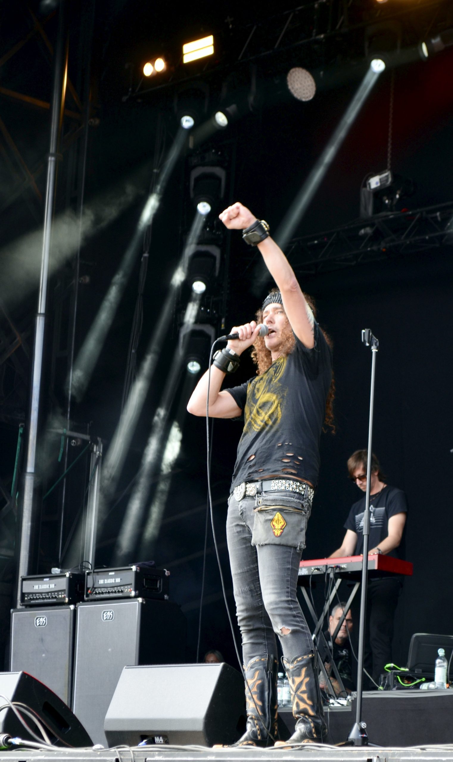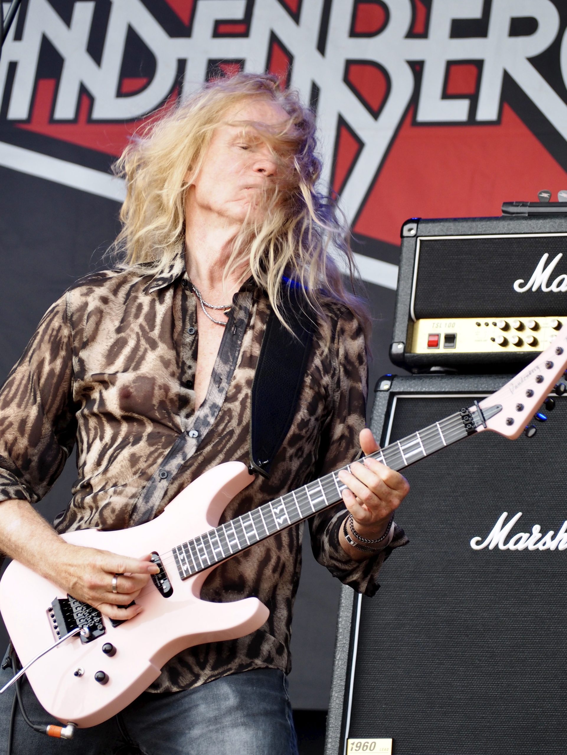 Premier concert de ce deuxième jour du festival : Vandenberg (NL), avec un set intitulé My Whitesnake Years. En d’autres termes, un show qui fait délibérément l’impasse sur la discographie du groupe Vandenberg pour se concentrer sur les tubes du Serpent Blanc dont Adrian Vandenberg fut guitariste sur Slip of the Tongue et Restless Heart (et dans une moindre mesure sur 1978), ainsi que sur scène pendant les années fastes de Whitesnake. La setlist est une véritable compilation de classiques que le public, venu en masse, connaît par cœur. Difficile de résister à des hymnes comme Bad Boys, Slide It In, Fool for Your Loving ou encore au superbe Sailing Ships, interprété en duo par Adrian et Mats Levén. Et que dire de l’émotion palpable sur Is This Love, ballade hard rock par excellence, toujours aussi bouleversante. Le talent de guitariste du Néerlandais n’est plus à prouver ! Ceci dit, il faut également saluer la qualité du groupe qu’il a réuni autour de lui. Ensemble, les musiciens parviennent à recréer la magie de la grande époque, avec une mention spéciale au chanteur suédois Mats Levén. Sans chercher à imiter David Coverdale, il en restitue le grain si particulier et l’intensité émotionnelle, avec un naturel déconcertant.