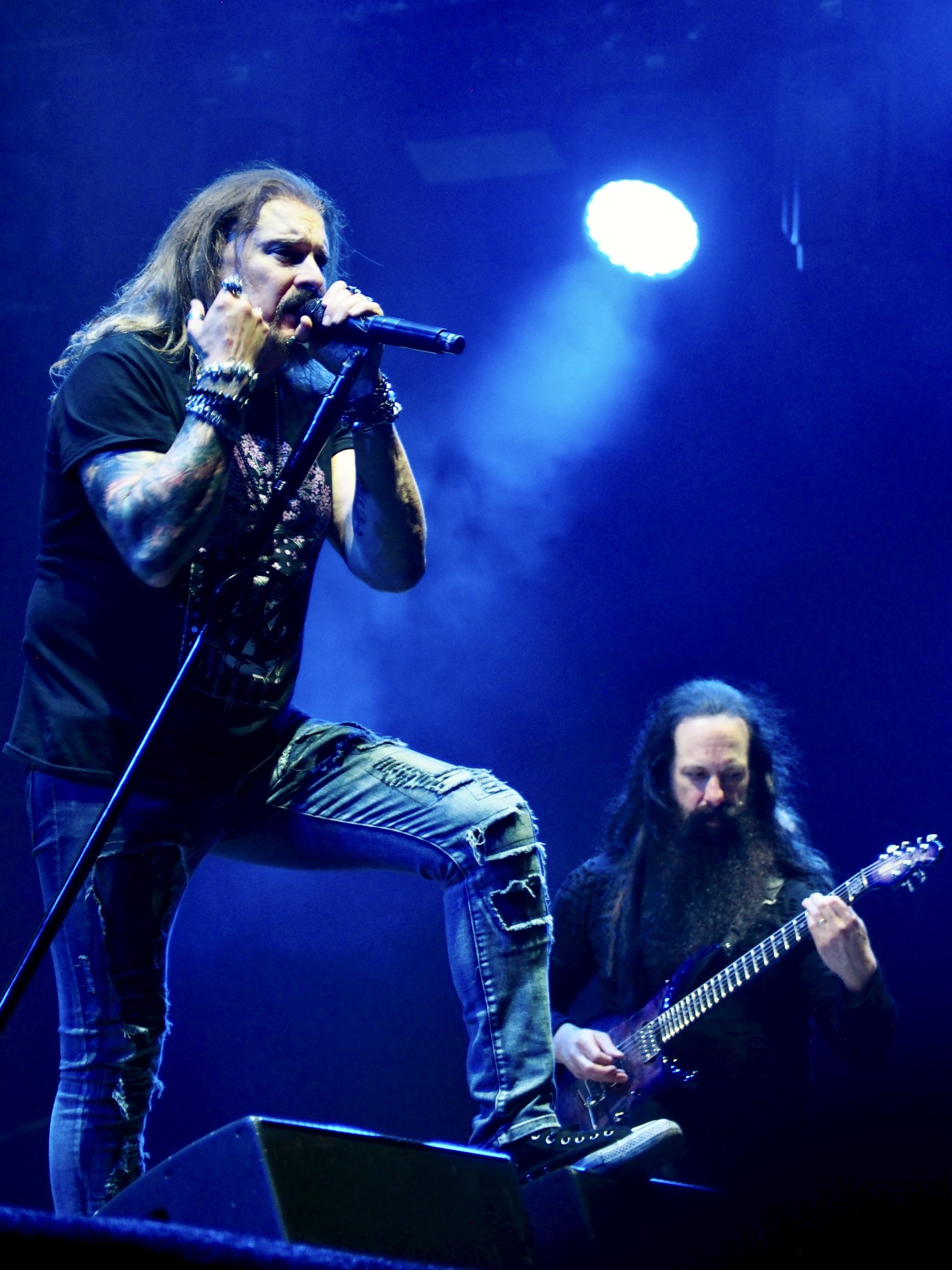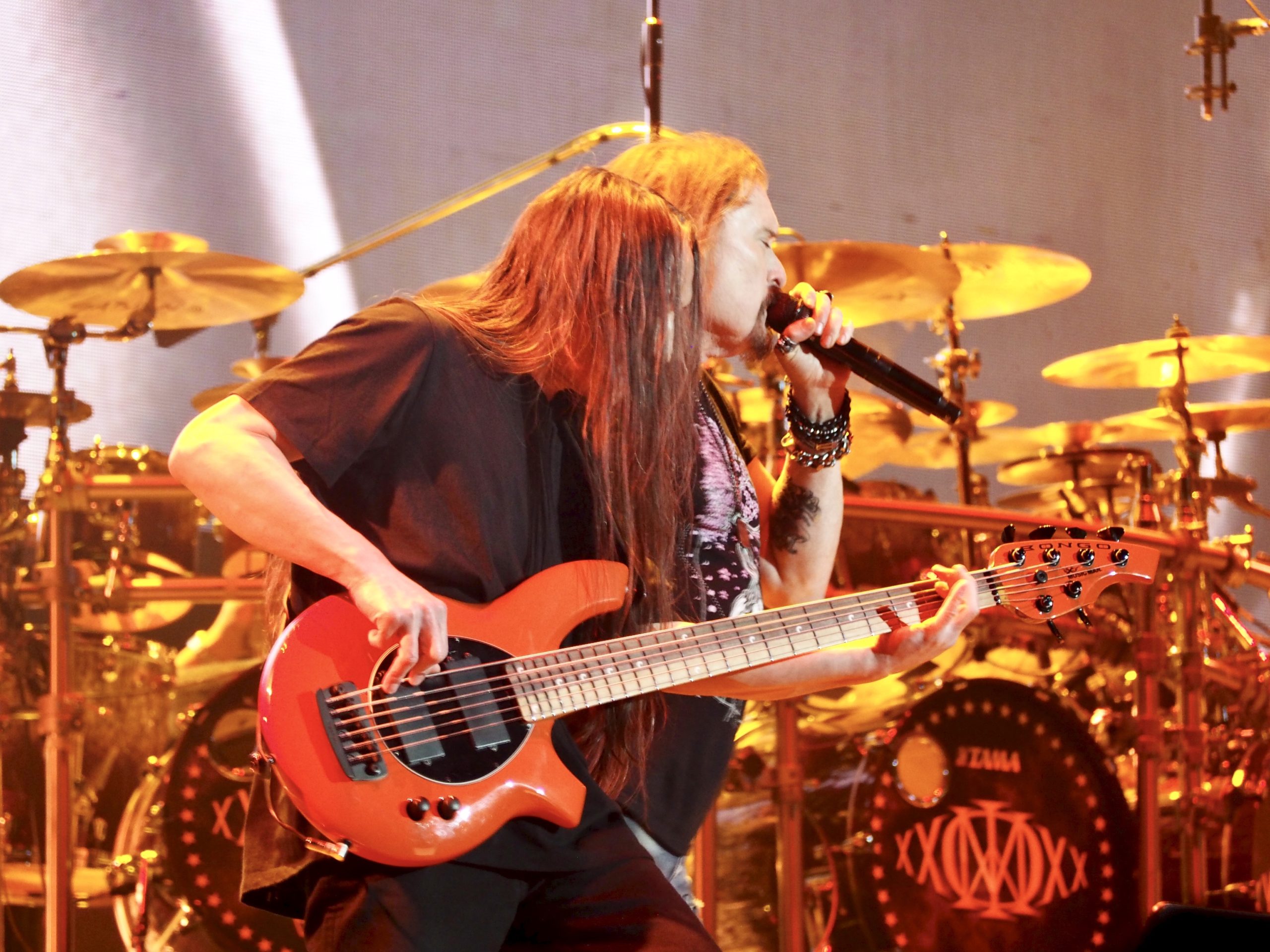 Le dernier concert de la journée — et un passage obligé pour moi — est celui de Dream Theater (US). J’ai une longue histoire d’amour avec ce groupe, que j’ai adoré dès ses débuts et jusqu’à son quatrième album. À cette époque, Dream Theater parvenait à trouver un équilibre rare entre virtuosité instrumentale et émotion sincère. Néanmoins, au fil des années, cette balance s’est peu à peu rompue, les musiciens semblant s’enfermer dans une quête effrénée de la complexité, souvent au détriment de la chaleur et de la spontanéité. Le retour de Mike Portnoy, cœur rythmique de la première ère du groupe, a ravivé chez moi de grandes attentes… peut-être un peu trop. Honnêtement, le show m’a laissé en partie déçu. Pas par la technique, toujours irréprochable, ni même par James LaBrie, qui livre une prestation honorable malgré quelques difficultés dans les aigus — ainsi qu’une chute sur un câble mal fixé dès les premières minutes du show, qui visiblement le met de mauvaise humeur pour le reste du concert. Plutôt par un set trop froid, trop chirurgical. La flamme qui brûlait sur scène dans les années 90 semble vaciller, remplacée par une précision très, voire trop clinique. Le plaisir de revoir Mike Portnoy derrière les fûts est bien réel, et l’interprétation de Pull Me Under m’a arraché un frisson de nostalgie. Malheureusement, cela ne suffit pas à masquer une impression d’automatisme : on assiste à une démonstration plus qu’à un partage. La virtuosité est là, incontestable, mais manque d’âme ; en résulte un concert où l’on admire plus qu’on ne vibre. Les musiciens paraissent figés, presque absents. John Myung reste imperturbable, rivé à son iPad, sans esquisser le moindre mouvement. John Petrucci semble concentré uniquement sur l’exécution. Seul Jordan Rudess tente parfois de briser la glace en s’avançant sur le devant de la scène, mais l’ensemble manque cruellement de vie. Le concert est propre et maîtrisé, mais donne davantage à voir un groupe au passé glorieux qu’un groupe vivant et habité. En résumé, une belle mécanique, sans véritable souffle ni âme.