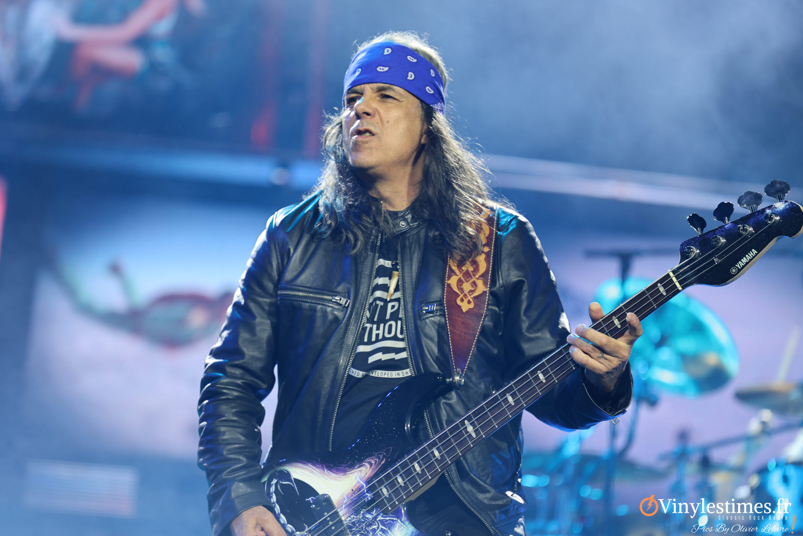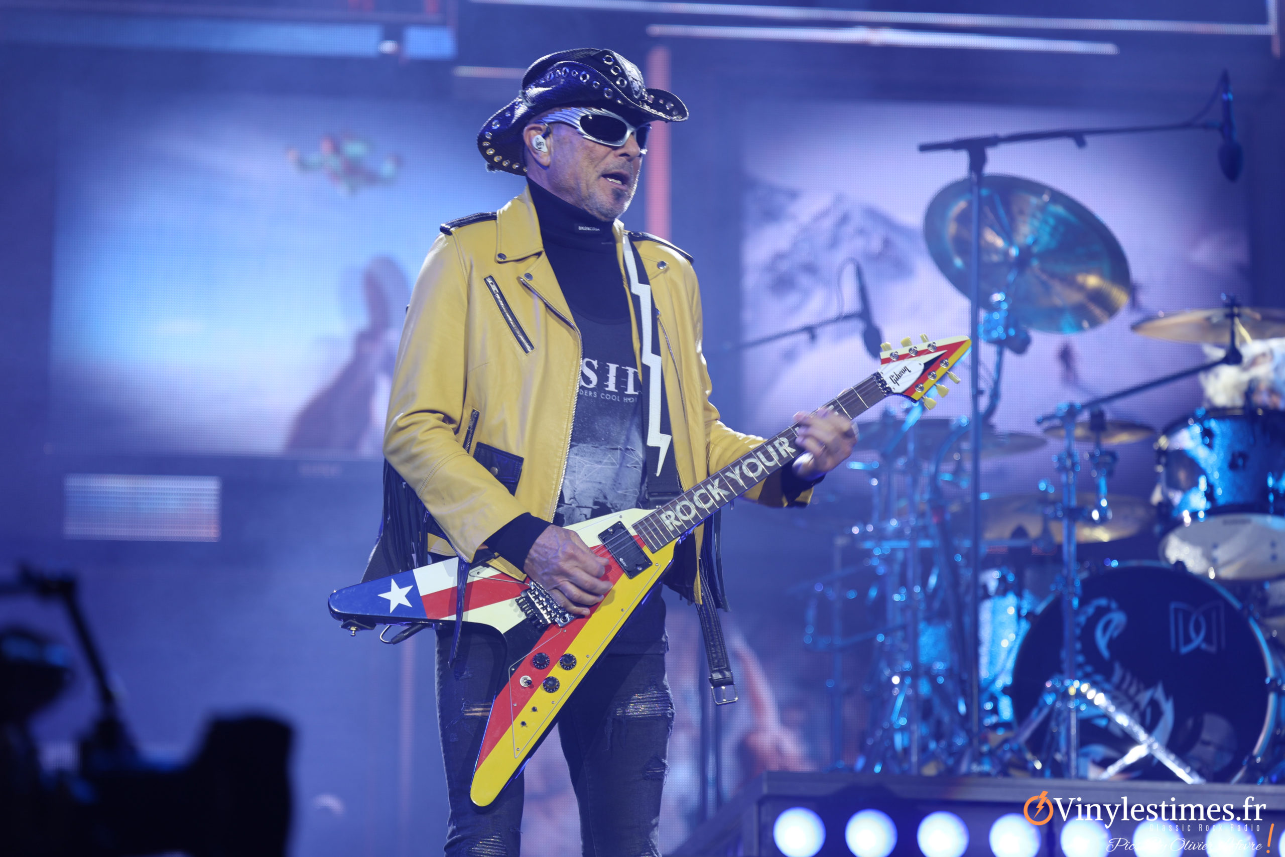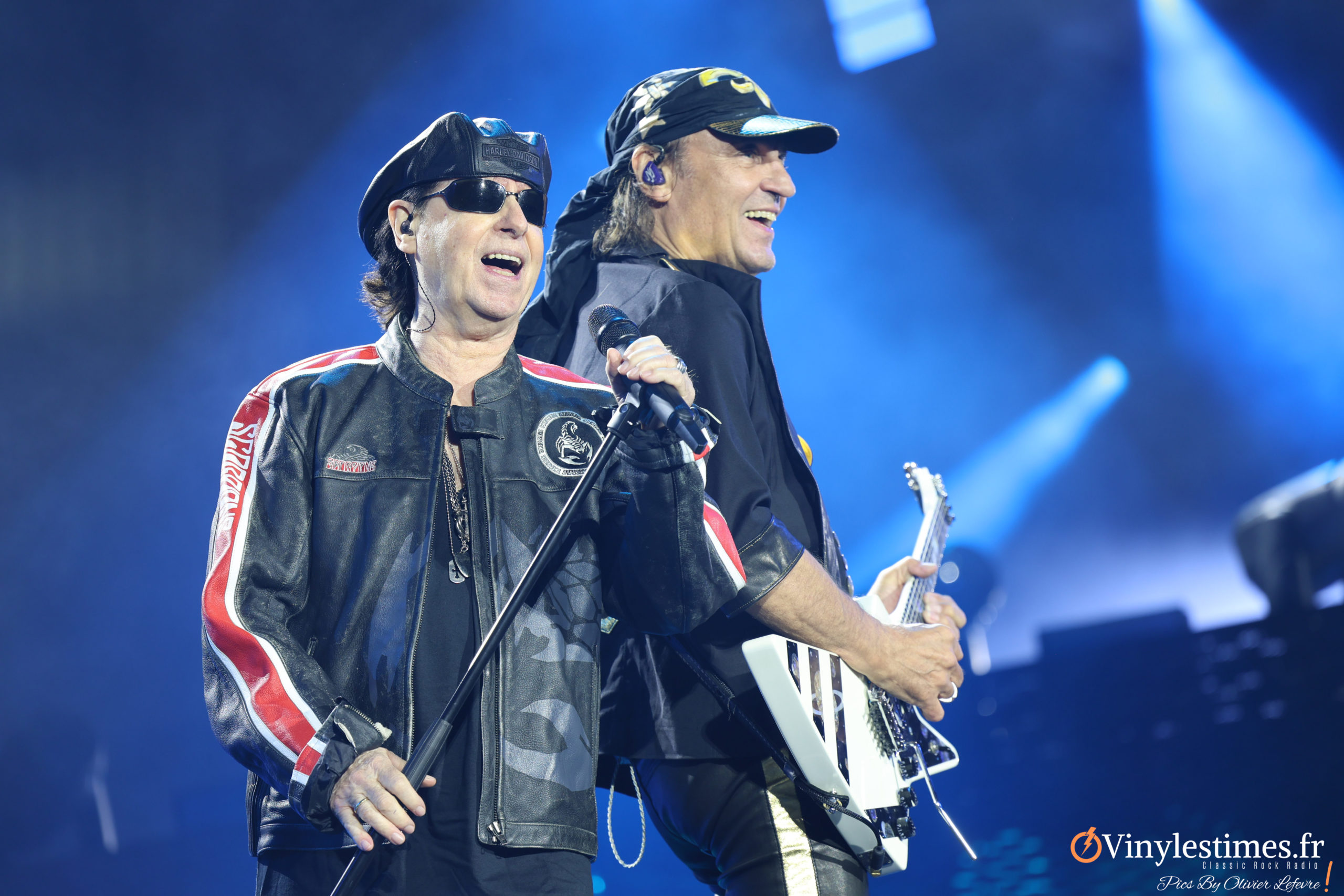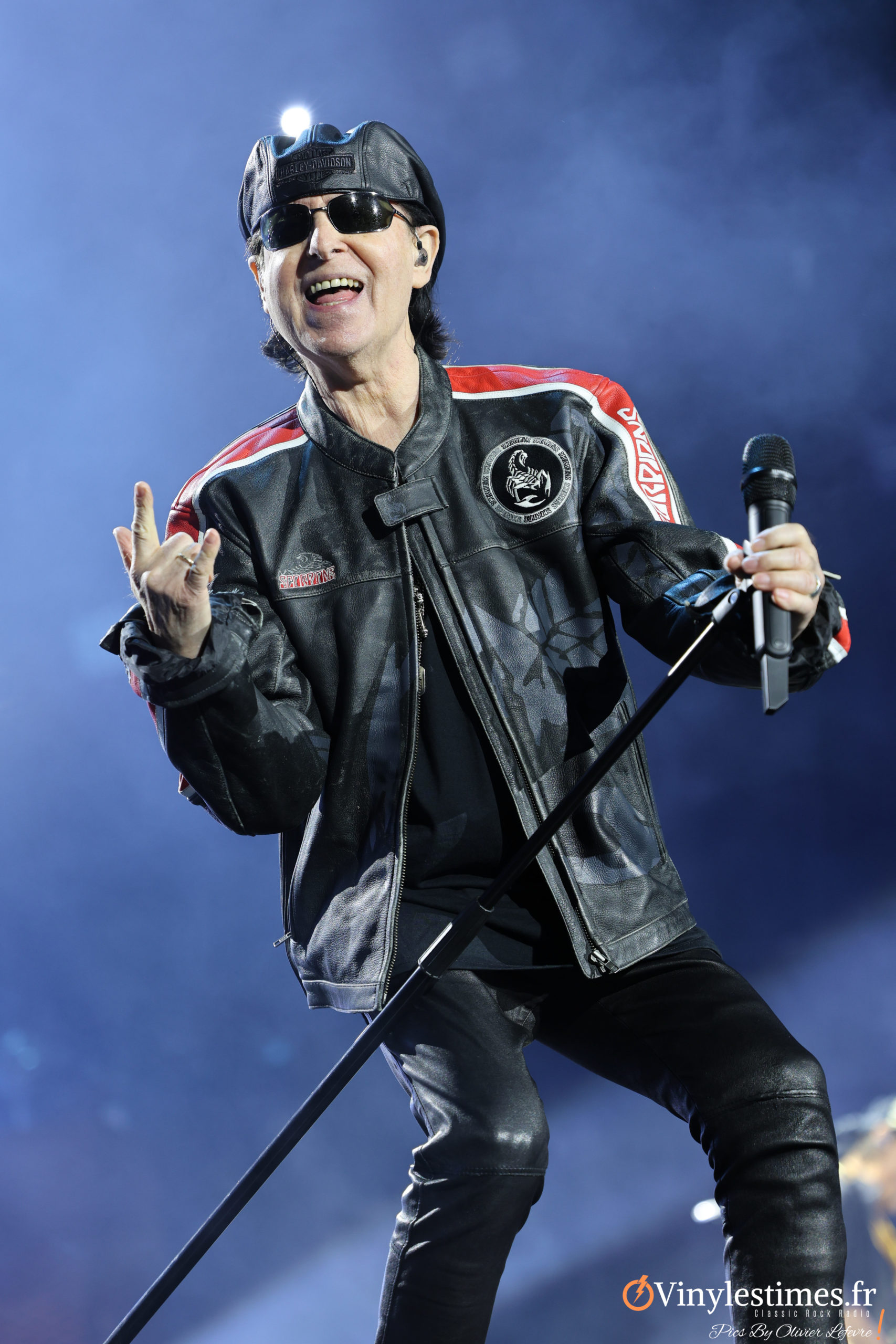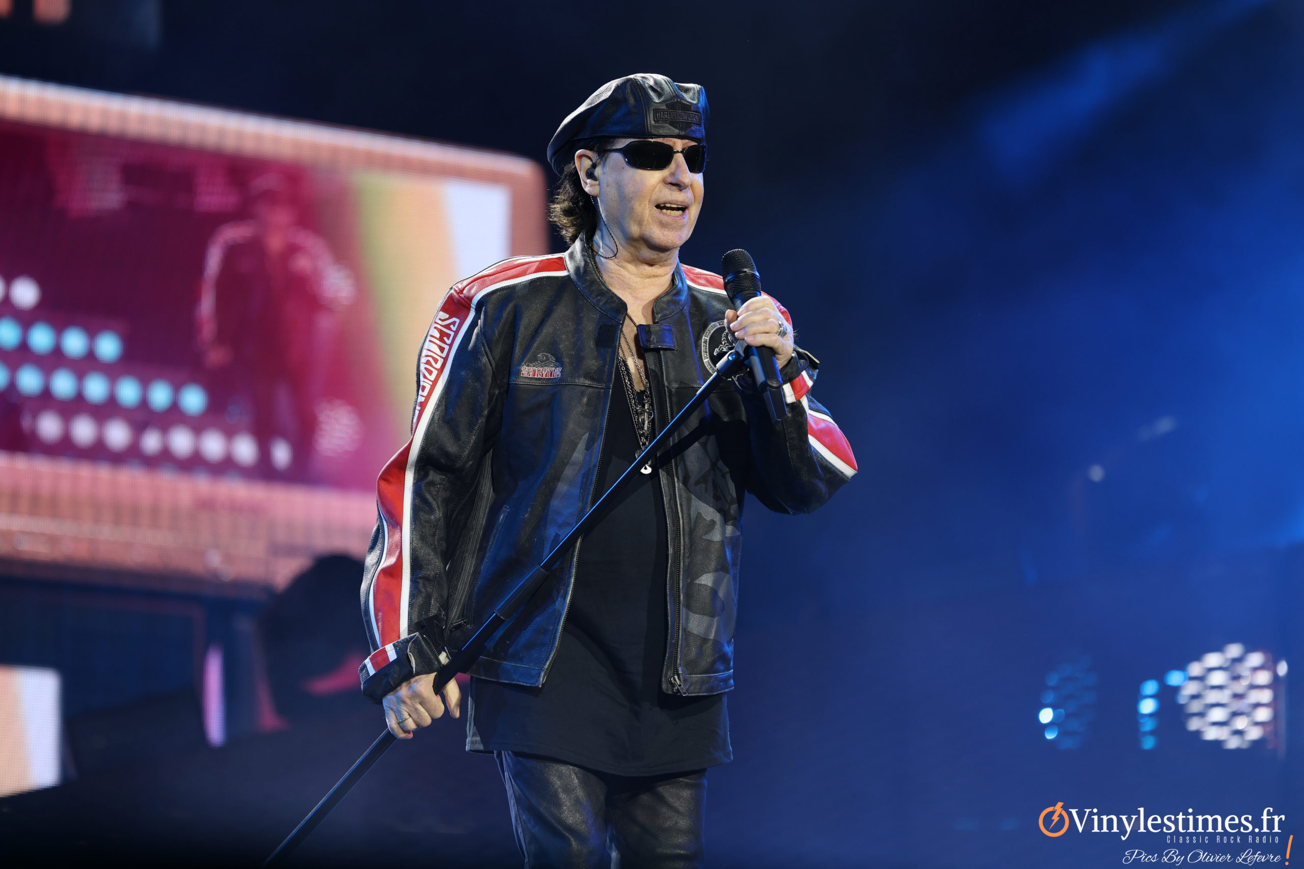 Dernière étape de cette journée : Scorpions (DE), que l’on ne présente plus. Le groupe, qui célèbre cette année ses soixante ans de carrière, entre en scène sous les vivats d’un public conquis d’avance et ouvre le bal avec un puissant Coming Home. Beaucoup des morceaux joués ce soir sont tirés de Love at First Sting, dont le groupe et ses fans ont fêté les quarante ans il y a peu : Bad Boys Running Wild, Big City Nights, ou encore l’inévitable Rock You Like a Hurricane font vibrer la foule. La setlist pioche aussi dans les autres grands classiques de leur discographie des Allemands : Blackout, Make It Real, Send Me an Angel, Top of The Bill ou le plus récent Gas in the Tank. Le show est d’une précision redoutable : tout est calé au millimètre, du lightshow spectaculaire aux vidéos d’archives projetées en fond de scène, qui apportent une touche bienvenue de nostalgie. On sent un groupe de vétérans qui connaît parfaitement son métier et maîtrise chaque aspect de sa prestation. Mais — car il y a un mais — si Rudolf Schenker et Matthias Jabs affichent toujours une forme éclatante et une vraie présence scénique, les marques du temps se font clairement sentir du côté de Klaus Meine. Sa voix, désormais mécanique, semble parfois déconnectée de l’émotion qu’elle veut transmettre, et sa gestuelle figée trahit une certaine raideur. Le charisme est intact, l’émotion reste palpable, mais l’énergie n’est plus tout à fait au rendez-vous… sauf du côté du plus jeune Mikkey Dee, qui insuffle une puissance phénoménale aux morceaux. L’ancien batteur de Motörhead apporte une force de frappe et un dynamisme qui rehaussent clairement l’ensemble, injectant un peu de sang neuf dans cette machine bien huilée. Entre le plaisir de réentendre ces classiques intemporels et une infinie tristesse face à l’évidence que le temps passe, pour mes héros comme pour moi, le show de Scorpions me laisse, comme à beaucoup d’autres avec qui j’ai échangé après le concert, un goût amer. Un mélange de nostalgie pour un temps définitivement révolu, de respect pour une carrière exceptionnellement riche, et de mélancolie. Un concert en forme d’adieu qui ne dit pas son nom.