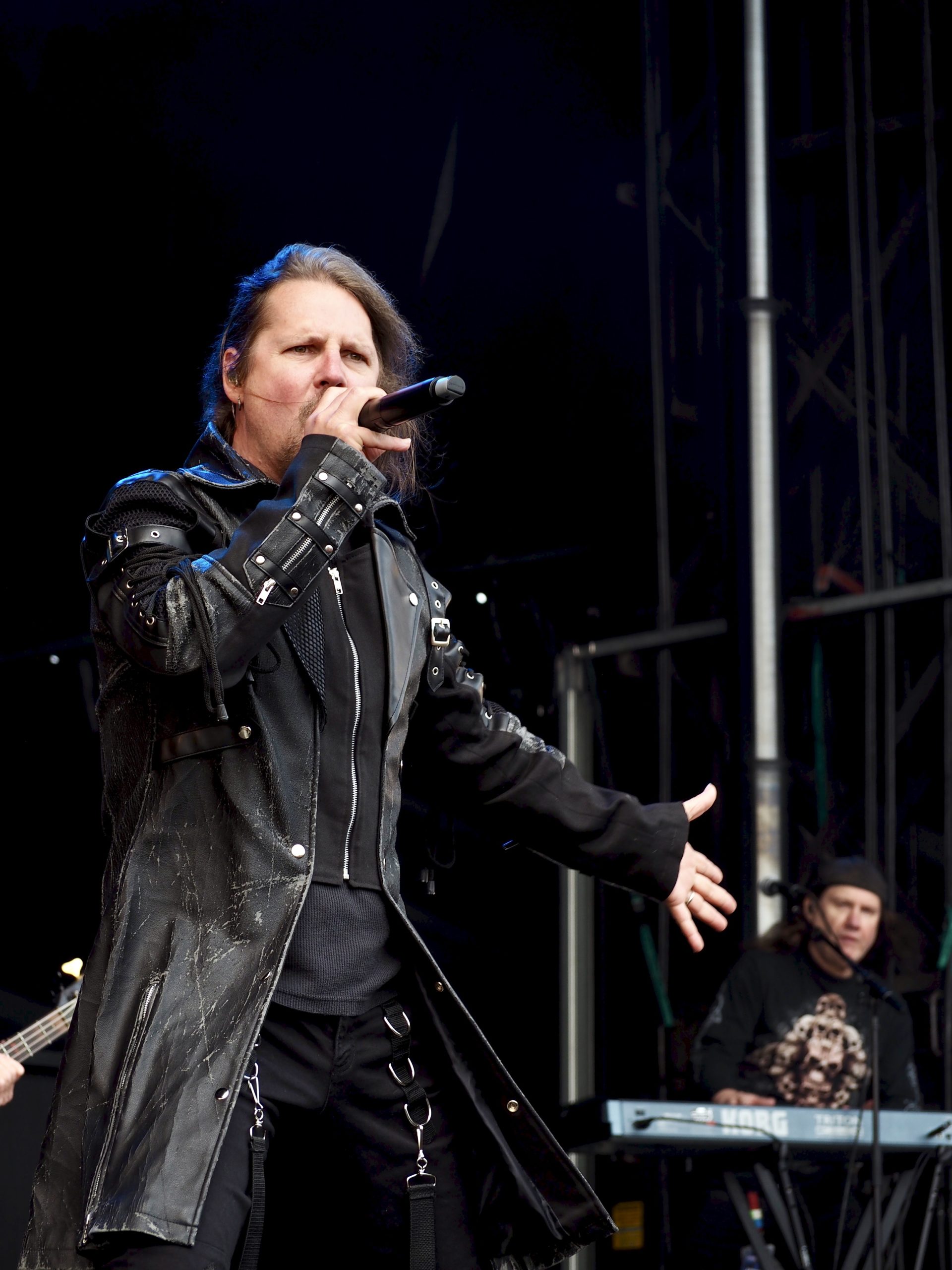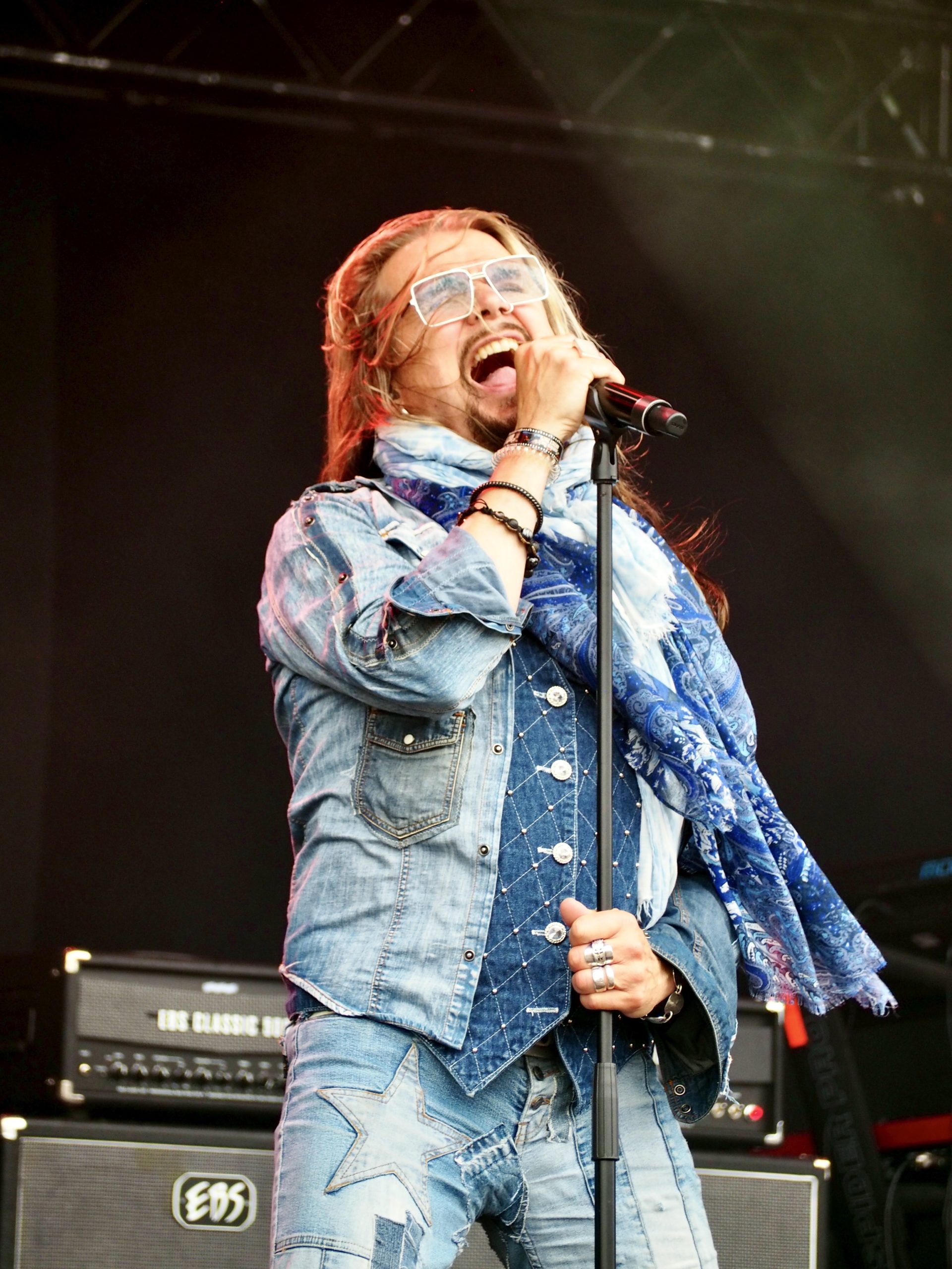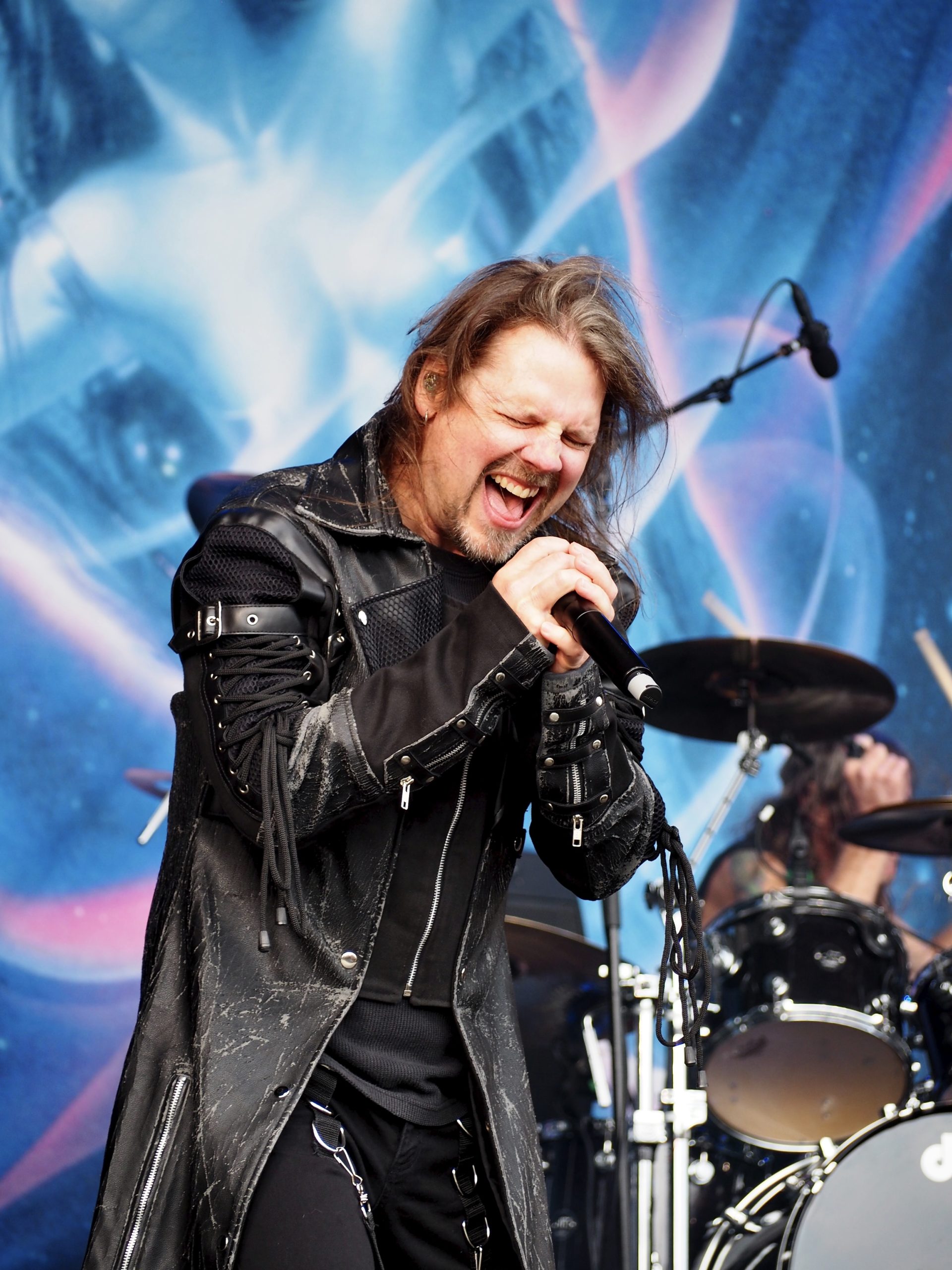 C’est sous une pluie battante que Kee Marcello (SE), ex-guitariste d’Europe, monte sur scène pour un set entièrement dédié à la période 1988-1992 du groupe, celle des albums Out of This World et Prisoners in Paradise. Malgré les éléments déchaînés, les musiciens restent imperturbables et enchaînent les titres devant un public réceptif, même si les morceaux joués ne comptent pas parmi les plus populaires de la discographie d’Europe. Jakob Samuel, ex-chanteur de The Poodles, assure le rôle de frontman avec enthousiasme, sans toutefois parvenir à faire oublier la prestance iconique de Joey Tempest. Kee Marcello, plus effacé, reste cantonné au côté droit de la scène, laissant volontiers la lumière à son chanteur, tout en livrant un jeu de guitare solide et précis. Mais alors que retentissent les premières mesures de Girl From Lebanon, une coupure de courant due à la pluie vient interrompre le concert pendant une bonne dizaine de minutes. Les musiciens, contraints de reprendre le morceau depuis le début une fois le problème réglé, peinent à retrouver l’élan du début. La suite du set voit le groupe interpréter des morceaux plus marquants, comme Just the Beginning, chanté par Michele Luppi depuis ses claviers pendant que Jakob quitte brièvement la scène. Kee profite ensuite de son moment de gloire avec un solo flamboyant, incluant une interprétation musclée de Flight of the Bumblebee. Jakob revient pour Seventh Sign, avant que le groupe ne conclue avec les deux incontournables de l’époque : Prisoners in Paradise et Superstitious. Un show écourté, en demi-teinte : professionnel et bien exécuté, mais un peu trop sage, manquant d’énergie et de morceaux réellement percutants pour totalement emporter mon adhésion.