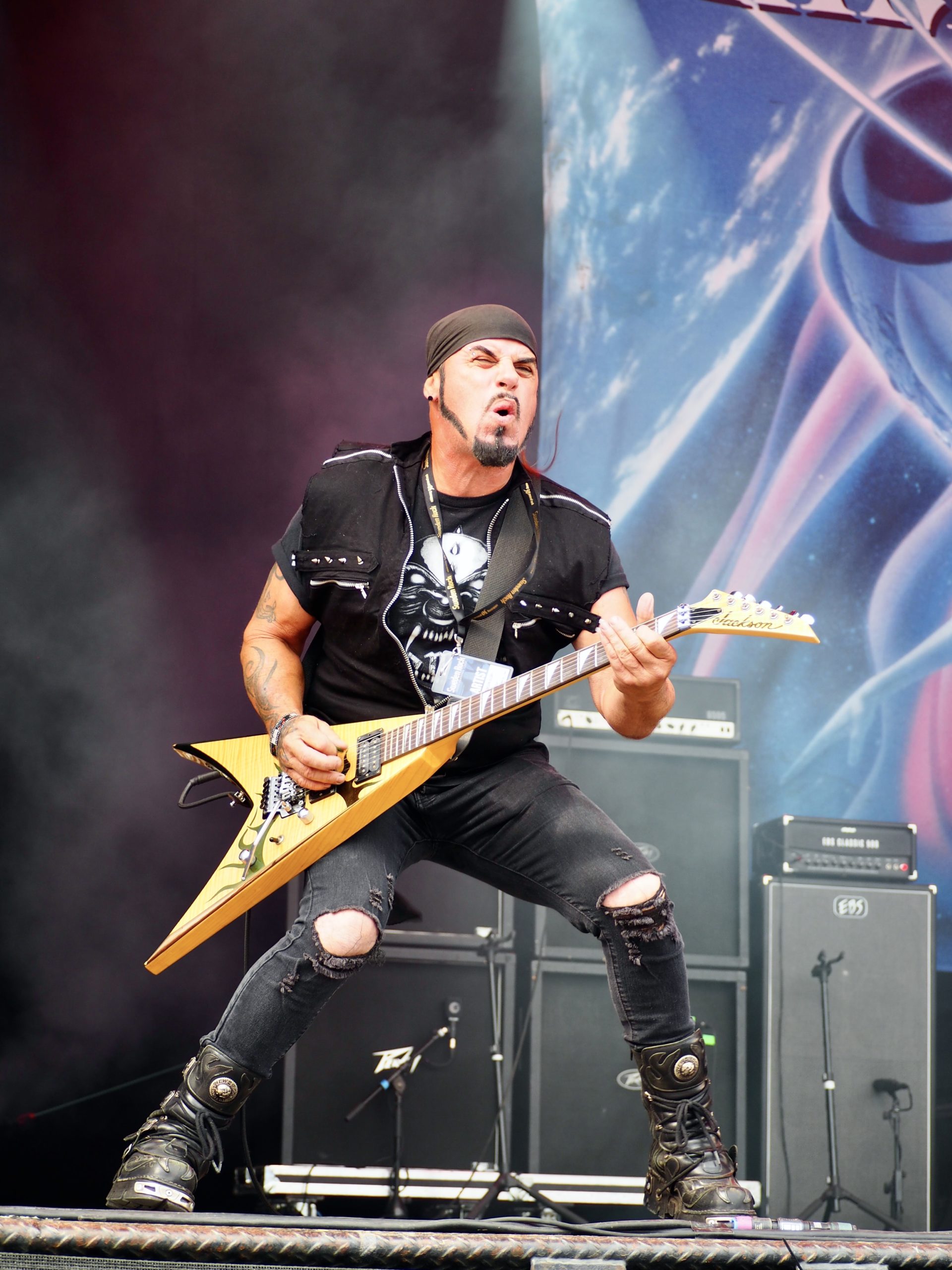 Place maintenant au metal progressif des Américains de Crimson Glory, un concert attendu avec impatience par un public qui s’est rassemblé en masse devant la scène… et par moi aussi, je dois bien l’avouer. Le groupe aligne trois de ses membres originaux : le bassiste Jeff Lords, le guitariste Ben Jackson et le batteur Dana Burnell, rejoints par le soliste Mark Borgmeyer et Travis Willis au chant. Le concert démarre sur les chapeaux de roues avec un tonitruant Valhalla, extrait de leur tout premier album sorti en 1986, qui séduit immédiatement l’audience. Les musiciens sont impeccables, et Travis Willis, en particulier, impressionne par sa maîtrise vocale, alternant avec aisance les graves et les aigus sans jamais perdre en justesse ni en énergie. Très mobile, il occupe la scène avec une présence qui capte les regards. Après cette ouverture enthousiasmante, le groupe déroule une setlist largement axée sur son album culte Transcendence, pour le plus grand bonheur des fans : pas moins de huit titres sur les onze joués en sont issus. Nous avons ainsi la joie d’entendre les classiques Lady of Winter, Red Sharks, Painted Skies, Masque of the Red Death ou encore In Dark Places. Seuls manquent à l’appel Burning Bridges et le morceau-titre, remplacés par Dragon Lady et Azrael, extraits du premier album. Moment fort du concert : juste avant d’interpréter Lonely, Travis Willis invite le public à applaudir John Zahner, le claviériste, qui vit là l’avant-dernier show de sa carrière avant de prendre une retraite bien méritée. Une salve d’émotion traverse alors la foule, saluant ce musicien qui officiait déjà sur l’album Transcendence. Un concert mémorable, à la hauteur du mythe. Crimson Glory prouve ce soir qu’il n’a rien perdu de sa superbe et qu’il sait encore faire briller la flamme d’un metal progressif de grande classe.