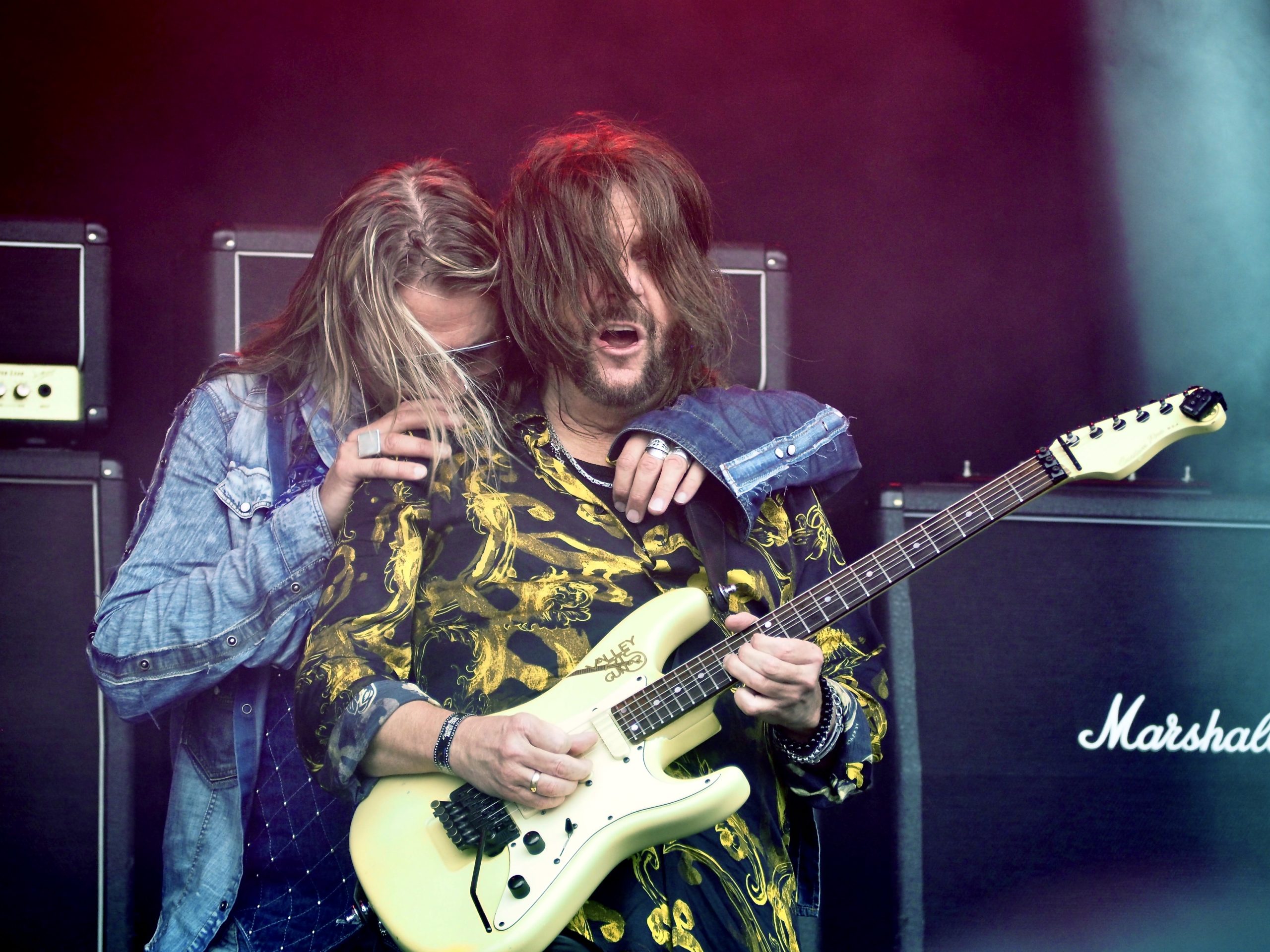 Direction la Blåkläder Stage pour le concert de Crazy Lixx (SE), avec l’espoir d’assister à une prestation plus incisive, portée par un glam metal tout droit sorti des années 80. Bonne surprise : la pluie a cessé et le soleil fait même une timide apparition au moment où les musiciens entament leur set avec Whiskey Tango Foxtrot. Le moins que l’on puisse dire, c’est que le morceau nous saute littéralement à la gorge. Pas de doute, le groupe a décidé de miser sur l’énergie brute dès les premières secondes, avec ce titre accrocheur qui fleure bon le Sunset Strip. Les guitaristes balancent leurs riffs avec assurance et s’emparent de la scène avec une fougue communicative. Le bassiste, véritable pile électrique, se démène comme un beau diable, arpentant la scène en tous sens. Le batteur, quant à lui, martèle ses fûts avec précision, ajoutant encore à la dynamique d’un show mené tambour battant. Crazy Lixx ne cherche pas à réinventer le style, mais bien à le célébrer avec une sincérité rafraîchissante. Pas de second degré ici, ni de nostalgie forcée : juste l’envie de faire vibrer les amplis, hurler les refrains à tue-tête et transmettre au public une passion intacte pour un glam metal assumé et fier de ses racines. Cette troupe bigarrée — un guitariste aux faux airs et à l’attitude de Zakk Wylde, un autre tout droit sorti de Judas Priest, un chanteur sosie juvénile de Gary Cherone, un batteur plus maquillé que tous les membres de Mötley Crüe réunis, et un bassiste qui n’aurait pas dépareillé chez Poison — enchaîne les titres avec une énergie hallucinante, alignant les hymnes glam qui font taper du pied et hocher la tête sans effort. Chaque chanson offre l’occasion d’un retour triomphal aux grandes heures du hair metal, et les musiciens ne se privent pas de jouer la carte du clin d’œil vintage. On les sent habités par un plaisir sincère à incarner tous les codes des années 80 : poses de rock stars, solos flamboyants, refrains scandés poing levé… Le groupe livre un show aussi exubérant qu’efficace, qui brille, qui pulse et qui assume à fond son amour du genre. Un concert rafraichissant et une bien belle surprise !
