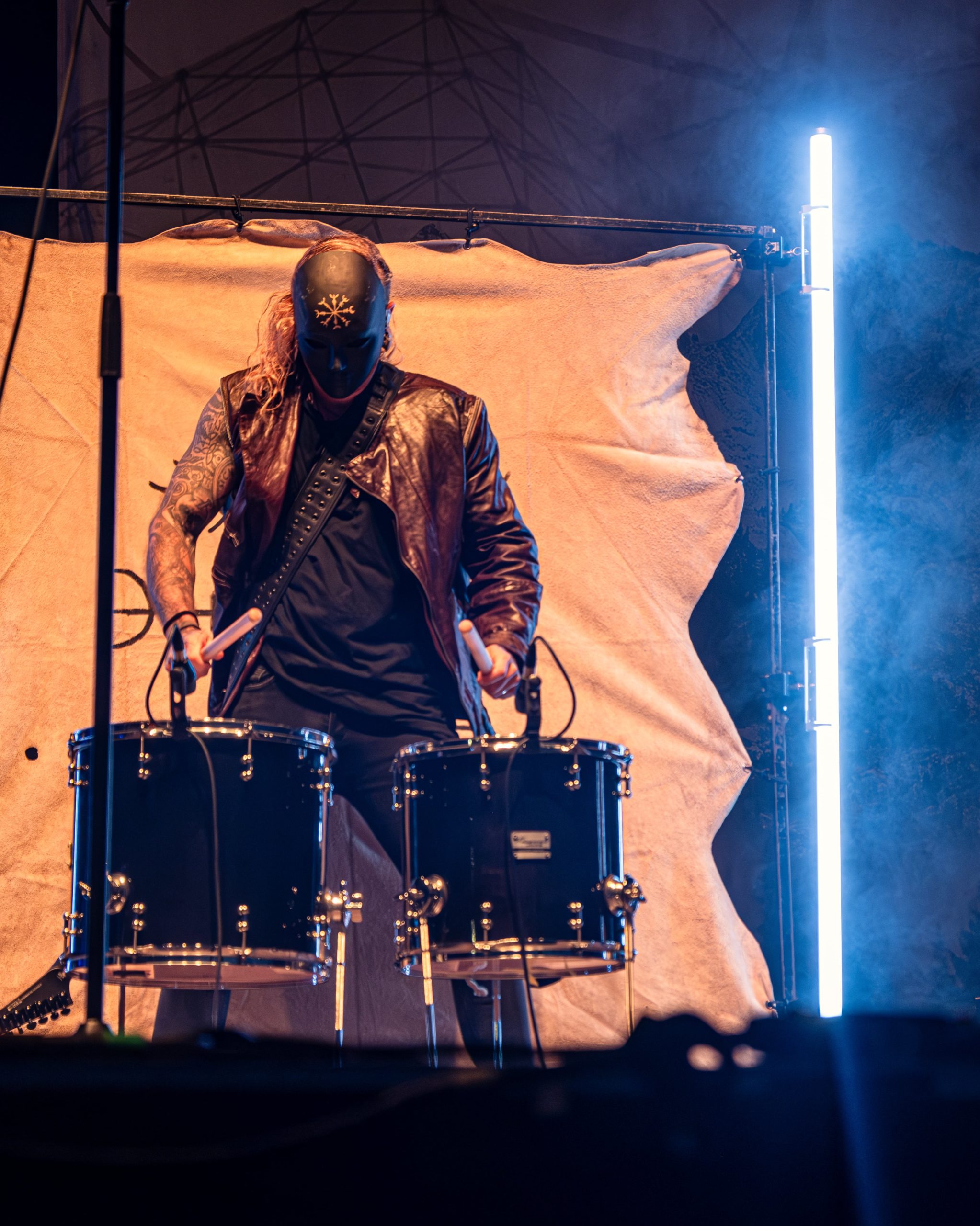 Junkwolvz succède sur la Headbangers Stage pour représenter la Grèce. Le groupe, bien que jeune, pratique pourtant un style tout droit sorti des années 80, aussi bien sur le plan musical, axé sur un heavy metal aux accents de l’époque, que vestimentaire, fait de jeans destroy et de T-shirts de groupes tels Megadeth et Guns’n’Roses, jusqu’à la petite touche de kitsch des extensions capillaires bleu électrique du bassiste. Du haut de leur toute jeune expérience, les quatre musiciens rendent un hommage diablement efficace à cette période, auquel le public réserve un accueil enthousiaste et chaleureux. Histoire d’en rajouter une couche de kitsch volontaire, Junkwolvz possède sa propre mascotte qui accompagne les membres sur scène, en la personne d’un homme portant un masque de lion ; si cette petite folie en amusera sans doute certains, sa présence en reste tout de même superflue. Passé outre ce détail, Junkwolvz livre une très sympathique performance qui montre un joli potentiel. [Ségolène]