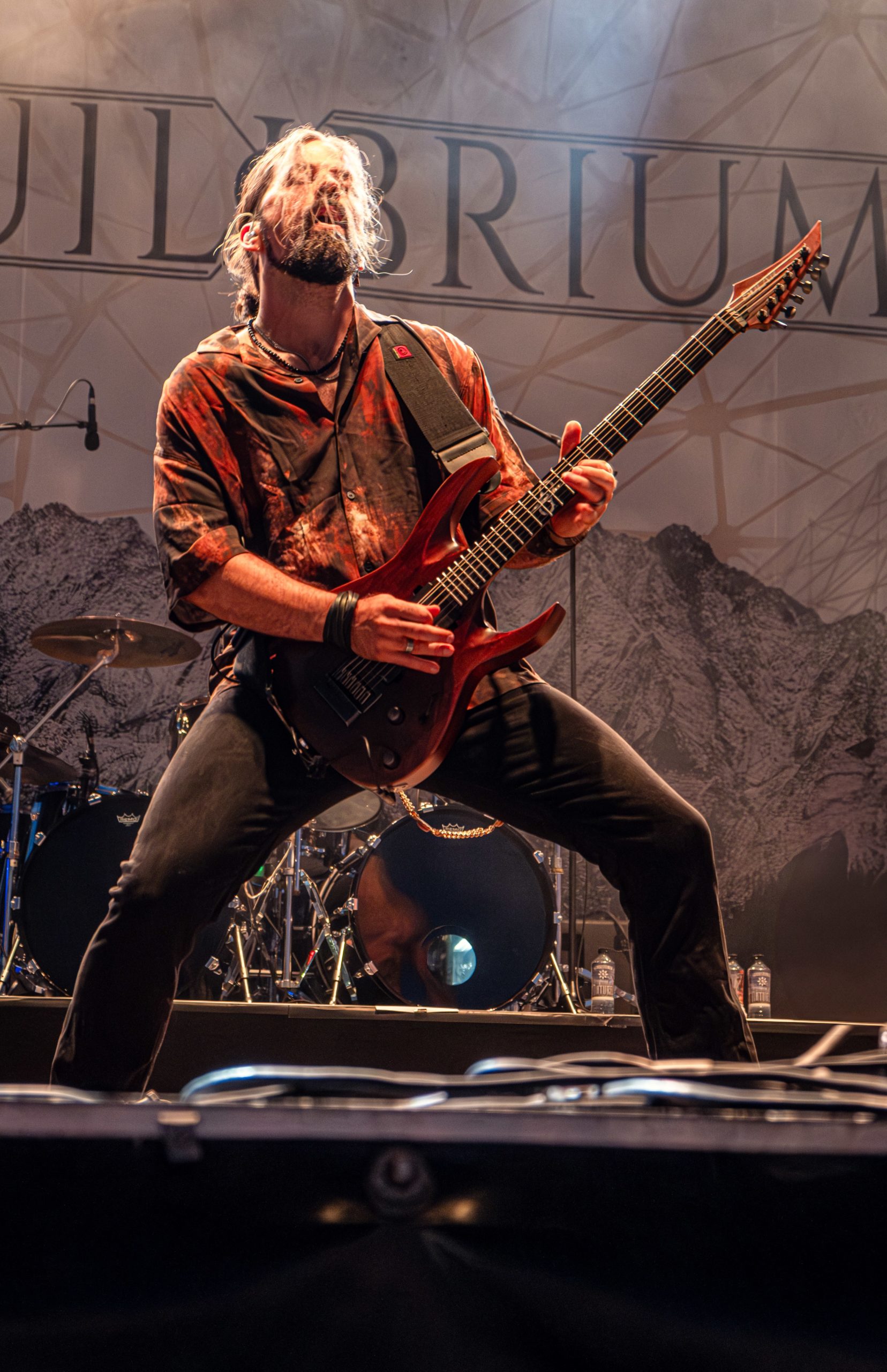 Une heure plus tard, le temps d’effectuer une petite balade dans les allées du Wackinger Village et de shooter une des performances pyrotechniques du Flameous Fireshow, me voilà de retour dans le pit de la Wackinger Stage, parée pour le set d’Equilibrium. Sur fond d’un public déjà au taquet qui le réclame à grands cris, le groupe fait son entrée sur fond d’éclairage en néons et de l’intro de Shelter, morceau ayant fait office de présentation du nouveau chanteur Fabian Getto. Dès ce premier titre fait pour lui ainsi que le suivant, l’hymne Renegades – A Lost Generation, le jeune frontman montre une excellente forme vocale et physique et met le feu partout, aussi bien par sa performance qu’en agitant sa flamboyante chevelure d’un côté et de l’autre de l’espace scénique ! Entre deux titres, il prend le temps de remercier en anglais les festivaliers étrangers d’être venus avant d’enchaîner sur la suite ; une suite à la hauteur du début. Dans l’ensemble, le set est un sans-faute : aucune baisse de rythme ne vient le ternir et les morceaux, des extraits d’Armageddon aux récents singles tels Revolution et One Folk nous rentrent dans le lard, en passant par le classique des classiques Blut im Auge, comme il faut. En cela, ils sont on ne peut mieux servis par trois musiciens et un chanteur à l’interprétation et à l’implication solides et sans faille, Fabian Getto en tête. Du haut de sa courte expérience avec le groupe, le jeune homme porte facilement les deux tiers du show à lui seul et prouve qu’avec lui, Equilibrium a fait le bon choix. Autre bon point que le son, géré avec soin jusqu’à en faire oublier l’absence de bassiste ; le sort fait que Martin Skar Berger officialisera son départ du groupe quelques jours plus tard. En quelques mots, Equilibrium donne ce soir un des tout meilleurs concerts de ce premier jour de Wacken — et du fest dans son ensemble —, un véritable spectacle dont je regrette de ne pas pouvoir capturer tous les grands moments — nombreux ! [Ségolène]