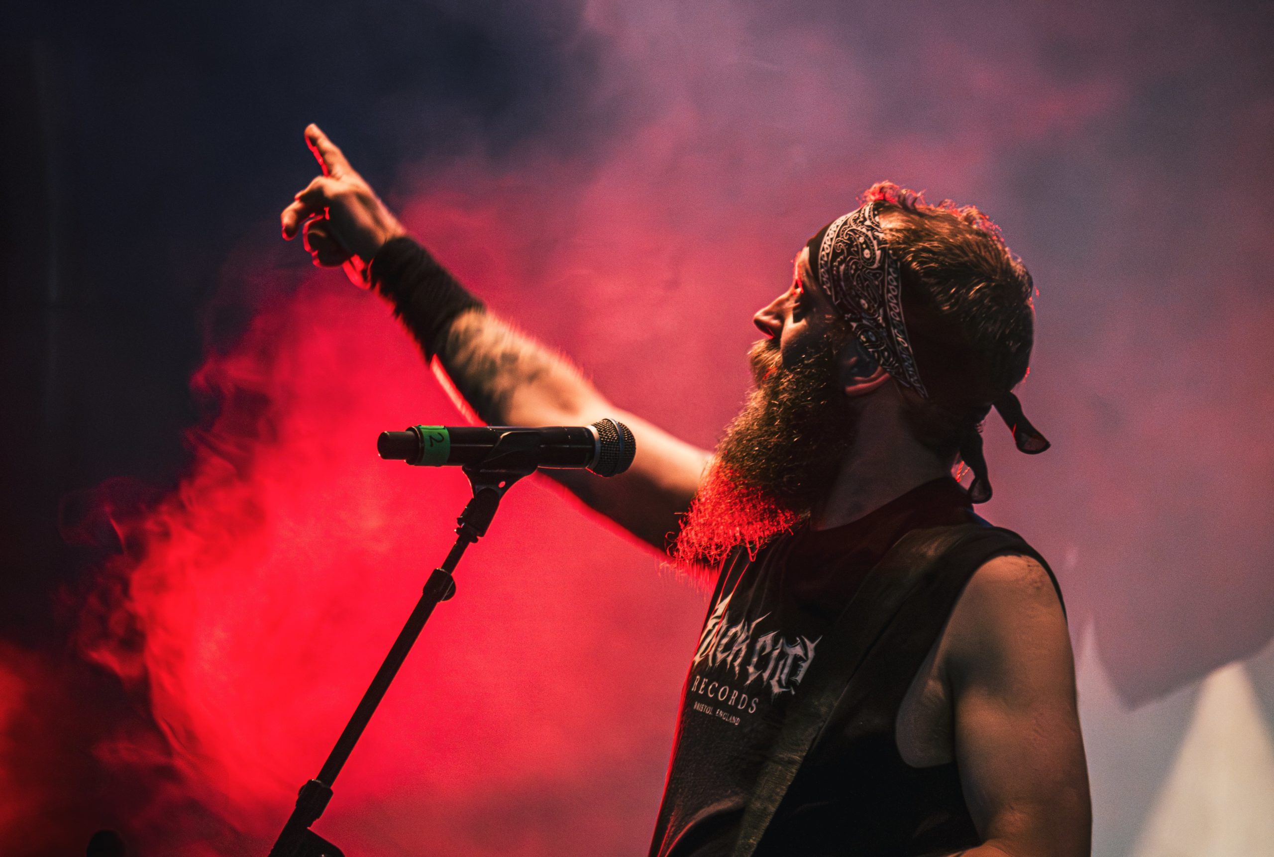 Après cela vient le temps de partir, moi en premier, en direction de la Wasteland Stage pour une série de découvertes qui commence avec les Allemands d’Infected Union. Le moins que je puisse dire, c’est que cela démarre sur les chapeaux de roue ! Le groupe officie dans un thrash metal à la sauce germanique, autrement dit, rapide, nerveux et qui adopte une touche heavy ma foi fort agréable à l’oreille, entre autres dans les leads multiples et virtuoses que se partagent Philipp Schuchart et le frontman Christoph Linke. « Rain or shine, I guess it’s « shine » this year! » commente ce dernier, sourire aux lèvres, entre deux morceaux. L’humeur générale est en effet à l’image de la météo du jour, c’est-à-dire radieuse ; parfait pour s’immerger dans l’ambiance et profiter d’un show aussi généreux que dynamique ! Histoire de démontrer qu’il possède le sens du spectacle, le groupe possède sa propre mascotte en la personne d’un démon cornu géant qui se promène sur la scène et adresse de respectueux saluts au public de ses grandes mains griffues — lorsqu’il ne les pose pas sur l’épaule des musiciens. Hail thrash metal! [Ségolène]