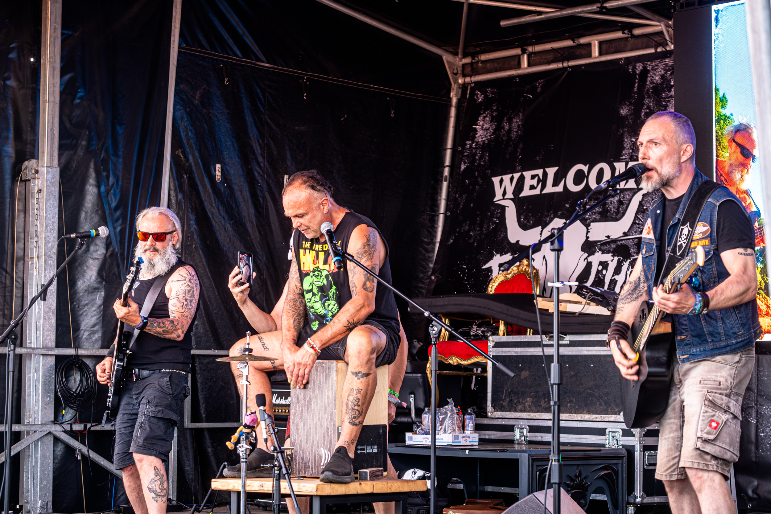 Après les représentants de la Roumanie, de la Grèce et de la France la veille, vient le moment pour Poseydon de porter les couleurs du drapeau de la Belgique parmi les gagnants de la Wacken Metal Battle sur la Headbangers Stage. Les cinq Flamands sortent l’artillerie lourde, à savoir un style death/thrash classique et surfant sur les codes des deux genres mais bien guerrier et bourrin, à grands renforts de gros riffs, d’une rythmique rapide et d’un style vocal magistralement géré par le vocaliste Tom « Lenny » Lenaerts et qui a de quoi évoquer quelques grands noms. Outre cela, et ce en dépit de son T-shirt arborant des mots évoquant la haine, l’homme a l’art de s’adresser à son public en faisant preuve tout à la fois de prestance et de sympathie. Possédant à son actif une discographie peu fournie, ne comptant que deux albums studio, Poseydon sait toutefois y puiser pour en sortir les titres les plus efficaces et qui laisseront forte impression à la frange du Wacken Open Air venue les découvrir. Un des guitaristes souffre un souci technique sur sa guitare, heureusement assez vite résolu pour ne pas entacher la prestation ni casser son rythme. [Ségolène]