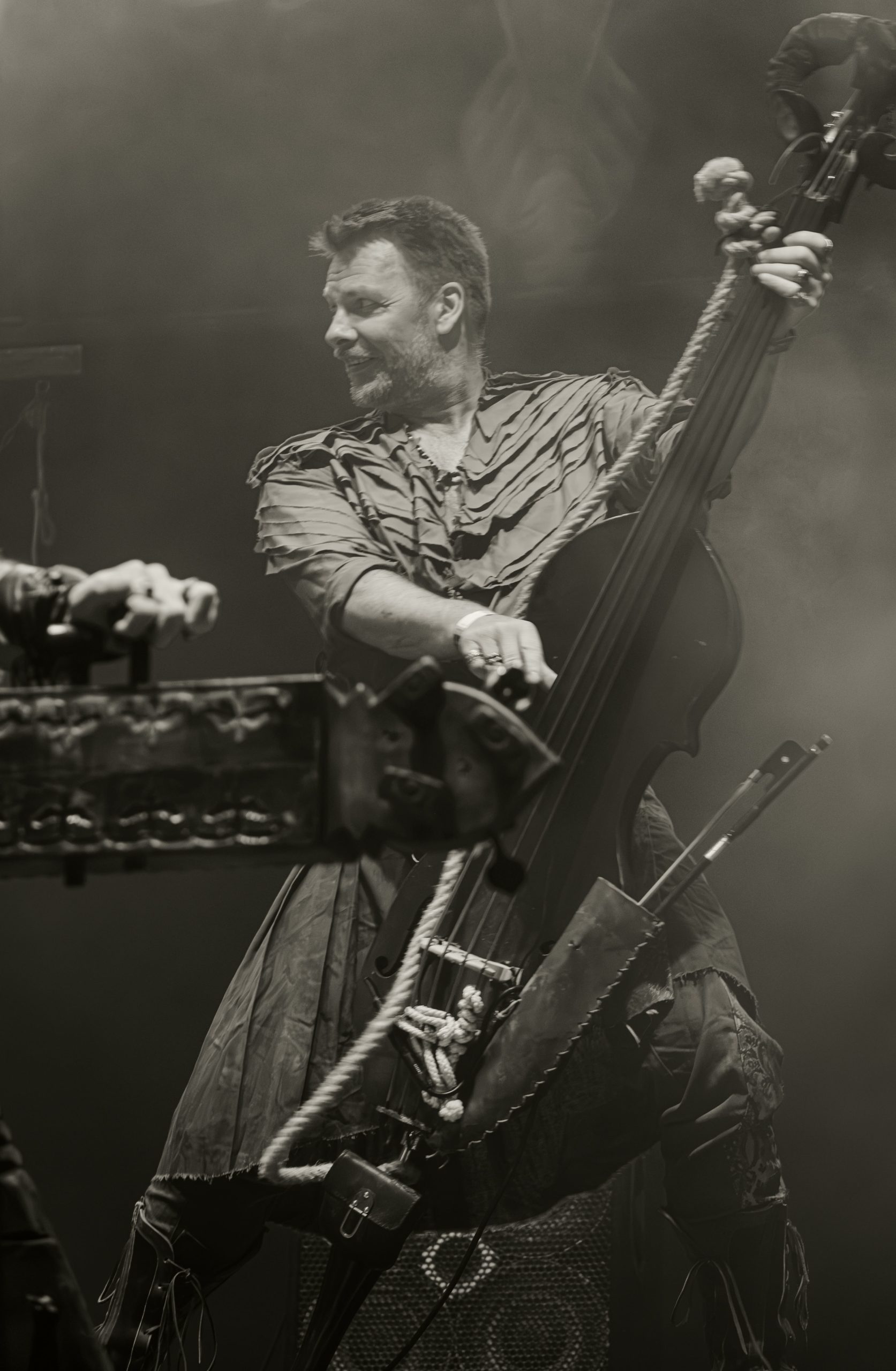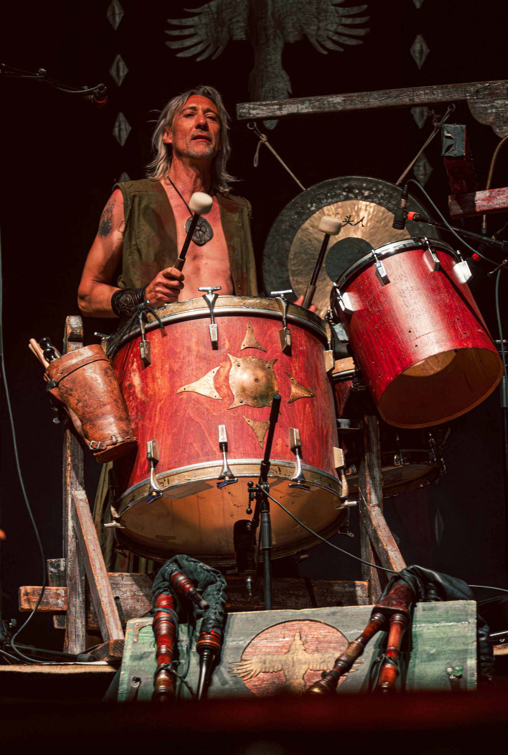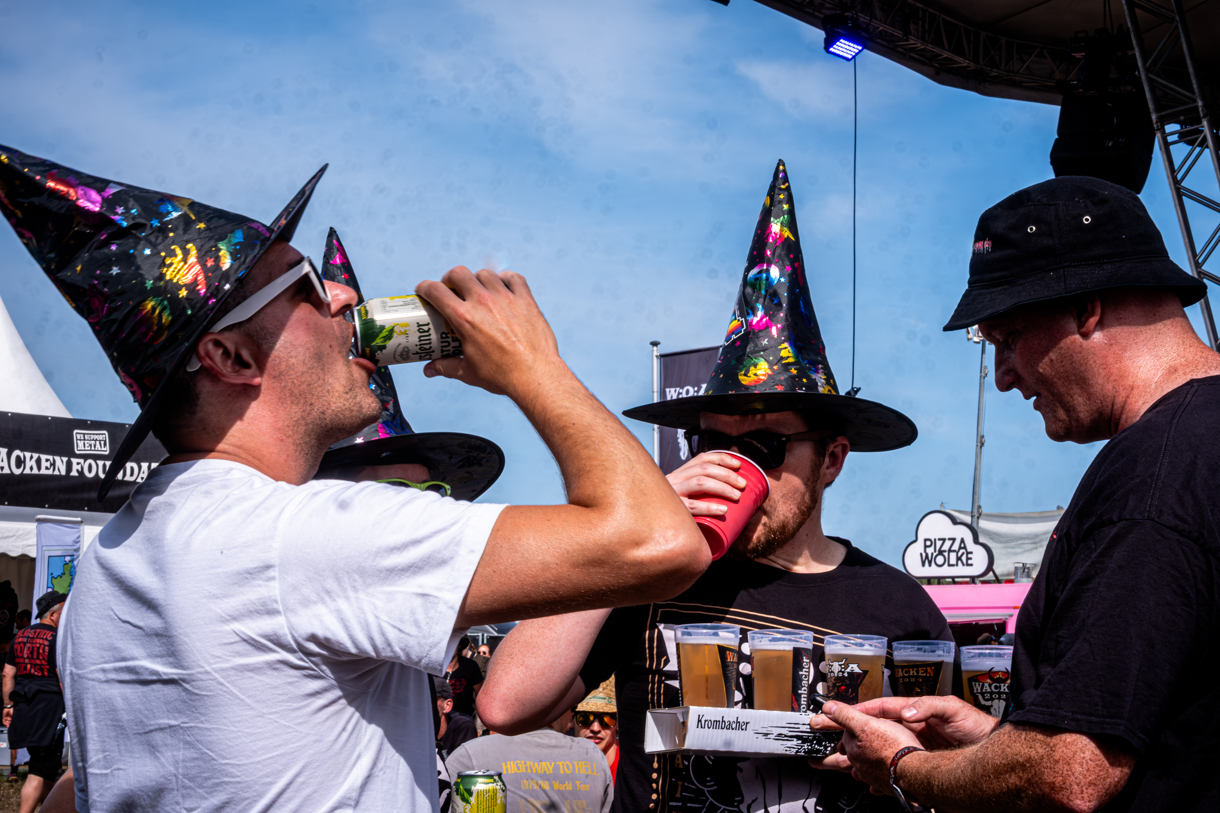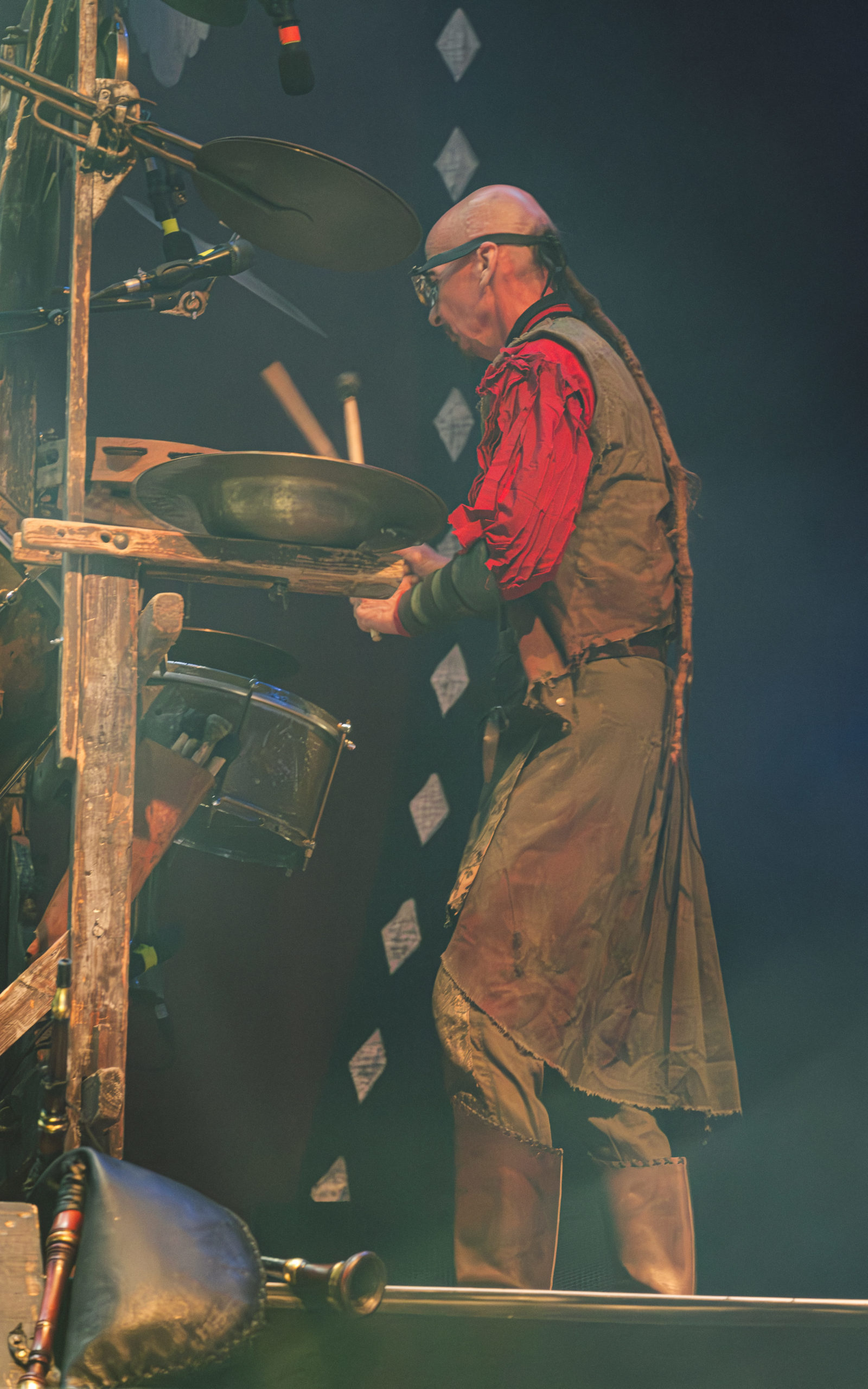 Corvus Corax compte parmi les groupes régulièrement présents à l’affiche du Wacken et, à ce titre, des incontournables ; assister au show du groupe s’imposait alors. Au niveau du créneau horaire, se retrouver programmé en même temps que le mythique Scorpions ne joue pas en la faveur de la formation berlinoise ; par chance pour elle, le public du festival est assez disparate pour comporter bien assez de fans de folk qui répondent présents pour un petit moment de Tanzmuzik. Pour cela, le groupe dégaine un attirail de taille : des cornemuses en nombre aux percussions traditionnelles, en passant par tout un tas d’autres, à vent ou à cordes, dont le nom échappe aux non-initiés : bombarde et cistre entre autres, jusqu’à un immense organistrum… autant dire que l’espace scénique paraît bien étroit pour tout ce beau monde ! Beau monde auquel viennent se joindre des figurants déguisés, les uns en chevaliers, un autre en créature cornue, ceci à un moment où les musiciens revêtent des perruques poudrées, pour une raison que je ne parviens pas à saisir… Heureusement, les membres de Corvus Corax et leurs compagnons de scène ont le sens du partage, sur scène comme au-delà : il n’y a qu’à voir les joueurs de cornemuse à deux devant un même micro ou certains spectateurs ramer ou reprendre les refrains les plus entêtants en chœur avec le groupe pour s’en rendre compte ! Tout le monde profite du moment, ce qui fait plaisir à voir ; bien que, pour ma part, j’ai bien du mal à accrocher complètement. La faute, de mon point de vue, à quelques éléments hors sujet, telles les perruques poudrées ou la présence d’une chanteuse lyrique sur un titre, dont la voix semble trop noble et élégante par rapport à un folk plus simple et populaire. Il n’empêche que Corvus Corax marque par son esprit bon enfant ; de quoi se redonner un petit coup de boost avant de foncer retrouver Scorpions pour les derniers morceaux et finir la soirée. [Ségolène]