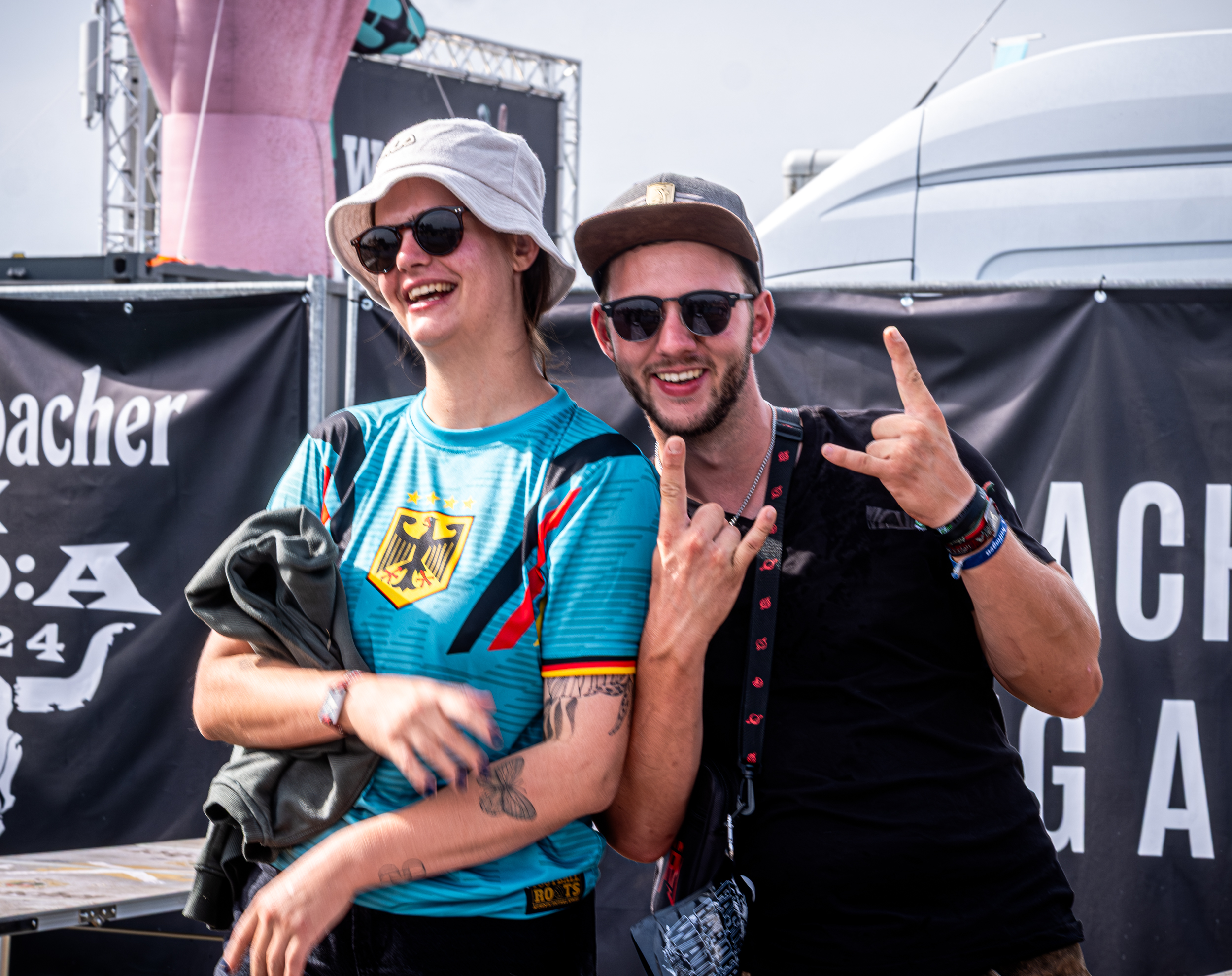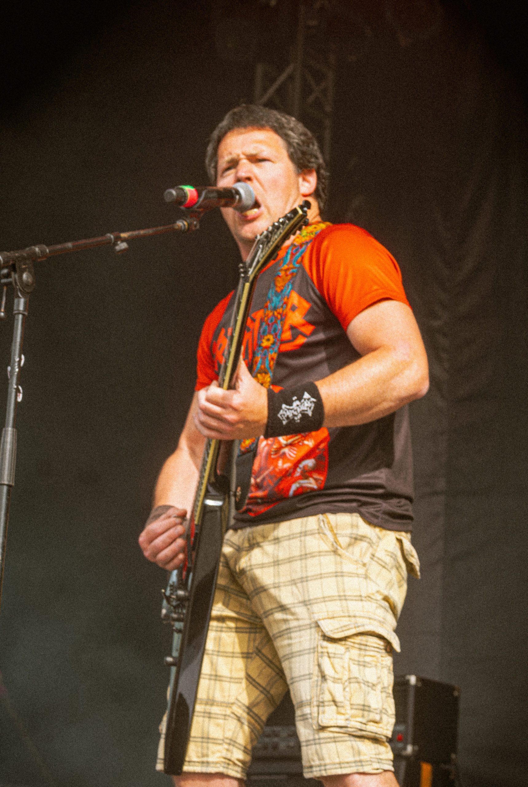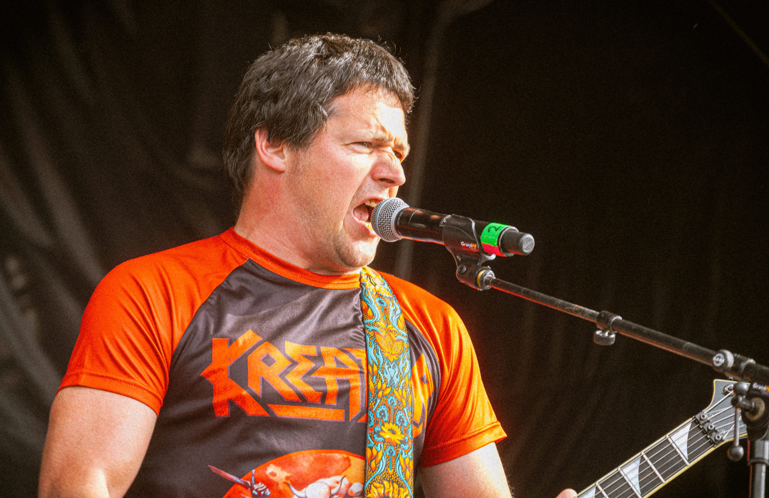 Après un moment passé à flâner dans les allées de la Camping Plaza, qui me donne l’occasion de découvrir le concentré de bonne humeur qu’est cette zone du site du festival et sa scène Welcome to the Jungle, et avant de me diriger vers la Faster Stage pour shooter Axel Rudi Pell, je me permets un nouveau détour improvisé par la Wasteland Stage dans la perspective d’une nouvelle découverte « à l’aveugle ». Bien m’en prend, puisque c’est Objector qui se présente à mon objectif et à mes oreilles, un groupe, comme vous n’aurez certainement pas eu de mal à le deviner, de thrash metal. Pour être encore plus précise, il s’agit de bon, voire très bon thrash metal bien speedy, agressif et criard à la sauce allemande — plutôt cocasse sachant que le groupe est originaire de la région d’Anvers en Belgique ! À ce niveau, il ne cache pas ses influences issues de Kreator, affichées sur le T-shirt de Bock, chanteur et guitariste ; bon point pour moi qui suis fan du groupe. Son comparse guitariste Filip Verstappen et lui-même se révèlent deux guitaristes de talent. Je ne peux me permettre de m’attarder bien longtemps, devant prendre de l’avance pour la suite ; je garde tout de même d’Objector le souvenir d’une découverte certes brève, surtout incroyablement énergisante. [Ségolène]