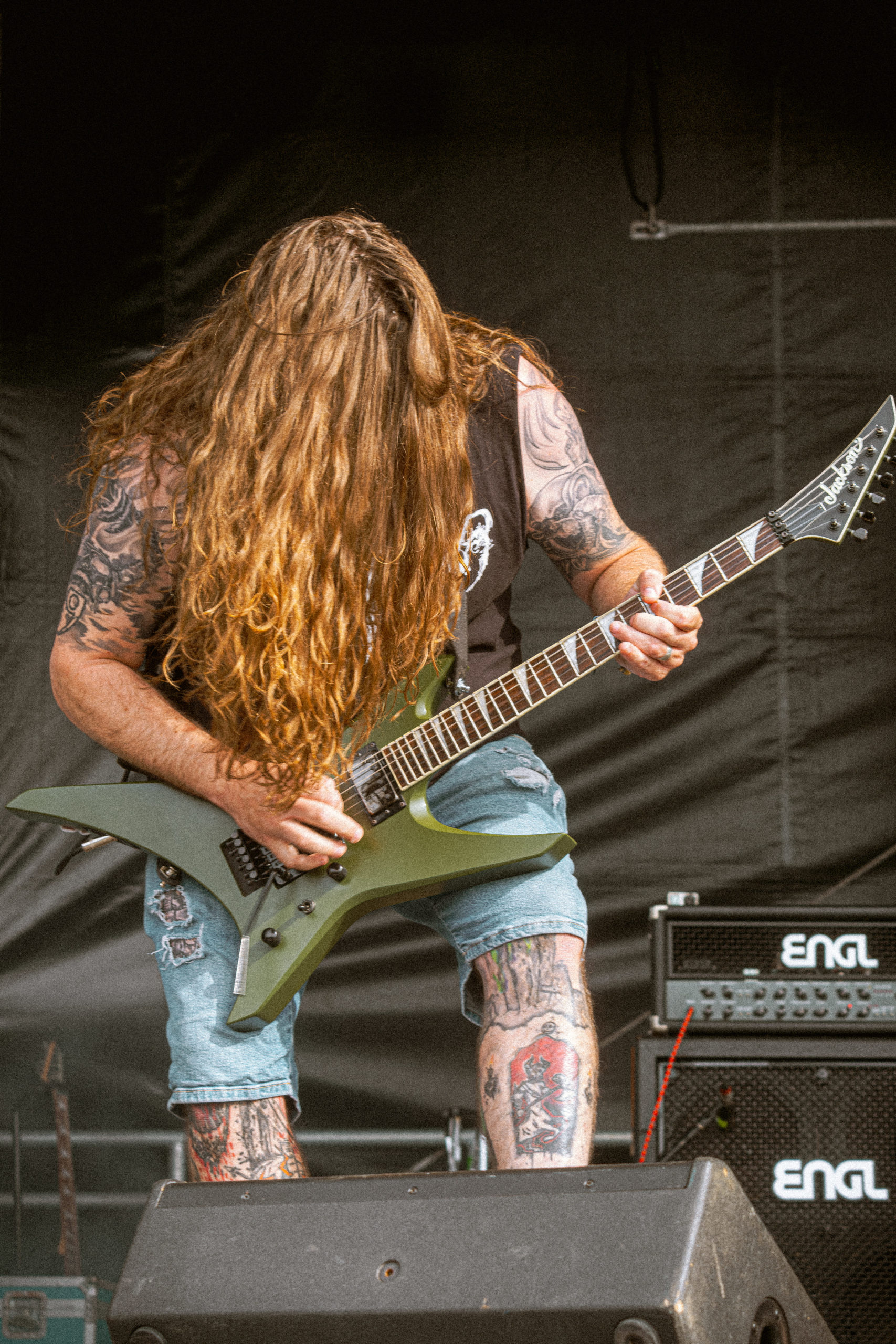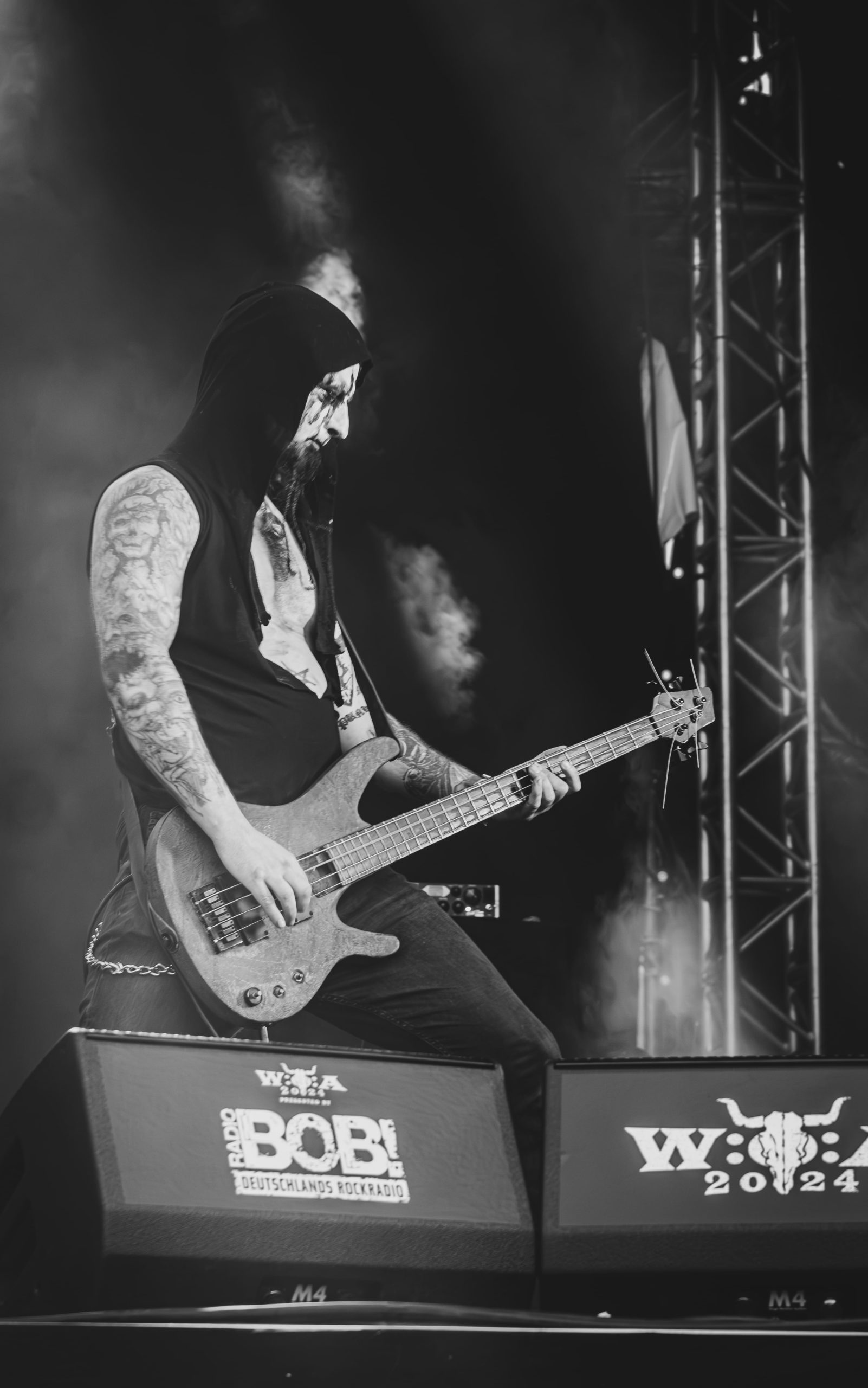 Bien que le heavy metal (old-school) constitue pour beaucoup la raison principale de se rendre au Wacken, moi-même incluse, je ne peux m’empêcher de me dire que tout cela manque tout de même un peu de metal extrême. C’est ainsi que je me dirige vers Bullhead City et ses deux scènes, arrivant sur la fin du set de Uada et largement en avance pour celui d’Incantation. Le quatuor américain fait son entrée en scène sur fond d’une bande-son récitant des passages d’un livre maudit que je devine être le Necronomicon avant d’enchaîner sur Carrion Prophecy ; rien de tel, en somme, pour rendre hommage à ce que le groupe appelle « blasphemous death metal » ! Ce n’est que le début d’une longue plongée dans la caverne aux horreurs qu’est ce style aux atmosphères très sombres, occultes et opprimantes ; croyez-moi, la métaphore n’est pas peu appropriée tant les riffs et surtout la voix de John McEntee semblent sortis des tréfonds d’une grotte souterraine. Toujours dans la continuité de ce que veut le style, le guitariste Luke Shively apparaît comme littéralement possédé par ce dernier… de quoi donner des frissons, au moins autant que la setlist qui prend des allures de rétrospective, surtout pour les fans de longue date lorsque John McEntee annonce un morceau dont le titre m’échappe, mais dont je comprends qu’il s’agit de « un des premiers que l’on a composé ». Dans tous les cas, ce set, dans sa simplicité, dévoile un occultisme dépassant l’imagination. Pour moi qui ne compte pas parmi les francs adeptes du death metal et découvre le genre à chaque concert auquel j’assiste, dire que je suis loin d’être déçue par Incantation est très doux euphémisme ! [Ségolène]