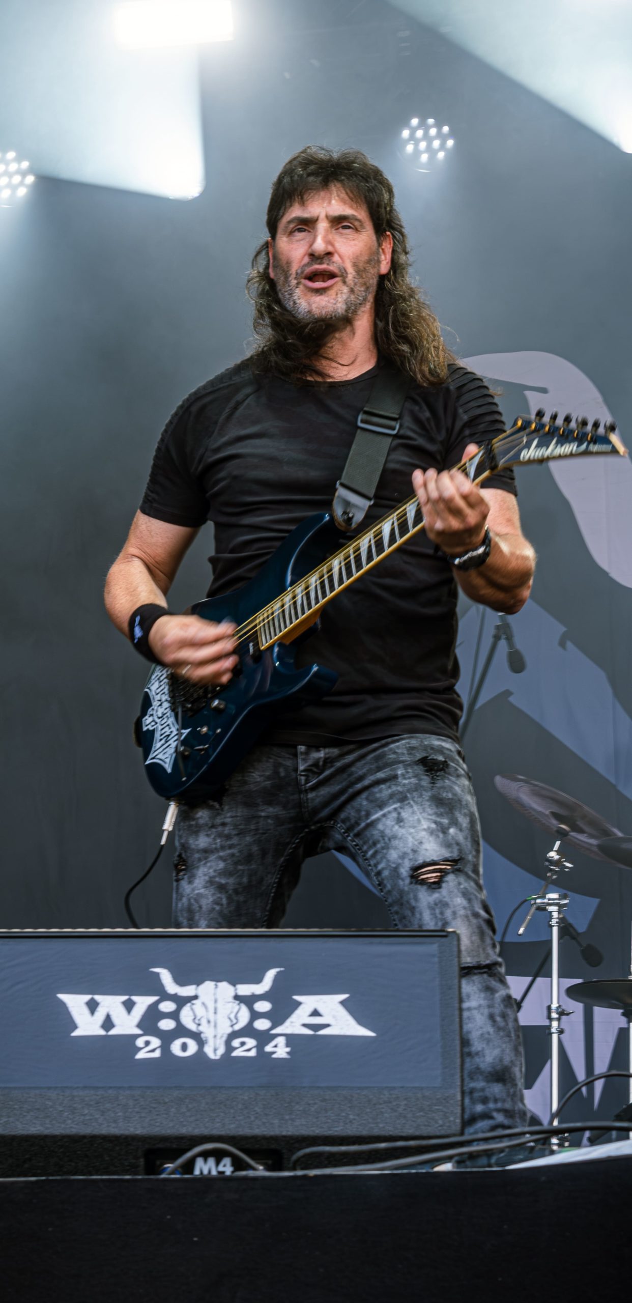 En tant que membre parfaitement complémentaire de notre duo désormais bien rôdé, j’opte pour le show de Scorpions pendant que Ségolène assiste à celui de Corvus Corax, ce pour quoi je ne me fais pas prier. Non seulement parce que le groupe dispose d’un répertoire à rendre jaloux pas mal de combos, et non des moindres, mais aussi et surtout parce que cette tournée 2024 vise à célébrer les quarante ans de l’album de tous les records, Love at First Sting. Celui-ci sera interprété dans son intégralité, les titres étant toutefois joués dans un ordre différent de ce qu’il est sur disque, et entrecoupé de classiques plutôt que présenté d’une traite. Une option aussi valable qu’une autre. Ainsi, le tonitruant Coming Home ouvrira le bal et Big City Nights verra la charmante Doro, amie de toujours des Scorps, venir seconder Klaus Meine avant un premier baisser de rideau. En rappel, l’inoxydable Still Loving You et le revigorant Rock You like a Hurricane achèvent la journée et le public. Un groupe convainquant sur scène, un show lumineux dans tous les sens du terne et une set list en béton : bravo les Scorps ! [Oli]