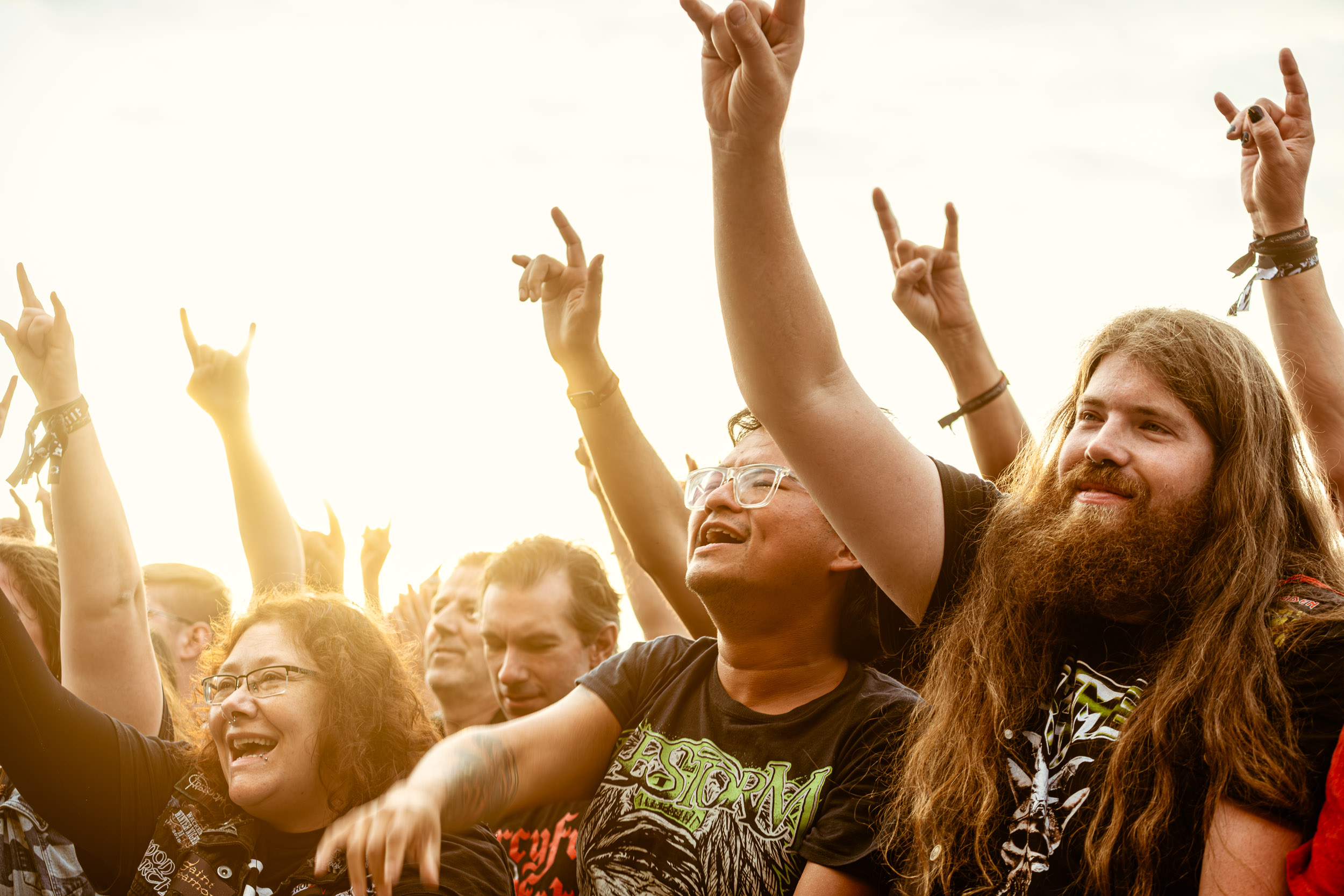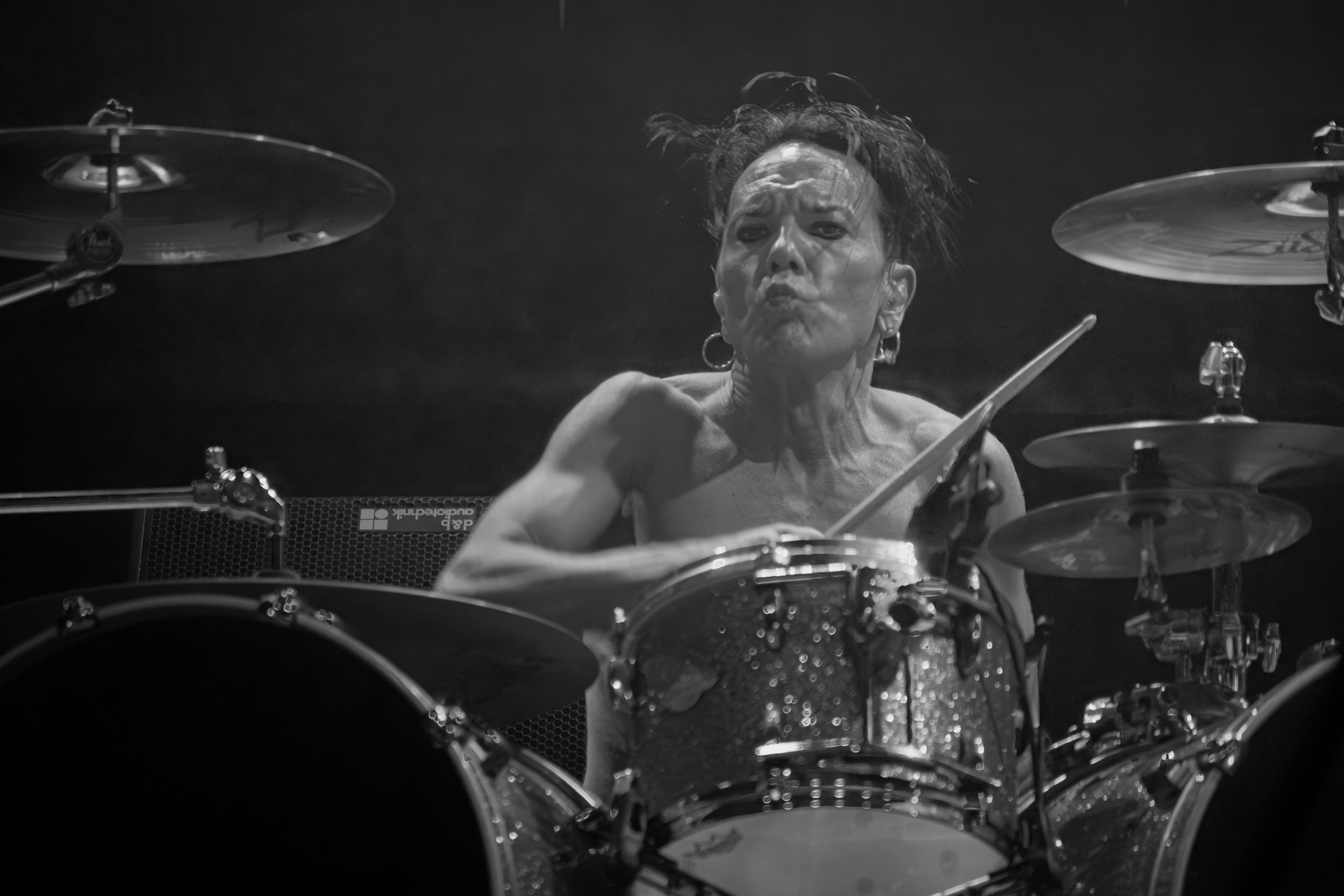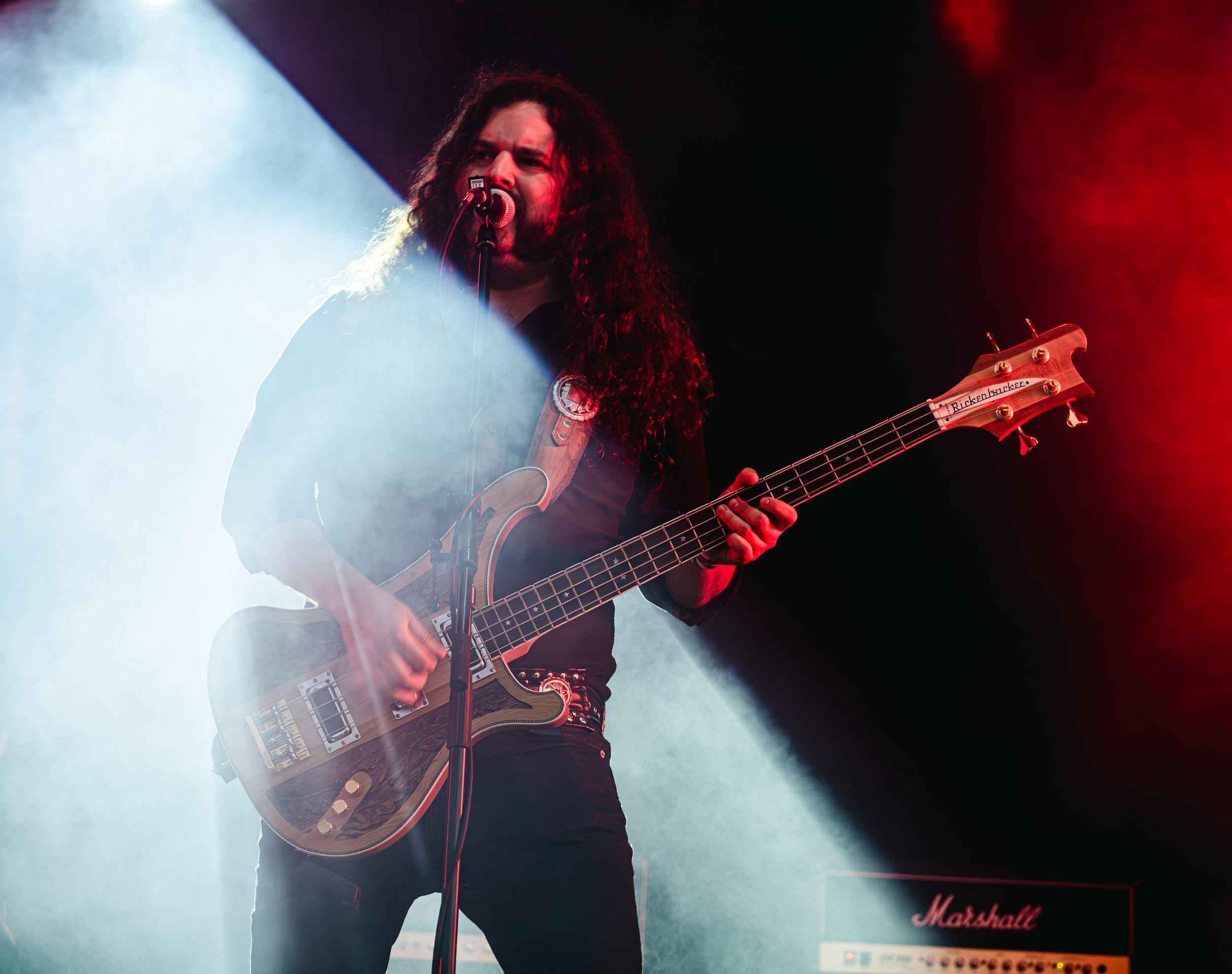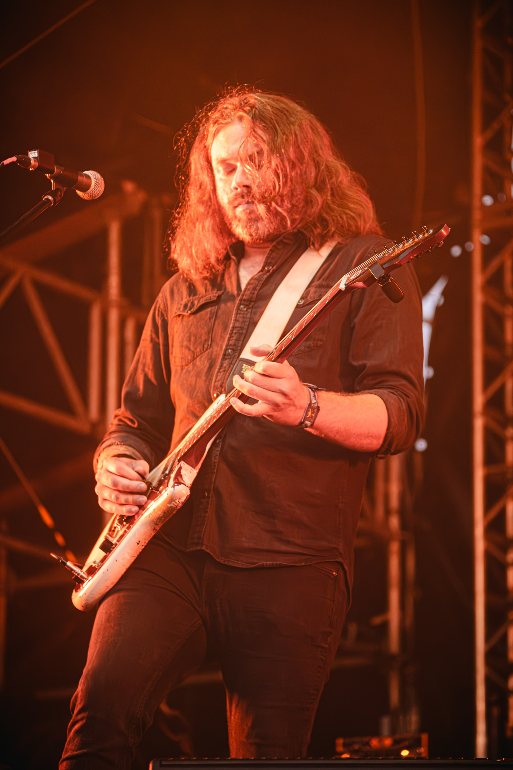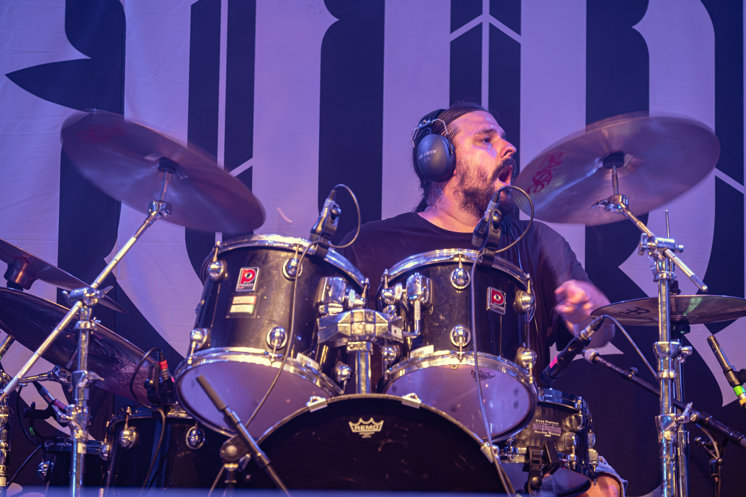 Après avoir assisté à la fin du show de Blind Guardian — qui me donne le plaisir d’entendre en live Sacred Worlds, un de mes morceaux préférés —, et alors que l’arrivée de Korn sur la Harder Stage rassemble une foule monstrueuse sur l’Infield, je retourne vers la Headbangers Stage pour Unleash the Archers — encore du power metal, et encore un groupe à chant féminin ! Il se distingue toutefois de ceux qui l’ont précédé, ceci sur pas mal de points. À commencer par son approche rétro-futuriste d’inspiration disco/funk des 80’s, particulièrement bien mis en avant sur son dernier album en date Phantoma. La chanteuse Brittney Slayes porte son incarnation de l’héroïne de l’opus jusqu’à la scène, arborant un costume de robot humanoïde. Sa voix chaleureuse de contralto contribue aussi en bonne partie à l’identité du groupe, à contre-courant des chants lyriques ou blues auxquels le genre est habitué, et ayant quelque chose d’apaisant. La grande brune se montre également très sympathique vis-à-vis du public, qu’elle remercie très aimablement et avec le sourire. Ses comparses guitaristes se montrent quant à eux très virtuoses, tandis que le bassiste Nick Miller vit clairement sa meilleure vie. Unleash the Archers apparaît ainsi comme un groupe sachant mêler influences old-school et modernes, autant musicalement que dans son état d’esprit, et qui mérite largement son succès. Seul petit bémol pour moi : le scream du guitariste Grant Tuesdell est samplé, ce qui retire un peu à la prestation. [Ségolène]