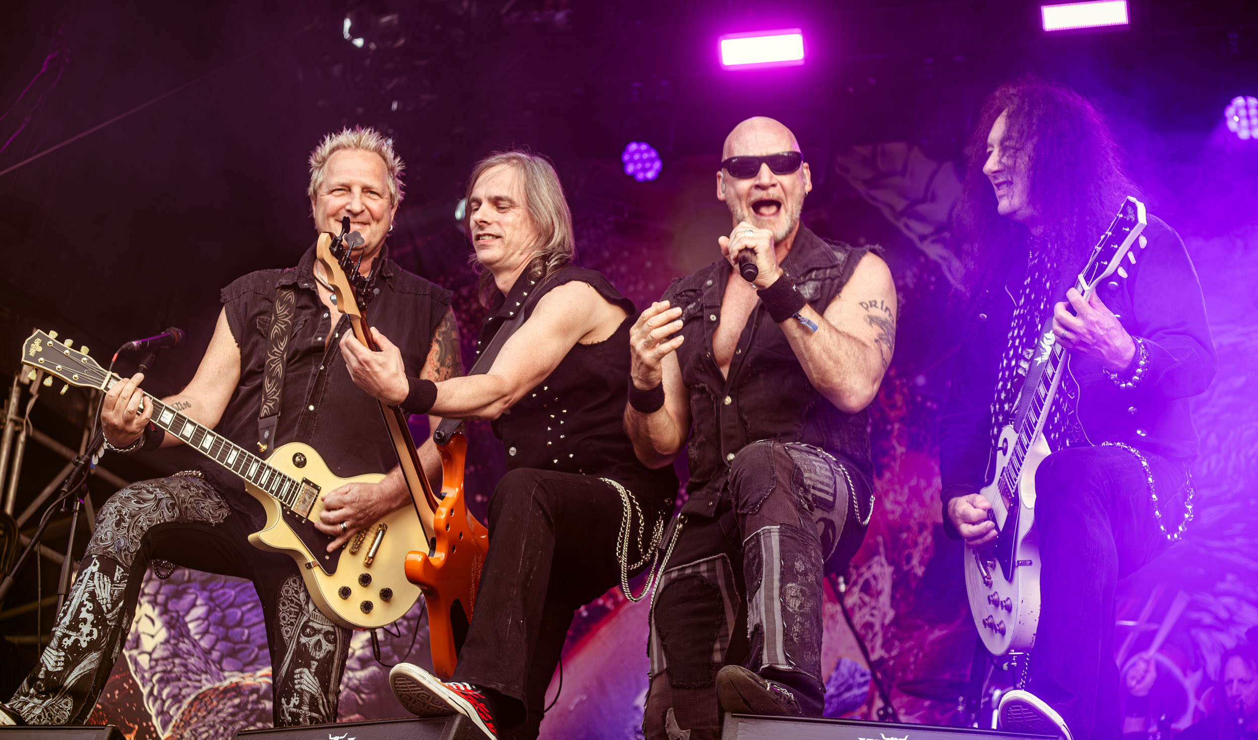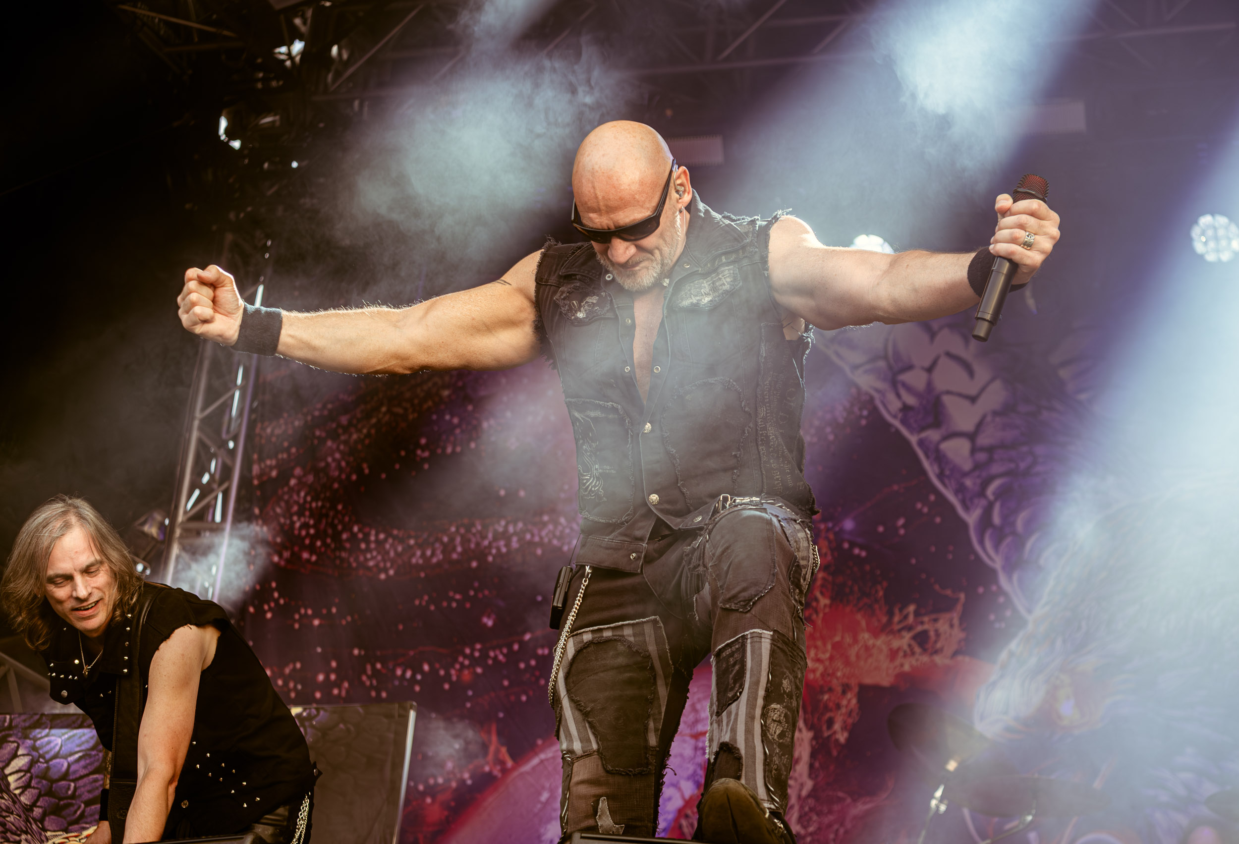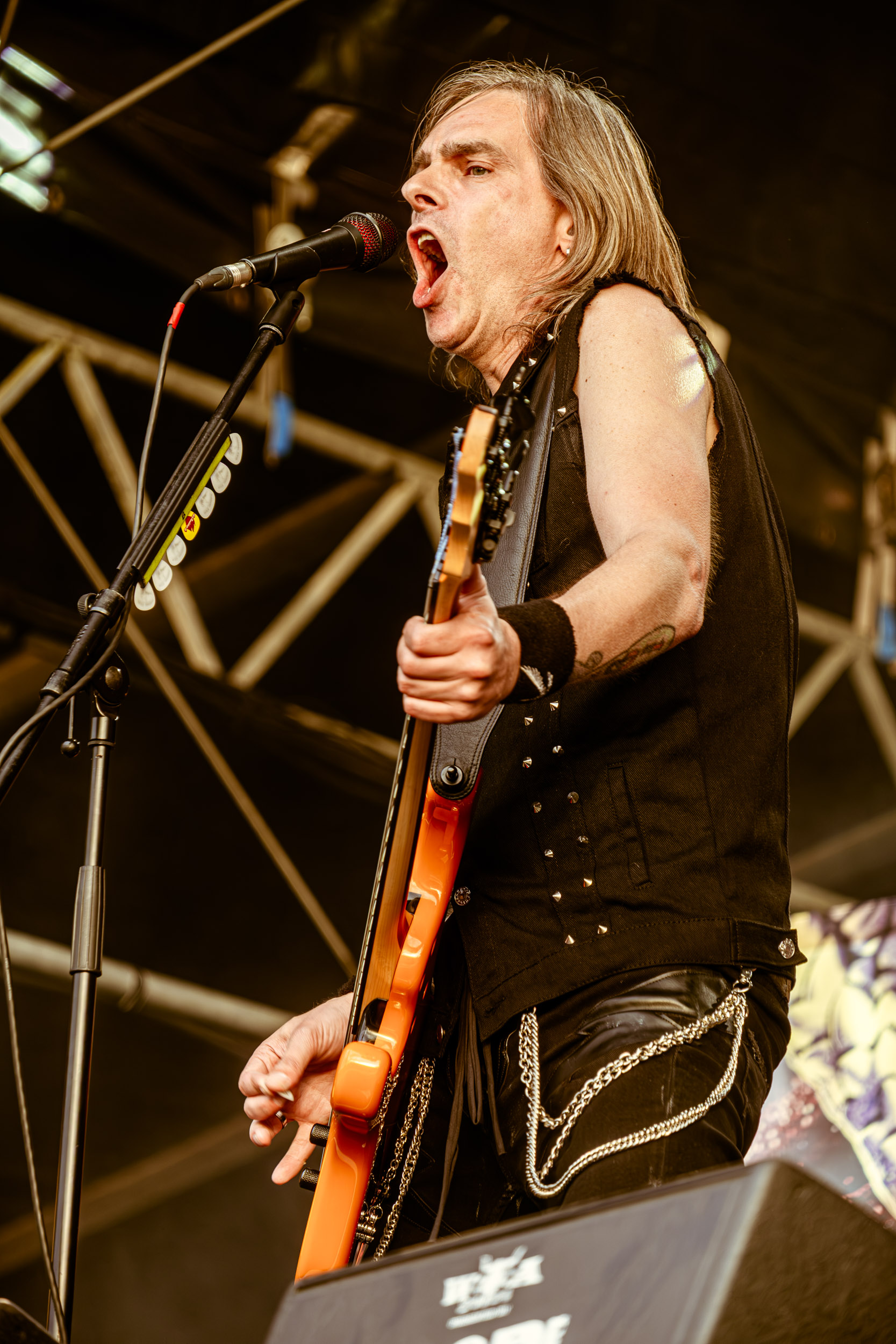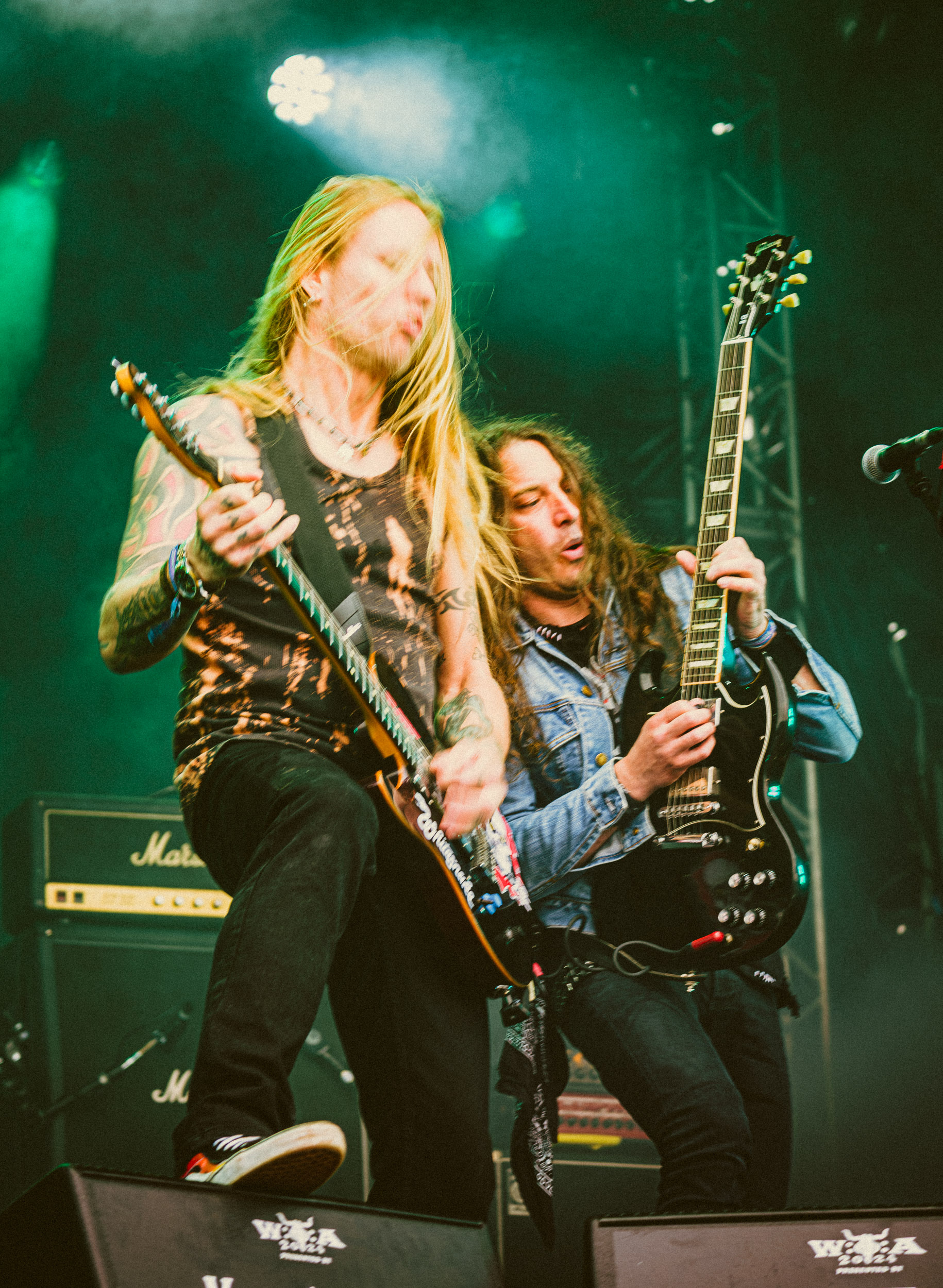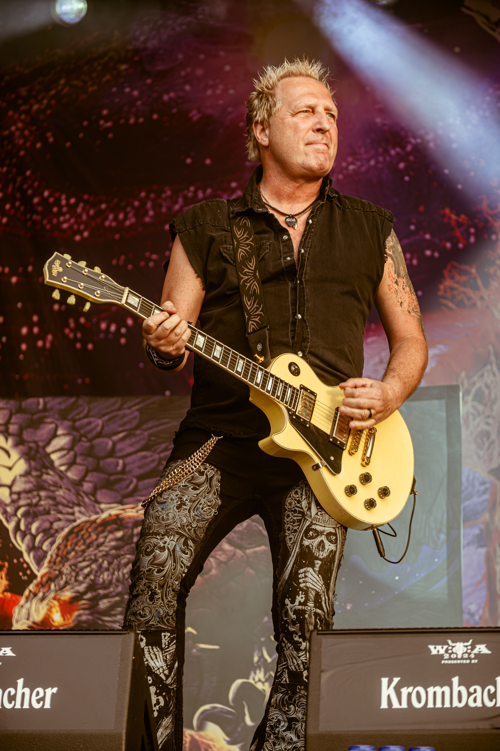 Après une expérience dans le pit photo de la Harder Stage pour le moins… étrange, qui a principalement consisté à regarder Gene Simmons faire monter des enfants sur scène sans pouvoir faire autrement qu’attendre que ce dernier et ses comparses se décident à recommencer à jouer, et n’étant adepte ni de la musique de Kiss ni des longs discours servant à meubler les vides entre les morceaux, je décide d’aller me changer les idées devant un autre concert. Pour cela, quoi de tel que Primal Fear sur la Headbangers Stage ? Mené de front par Ralf Scheepers et la classe incontournable de ses lunettes de soleil, le groupe commence par briser les chaînes avec Chainbreaker avant d’entraîner le public dans un grand Rollercoaster. Après ce début de set, The World is on Fire, le groupe et les spectateurs aussi ! Par la suite, Primal Fear ne lâche rien et continue dans cette lignée, livrant une succession d’hymnes héroïques heavy/power à la sauce années 90 et 2000, des plus récents extraits du nouvel album « plus si nouveau que ça », Code Red, aux plus anciens. Outre la musique, l’autre grande force de Primal Fear réside dans l’électrisante bonne humeur des musiciens et la complicité qu’ils partagent, en particulier les deux membres fondateurs Ralf Scheepers et le bassiste Mat Sinner, éternels inséparables. En bon showman, le chanteur apporte une touche de théâtralité à l’annonce des morceaux ; j’en citerai pour exemple ce moment où il fait pousser aux spectateurs des cris façon heavy metal avant de déclarer qu’ « on n’a pas besoin d’un autre héros »… mais en fait, si, et ce héros, c’est nous ! Façon originale d’annoncer le morceau Another Hero. Plus tard, il évoque le souvenir d’un concert qu’il a donné avec Gamma Ray alors tête d’affiche du Wacken 1994, joué depuis un véhicule. Autant de petites et grandes choses qui confirment le statut de Primal Fear comme l’un des groupes les plus cool du monde ! [Ségolène]
