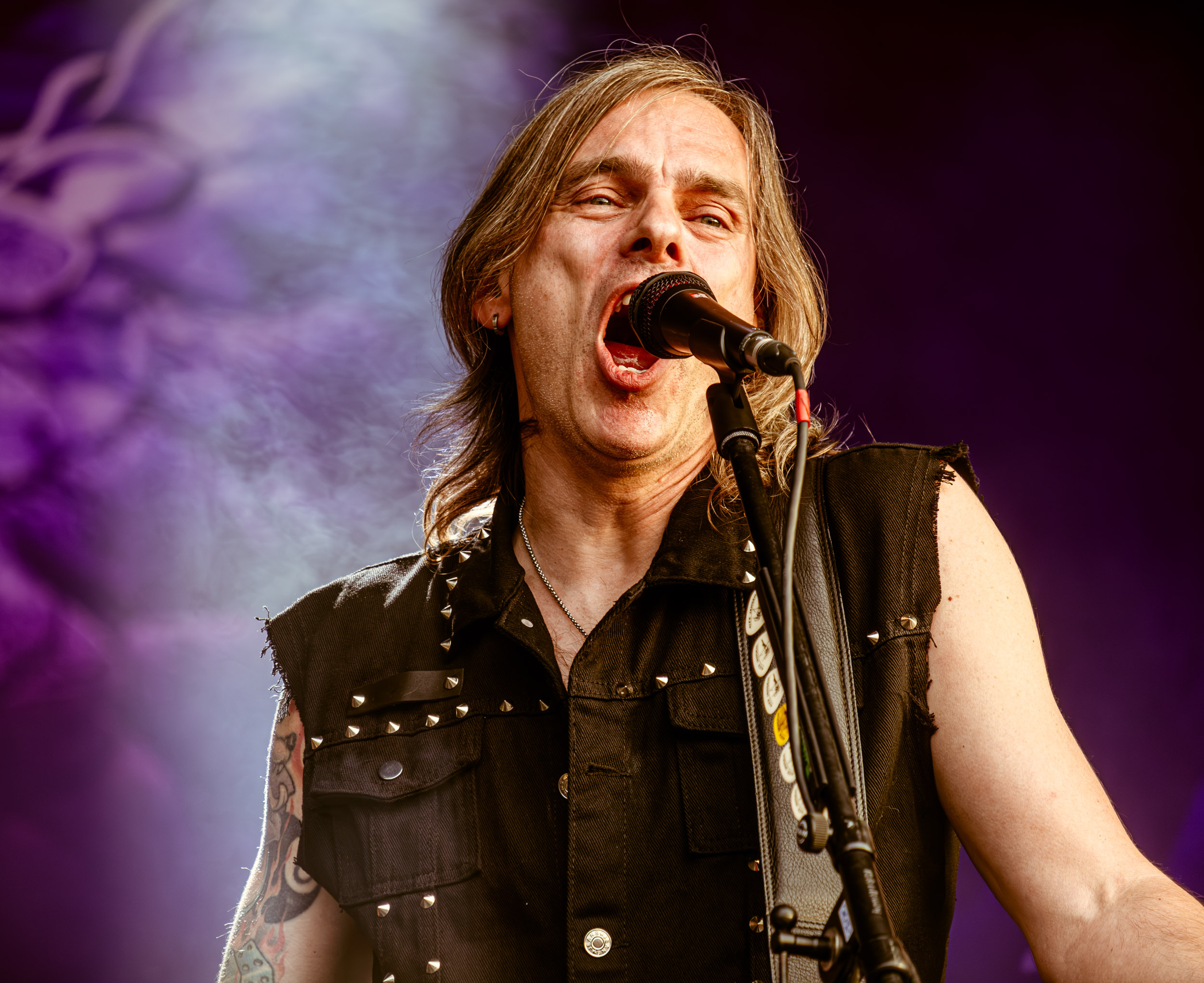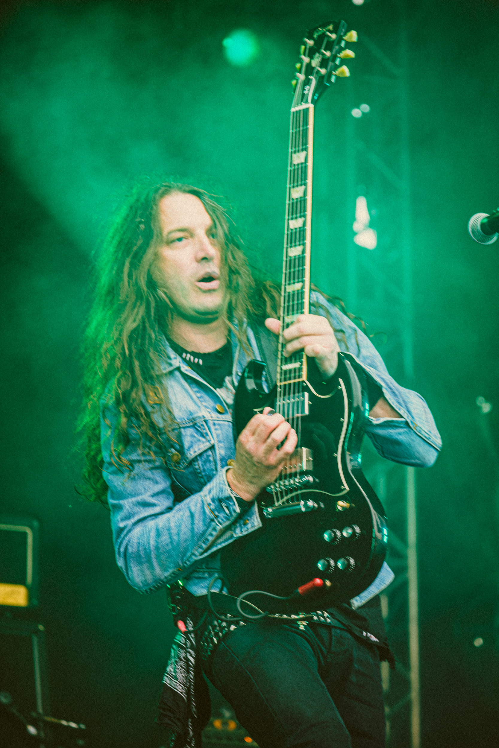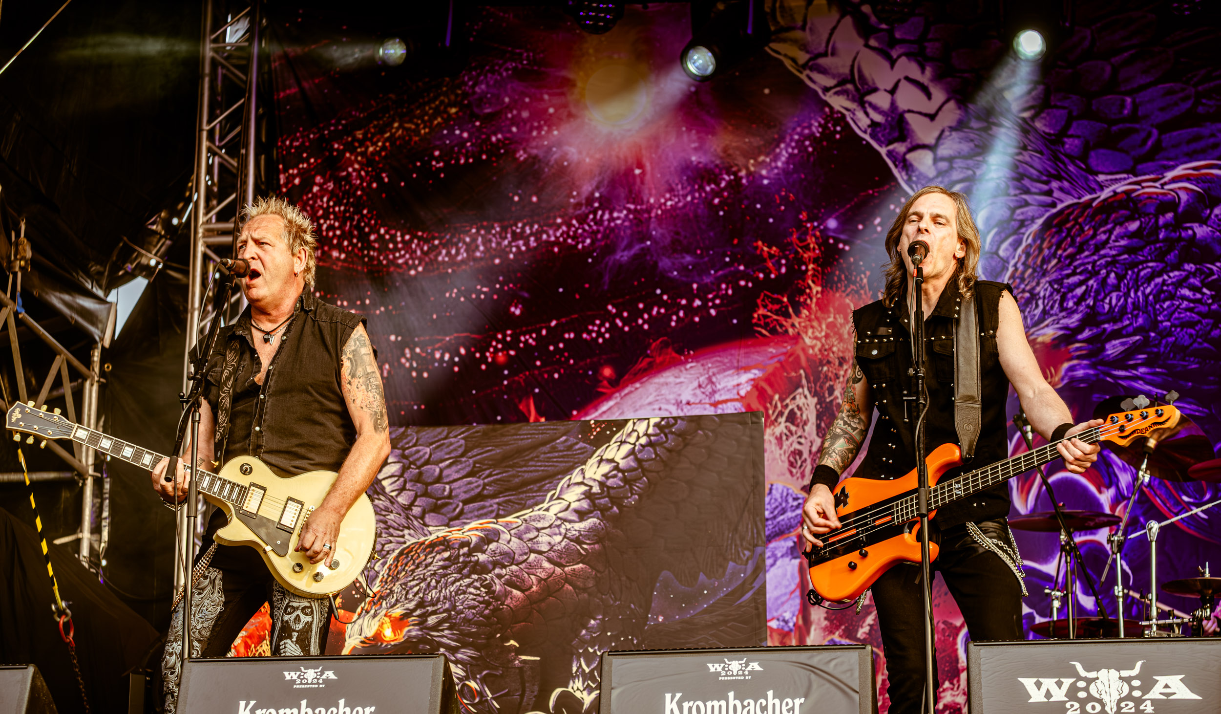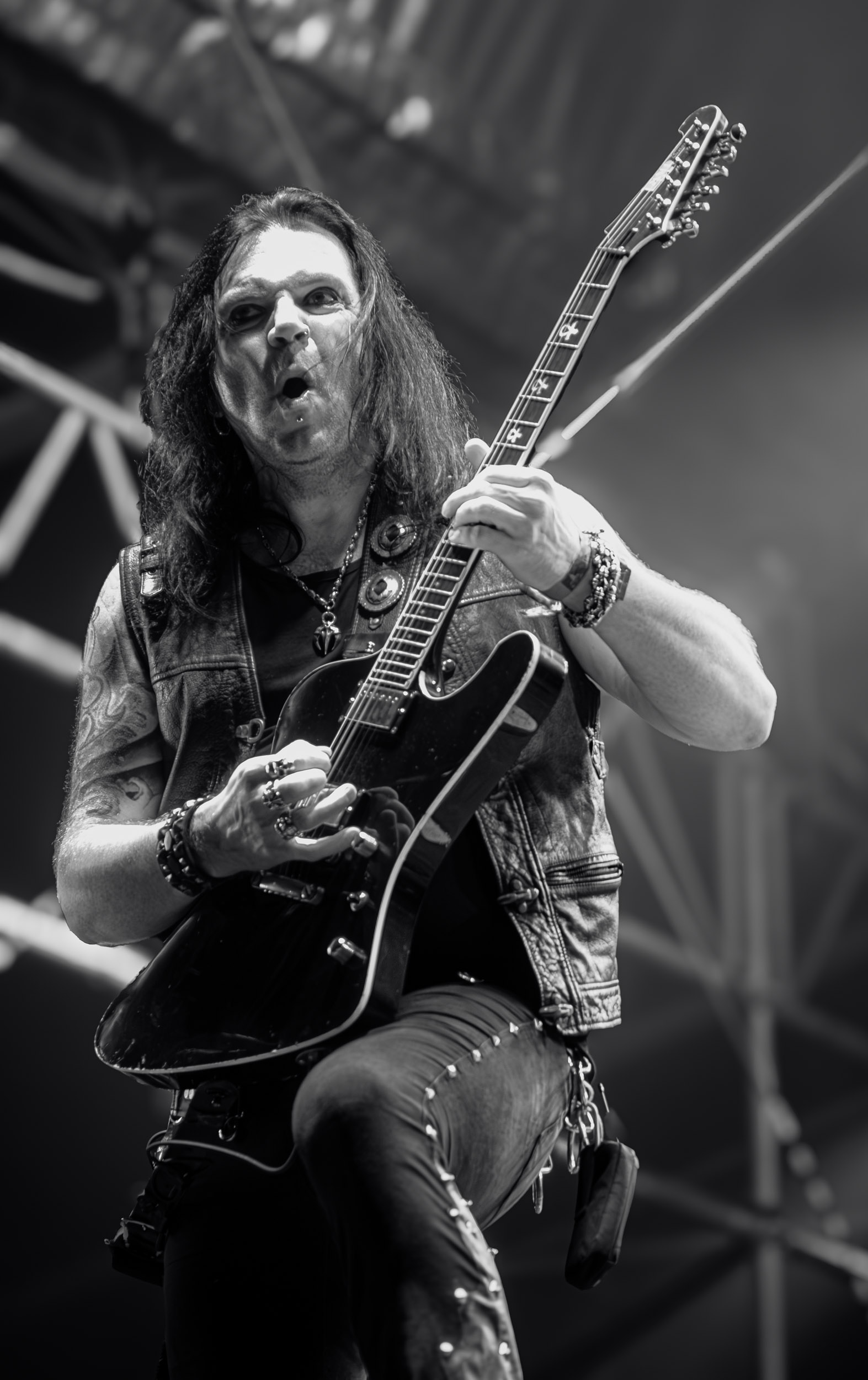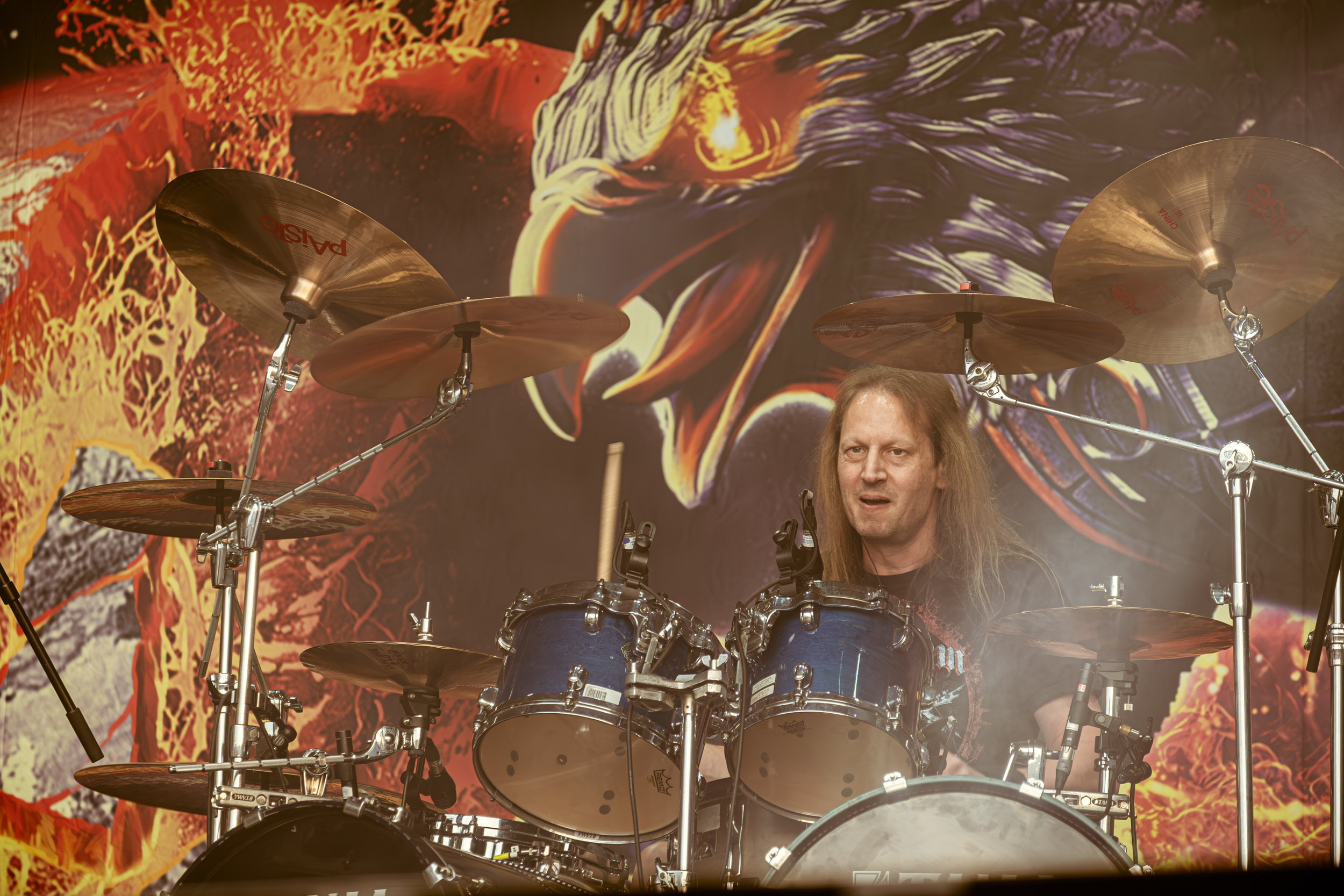 Après une expérience dans le pit photo de la Harder Stage pour le moins… étrange, qui a principalement consisté à regarder Gene Simmons faire monter des enfants sur scène sans pouvoir faire autrement qu’attendre que ce dernier et ses comparses se décident à recommencer à jouer, et n’étant adepte ni de la musique de Kiss ni des longs discours servant à meubler les vides entre les morceaux, je décide d’aller me changer les idées devant un autre concert. Pour cela, quoi de tel que Primal Fear sur la Headbangers Stage ? Mené de front par Ralf Scheepers et la classe incontournable de ses lunettes de soleil, le groupe commence par briser les chaînes avec Chainbreaker avant d’entraîner le public dans un grand Rollercoaster. Après ce début de set, The World is on Fire, le groupe et les spectateurs aussi ! Par la suite, Primal Fear ne lâche rien et continue dans cette lignée, livrant une succession d’hymnes héroïques heavy/power à la sauce années 90 et 2000, des plus récents extraits du nouvel album « plus si nouveau que ça », Code Red, aux plus anciens. Outre la musique, l’autre grande force de Primal Fear réside dans l’électrisante bonne humeur des musiciens et la complicité qu’ils partagent, en particulier les deux membres fondateurs Ralf Scheepers et le bassiste Mat Sinner, éternels inséparables. En bon showman, le chanteur apporte une touche de théâtralité à l’annonce des morceaux ; j’en citerai pour exemple ce moment où il fait pousser aux spectateurs des cris façon heavy metal avant de déclarer qu’ « on n’a pas besoin d’un autre héros »… mais en fait, si, et ce héros, c’est nous ! Façon originale d’annoncer le morceau Another Hero. Plus tard, il évoque le souvenir d’un concert qu’il a donné avec Gamma Ray alors tête d’affiche du Wacken 1994, joué depuis un véhicule. Autant de petites et grandes choses qui confirment le statut de Primal Fear comme l’un des groupes les plus cool du monde ! [Ségolène]