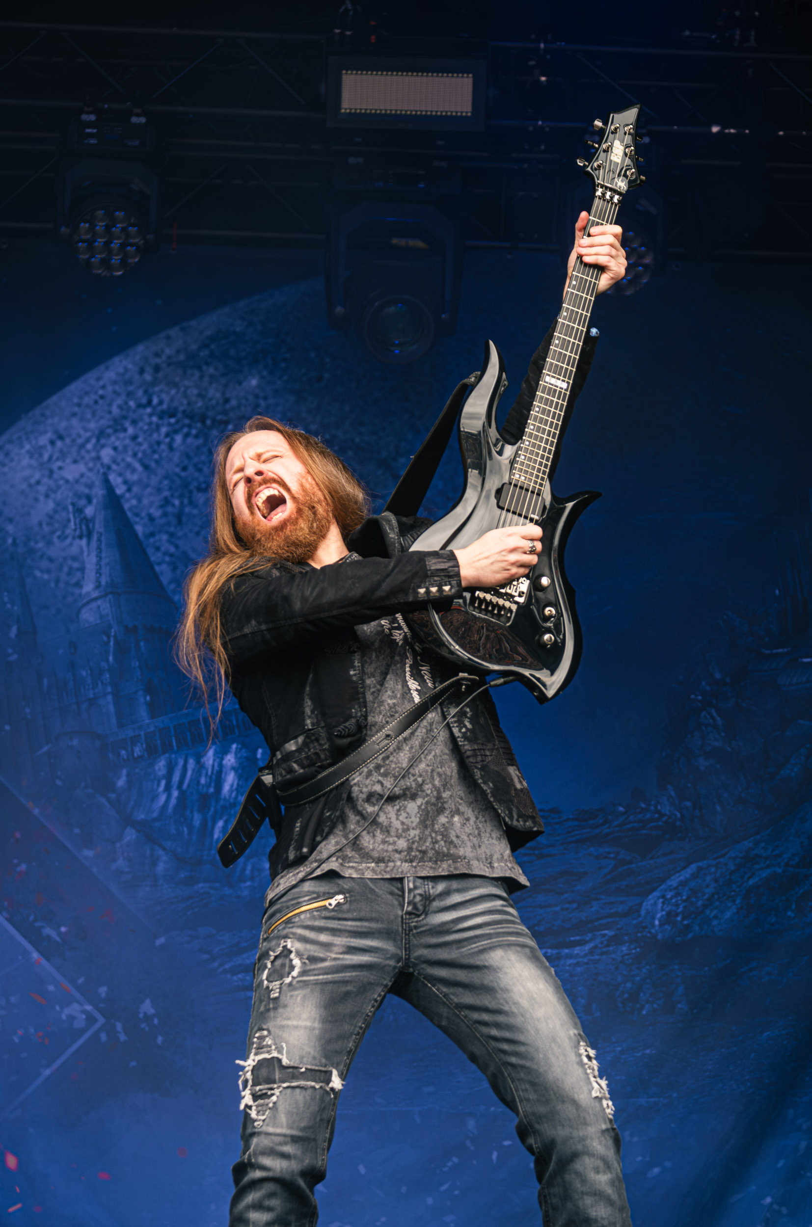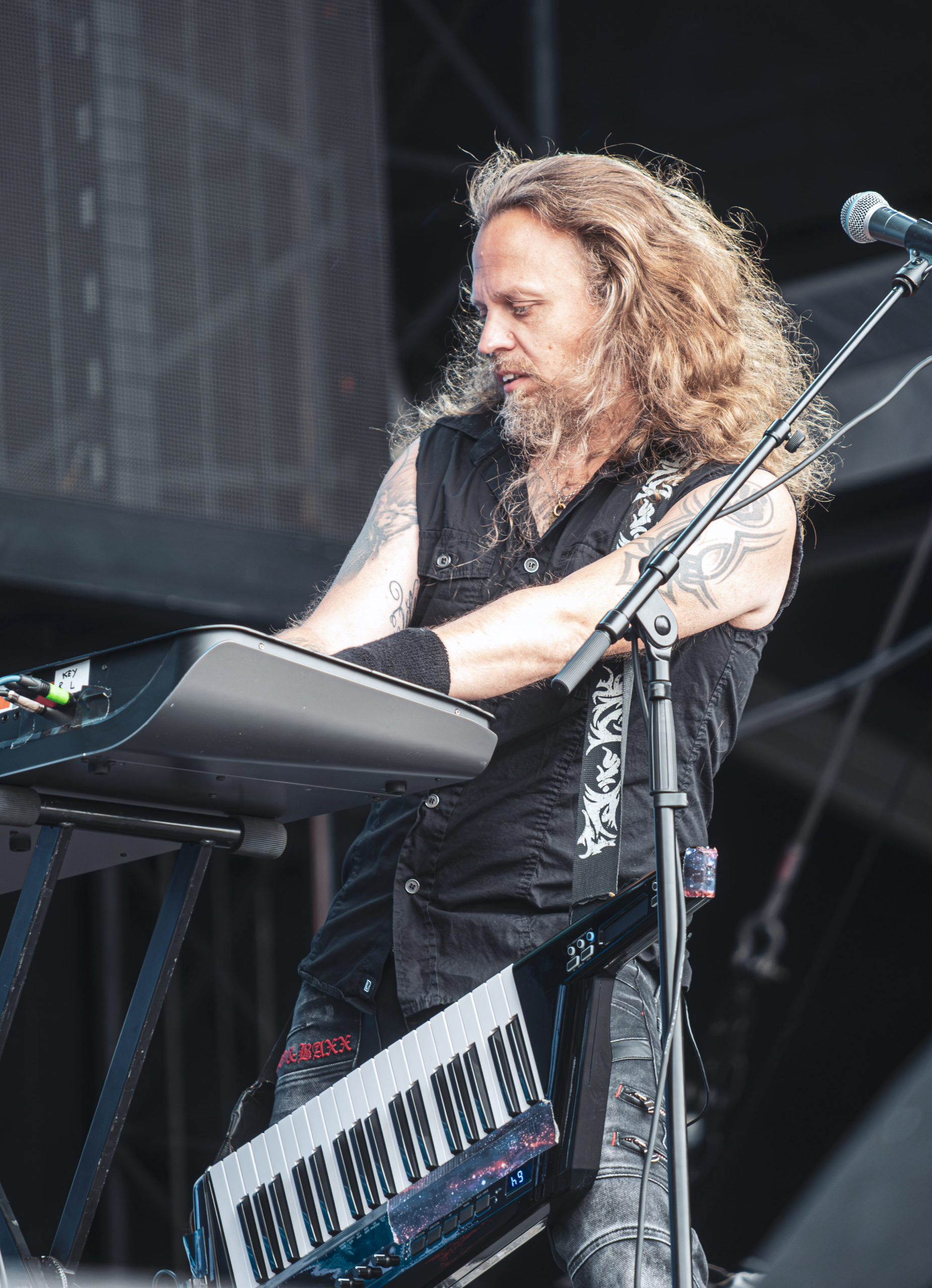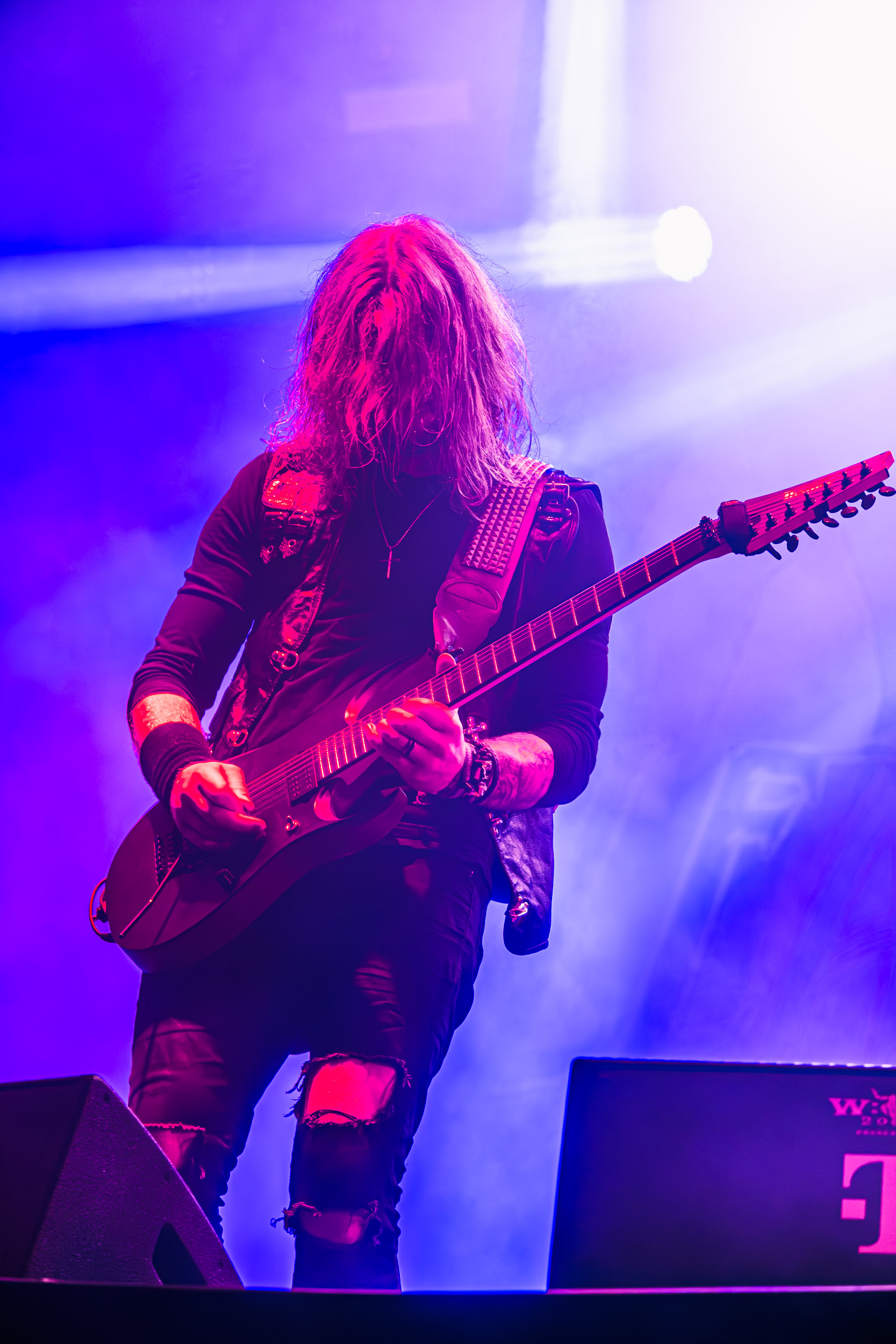 Sonata Arctica comptant parmi les groupes phares de ma vie de metalleuse, je n’allais sûrement pas laisser passer une occasion de le revoir — encore moins de le photographier. Et quelle meilleure occasion qu’un sublime nouvel album pour cela ? Le visuel de Clear Cold Beyond en backdrop, c’est justement sur deux extraits de celui-ci, First in Line suivi du plus sombre Dark Empath, que le quintet finlandais ouvre le bal ; le moins que l’on puisse dire, c’est qu’ils passent déjà plus que bien ! Suit un retour plus de dix ans en arrière avec I Have a Right, extrait de l’album Stones Grow Her Name ; après quoi je ressors du pit déjà très émue et reconnaissante de la chance qui m’est accordée d’observer de près de tels musiciens mettant autant d’eux-mêmes dans leur prestation et, au vu de ce que j’observe des réactions de mes collègues photographes, certains sont d’accord avec moi… C’est en retrait de la foule que j’assiste au reste de la prestation, qui débute avec The Wolves Die Young. Deux autres extraits du nouvel album trouvent leur place dans la setlist : le tube de l’été feel-good California, qui donne l’occasion au public de taper dans les mains avec Tony Kakko, puis Angel Defiled. Détail amusant : Sonata Arctica nous fait la petite surprise de faire la photo de fin de concert avec le public… en milieu de set ! Après quoi, l’émotion revient au cœur du show lorsque le groupe joue deux de ses mid-tempo les plus cultes. En premier, la ballade sentimentale Tallulah ; ensuite Replica, dont les musiciens livrent une interprétation semi-acoustique — qui commence avec eux jouant assis — quelques tons plus bas que l’originale. Dans tous les cas, les spectateurs reprennent les refrains en chœur et, de mon côté, je ne cache pas manquer verser une petite larme… Enfin, après que Tony Kakko a remercié avec force tendresse le public de « faire vivre la musique live », le set s’achève avec Don’t Say a Word, sur lequel le frontman rit comme un possédé ! Sur une durée qui a paru filer bien vite, Sonata Arctica, à défaut de faire revenir le soleil dans le ciel couvert du jour, a amené une dose de chaleur estivale sur le Wacken Open Air — ironique pour un groupe venu d’un pays réputé pour sa froideur ! [Ségolène]