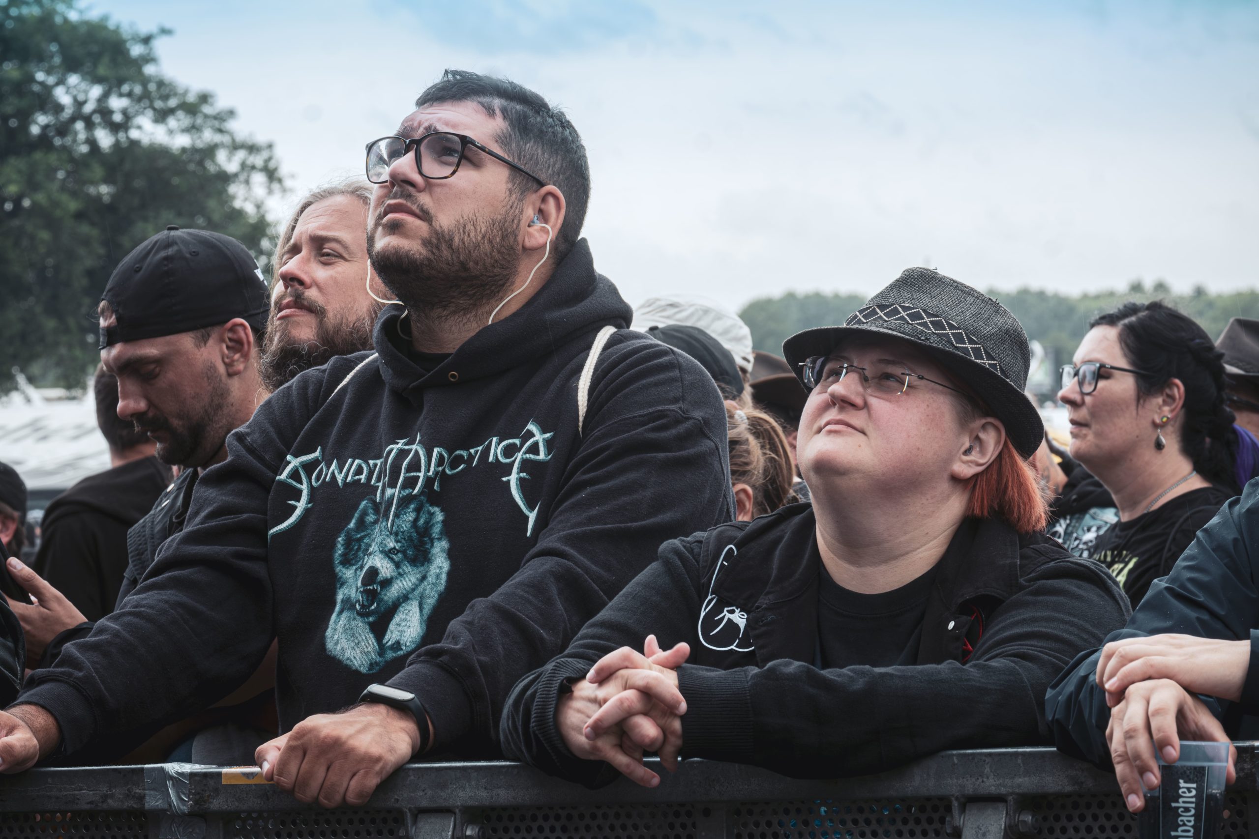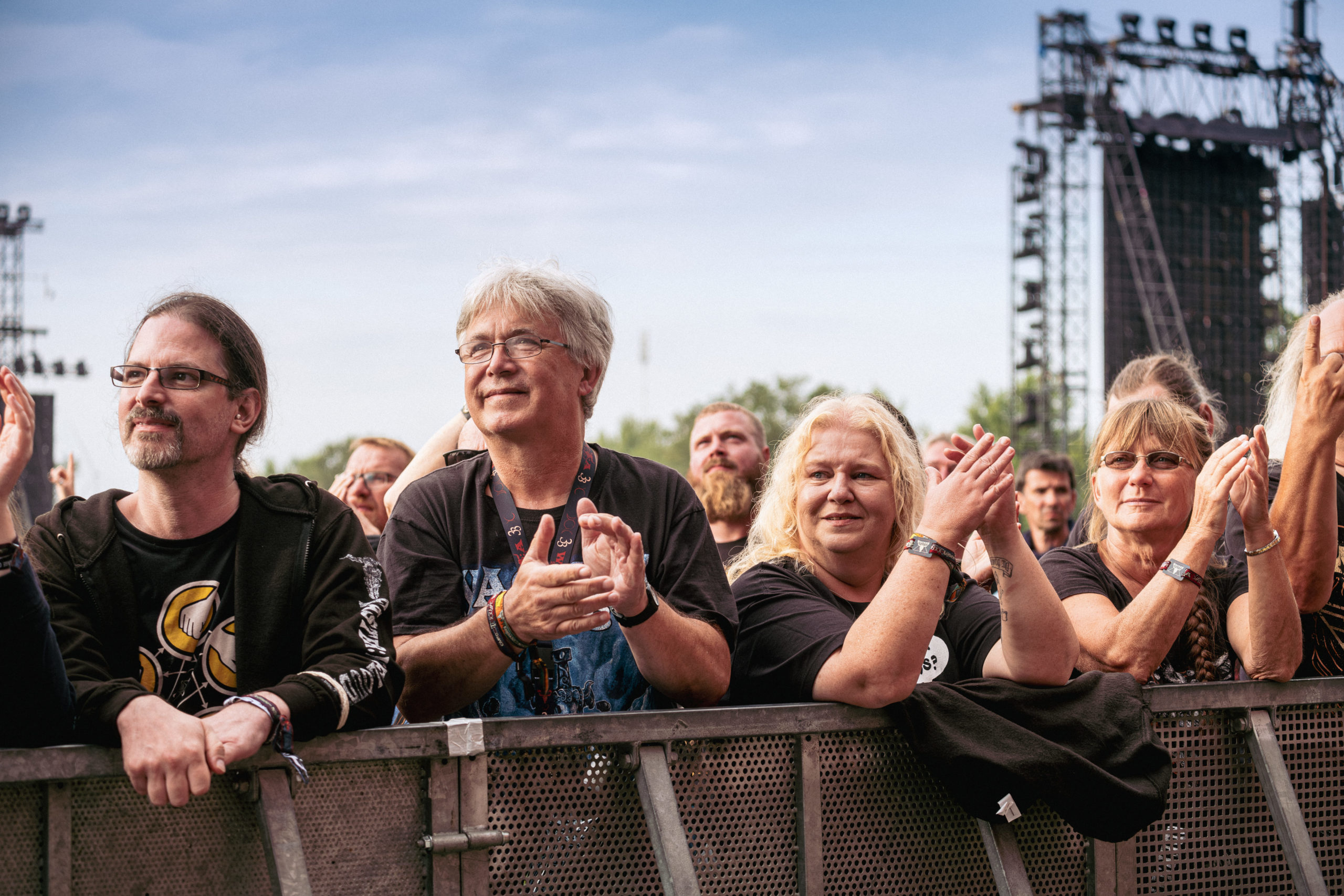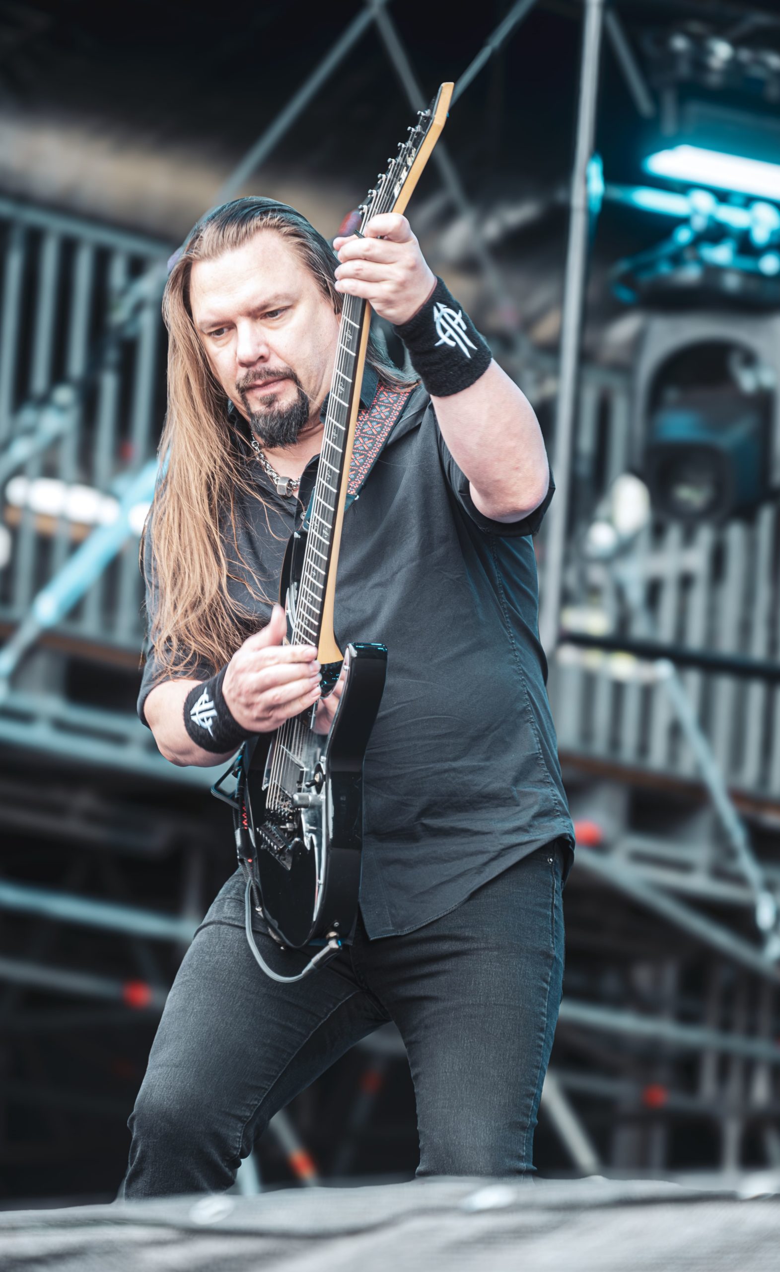Sonata Arctica comptant parmi les groupes phares de ma vie de metalleuse, je n’allais sûrement pas laisser passer une occasion de le revoir — encore moins de le photographier. Et quelle meilleure occasion qu’un sublime nouvel album pour cela ? Le visuel de Clear Cold Beyond en backdrop, c’est justement sur deux extraits de celui-ci, First in Line suivi du plus sombre Dark Empath, que le quintet finlandais ouvre le bal ; le moins que l’on puisse dire, c’est qu’ils passent déjà plus que bien ! Suit un retour plus de dix ans en arrière avec I Have a Right, extrait de l’album Stones Grow Her Name ; après quoi je ressors du pit déjà très émue et reconnaissante de la chance qui m’est accordée d’observer de près de tels musiciens mettant autant d’eux-mêmes dans leur prestation et, au vu de ce que j’observe des réactions de mes collègues photographes, certains sont d’accord avec moi… C’est en retrait de la foule que j’assiste au reste de la prestation, qui débute avec The Wolves Die Young. Deux autres extraits du nouvel album trouvent leur place dans la setlist : le tube de l’été feel-good California, qui donne l’occasion au public de taper dans les mains avec Tony Kakko, puis Angel Defiled. Détail amusant : Sonata Arctica nous fait la petite surprise de faire la photo de fin de concert avec le public… en milieu de set ! Après quoi, l’émotion revient au cœur du show lorsque le groupe joue deux de ses mid-tempo les plus cultes. En premier, la ballade sentimentale Tallulah ; ensuite Replica, dont les musiciens livrent une interprétation semi-acoustique — qui commence avec eux jouant assis — quelques tons plus bas que l’originale. Dans tous les cas, les spectateurs reprennent les refrains en chœur et, de mon côté, je ne cache pas manquer verser une petite larme… Enfin, après que Tony Kakko a remercié avec force tendresse le public de « faire vivre la musique live », le set s’achève avec Don’t Say a Word, sur lequel le frontman rit comme un possédé ! Sur une durée qui a paru filer bien vite, Sonata Arctica, à défaut de faire revenir le soleil dans le ciel couvert du jour, a amené une dose de chaleur estivale sur le Wacken Open Air — ironique pour un groupe venu d’un pays réputé pour sa froideur ! [Ségolène]