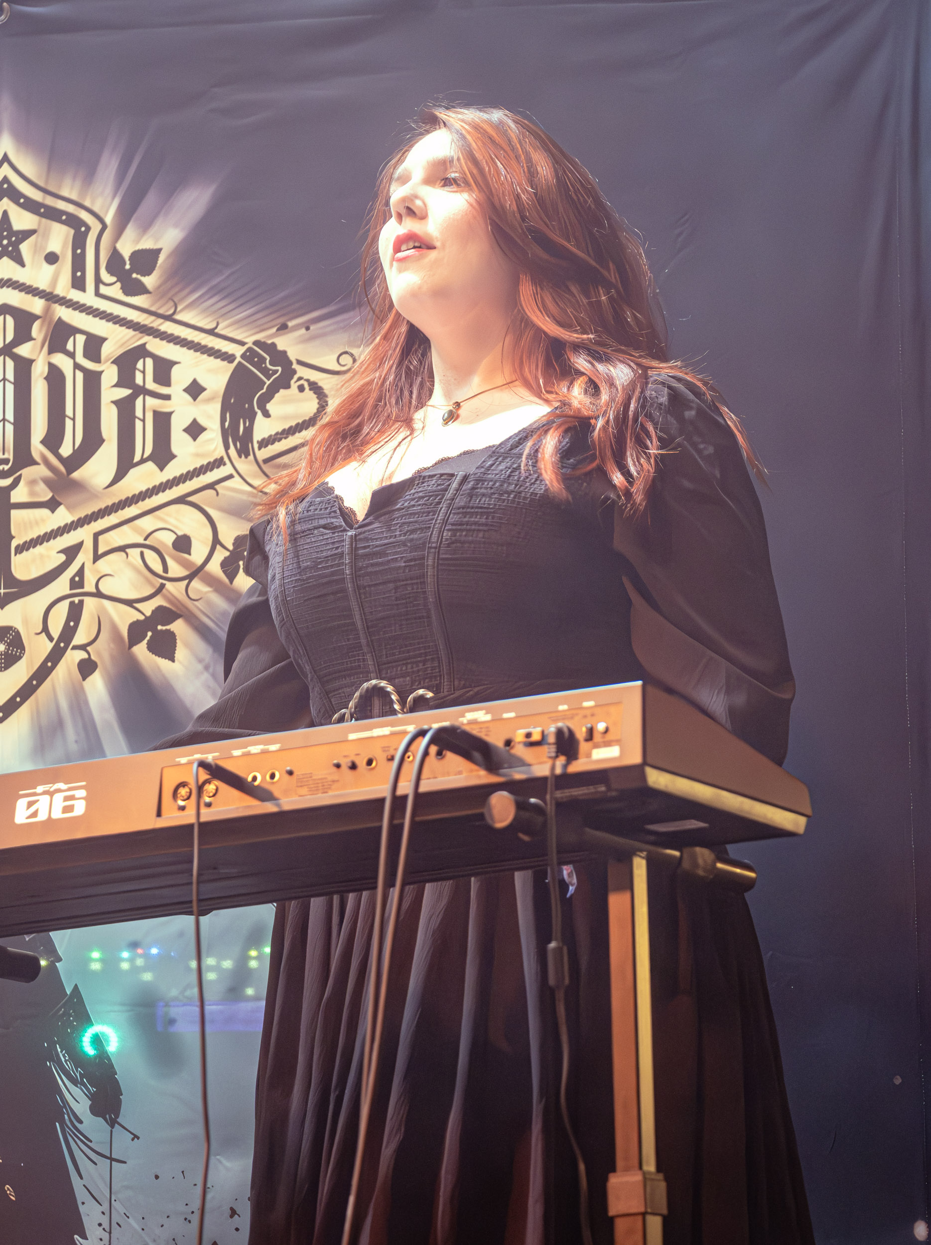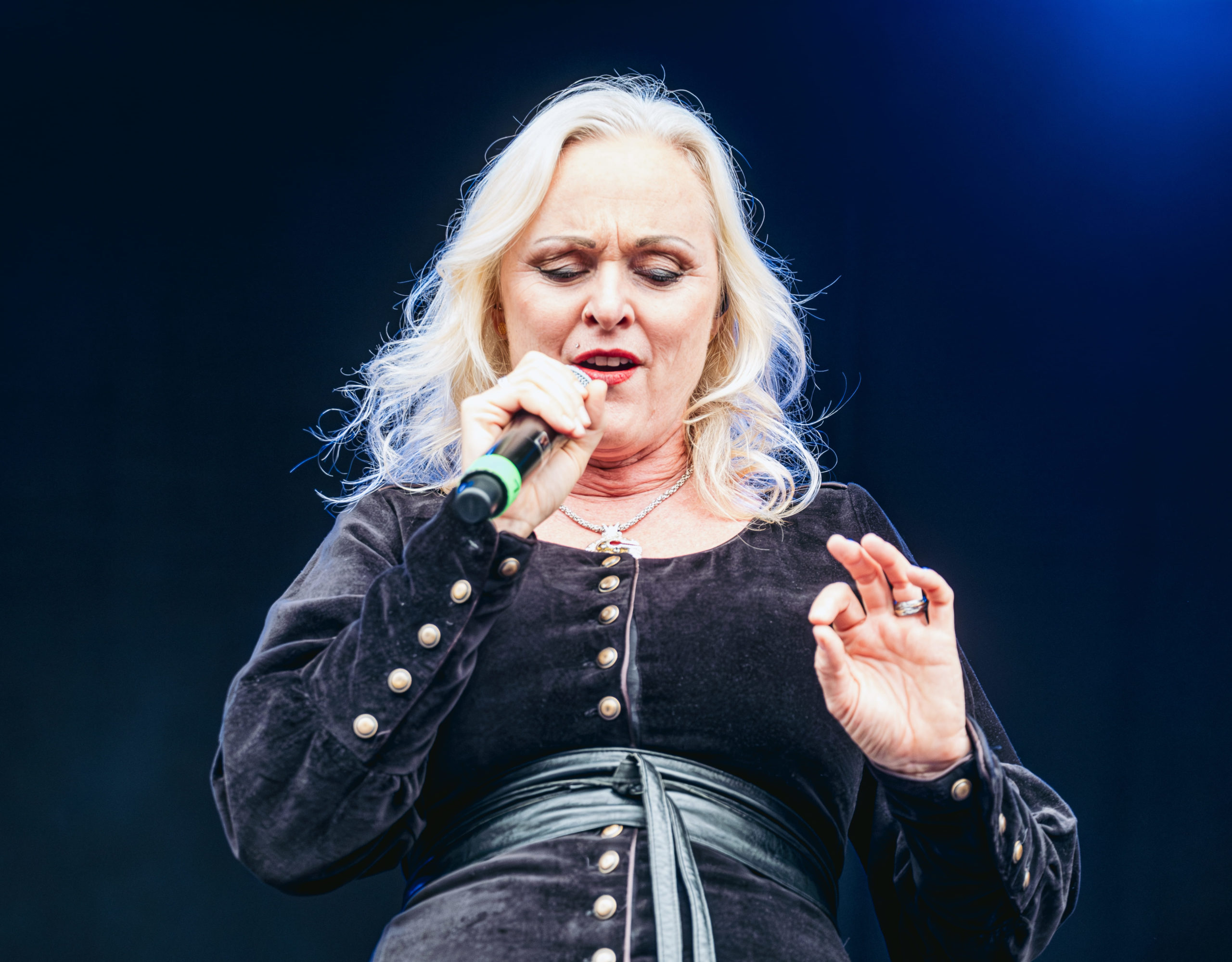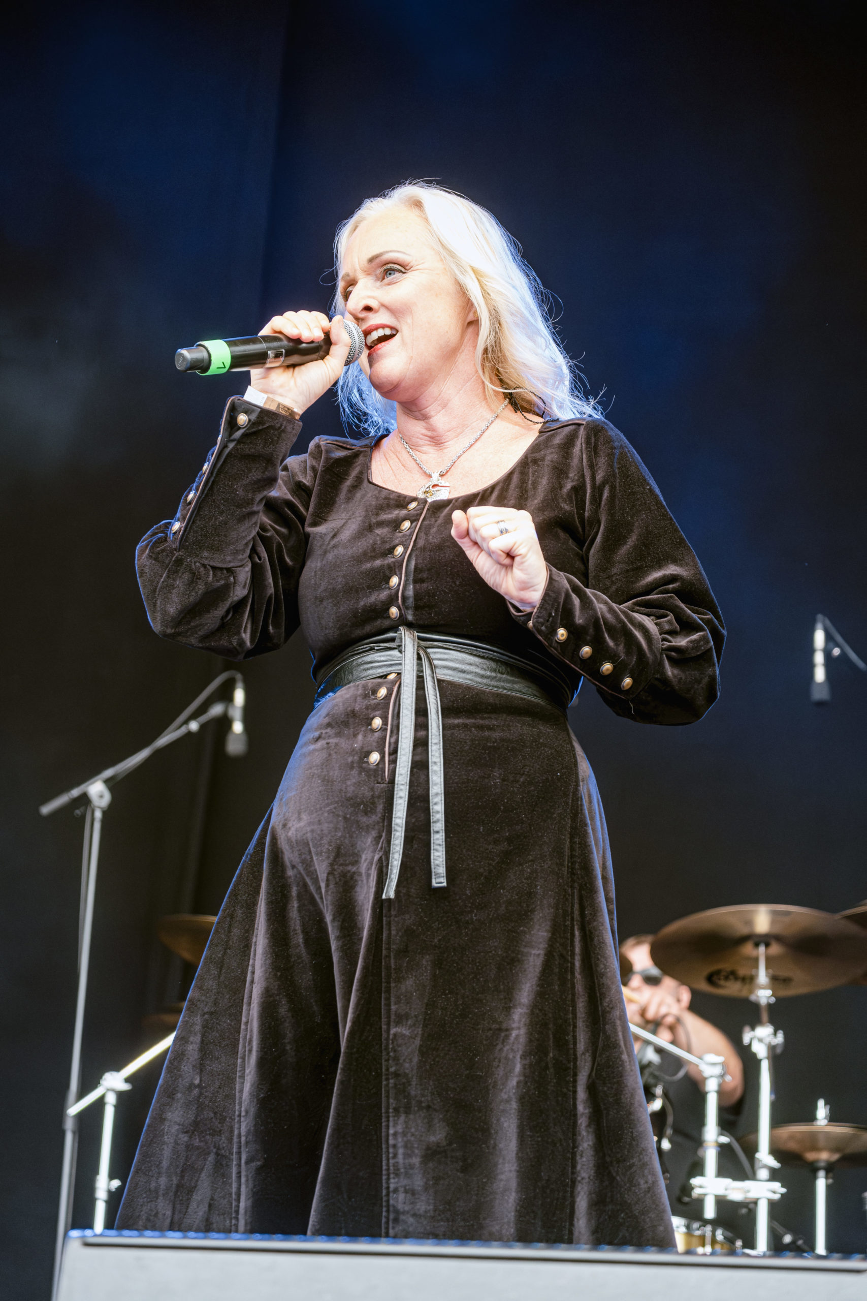 Mes pas me conduisent ensuite vers un autre grand nom du metal à chant féminin : celui de Liv Kristine, qui se produit sur la Wackinger Stage. Forte de sa longue et riche carrière — quoi qu’en perte de vitesse depuis son départ de Leaves’ Eyes —, la Norvégienne a bien des choses à partager avec un public qui lui reste fidèle de longue date. C’est toutefois avec quelques minutes de retard que la chanteuse entre en scène accompagnée de ses musiciens, pour ouvrir sur deux titres issus de sa carrière solo que sont Shaolin Me suivi de River of Diamonds. La suite de la setlist s’articule autour de plusieurs morceaux issus des années passées avec Theatre of Tragedy et Leaves’ Eyes ; comme quoi Liv Kristine a su cibler les attentes de son public, très attaché à ce passé qui semble lointain. Dans l’ensemble, le rythme est lent et l’ambiance paisible, et des spectateurs paraissent profiter de ce moment de calme pour se poser après quelques concerts sûrement plus agités. Peut-être un peu trop au regard de certains… Toujours en est-il qu’une profonde douceur se dégage de la chanteuse, autant dans sa voix ou dans sa gestuelle tout en retenue que lorsqu’elle s’adresse aux spectateurs entre deux morceaux pour évoquer ses souvenirs au festival avec ses deux anciens groupes. Quant aux musiciens qui l’accompagnent, ils semblent très heureux d’être sur cette scène, notamment le claviériste qui se montre très souriant, et très complices de leur meneuse Liv Kristine. Cette prestation ressort alors comme une parenthèse nostalgique dans le running order du jour, pas la plus indispensable mais réconfortante pour qui s’y montre réceptif. [Ségolène]