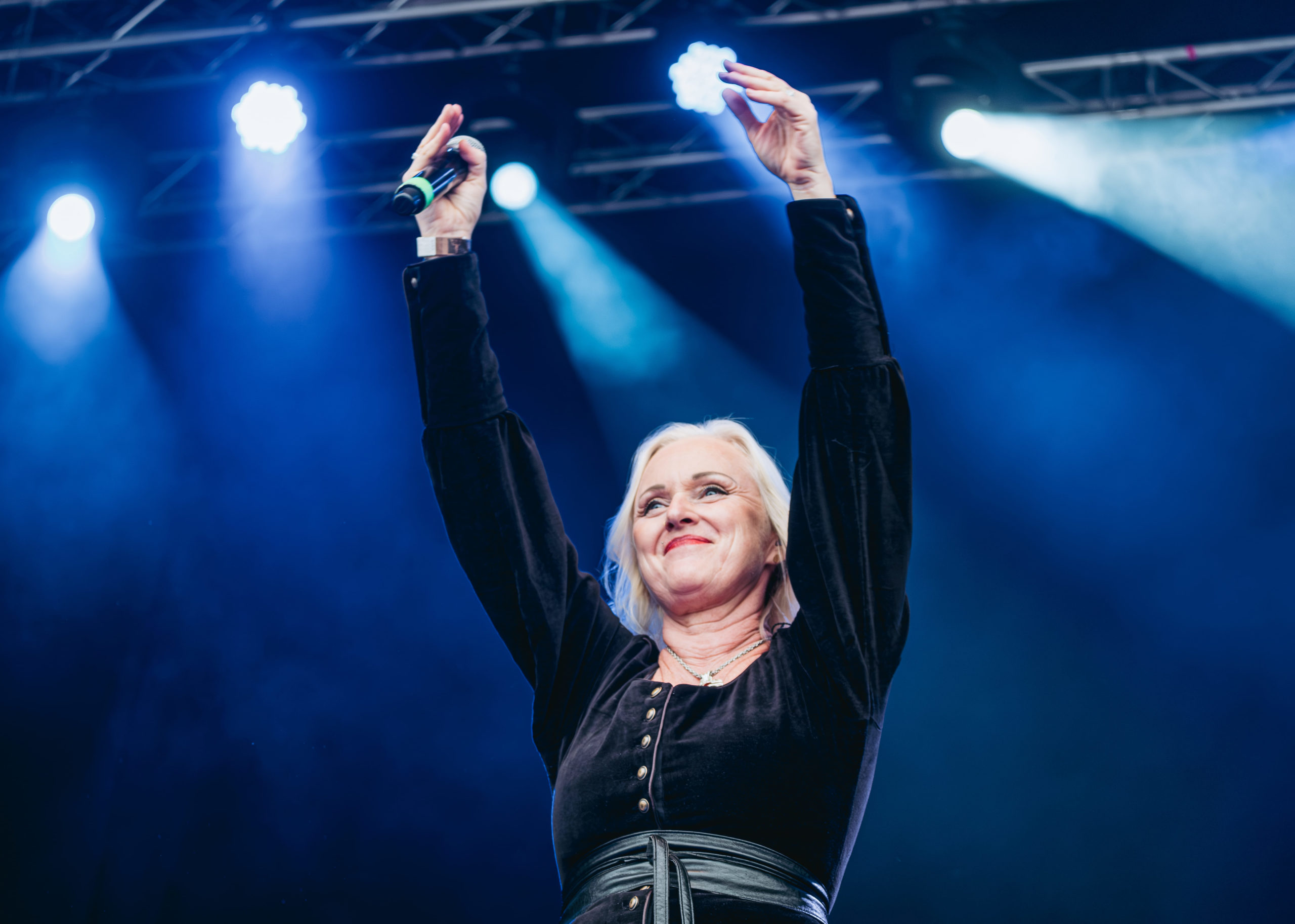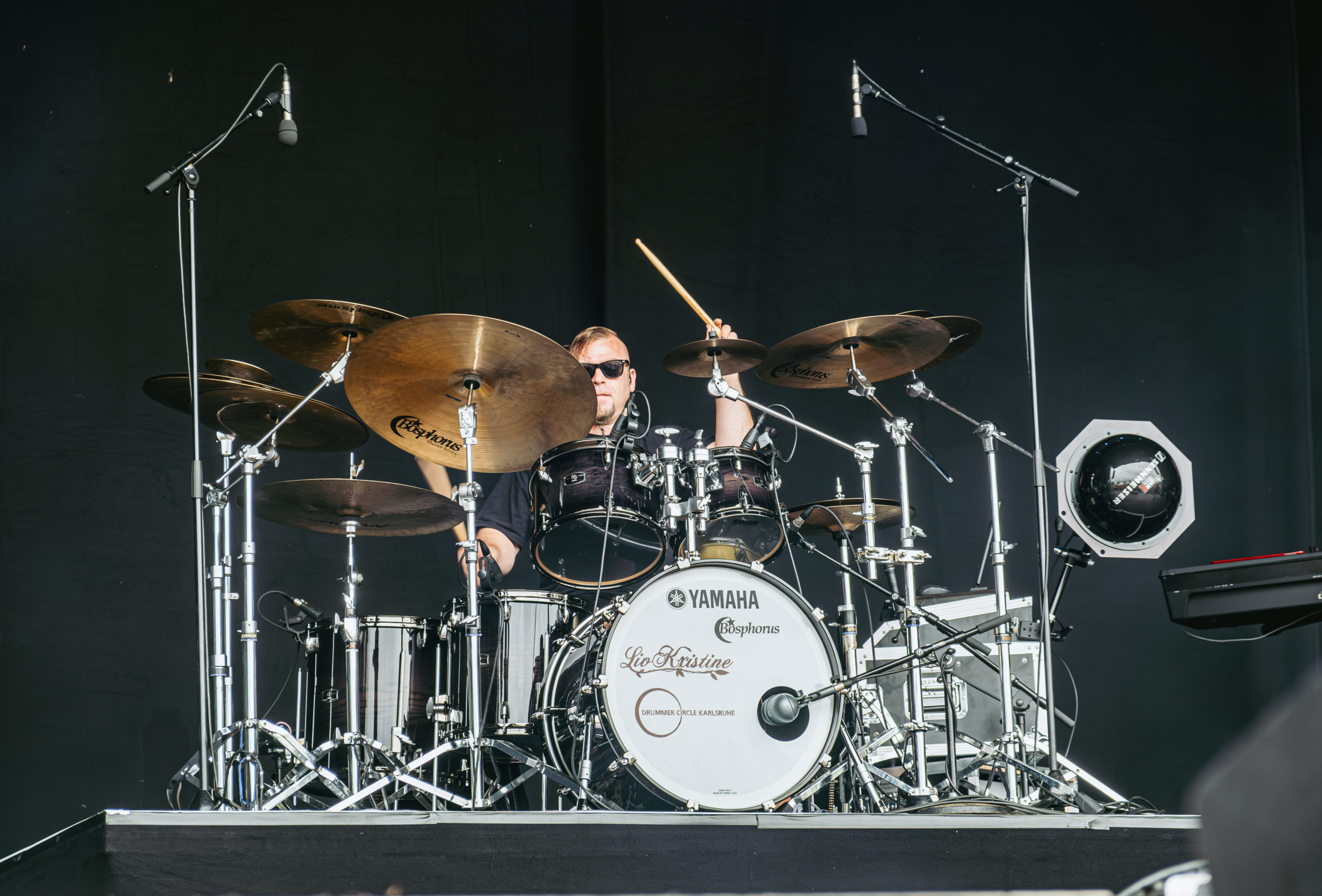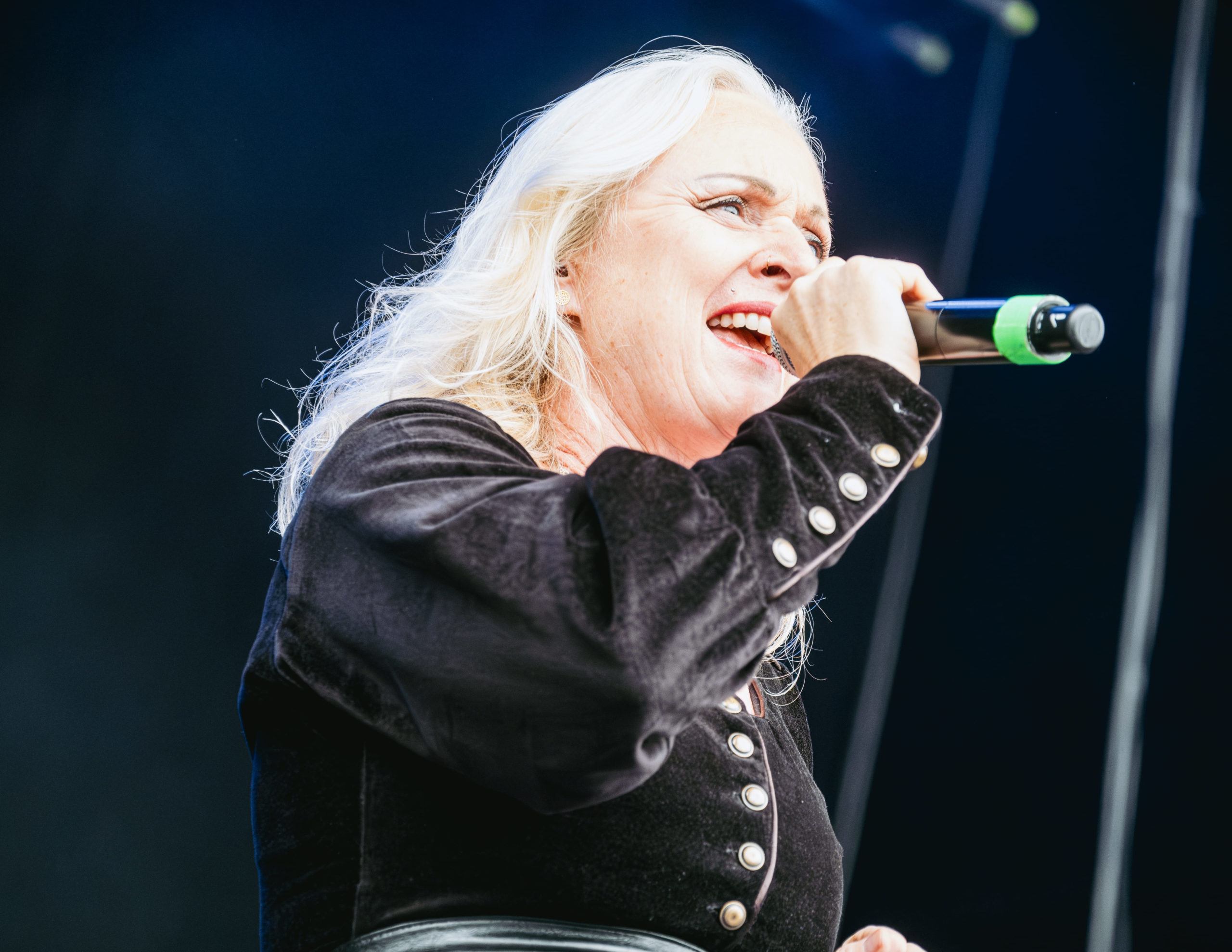 Mes pas me conduisent ensuite vers un autre grand nom du metal à chant féminin : celui de Liv Kristine, qui se produit sur la Wackinger Stage. Forte de sa longue et riche carrière — quoi qu’en perte de vitesse depuis son départ de Leaves’ Eyes —, la Norvégienne a bien des choses à partager avec un public qui lui reste fidèle de longue date. C’est toutefois avec quelques minutes de retard que la chanteuse entre en scène accompagnée de ses musiciens, pour ouvrir sur deux titres issus de sa carrière solo que sont Shaolin Me suivi de River of Diamonds. La suite de la setlist s’articule autour de plusieurs morceaux issus des années passées avec Theatre of Tragedy et Leaves’ Eyes ; comme quoi Liv Kristine a su cibler les attentes de son public, très attaché à ce passé qui semble lointain. Dans l’ensemble, le rythme est lent et l’ambiance paisible, et des spectateurs paraissent profiter de ce moment de calme pour se poser après quelques concerts sûrement plus agités. Peut-être un peu trop au regard de certains… Toujours en est-il qu’une profonde douceur se dégage de la chanteuse, autant dans sa voix ou dans sa gestuelle tout en retenue que lorsqu’elle s’adresse aux spectateurs entre deux morceaux pour évoquer ses souvenirs au festival avec ses deux anciens groupes. Quant aux musiciens qui l’accompagnent, ils semblent très heureux d’être sur cette scène, notamment le claviériste qui se montre très souriant, et très complices de leur meneuse Liv Kristine. Cette prestation ressort alors comme une parenthèse nostalgique dans le running order du jour, pas la plus indispensable mais réconfortante pour qui s’y montre réceptif. [Ségolène]