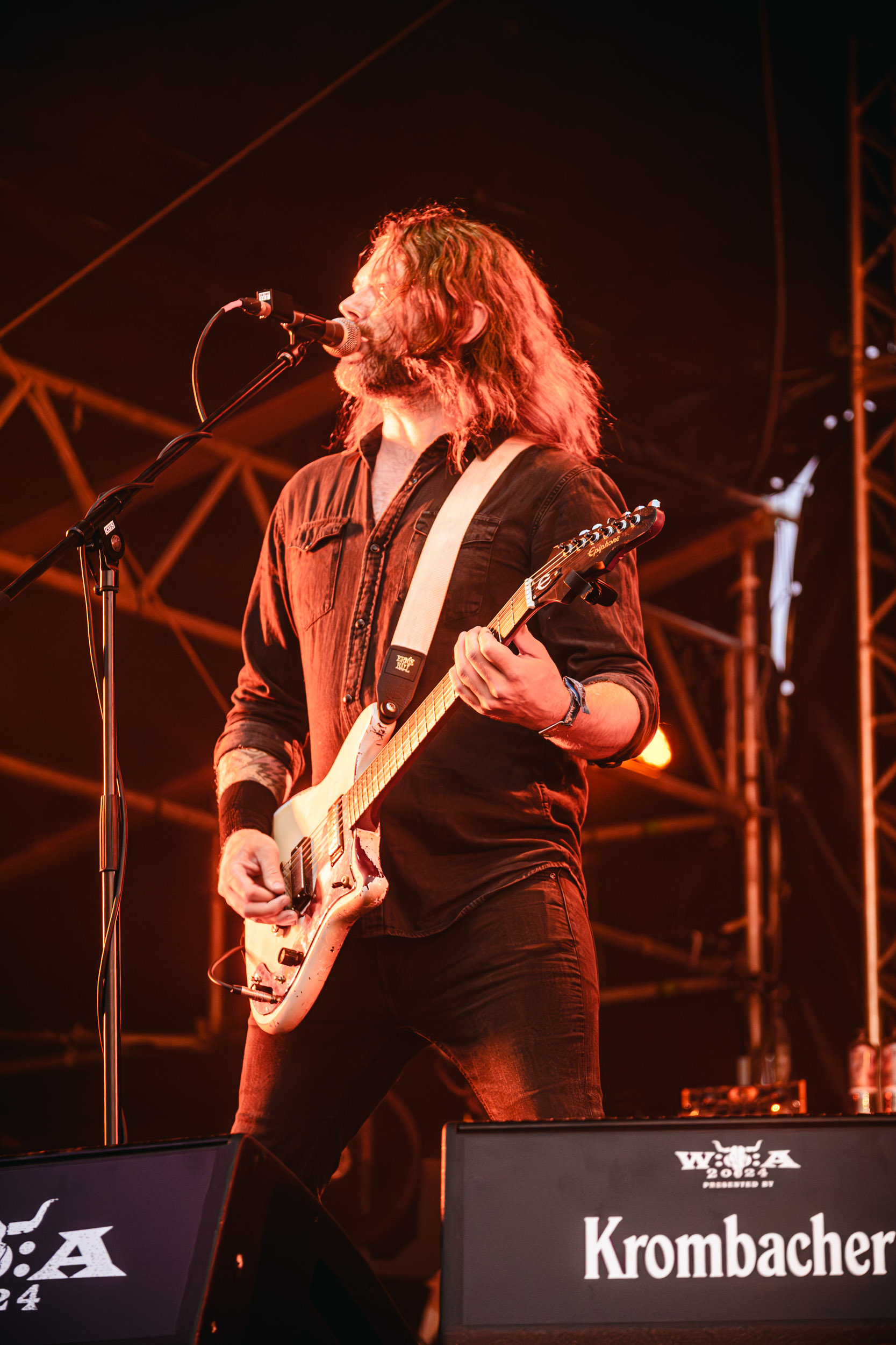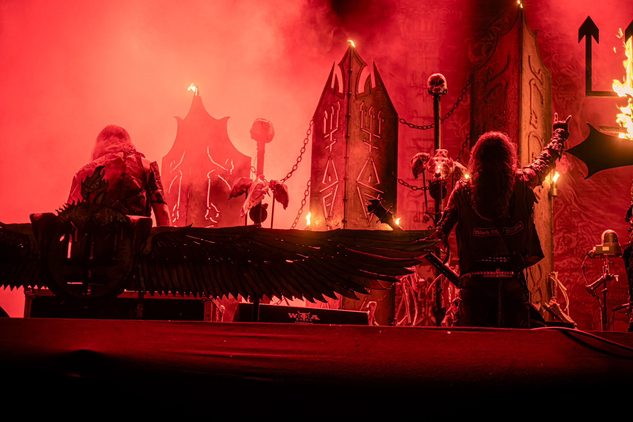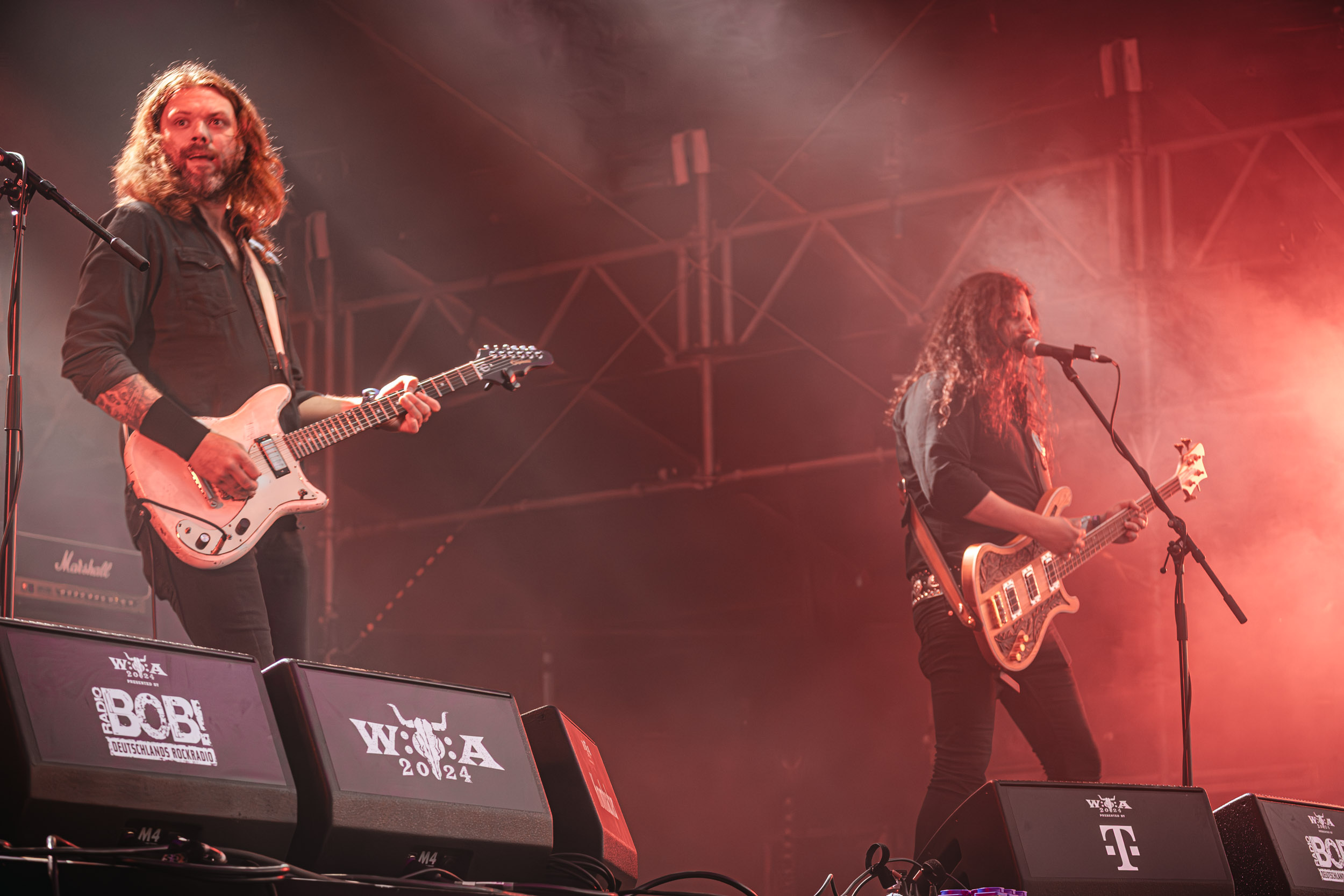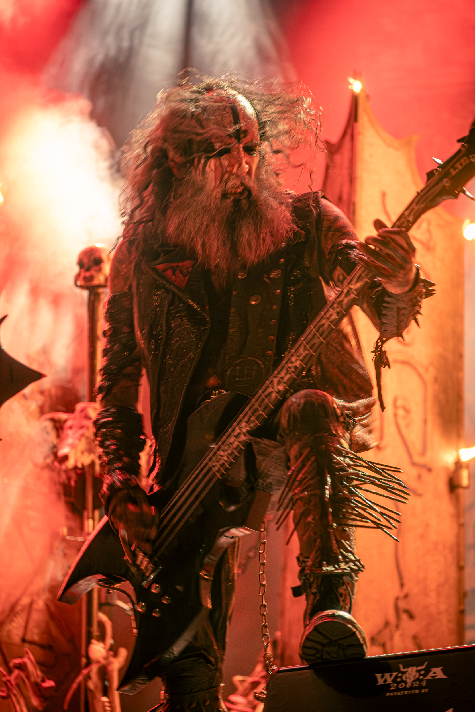 Sur la Louder Stage, la soirée s’achève avec Watain et son show entièrement dédié à l’album Lawless Darkness sorti en 2010, exclusif au Wacken 2024. Pour l’occasion, le géant suédois du black metal apporte un soin particulier à sa scénographie, mettant le feu à la scène au sens propre. De même, les musiciens soignent leur exécution, millimétrée, carrée et irréprochable, et injectent leur énergie infernale à des morceaux qui, pour certains, n’ont plus été intégrés à une setlist depuis longtemps. Erik Danielsson et consorts jouent le jeu à fond et cherchent très clairement à faire plaisir aux spectateurs ; néanmoins, hormis quelques-uns chez qui j’observe des réactions aussi théâtrales que le jeu de scène du groupe, ces derniers ne semblent pas se montrer plus réceptifs que ça… la faute à la fatigue ou à un spectacle un peu trop calculé ? S’agit-il plutôt d’une manifestation de l’attitude stoïque qu’il est souvent de coutume d’adopter durant les concerts de black metal occultiste ? Toujours en est-il que Watain ne manque pas de mérite dans son idée de remettre un « vieil » album au goût du jour tout comme dans son sens du spectacle et livre une performance impressionnante, notamment au niveau des effets pyrotechniques et de la maestria d’Erik Danielsson dans le maniement de torches. Le frontman prend la troisième guitare sur l’instrumental de milieu de set, qui donne son titre à l’album et au show, complément pas désagréable à ses comparses guitaristes qui de leur côté savent se mettre en avant. Suivent les quatre derniers titres, dont Hymn to Qayin, traditionnelle ouverture des concerts du groupe. Après quoi, le concert prend fin sur une dernière scène spectaculaire prenant la forme d’un rituel au cours duquel Erik Danielsson se pointe une lame sur la tête avant de faire la révérence. Preuve, s’il en est, que Watain met l’aspect spectaculaire au cœur de ses concerts et qu’il vaut le coup de voir le groupe pour cela. [Ségolène]