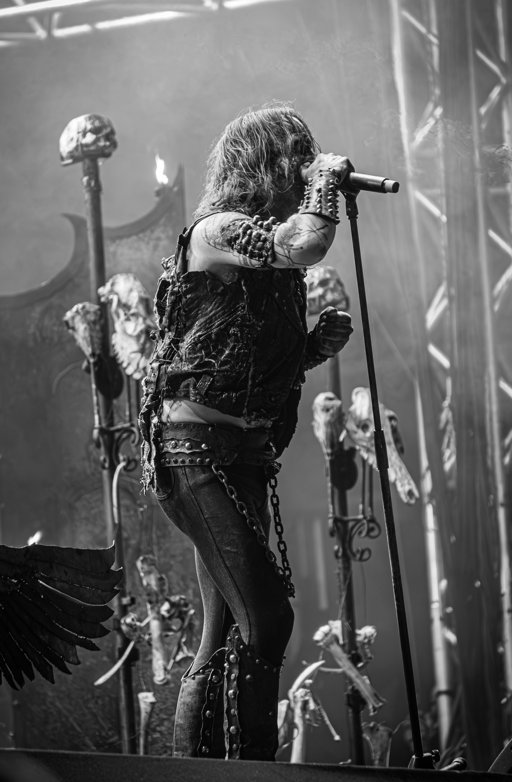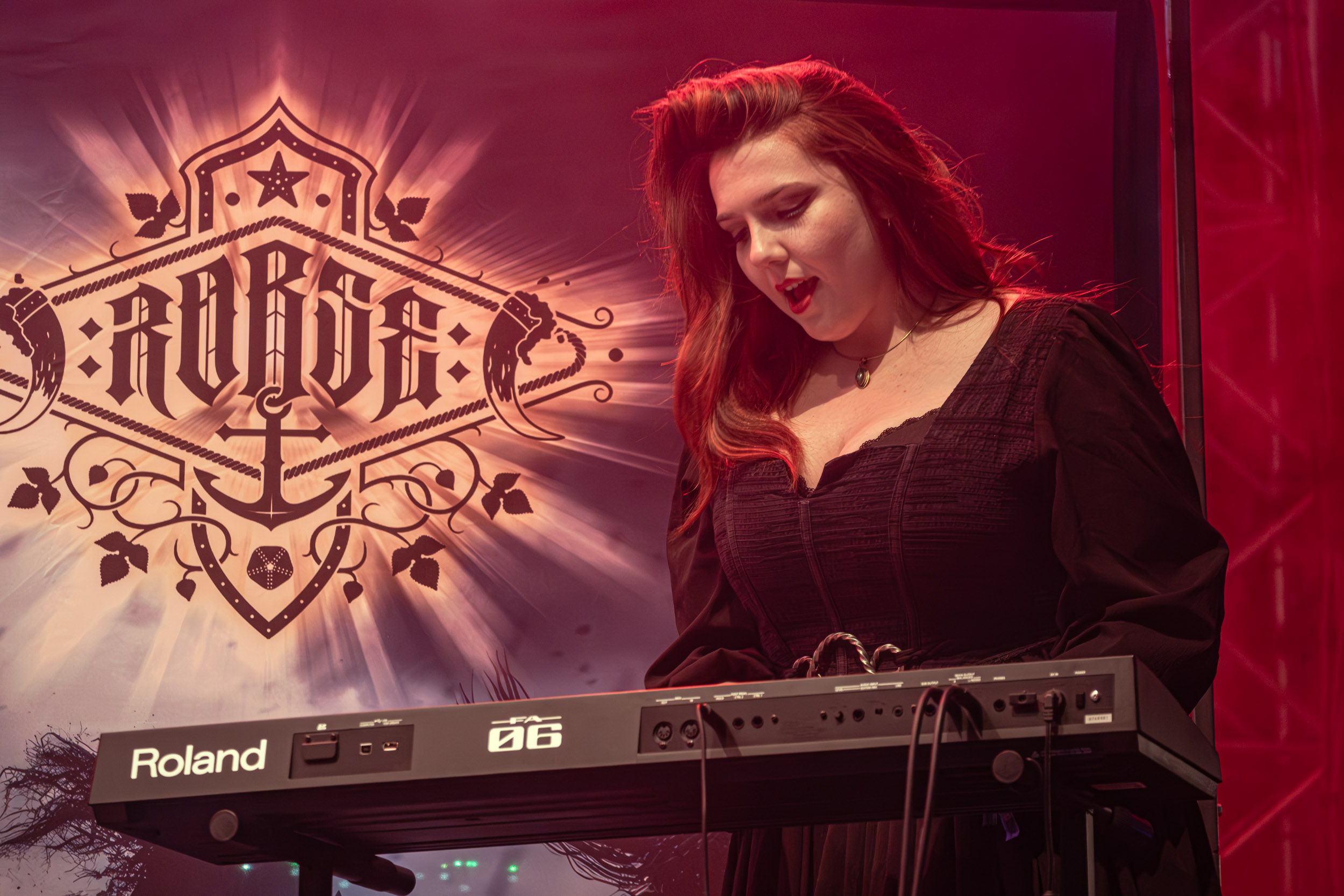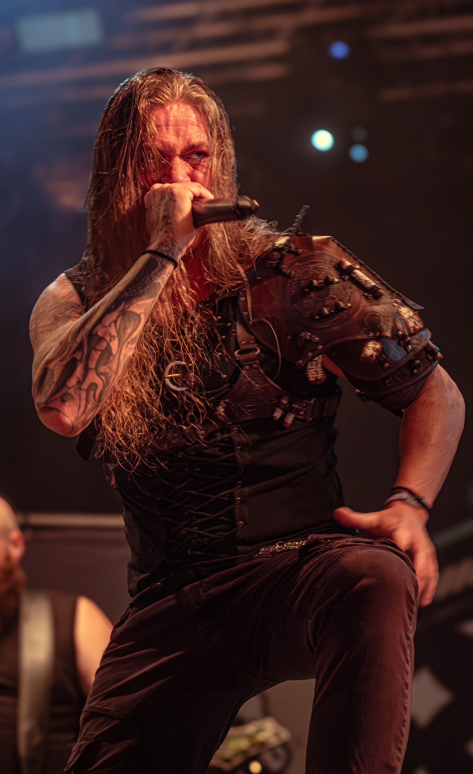Après avoir salué Equilibrium deux soirs plus tôt, il me paraissait tout à fait logique de rendre une petite visite à son ancien frontman Robert-Martin Dahn alias Robse sur la Wasteland Stage. Du haut de sa petite surface, la scène au look steampunk accueille son nouveau groupe homonyme, comptant pas moins de six membres, venus présenter leur premier album Harlekin und Krieger, qui sortira deux semaines plus tard. Fort de ce line-up très complet et complémentaire constitué de musiciens issus d’horizons différents, du death/thrash au black/folk en passant par le metal symphonique, le groupe propose un style musical qui l’est tout autant, à la croisée de ces genres, que l’on peut résumer plus simplement à un mélange entre death metal mélodique et pagan metal. Les morceaux sont denses, épiques et mélodiques, tout ce dont on peut rêver ! Qui plus est, l’expérience du leader avec ses anciens groupes — parmi lesquels Mallevs Maleficarvm, dont il a recruté le batteur et un des guitaristes, et bien sûr Equilibrium — se voit dans la présence scénique dont il fait montre ainsi que ses nombreuses interactions avec une audience au taquet. Cela étant, si le groupe est nommé d’après le diminutif de son prénom, ses confrères et sa consœur de scène sont bien loin de n’être présents qu’en fond et se donnent tout autant à fond que lui, ce qui se voit particulièrement chez les guitaristes qui montent sur les retours. En somme, tout est réuni pour que Robse fonctionne, encore que les backing vocals de la claviériste Alina Lesnik, même samplés, n’auraient pas été de trop dans le mixage sonore. Dans tous les cas, ni Equilibrium ni Robse n’ont à s’en faire : le premier a trouvé un remplaçant à la hauteur du second, lui a su s’entourer de musiciens de talent. [Ségolène]
