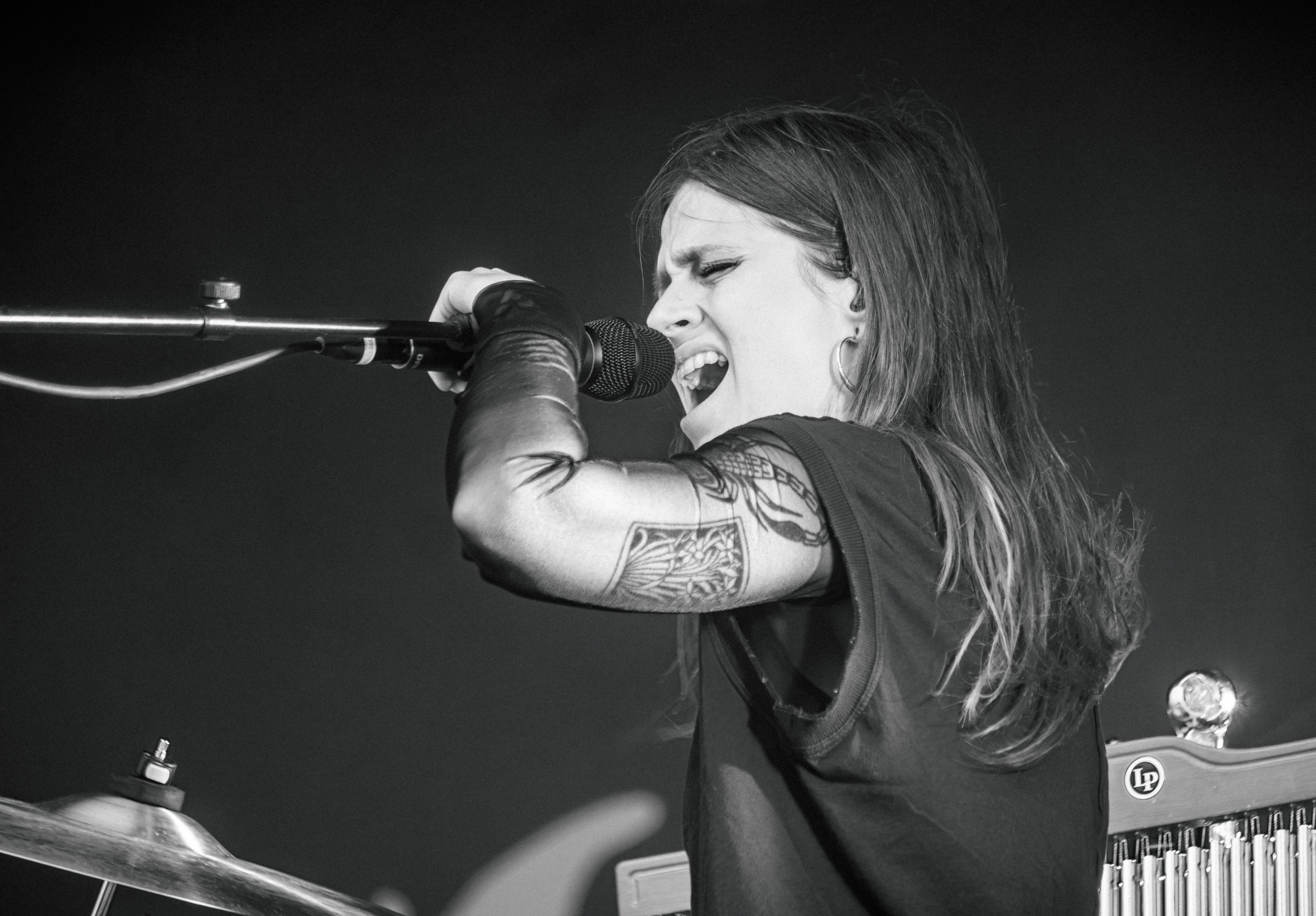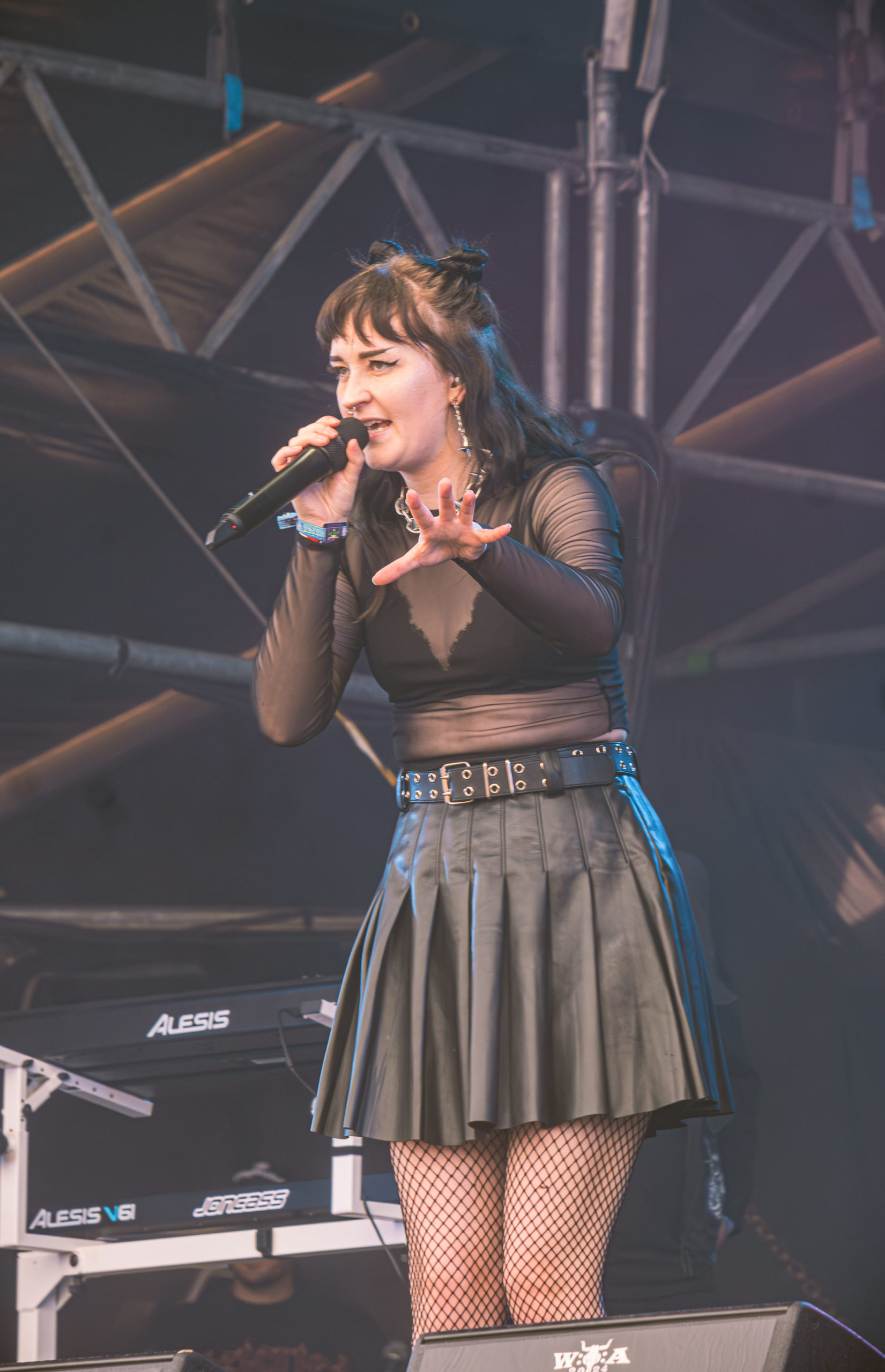 Avant de passer à la suite de mon programme, j’improvise un nouveau détour en mode « découverte » par Bullhead City qui démarre sous les auspices du metal moderne avec As Everything Unfolds sur la Headbangers Stage. Le mix post-hardcore/nu metal que pratique le groupe n’est pas inintéressant, la voix mélodieuse et presque enfantine de la chanteuse Charlie Rolfe et la présence scénique des musiciens y contribuant en bonne partie. Malheureusement pour les cinq Britanniques, le set se voit entaché par de multiples problèmes sonores, entre coupures, larsens et autres joyeusetés, jusqu’à contraindre certains des musiciens à interrompre leur performances pour remplacer leur matériel. J’attribue pour ma part ces soucis à un trop grand nombre d’éléments samplés, notamment les voix de soutien ainsi que les passages en chant hardcore ; dommage pour Charlie Rolfe, qui semble posséder de très bonnes capacités à ce niveau… La sympathie de la chanteuse compense toutefois quelque peu, la jeune femme parlant beaucoup à son public et se montrant très souriante. À redécouvrir, peut-être, dans des conditions plus adaptées… [Ségolène]