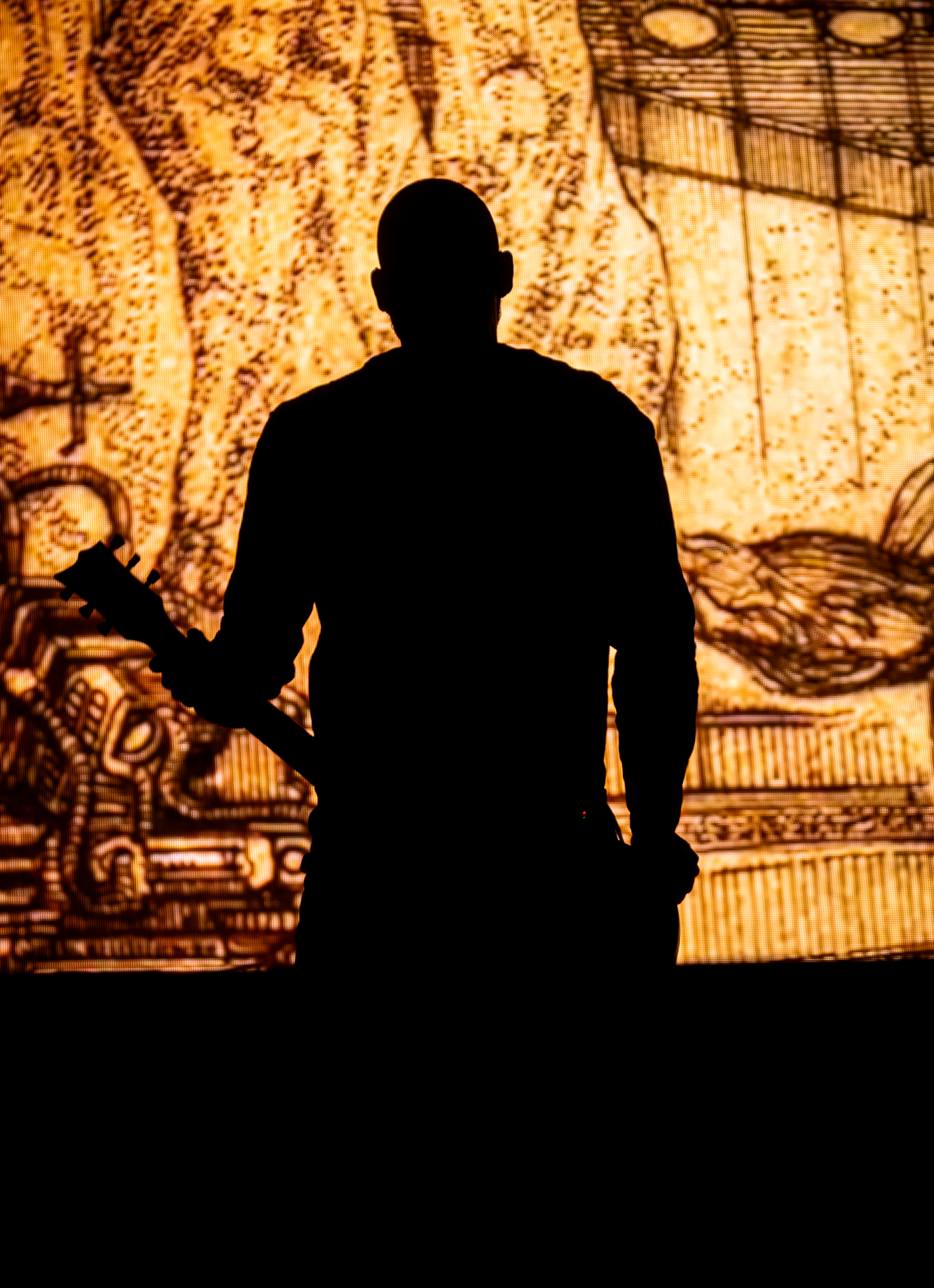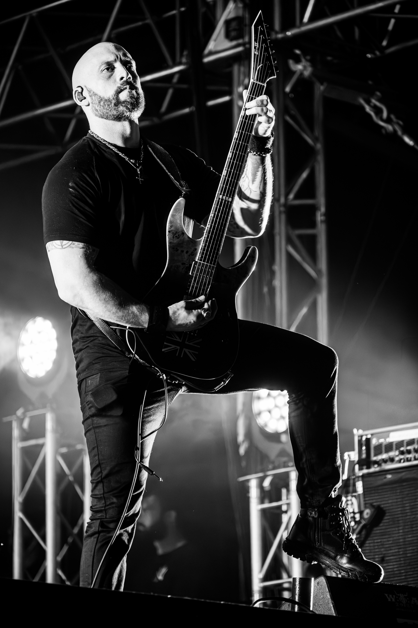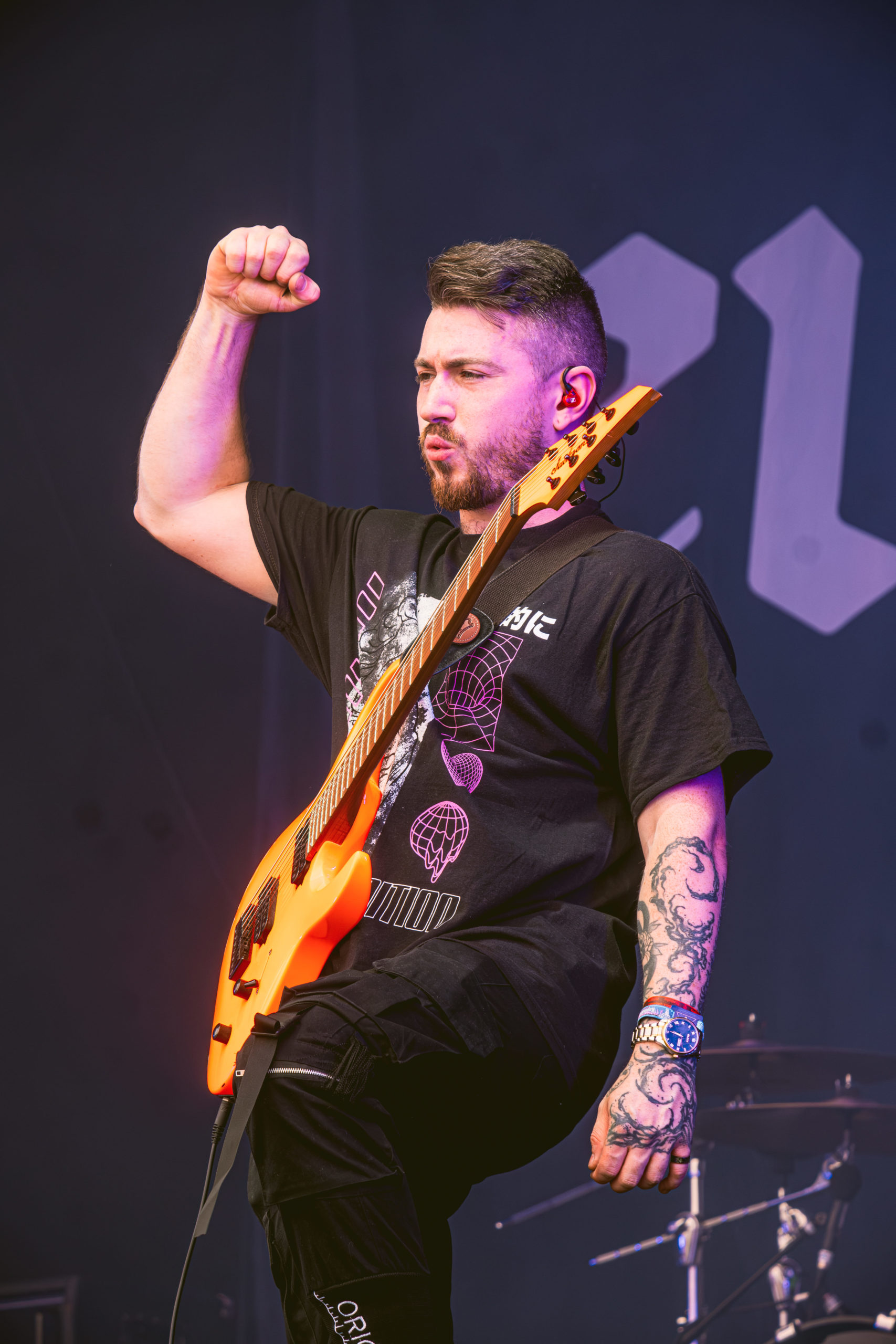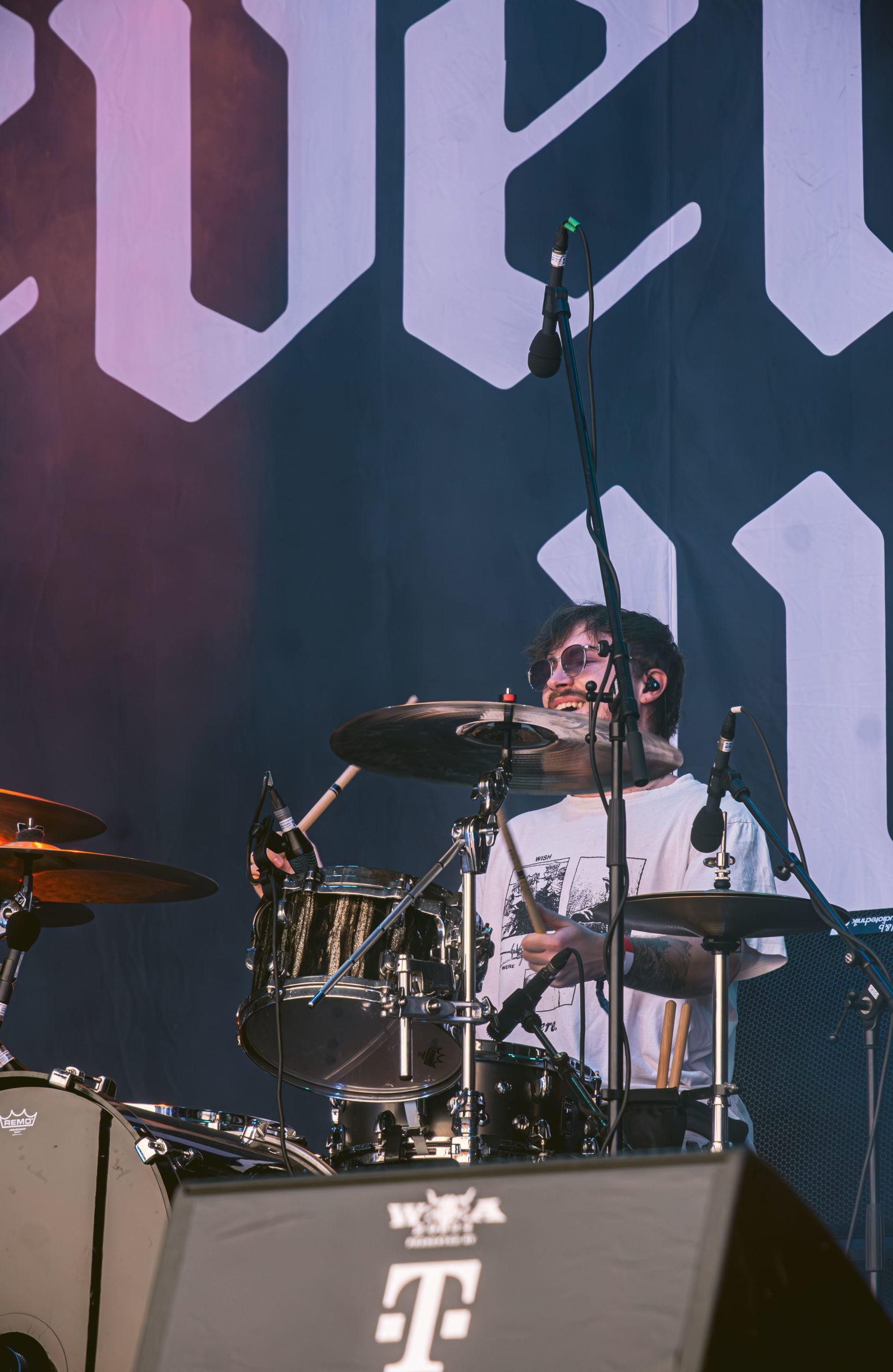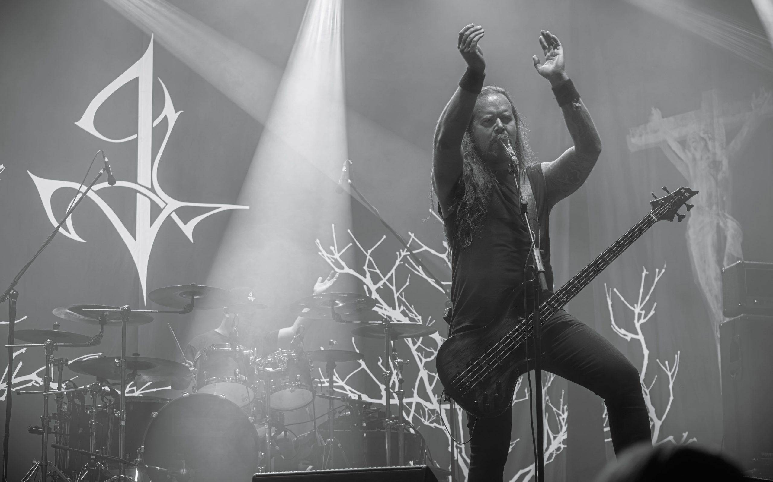 Peu importe la météo menaçante ou la relative faiblesse de mon état de santé du jour, manquer le concert anniversaire de Behemoth était pour moi impossible à envisager. Après tout, ce n’est pas tous les jours que l’on célèbre ses 33 ans et d’avoir officiellement dépassé le Christ ! Pour fêter cet anniversaire dignement, le groupe polonais a concocté une setlist aux petits oignons, constituée de ses plus grands classiques, en y incluant pour l’occasion un morceau datant de ses débuts en 1991, Cursed Angel of Doom. Ce petit retour dans le passé offre l’occasion aux plus jeunes de le découvrir, aux fans de plus longue date de l’apprécier d’une nouvelle manière ; dans tous les cas, un petit coup de jeune à ce morceau old-school et une preuve du soin du détail qu’apporte Behemoth à ses prestations. Entre les multiples hommages au passé plus ou moins lointain, deux extraits d’Opvs Contra Natvram, le dernier album sorti en 2022, The Deathless Sun et Once Upon a Pale Horse, se font une petite place dans la setlist, encore trop jeunes pour ne pas rester dans l’ombre des autres. En tout cas, mon amour de longue date pour le groupe ne me fait pas défaut, mu par l’excellence des musiciens et leur sens du spectacle, et qui m’invite à relativiser mon regret de ne pas avoir pu obtenir l’accès au pit photo. C’est donc depuis le relatif confort du premier rang que j’assiste aux grands moments du set, tels Seth et Orion prenant littéralement le public de haut depuis les plateformes, les musiciens crachant du (faux) sang et bien sûr les multiples changements de costume de Nergal — celui qu’il porte sur Bartzabel remportant ma préférence —, le tout mis en lumière par un soleil déclinant du plus bel effet. Point noir cependant que la fumée qui envahit régulièrement la scène ; à ce niveau, j’exprime toute ma compassion à mes confrères et consœurs photographes l’ayant subie dans le pit ! Comme à chaque concert de Behemoth depuis 2014 et la sortie de The Satanist, le spectacle atteint son paroxysme avec le finale O Father O Satan O Sun, des costumes et masques à la séquence narrative de fin, qui donne à ce show anniversaire une conclusion digne de ce nom. [Ségolène]