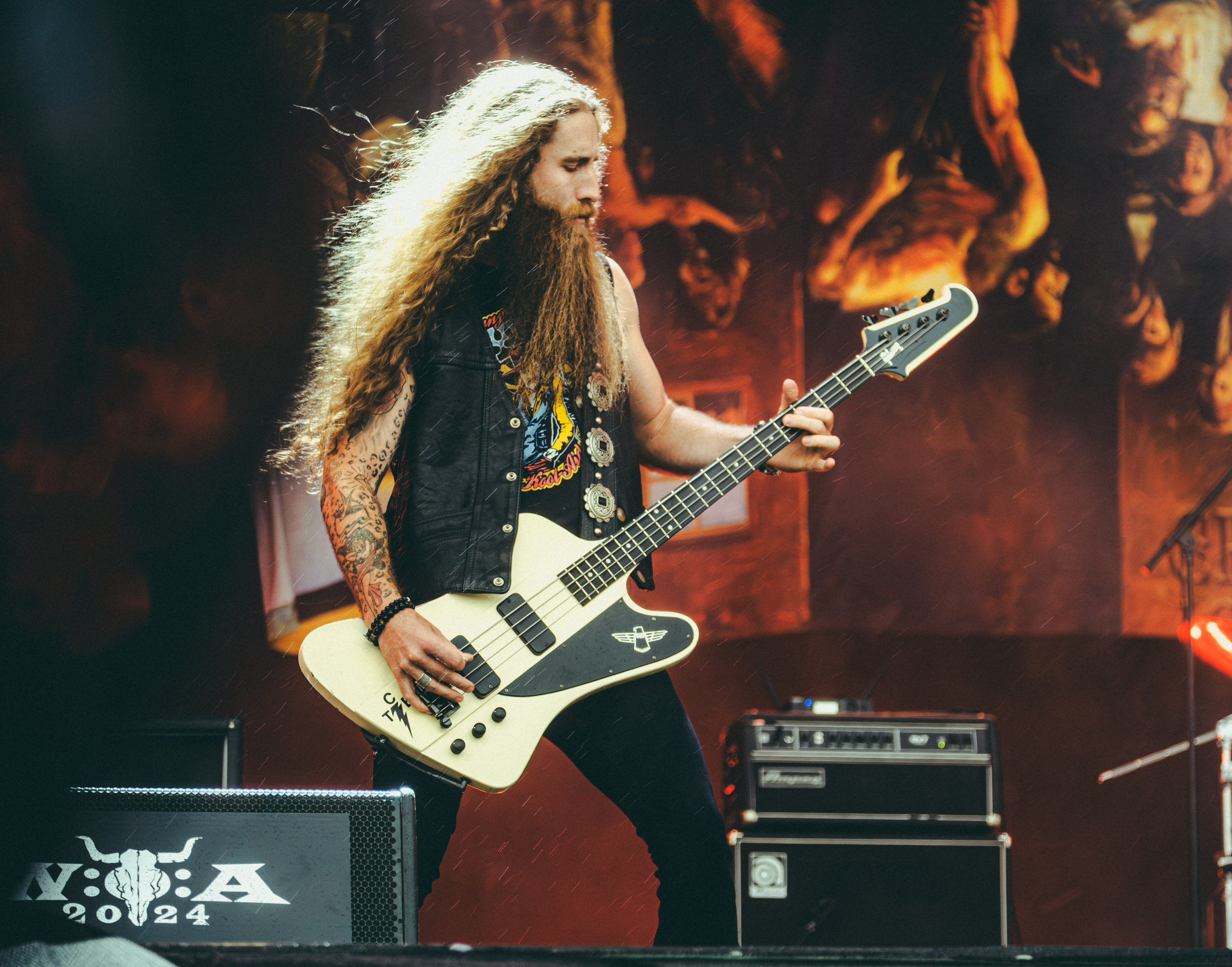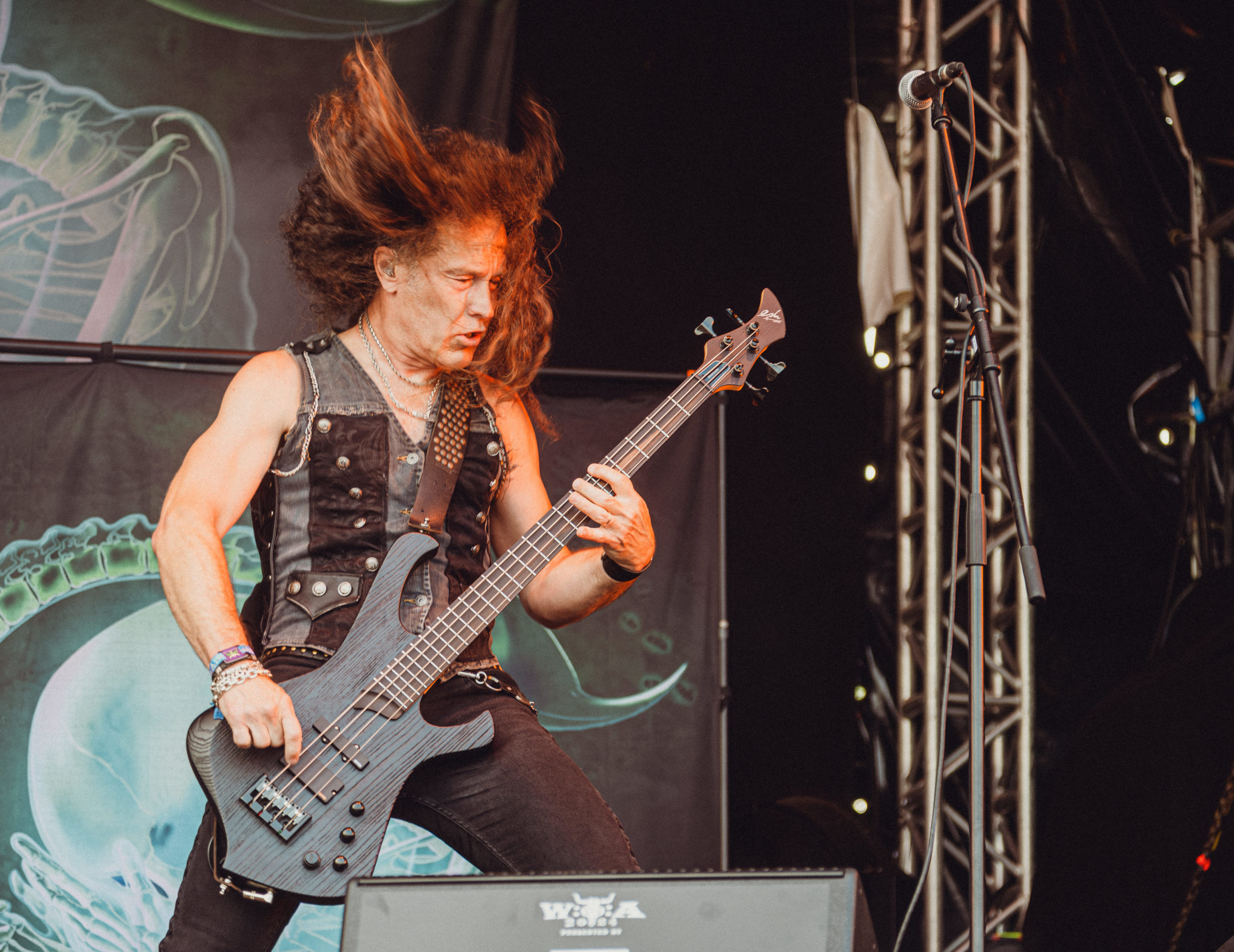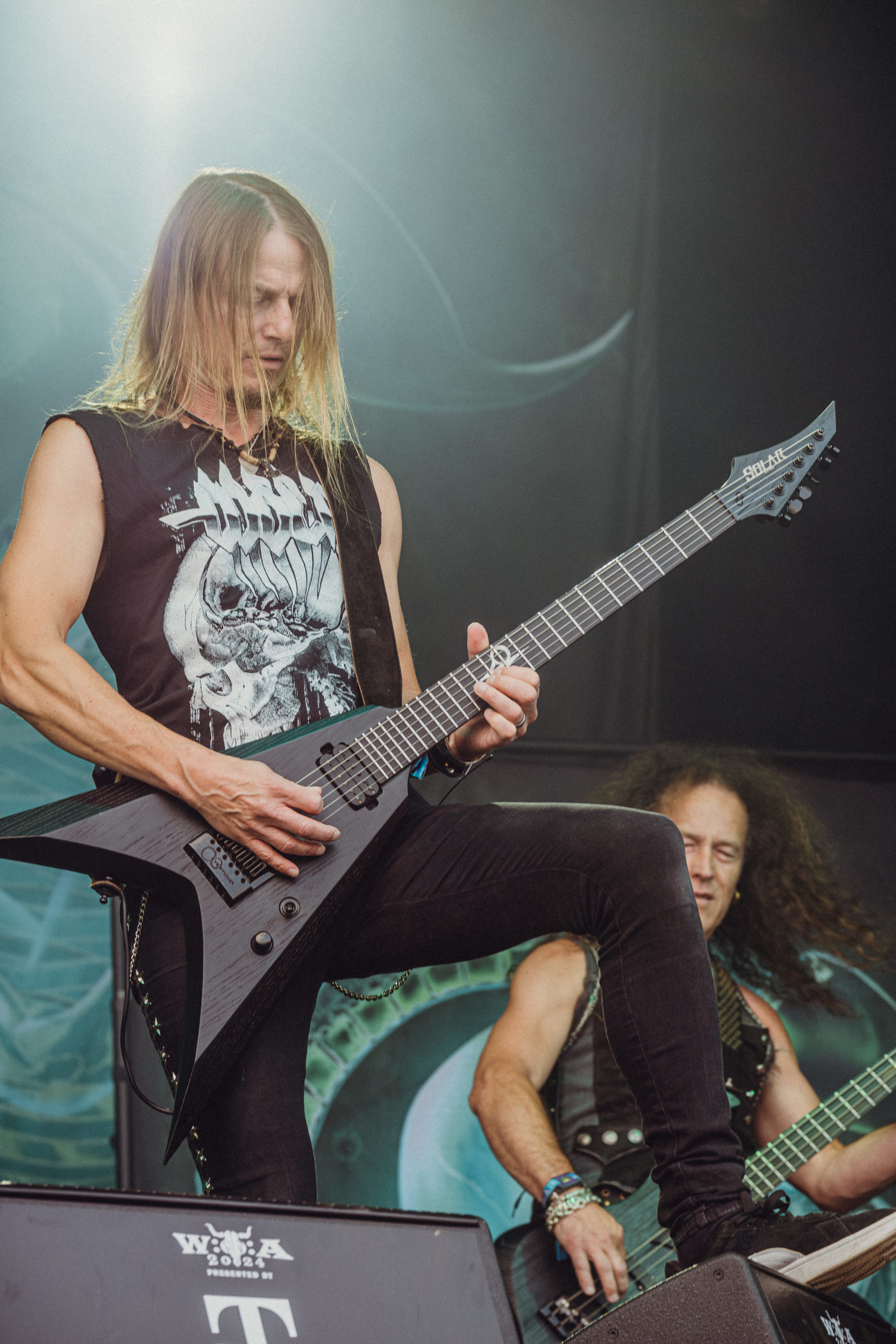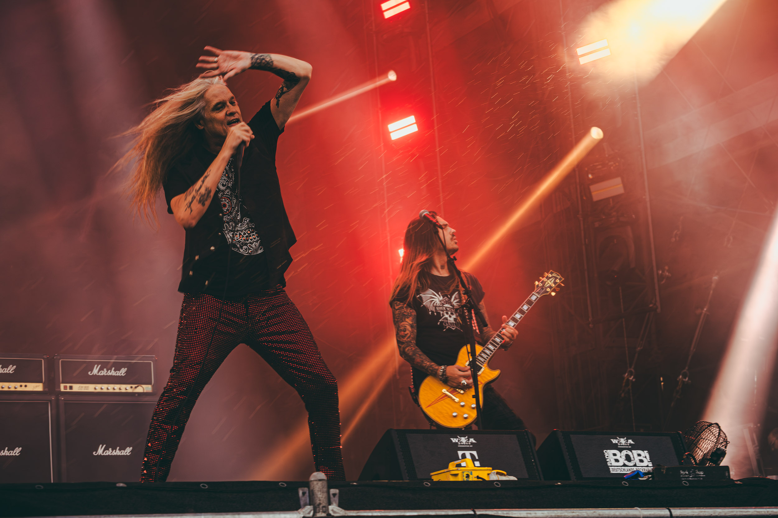Un changement radical de style s’opère par la suite sur la W:E:T Stage, le post-hardcore/nu metal moderne laissant place au heavy metal old-school de Wolf. Dans son paragraphe de présentation sur le site du fest, le groupe est décrit comme « du heavy metal à la façon d’Iron Maiden et de Mercyful Fate » ; pour le coup, je crois bien n’avoir jamais vu de description aussi bien se vérifier ! Plutôt « jeune » pour un groupe de la vieille école — formé en 1995 —, Wolf possède l’expérience et la maturité des plus grands, qui se manifestent dans une prestation faites de morceaux excellemment écrits, au bon goût de crème anglaise préparée avec soin par un quatuor pourtant originaire d’une tout autre partie de l’Europe — de Suède, plus précisément. Rien d’étonnant lorsque l’on se penche un peu sur le pedigree des musiciens, parmi lesquels le bassiste Pontus Egberg, connu pour officier entre autres dans King Diamond depuis 2014, le prolifique batteur Johan Koleberg, ex-Therion, et le guitariste de Soilwork Simon Johansson. En fin de compte, le fondateur et frontman du groupe Niklas Stålvind semble presque inconnu au bataillon par rapport à ses camarades ! Cela étant, sur scène, les différences de CV n’ont pas cours ; ne reste que la camaraderie qui unit ces quatre hommes dont la joie de jouer ensemble au Wacken Open Air se lit sur leurs visages et dans leur bougeotte. Un vrai bonheur pour moi à découvrir comme à photographier, de courte durée mais mémorable ! [Ségolène]