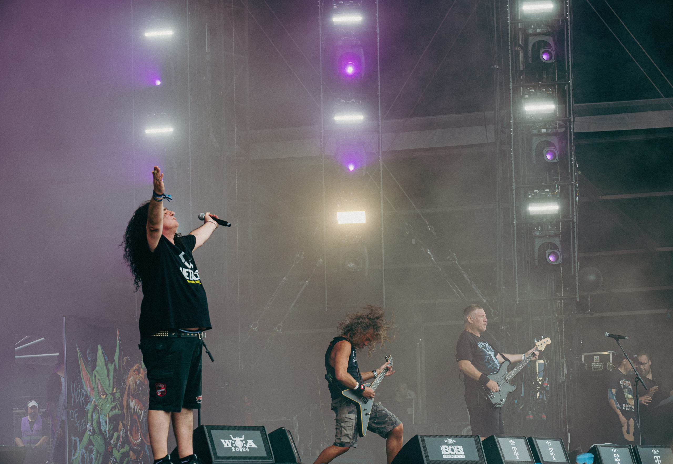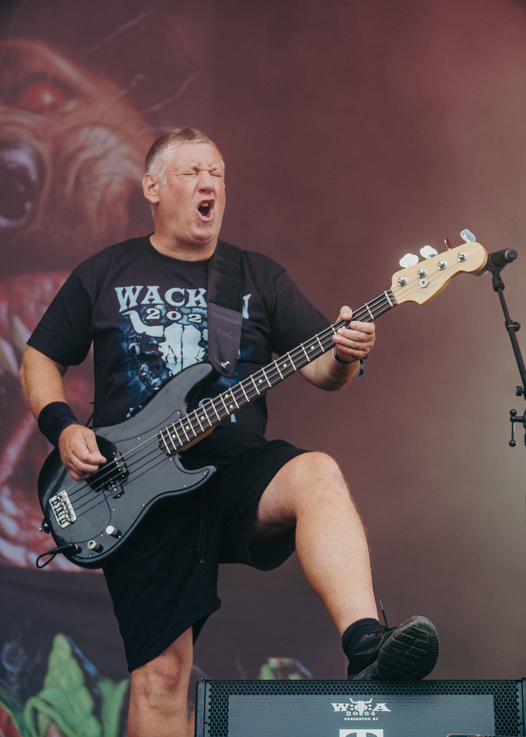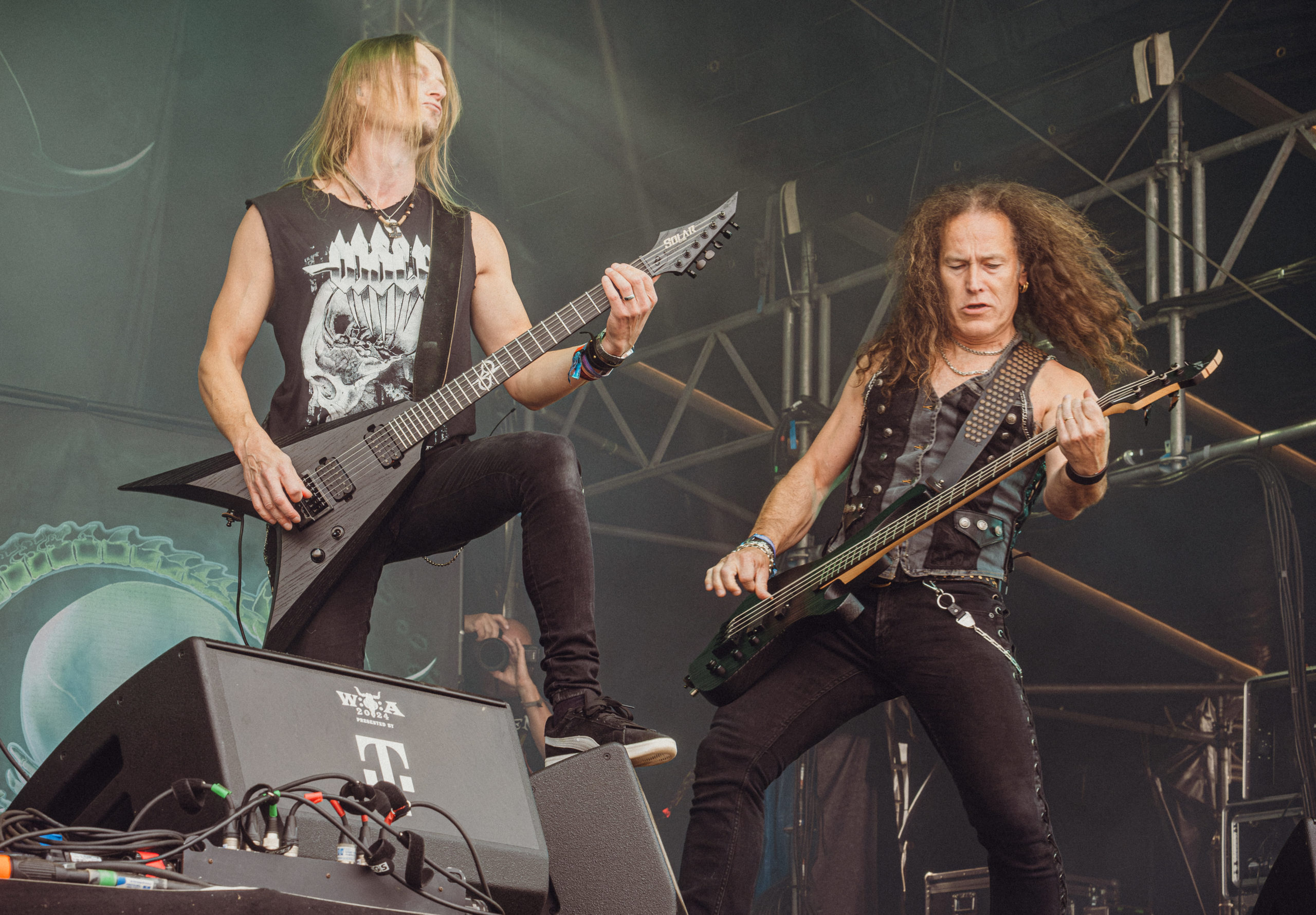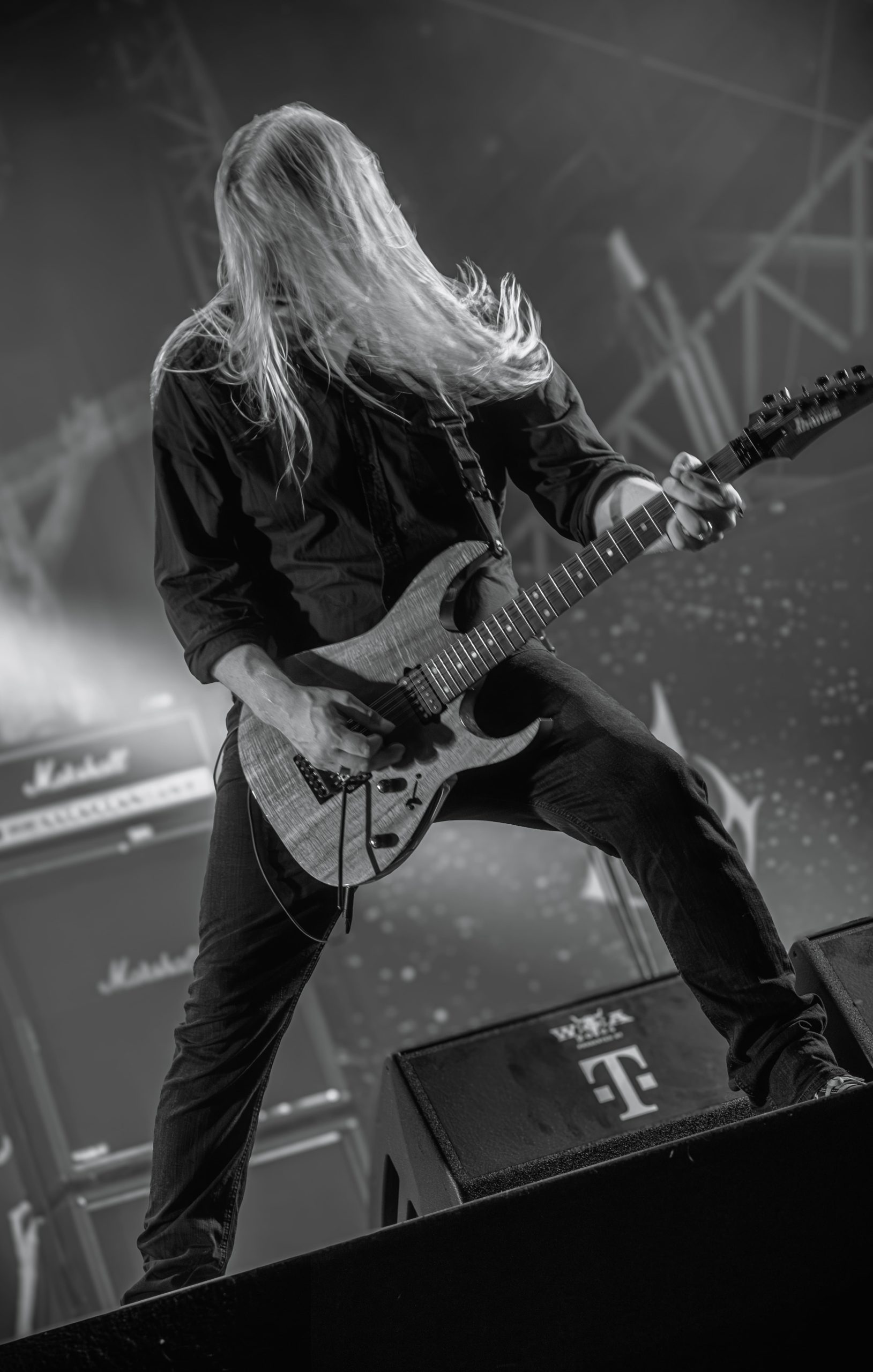 Un changement radical de style s’opère par la suite sur la W:E:T Stage, le post-hardcore/nu metal moderne laissant place au heavy metal old-school de Wolf. Dans son paragraphe de présentation sur le site du fest, le groupe est décrit comme « du heavy metal à la façon d’Iron Maiden et de Mercyful Fate » ; pour le coup, je crois bien n’avoir jamais vu de description aussi bien se vérifier ! Plutôt « jeune » pour un groupe de la vieille école — formé en 1995 —, Wolf possède l’expérience et la maturité des plus grands, qui se manifestent dans une prestation faites de morceaux excellemment écrits, au bon goût de crème anglaise préparée avec soin par un quatuor pourtant originaire d’une tout autre partie de l’Europe — de Suède, plus précisément. Rien d’étonnant lorsque l’on se penche un peu sur le pedigree des musiciens, parmi lesquels le bassiste Pontus Egberg, connu pour officier entre autres dans King Diamond depuis 2014, le prolifique batteur Johan Koleberg, ex-Therion, et le guitariste de Soilwork Simon Johansson. En fin de compte, le fondateur et frontman du groupe Niklas Stålvind semble presque inconnu au bataillon par rapport à ses camarades ! Cela étant, sur scène, les différences de CV n’ont pas cours ; ne reste que la camaraderie qui unit ces quatre hommes dont la joie de jouer ensemble au Wacken Open Air se lit sur leurs visages et dans leur bougeotte. Un vrai bonheur pour moi à découvrir comme à photographier, de courte durée mais mémorable ! [Ségolène]
