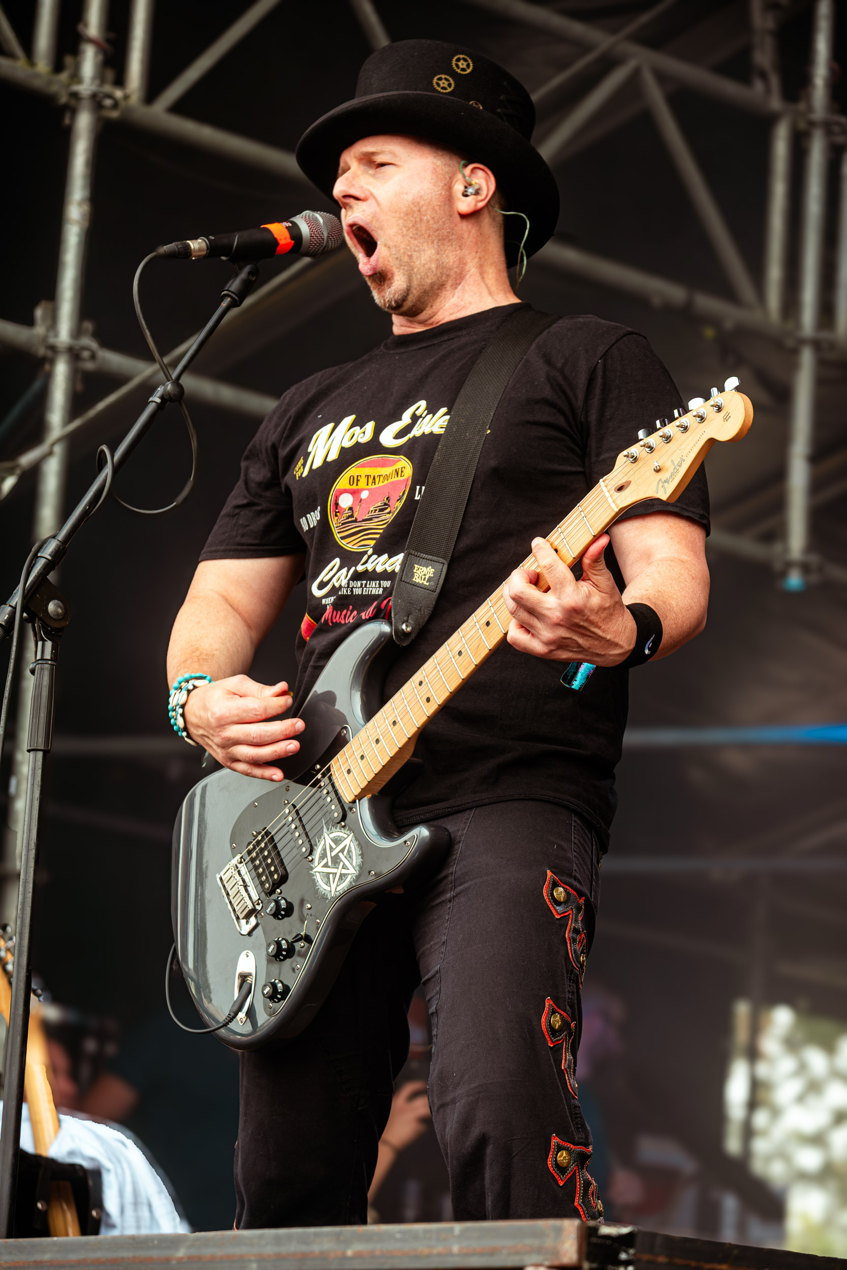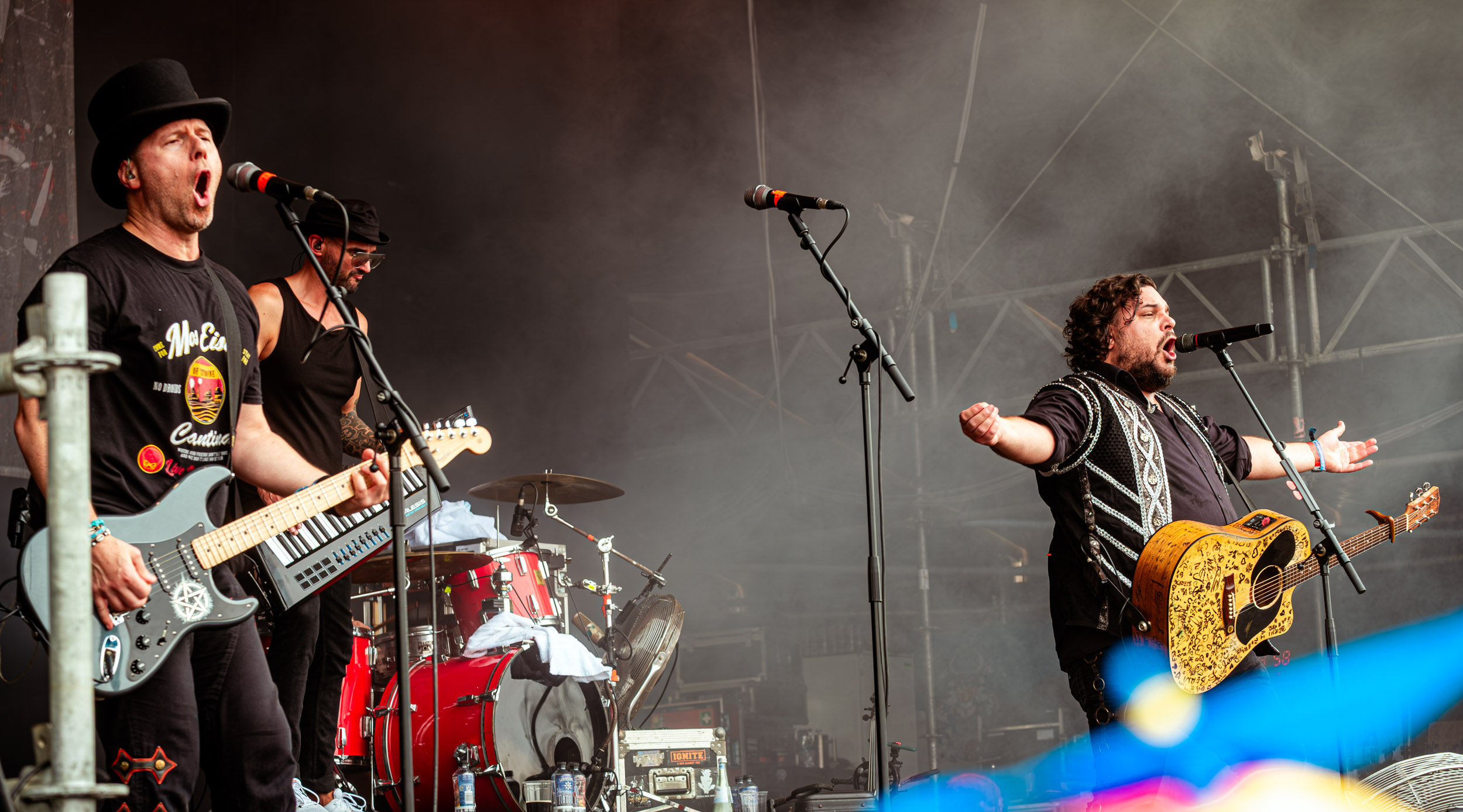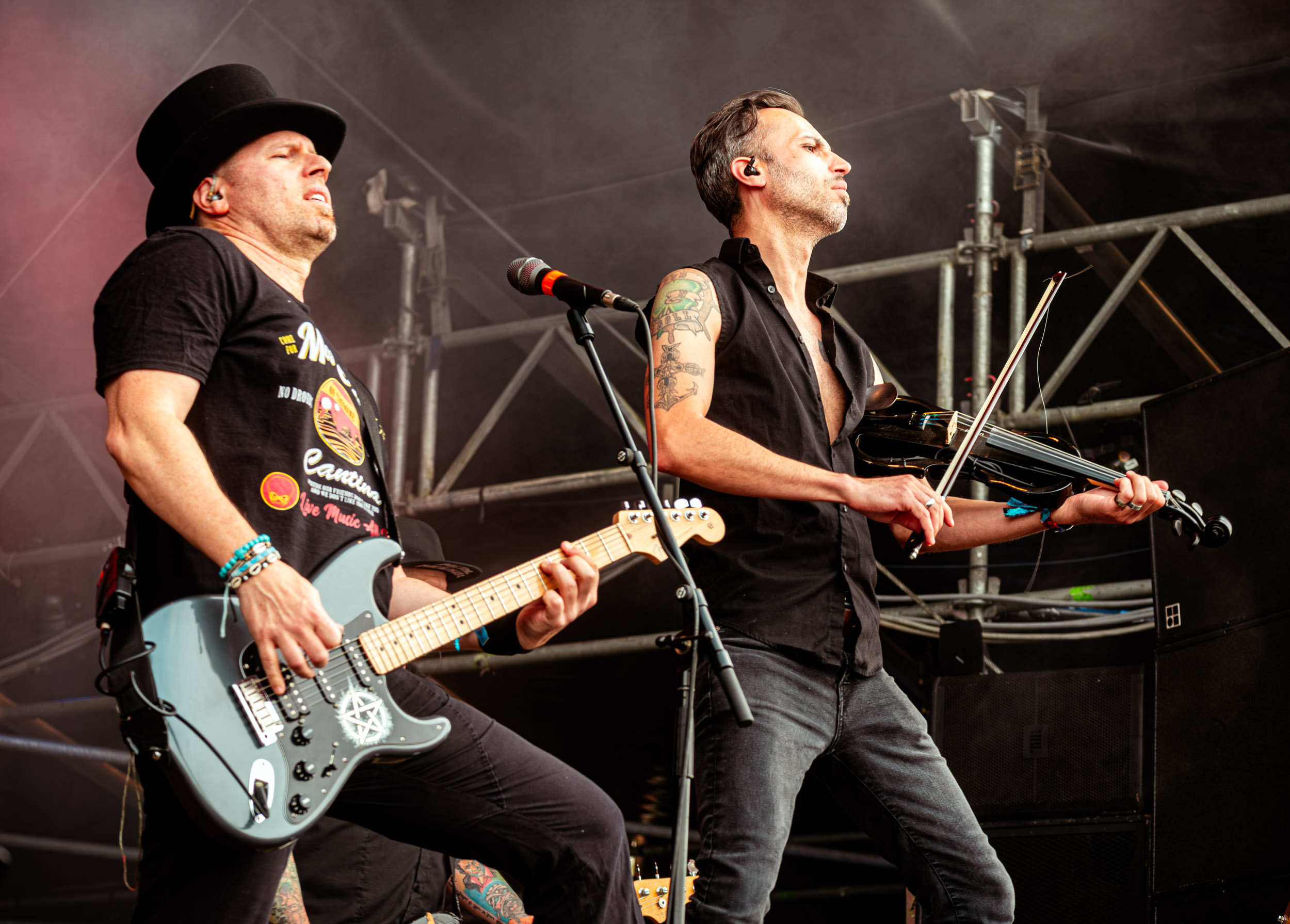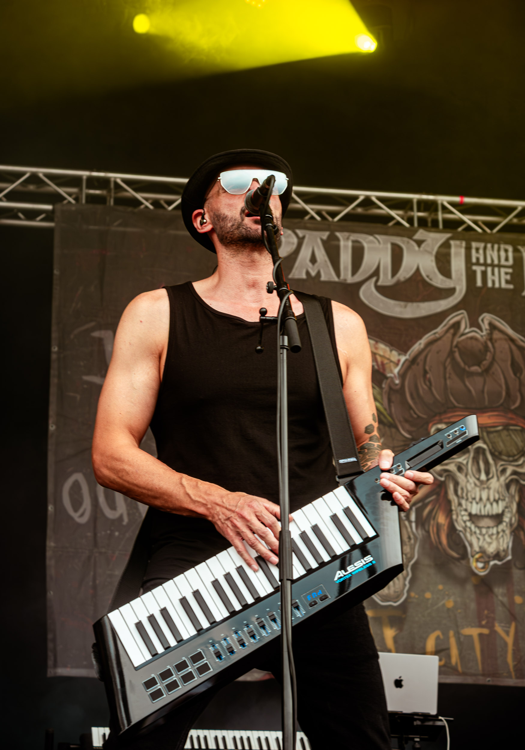 À l’heure où ont court certaines prestations de groupes se prenant très au sérieux, telles celle d’Oomph! sur la Faster Stage pour ne citer que celle que j’entends au loin, au Wackinger Village, l’heure est à l’esprit festif avec Paddy and the Rats. Les cinq musiciens déboulent sur les planches sur fond de la musique du générique de Game of Thrones, puis enchaînent aussi sec sur un premier morceau qui plonge tout le monde dans un bain de rhum, vodka et autres festivités ! Véhiculer de l’humeur festive et célébrer tous ensemble est en effet le mot d’ordre du groupe hongrois, qui mise pour cela sur un folk rock irlandais à thème marin et pirate auquel se mêlent en vrac punk et musique traditionnelle des pays de l’est. Ce joyeux cocktail multisaveurs fonctionne du tonnerre sur un public qui le boit cul sec et ne traîne pas à répondre à l’injonction que lance le titre Party Like a Pirate, de même qu’à répondre à grands cris lorsque le leader Paddy O’Reilly demande « qui aime la vodka » entre deux morceaux ! Ceci dit, comme chacun sait, pour bien faire la fête, la modération est de rigueur, ce dont le groupe sait aussi faire preuve, entre autres en calant une ballade folk au milieu de son set en guise d’entracte ou quand le guitariste Joey MacOnkay prend le temps de remercier ses amis venus d’Argentine pour leur présence et leur soutien. Tout le monde s’agite et s’amuse en communion, tant et si bien que l’on en finirait par oublier où l’on se trouve pour se croire dans un pub en Irlande ! Dans tous les cas, Paddy and the Rats prouve bien que dans le plus gros des fests metal, une petite incartade folk ne fait de mal à personne. Bien au contraire ! [Ségolène]
