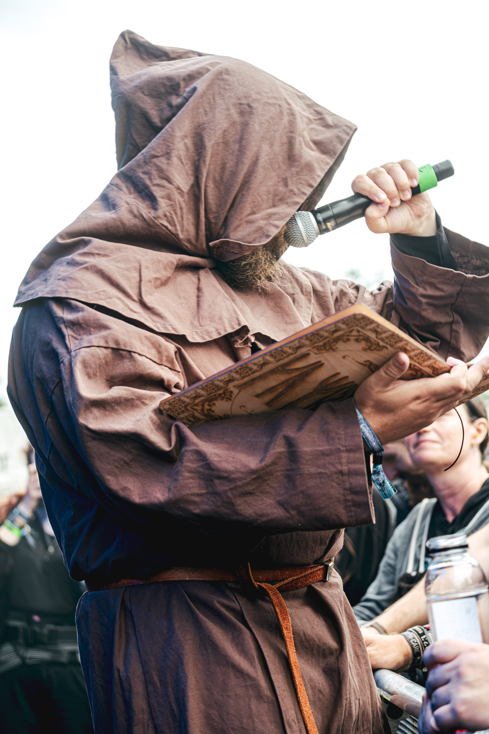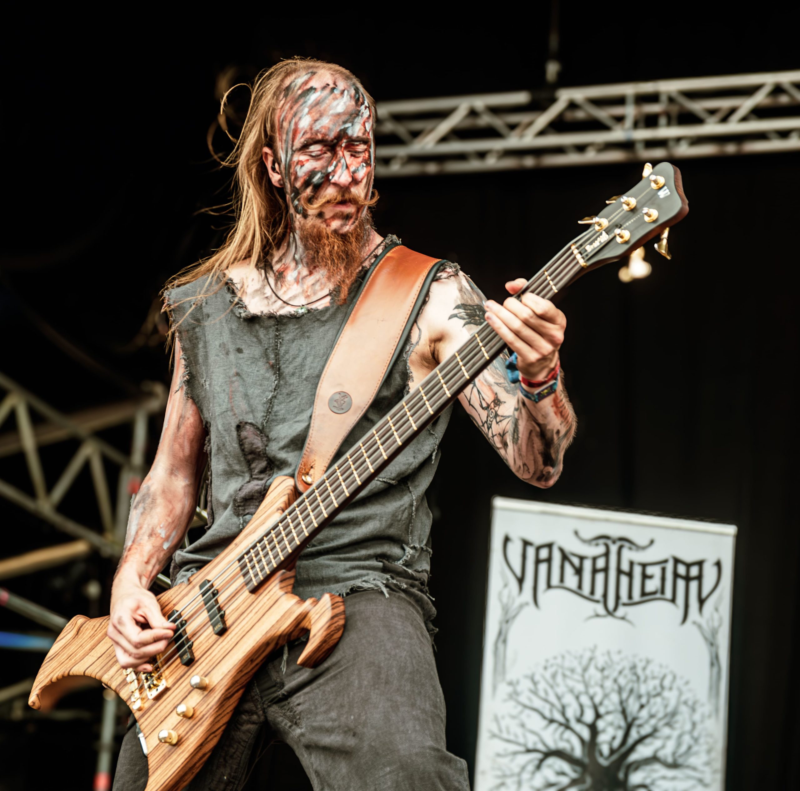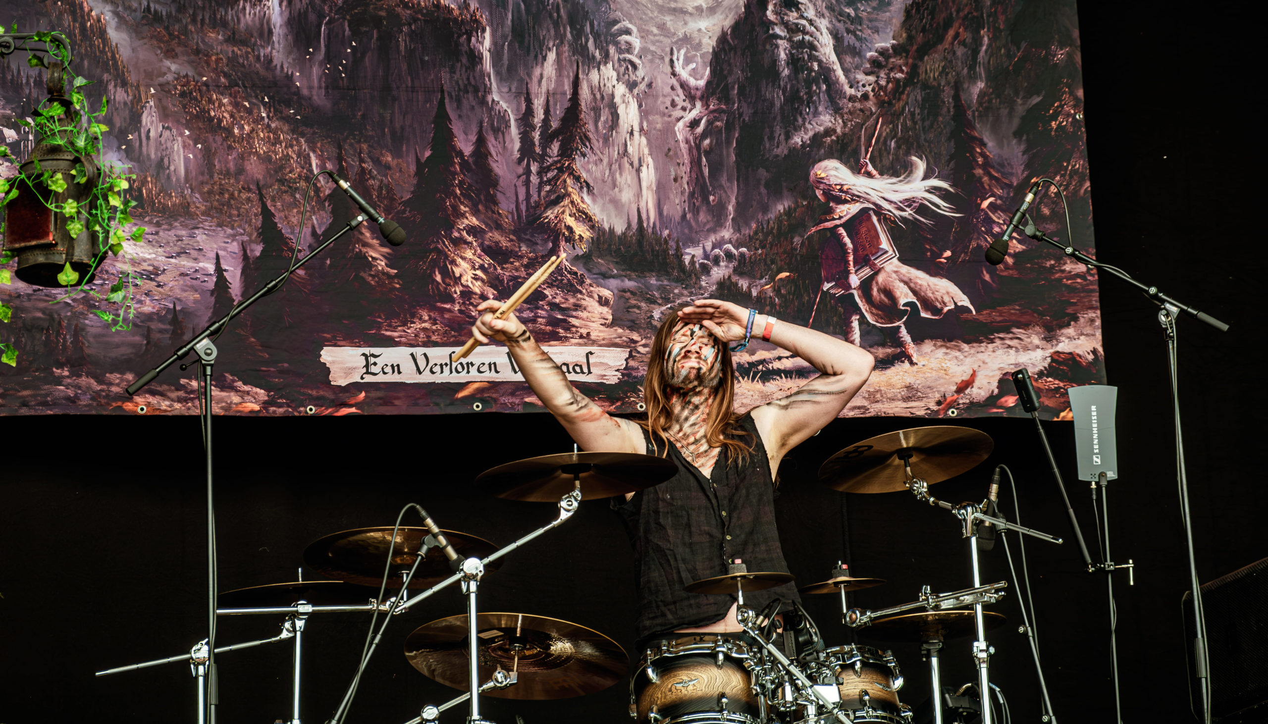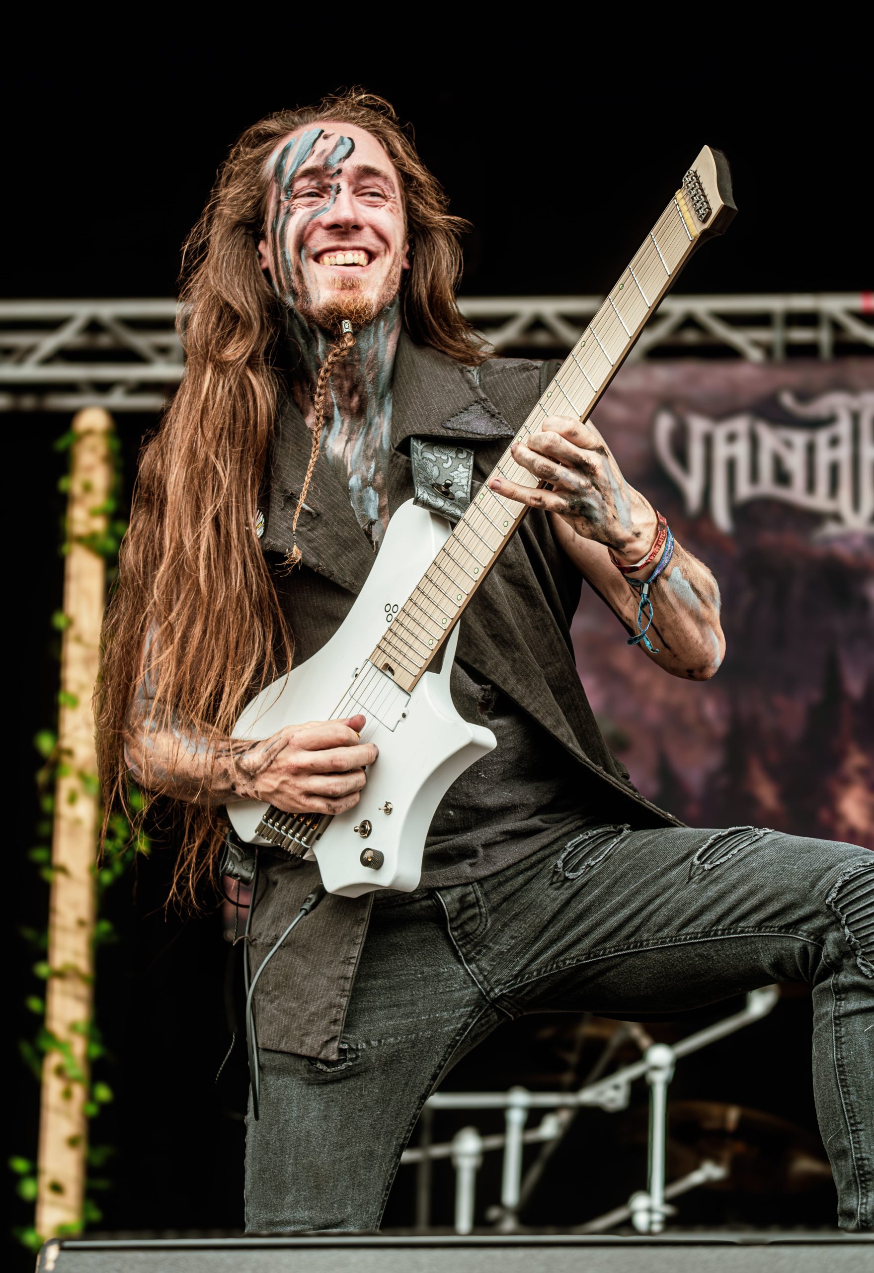 Pour qui n’a pas encore eu sa dose de folk metal épique, Vanaheim débarque sur les planches de la Wackinger Stage pour y remédier. À mon arrivée dans le pit photo, j’aperçois les musiciens effectuant leurs dernières balances sur la scène ; le genre de petite joie qui se fait rare en grand festival, moins cependant sur des scènes de gabarit moindre comme celle-ci. Petite joie devient toutefois grande au fil de ma découverte du set ! Le groupe joue des morceaux épiques au sens premier du terme, autrement dit longs et chargés en atmosphères cinématiques, mais aussi rapides et dansants, et surtout captivants. Hormis sa musique, il est un autre aspect dans lequel Vanaheim excelle, c’est sa communication avec le public : les sourires des musiciens sont contagieux et Zino van Leerdam encourage les spectateurs à taper dans les mains et sauter en rythme. Histoire de jouer jusqu’au bout son rôle de conteur, il sort un livre « rempli de mythes » selon ses dires pour nous raconter des histoires « pour dormir », d’une voix sonnant black la plupart du temps, avec quelques incursions en chant clair et même en chant de gorge — pas vraiment le genre qui aide à s’endormir ! De toute manière, il paraît inenvisageable de piquer du nez face à l’énergie qui se dégage de ce groupe au sein duquel se croisent les générations : les trois membres fondateurs Zino van Leerdam, Bram Trommelen et Mike Seidel apportent leur expérience, les deux derniers arrivés, le guitariste Michael van Eck et la violoniste Rikke Linssen, la fraîcheur de leur jeunesse, lui, souriant de toutes ses dents comme un enfant heureux, elle, pieds nus pour mieux danser et à l’adorable regard pétillant. Tout bonnement une réussite complète pour Vanaheim, qui possède tous les atouts pour cela. [Ségolène]