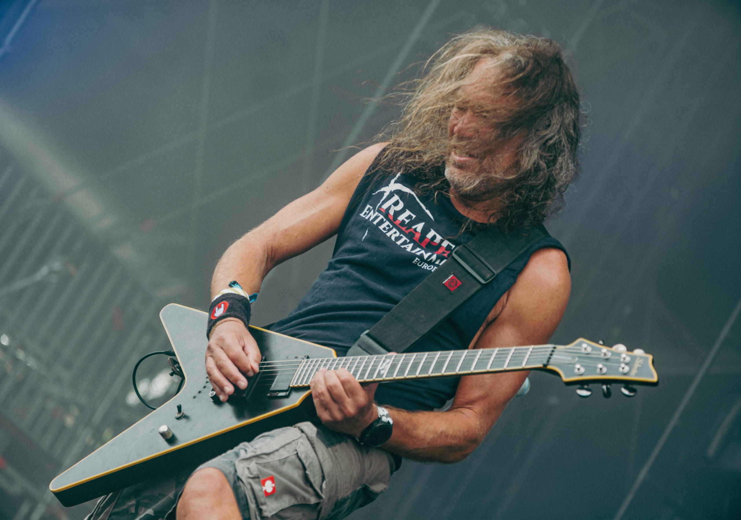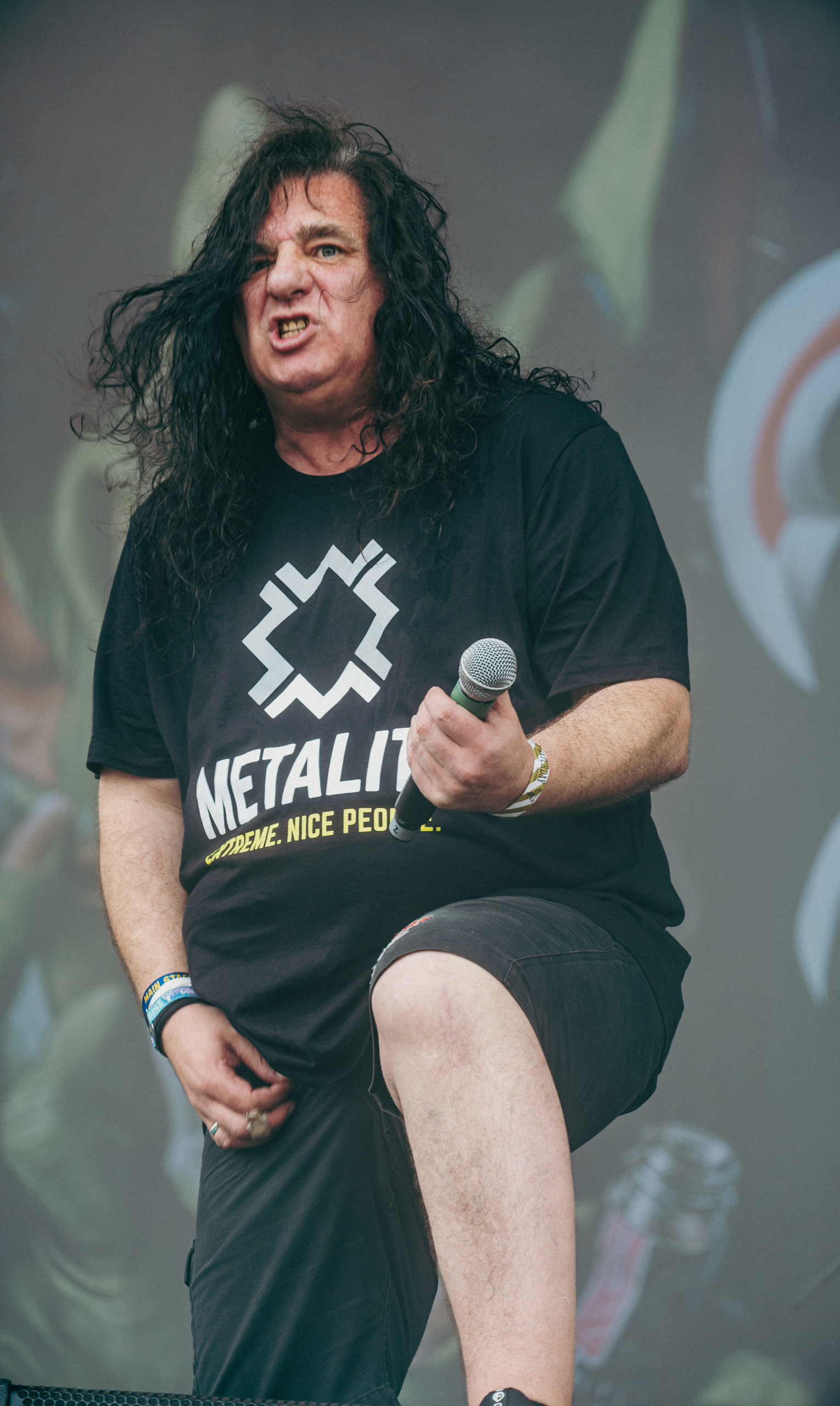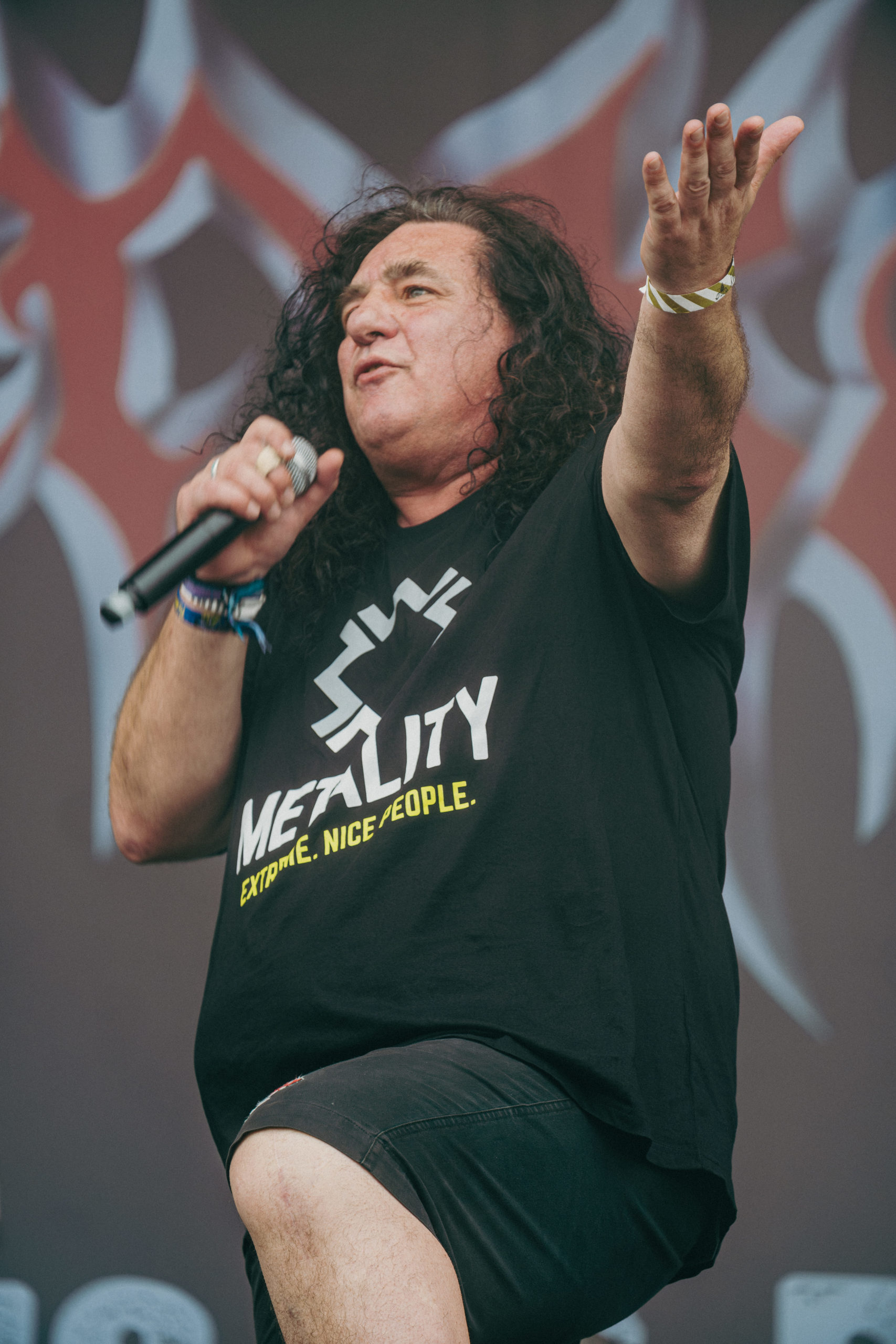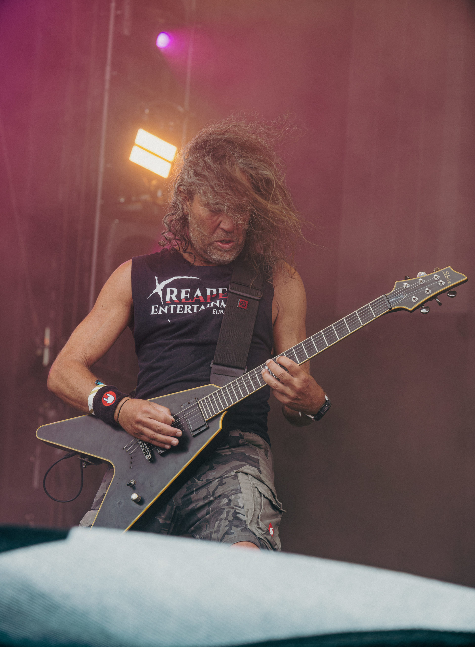 Tous ensemble autour d’une bonne bière le matin ? C’est ce à quoi Tankard nous convie. Les autoproclamés « kings of beer » ne plaisantent cependant pas quand il s’agit de faire parler le thrash. C’est ainsi qu’à 11 h 30, la foule est déjà dense devant la Faster Stage, s’adonnant aux joies du circle pit sans modération. Gerre (chant) est toujours sympa et souriant comme pas deux, et en fin de set, Sabina Classen (Holy Moses) viendra taper le duo sur le hit planétaire qu’est (Empty) Tankard. Trop cool, on vous dit ! [Oli]