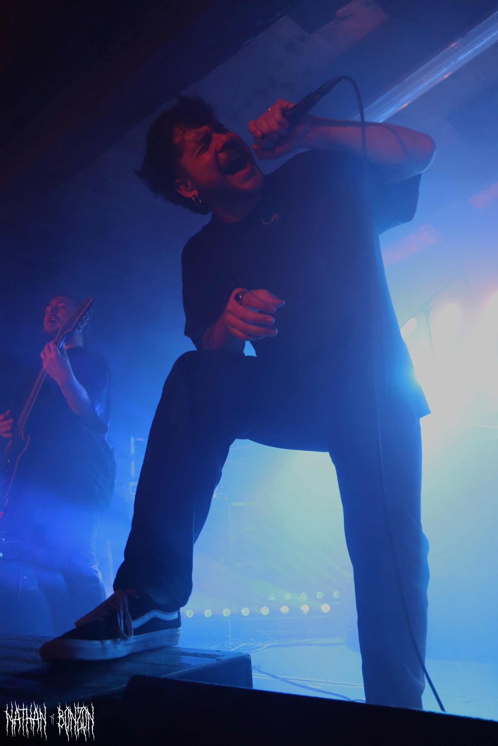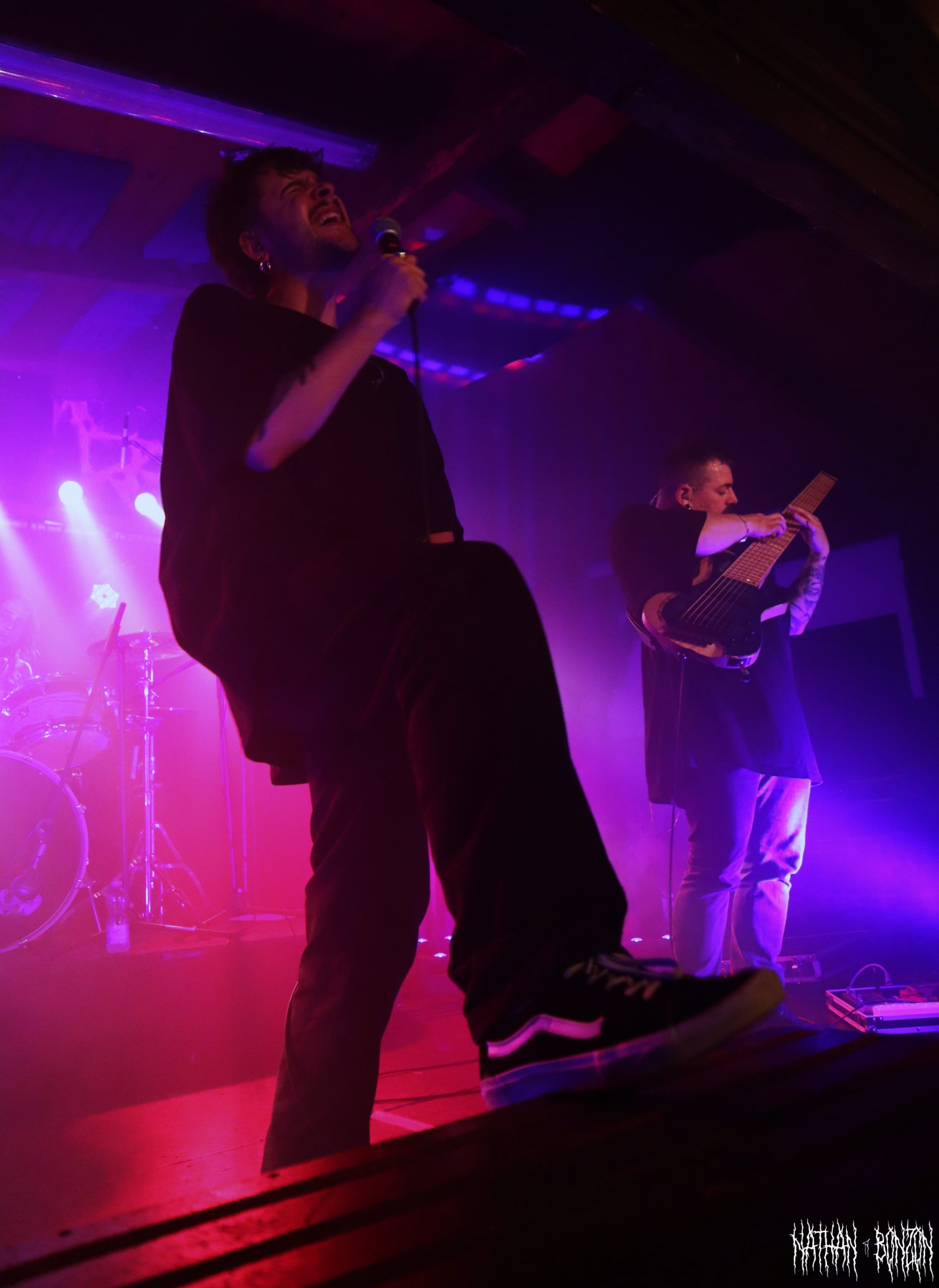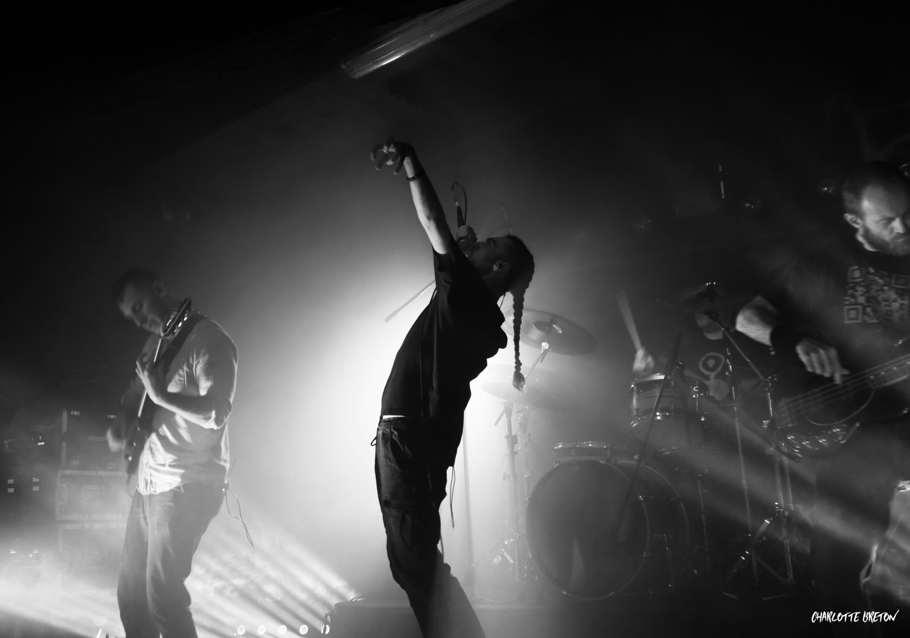 Après une courte pause, le temps, pour les musiciens, de s’installer, et pour le public, de souffler un peu, le second groupe de la soirée monte sur scène : il s’agit de Korrupted. Le quartet suisse de deathcore/metalcore débute son set sur les chapeaux de roues avec des morceaux déjà très lourds et sacrément méchants. De gros breakdowns appellent le public à naturellement former divers moshpits et walls of death, auxquels prennent joyeusement part les confrères de Dark Gravity et une partie du public. Le chanteur pousse d’impressionnants screams, invoquant son Will Ramos intérieur de par des highs qui ressemblent beaucoup à ceux du vocaliste de Lorna Shore. Quant au bassiste, dont l’instrument semble plus destiné au jazz qu’au deathcore, celui-ci joue de superbes lignes de basse tout à la main. Outre de lourds breakdowns, la musique de Korrupted contient des atmosphères constituées tantôt par de légères notes de guitare, tantôt par des ambiances au synthétiseur, le tout accentué par une subtile touche de chant clair. On ressent à travers certains morceaux une patte presque nu/alt metal contribuant à rendre ce concert encore plus fun, bien qu’on arrive déjà au terme du set. [Nathan]