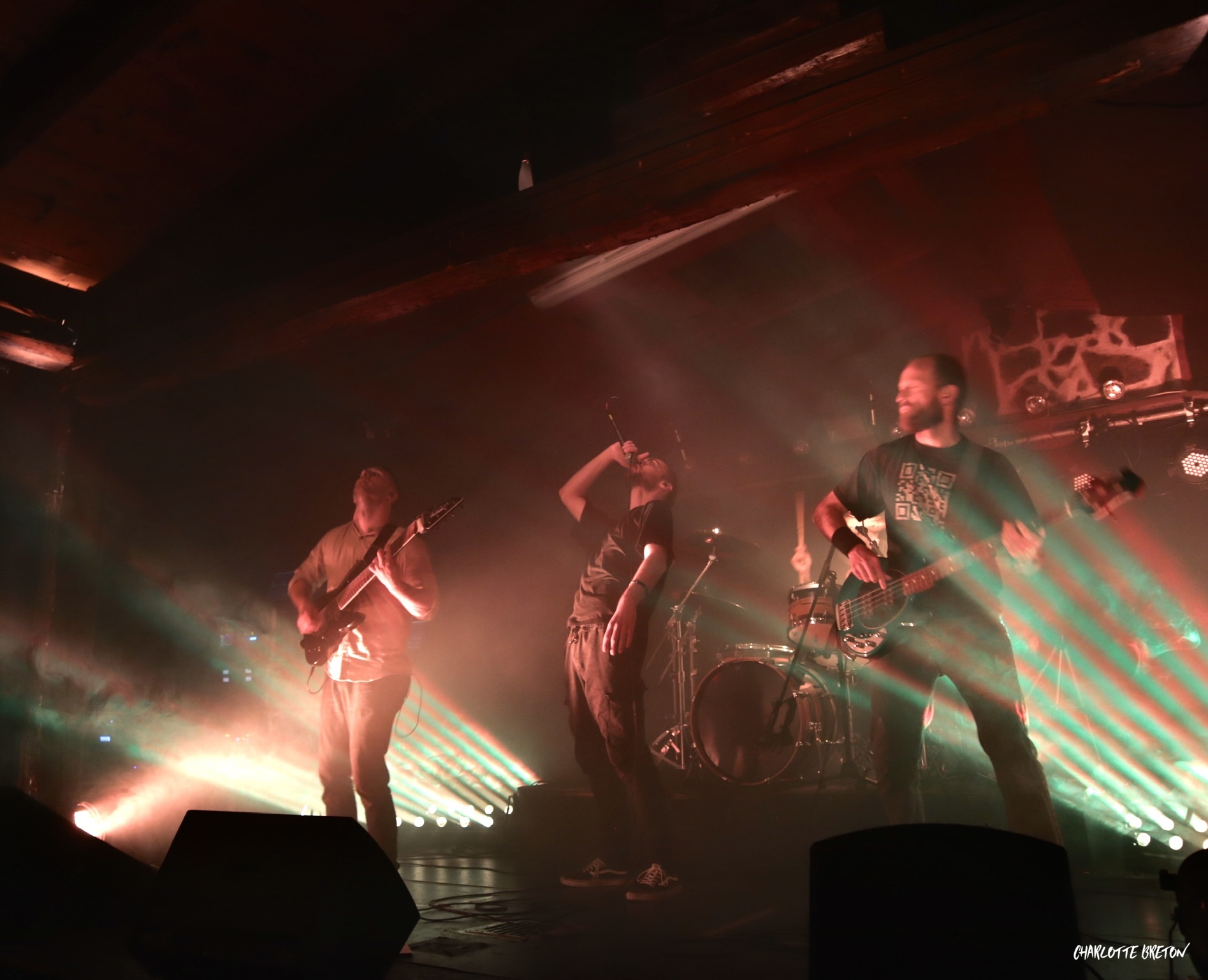 Nous étions en train de déguster une bonne bière quand il fut de nouveau l’heure d’apprécier la musique à plein volume. Aller hop, cul sec et allons voir Alchemists. Ce troisième et dernier concert commence par le morceau Flamel, qui tape déjà très fort dans le style d’Invent Animate et donne un bel aperçu de ce qui va se passer pendant le reste de ce show. Le public, encore plus survolté qu’avant, bouge au son des riffs typés djent de Marc Chevalley et des polyrythmes de la batterie, avec Thomas Giroud derrière les fûts. Une gargantuesque basse sept cordes, émettant un son épais et distinct, est jouée par Yoann Maillard, doté d’un doigté impressionnant. Tout au long du set, le groupe a l’air décontracté et semble passer un super moment, tout comme le public. Le final du concert, qui se clôture sur l’excellent morceau Frontiere, est tout simplement magique. Le vocaliste Julen Ibarrola se rend dans le public et crie à pleins poumons les dernières paroles avec assez de force pour donner des frissons à toute l’audience. Bénéficiant d’un set plus long que d’habitude, Alchemists peut se permettre de jouer son premier album Chapter One : Love dans sa quasi-entièreté, en plus de quelques inédits pour le plus grand plaisir des fans venus ce soir. Le quartet lausannois a été couronné, en mars dernier, grand gagnant de la partie romande du Greenfield Band Contest, ce soir s’agit alors de leur dernier concert avant ce moment tant attendu. Si vous comptez vous rendre au Greenfield, je ne peux que vous recommander d’aller voir ce groupe super prometteur qui ouvrira la journée du samedi 15 juin, sur la petite scène à 13 h 40. [Nathan]