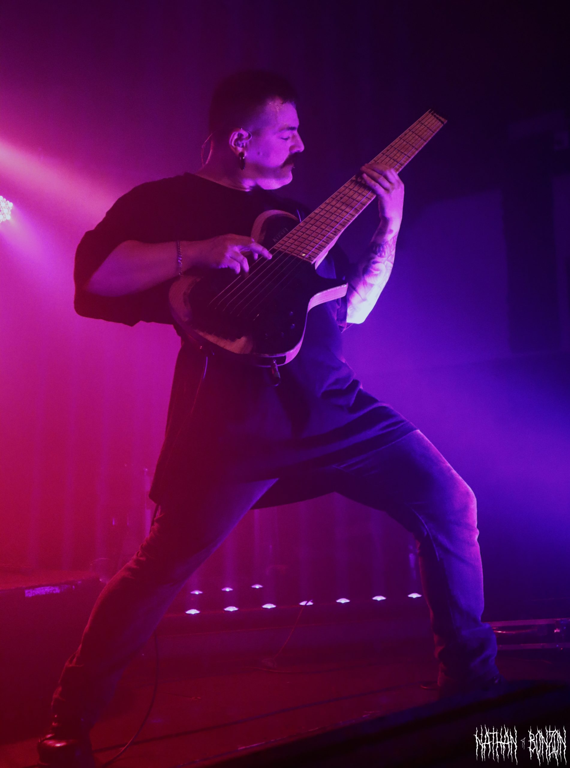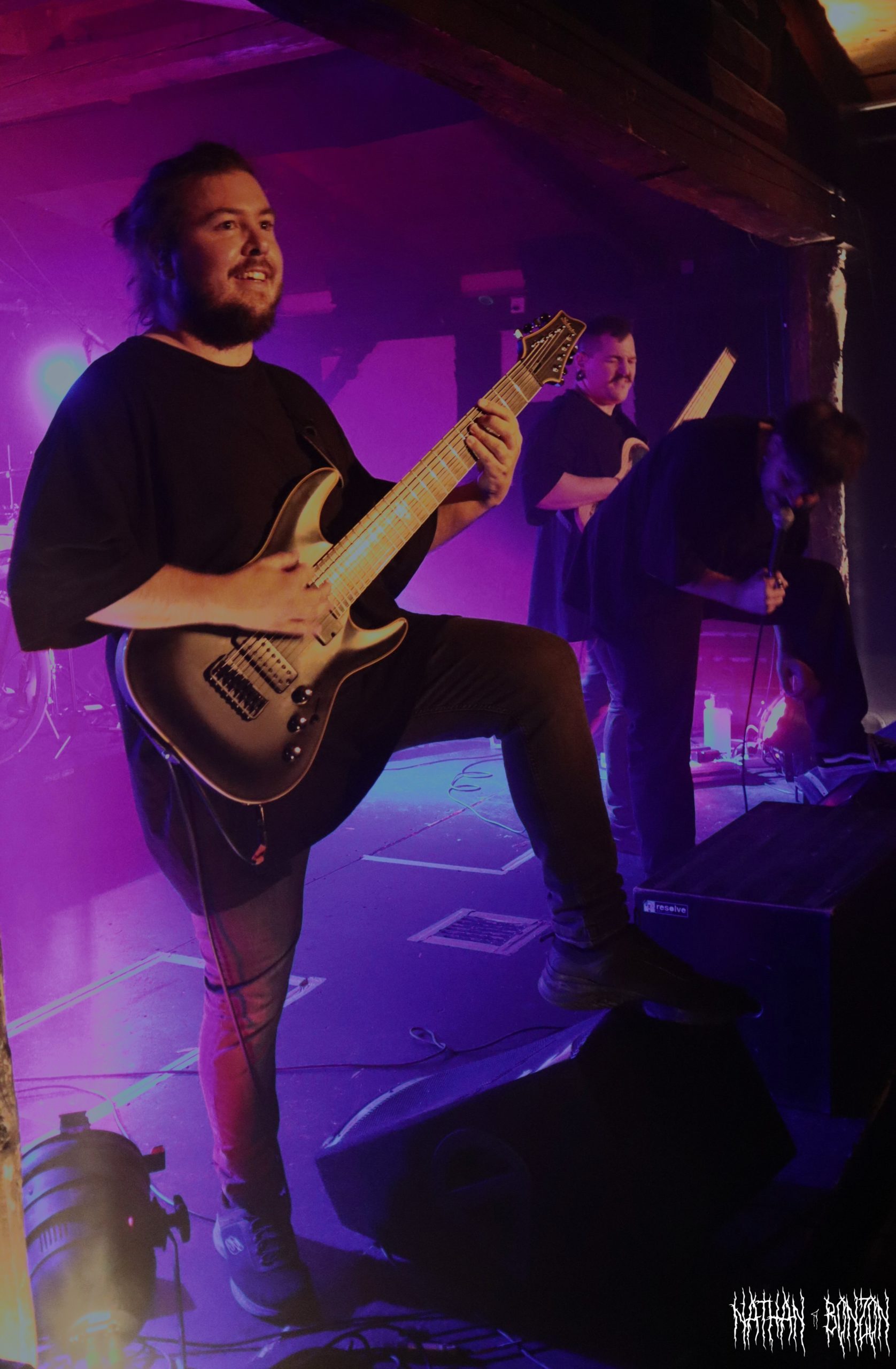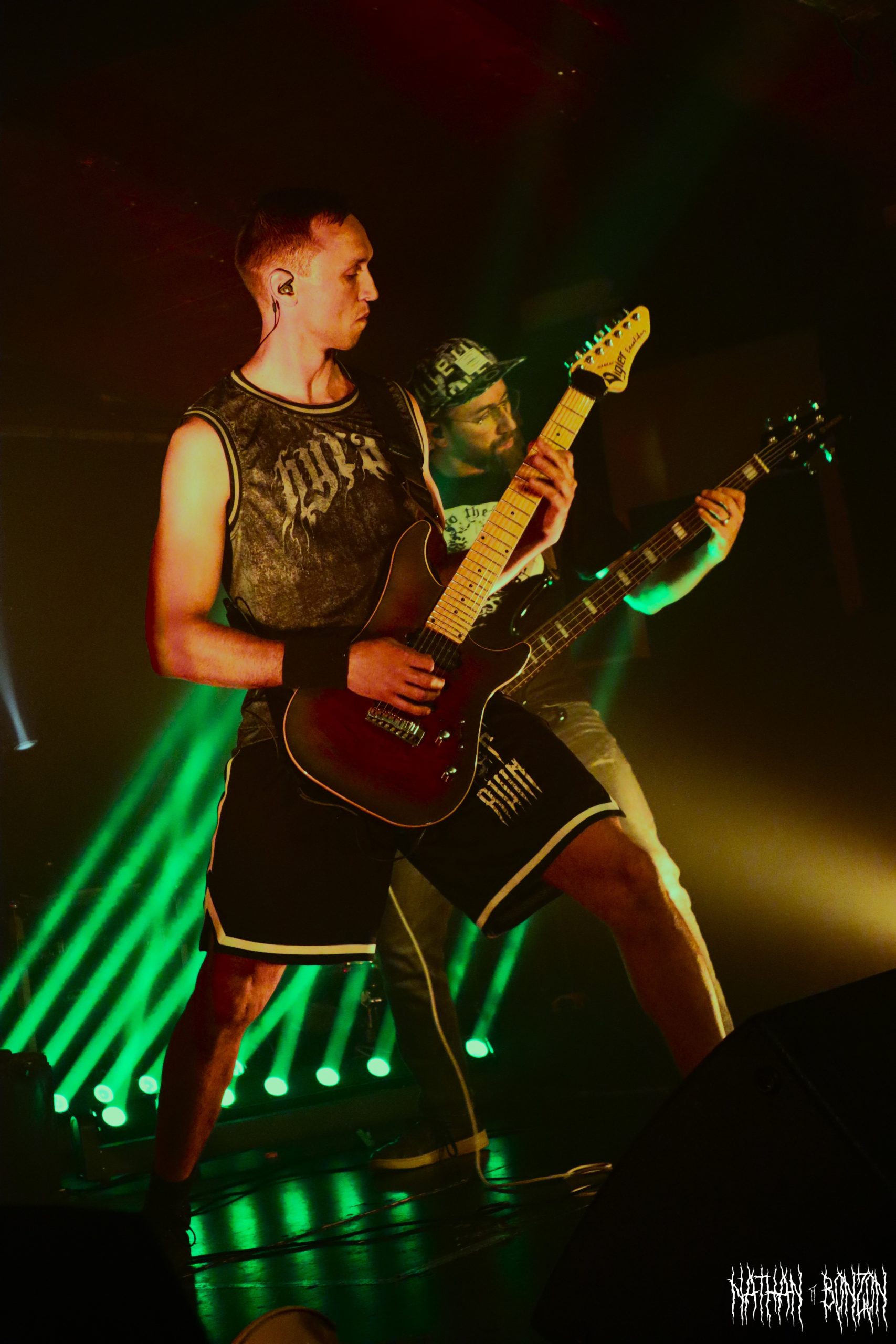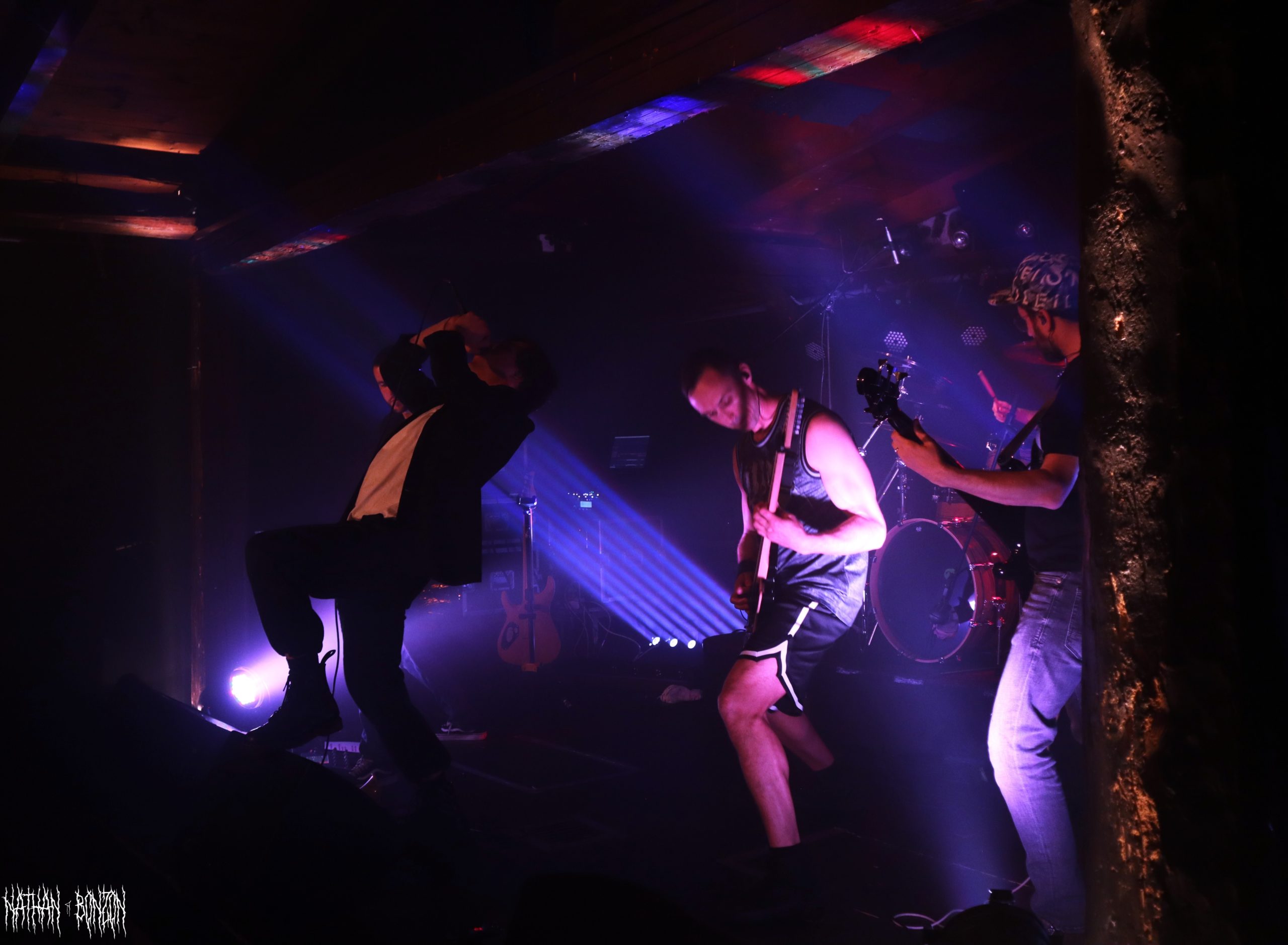 Peu après être entrés dans le Manoir Pub, véritable institution de la région, les 19 heures sonnent : il est temps de passer dans la salle de concert. À peine le temps de s’installer qu’une grosse batterie se fait entendre. Dark Gravity ouvre les hostilités. Originaire de Lausanne dans le canton de Vaud, ce groupe joue un mélange de metalcore et de death metal mélodique. Chant clair et growl sont alternés, parfois non pas au micro mais au travers d’un mégaphone, nous sommes en tout cas sûrs d’avoir entendu le chanteur Nicolas Mueller, qui met toute son âme dans la prestation. Ce dernier n’a d’ailleurs pas hésité à briser le quatrième mur en sortant par moments de la scène, accompagné du guitariste Christophe Perroud, afin de chanter et jouer directement dans l’audience. La qualité sonore est bonne, une chaleureuse ambiance règne dans la salle et les membres de Dark Gravity ont l’air d’autant s’amuser que le public, dont les plus téméraires se lancent dans de frénétiques moshpits. Alors qu’on passe déjà une super soirée, le chanteur annonce le dernier morceau et le concert touche gentiment à sa fin. Le groupe a su mettre l’ambiance et bien chauffer le public valaisan, prêt à en découdre avec les deux prochaines prestations. [Charlotte]