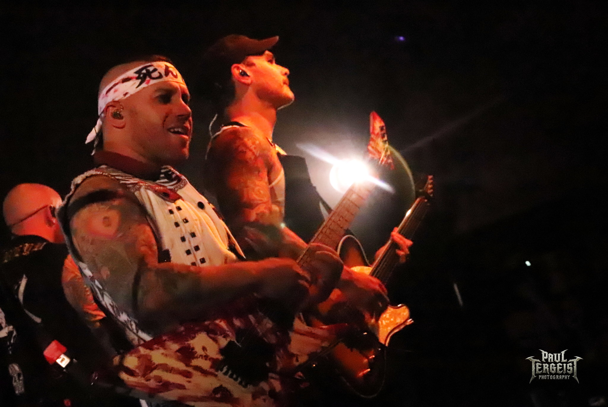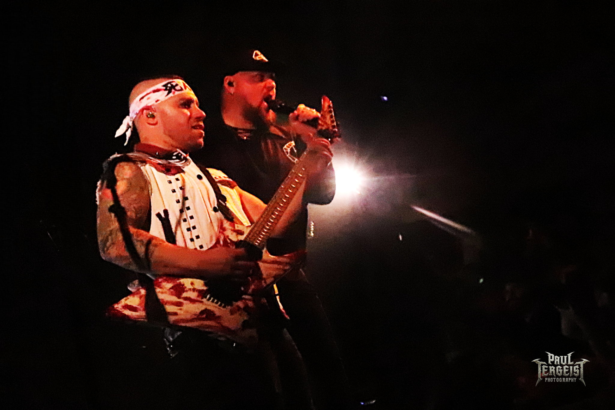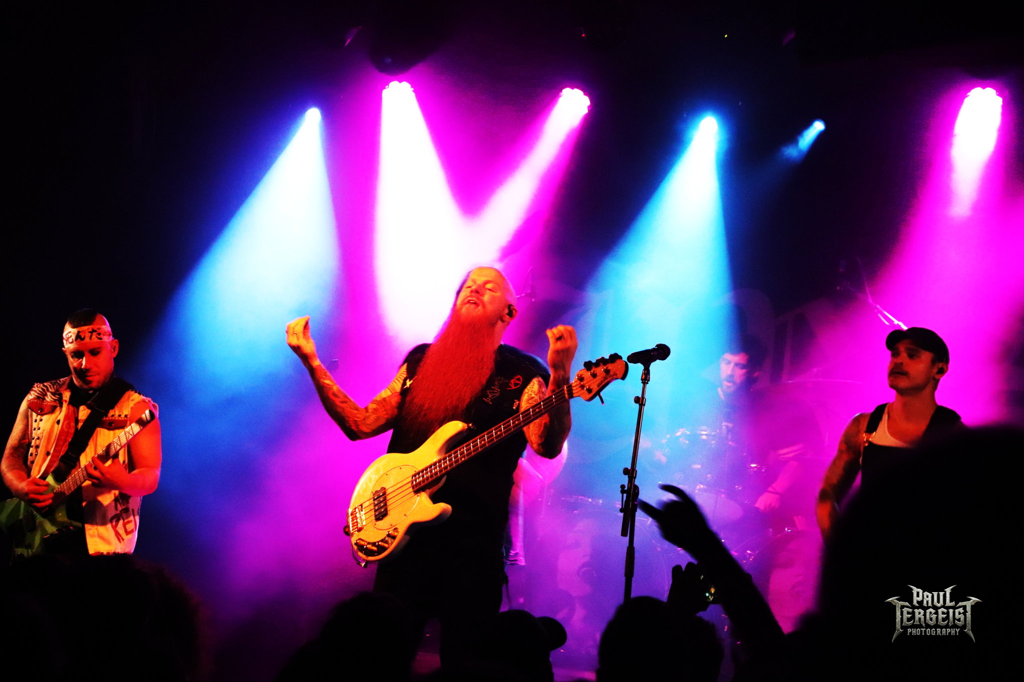 Le groupe entre en scène et débute son set avec Blood Children puis Bleeding Mascara. La réaction est immédiate : la fosse s’ouvre et les premiers pogos se déclenchent sans hésitation. Brandon Saller assure des lignes vocales toujours efficaces, secondé par Marc McKnight, aussi bassiste de son état, et dont le chant hurlé est particulièrement abrasif.