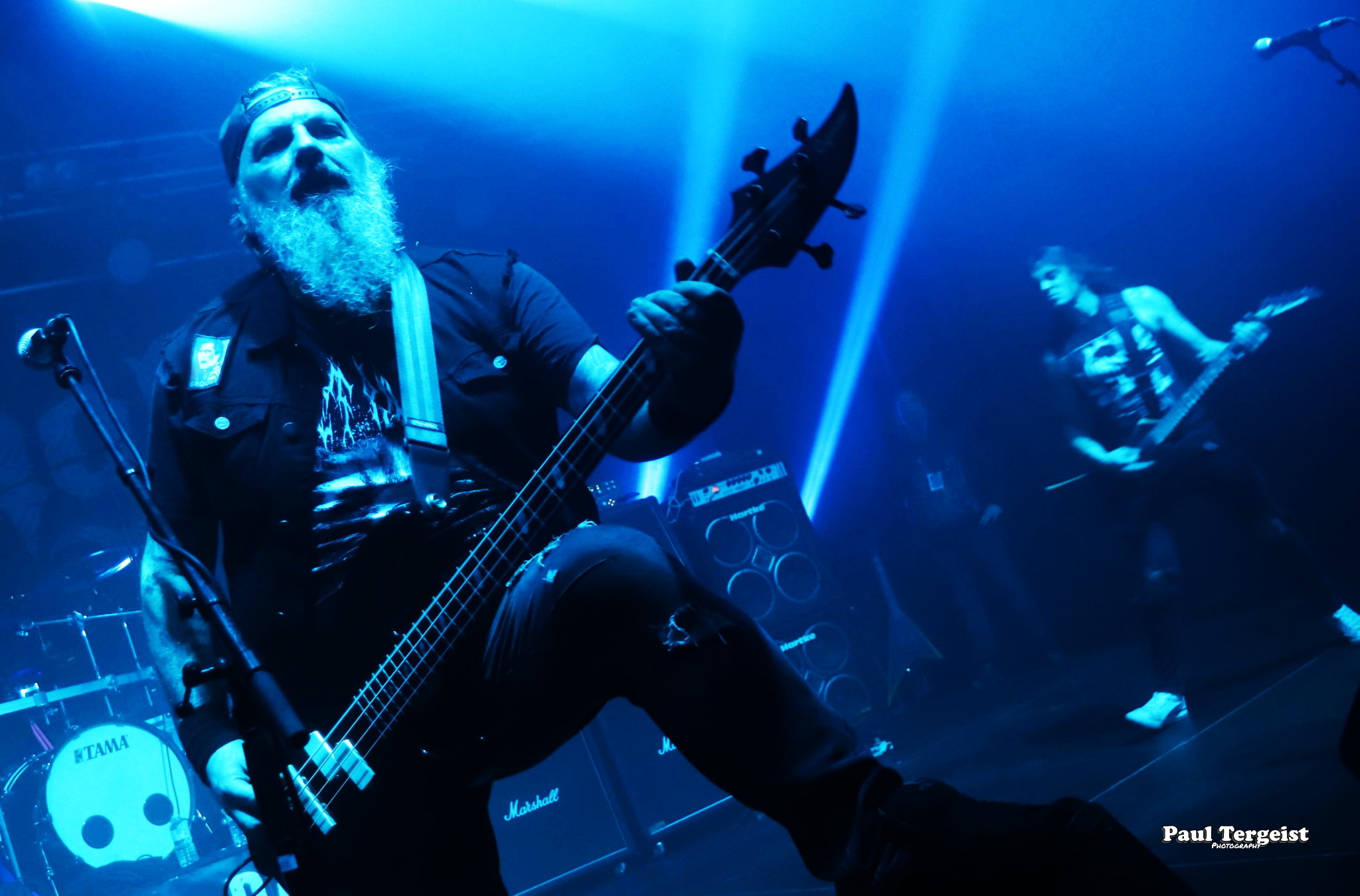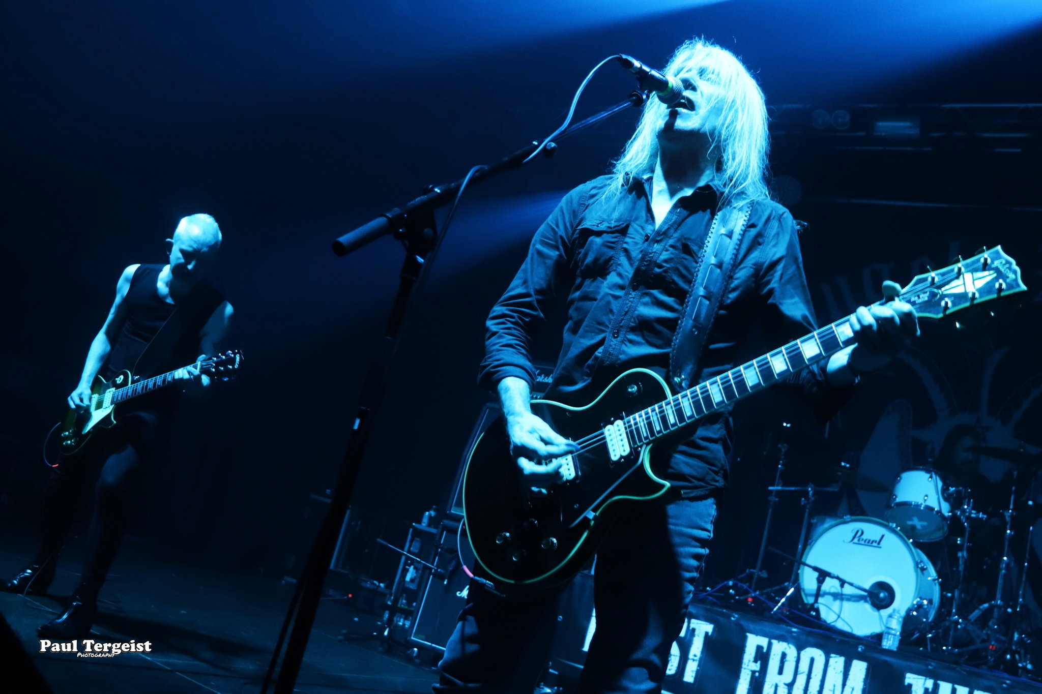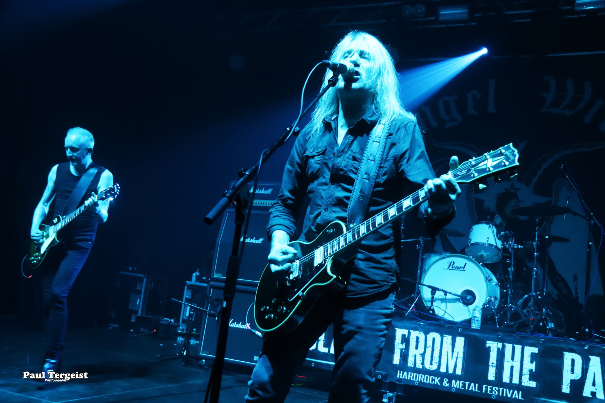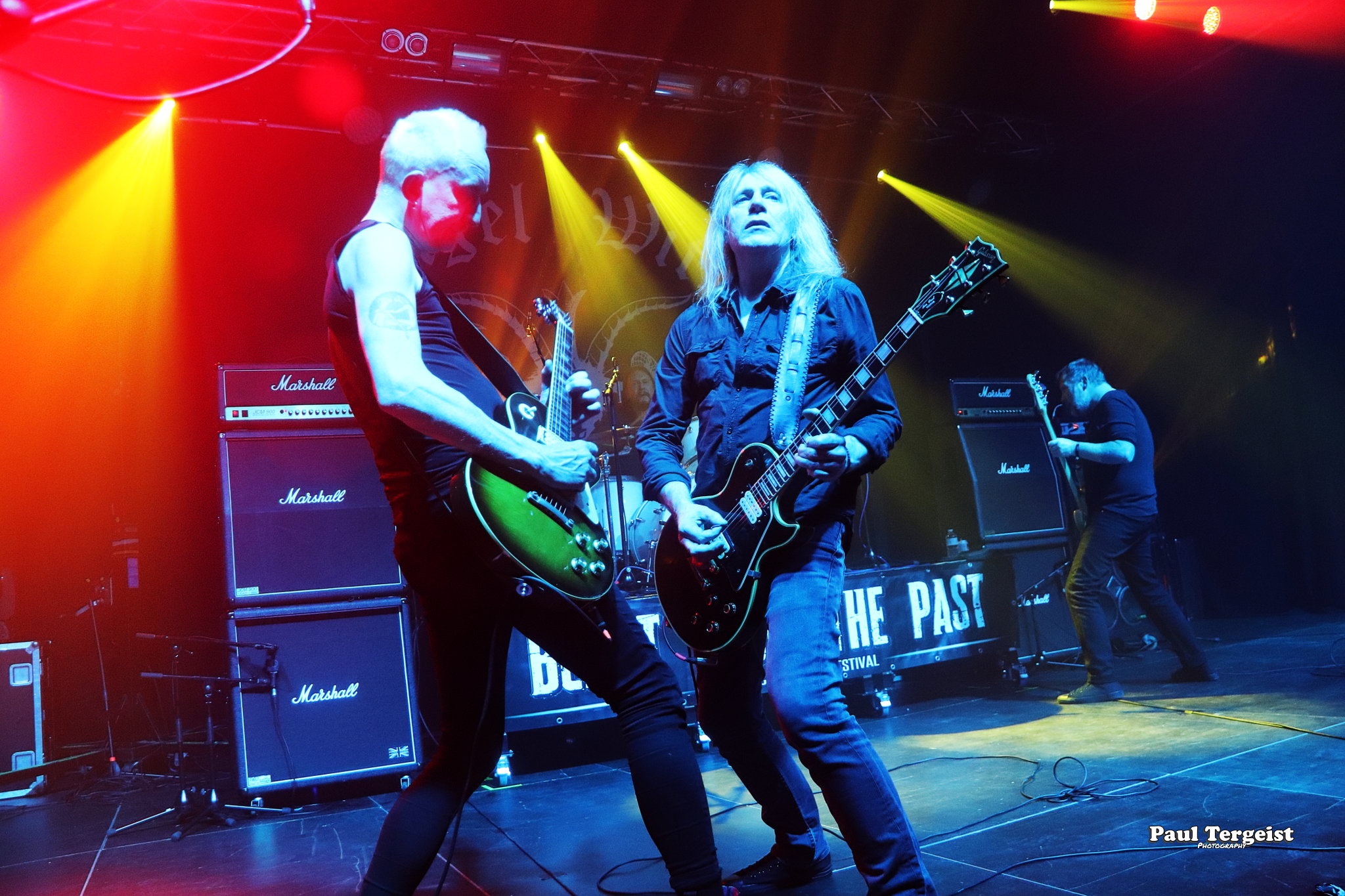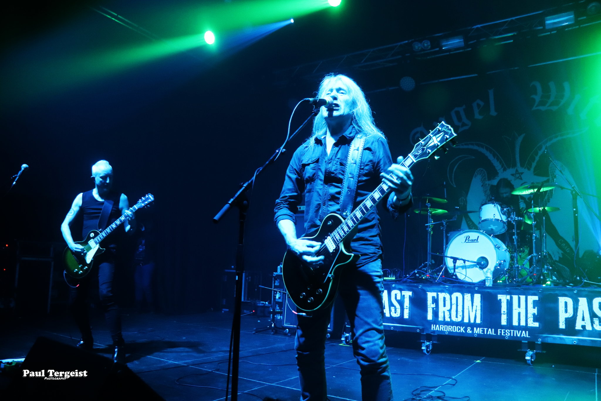 En tête d’affiche, Angel Witch était d’autant plus attendu qu’il n’a pas posé ses valises en Belgique depuis un bail, et que cette date était, de plus, sa première de l’ère post-covid. Le groupe, culte et influent s’il en est, a toujours occupé une position à part au sein de la NWOBHM, en raison d’un style particulier, qui mêle à la tradition du genre, des éléments de ce qui ne s’appelait pas encore, à l’époque, le doom. Des formations comme Candlemass, par exemple, n’ont d’ailleurs jamais caché l’influence non négligeable d’Angel Witch sur elles. Le groupe livre une prestation sans hiatus et sans fioritures, faisant exclusivement la part belle au premier album éponyme daté de 1980 et au petit dernier, Angel of Light (2019), qui occupent chacun à peu près une demi set-list, complétée par une incursion dans le très recommandable As Above, So Below (2012) par le biais de Dead Sea Scrolls.